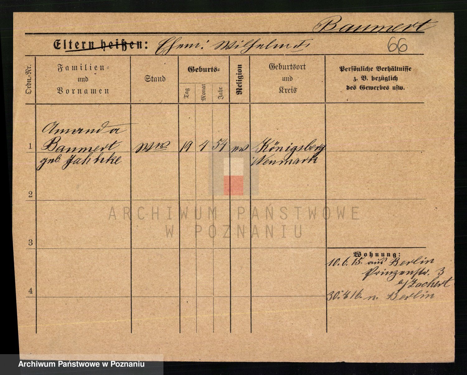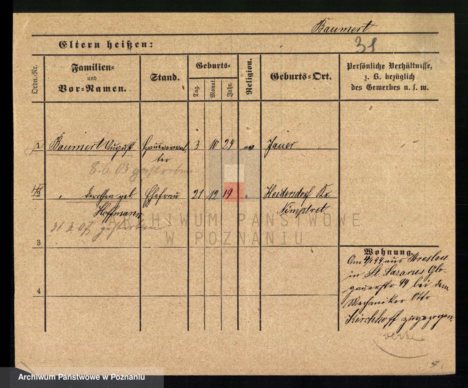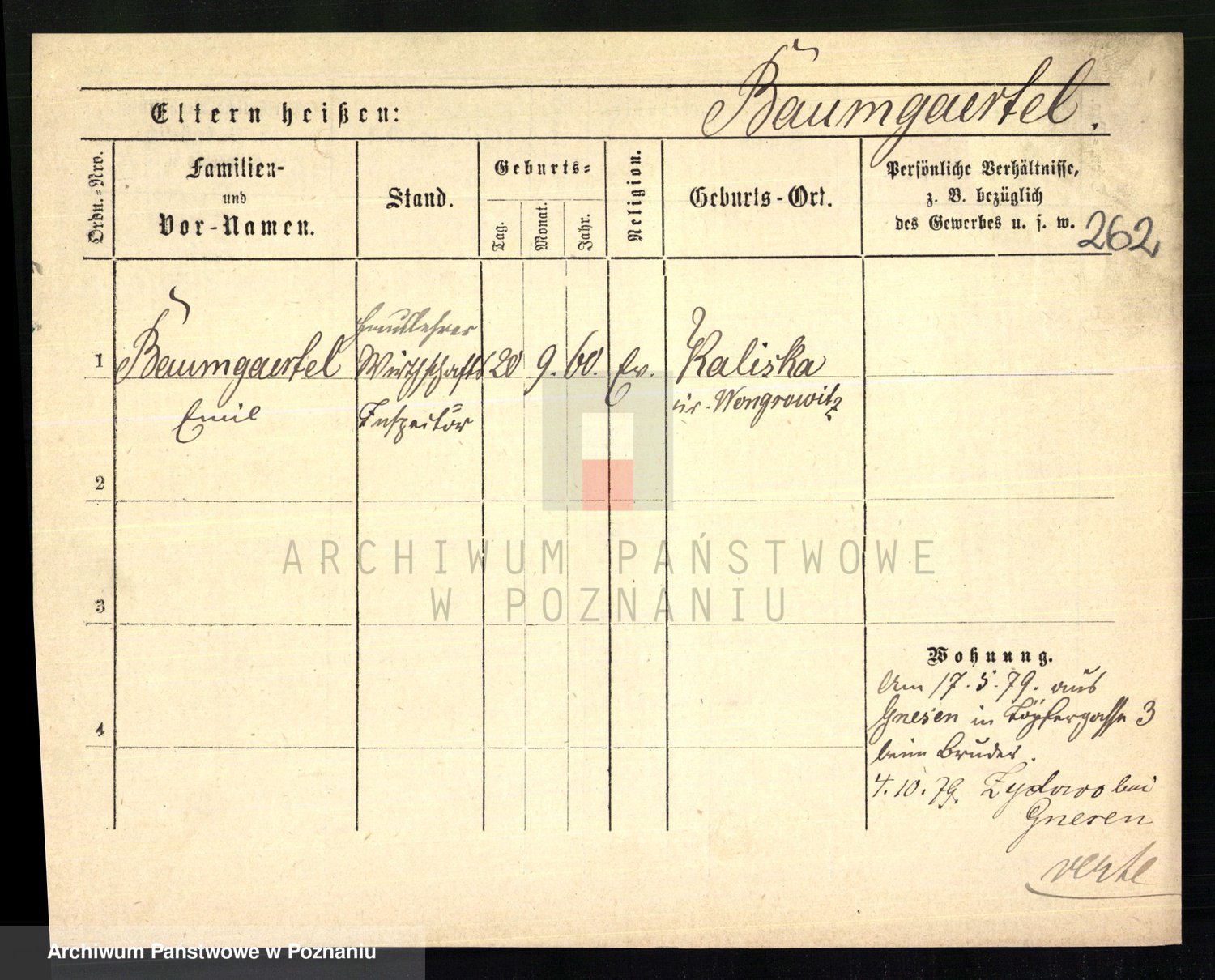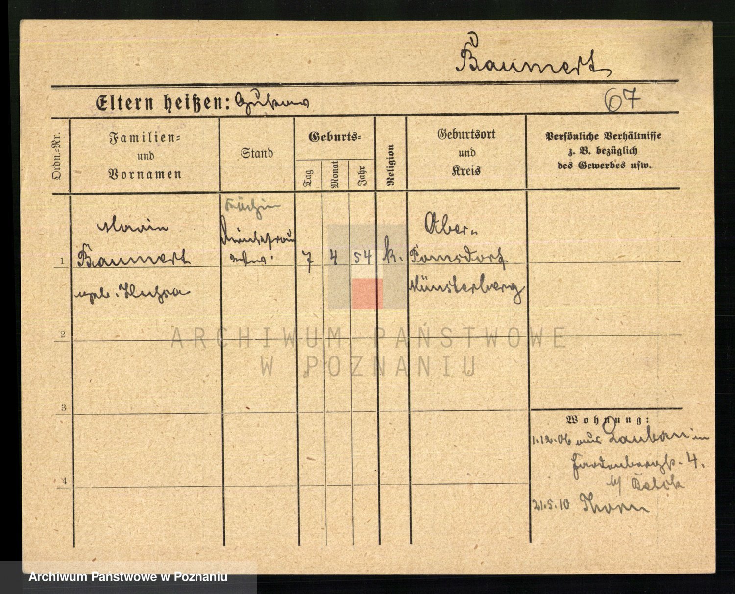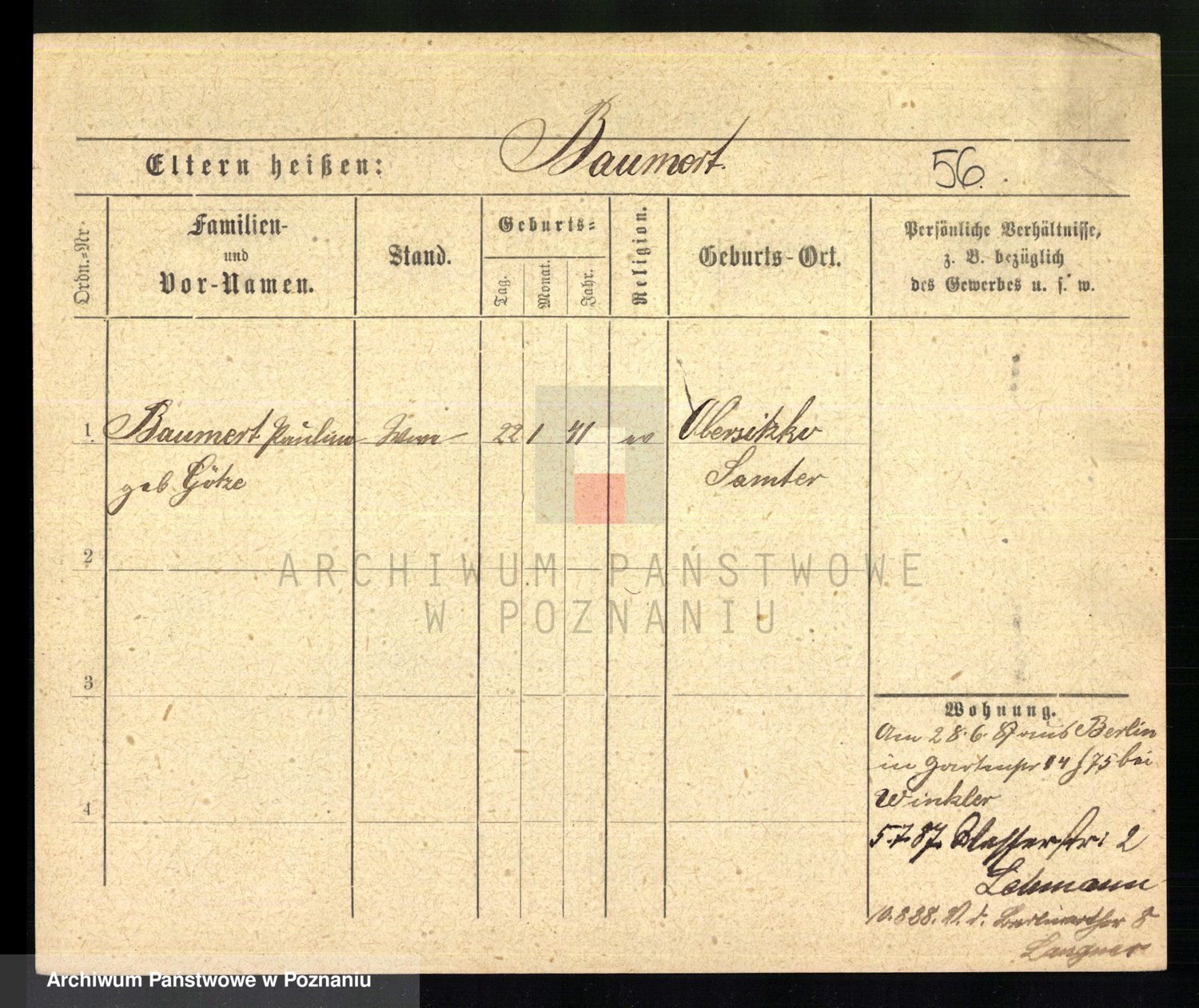 Baumert zd. Kern, Auguste Wilhelmine
