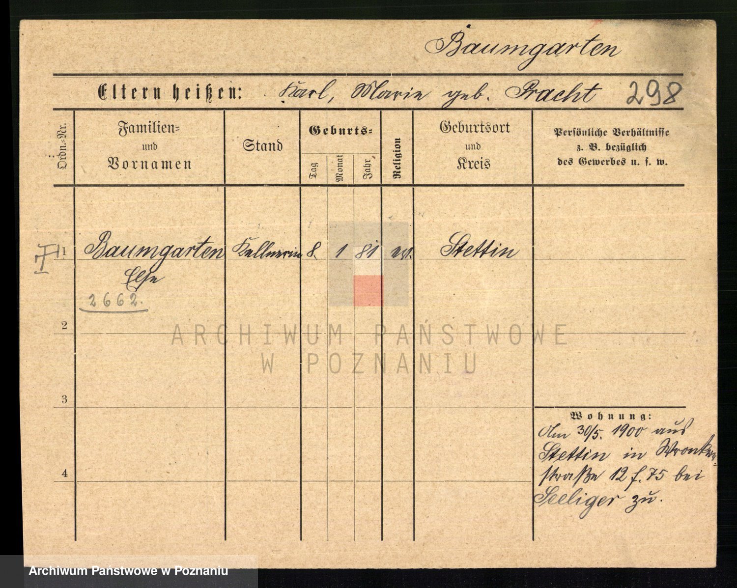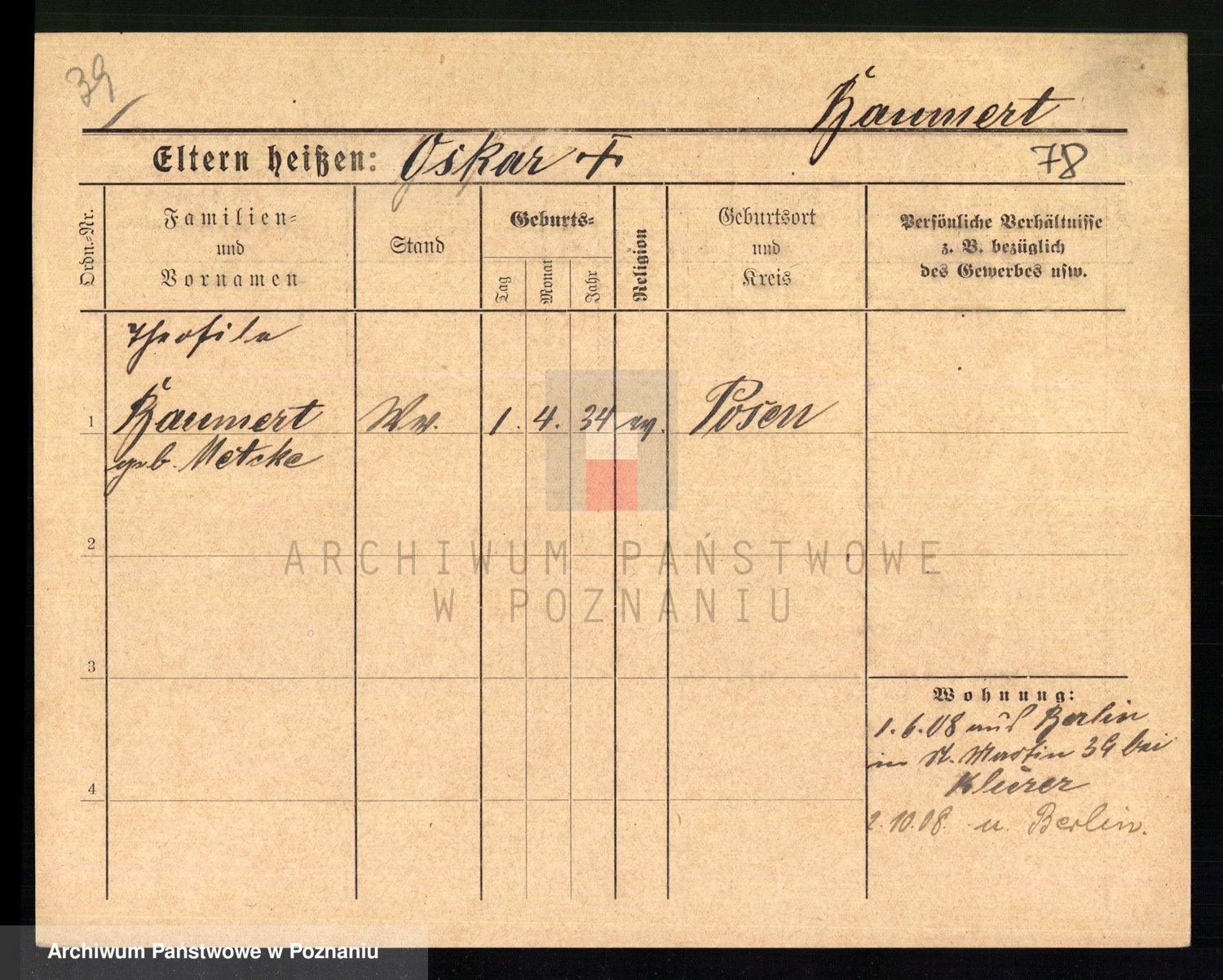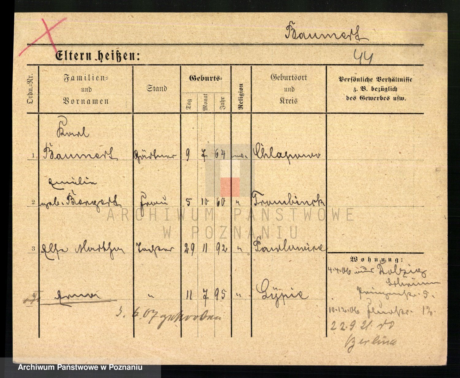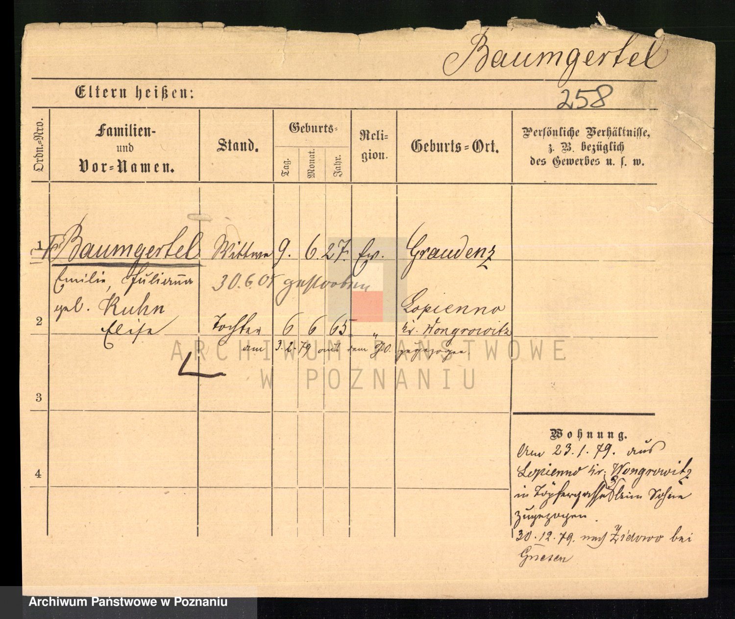 Baumert zd. Kern, Auguste Wilhelmine