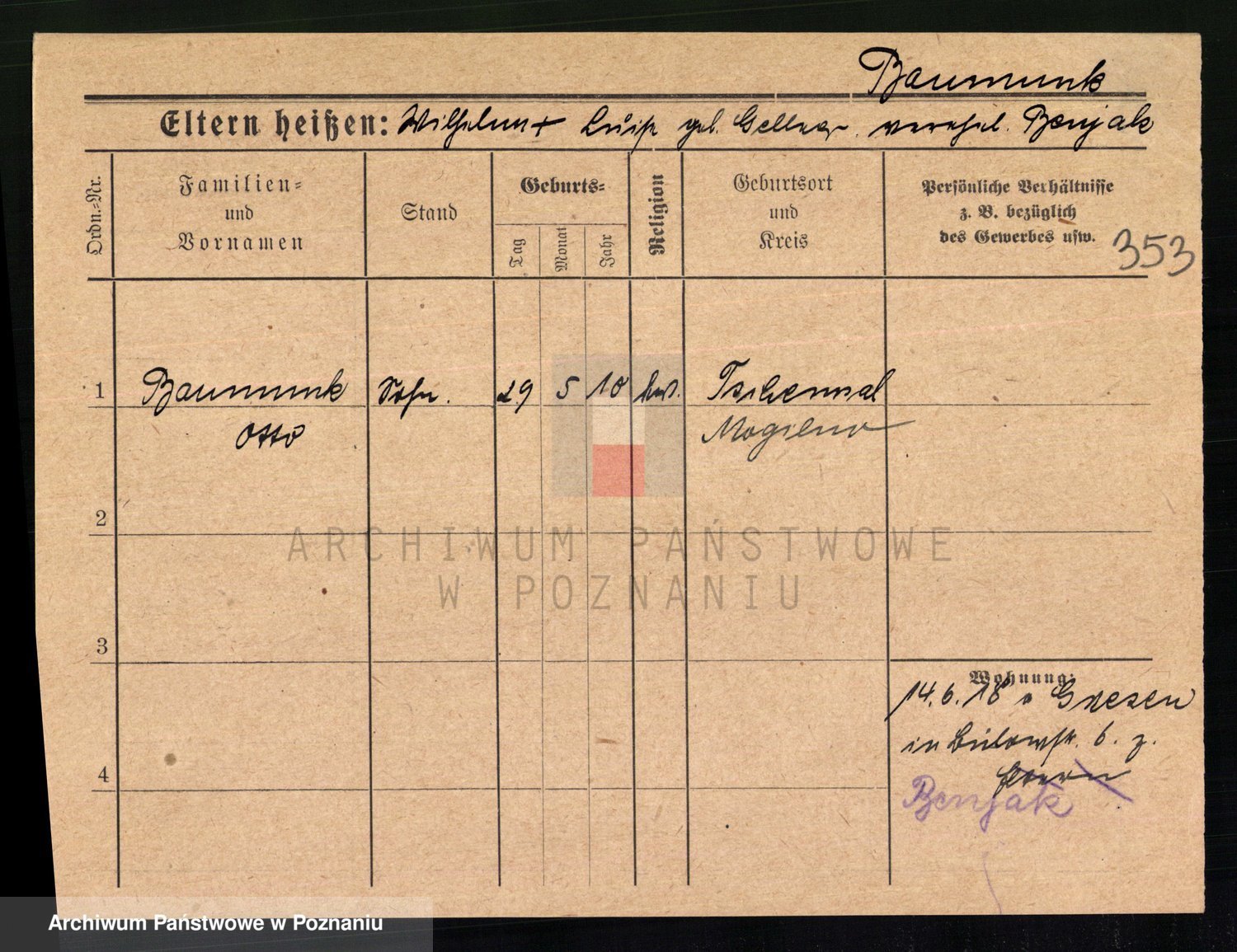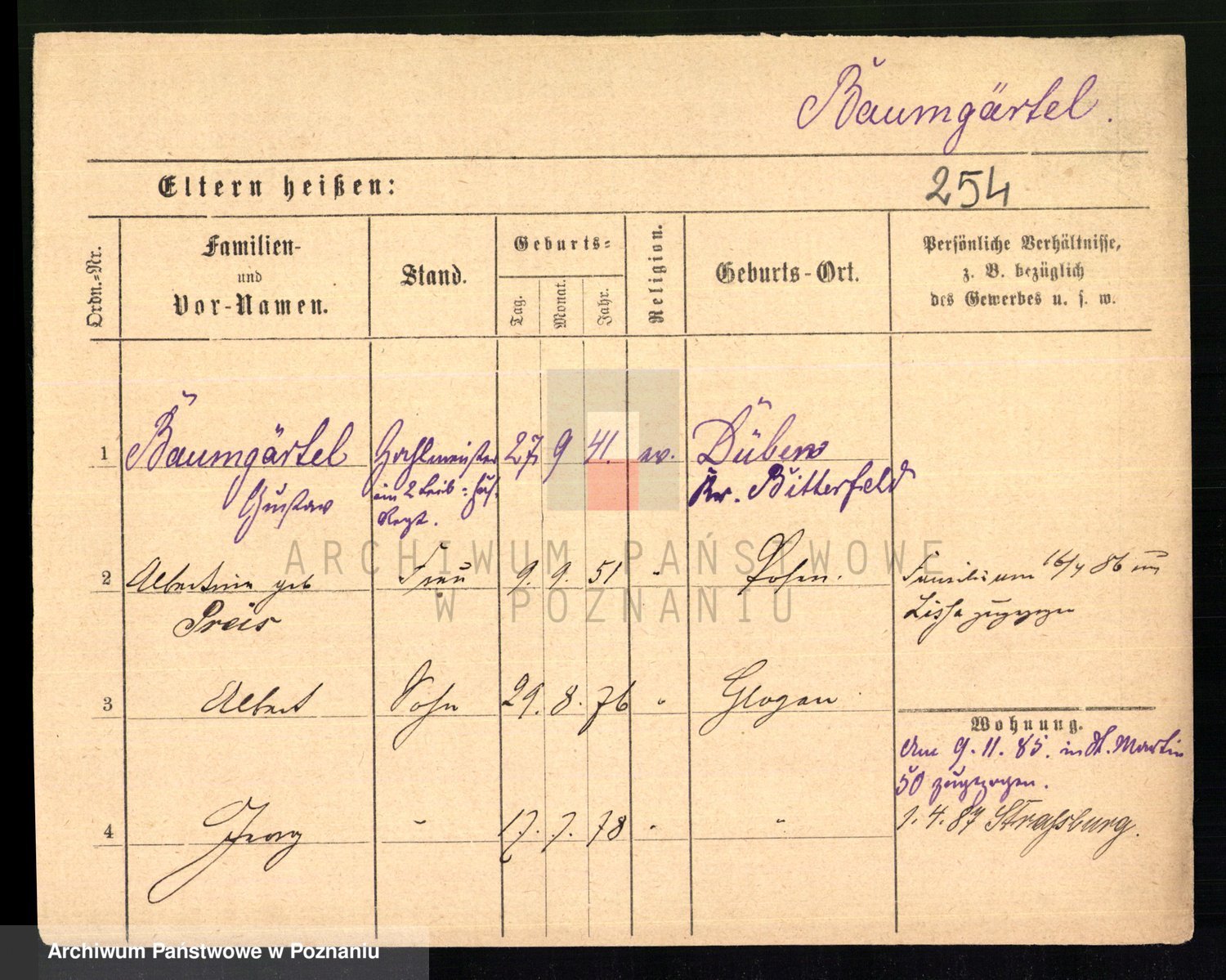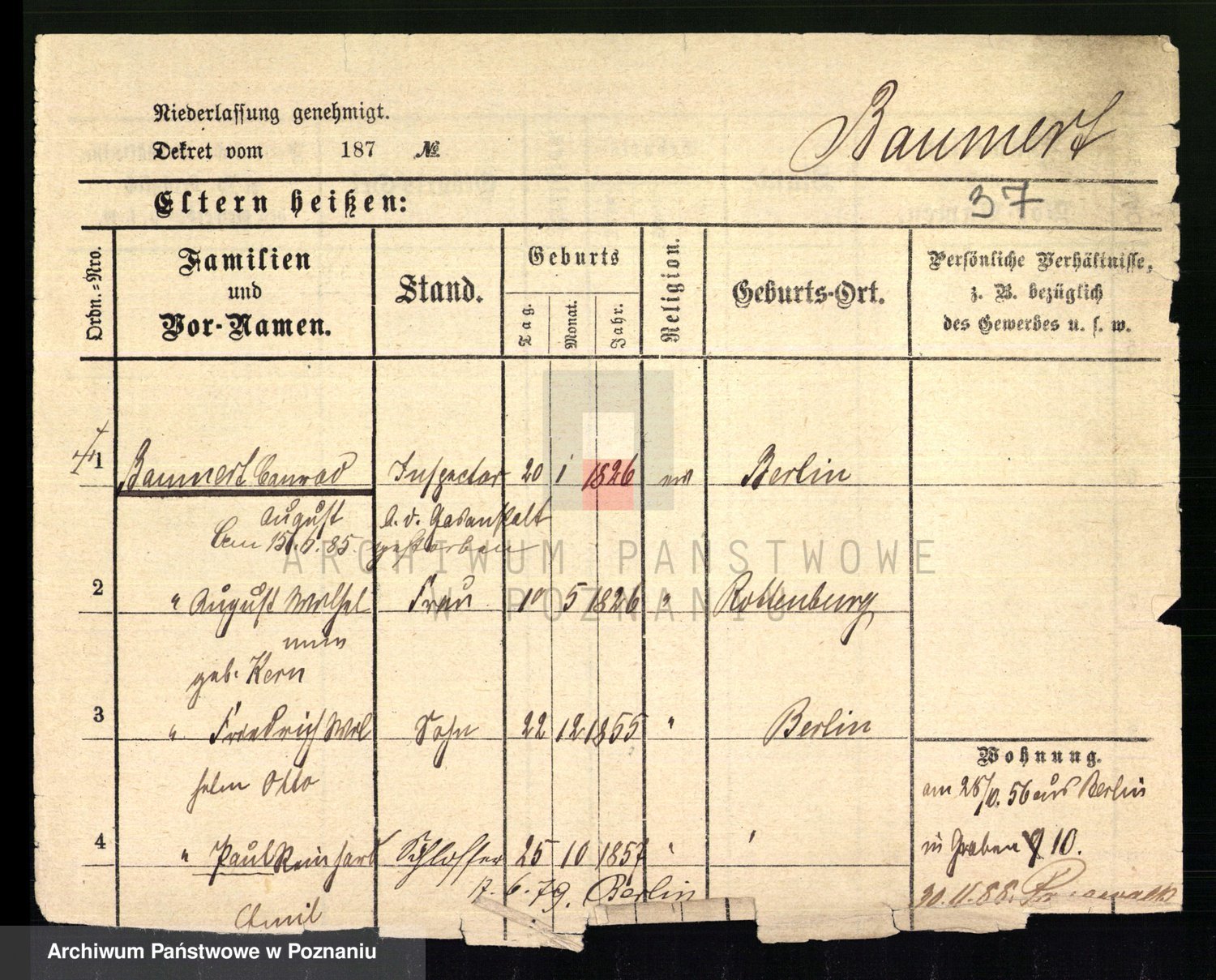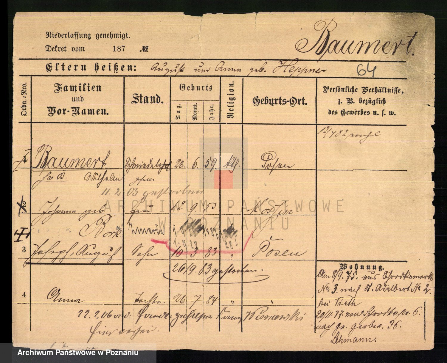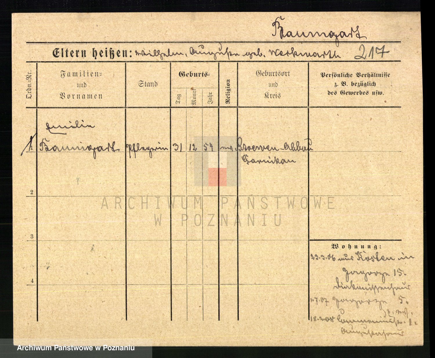 Baumert zd. Kern, Auguste Wilhelmine