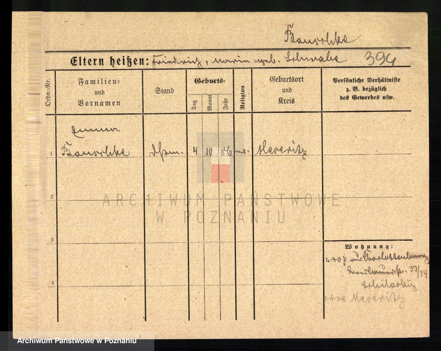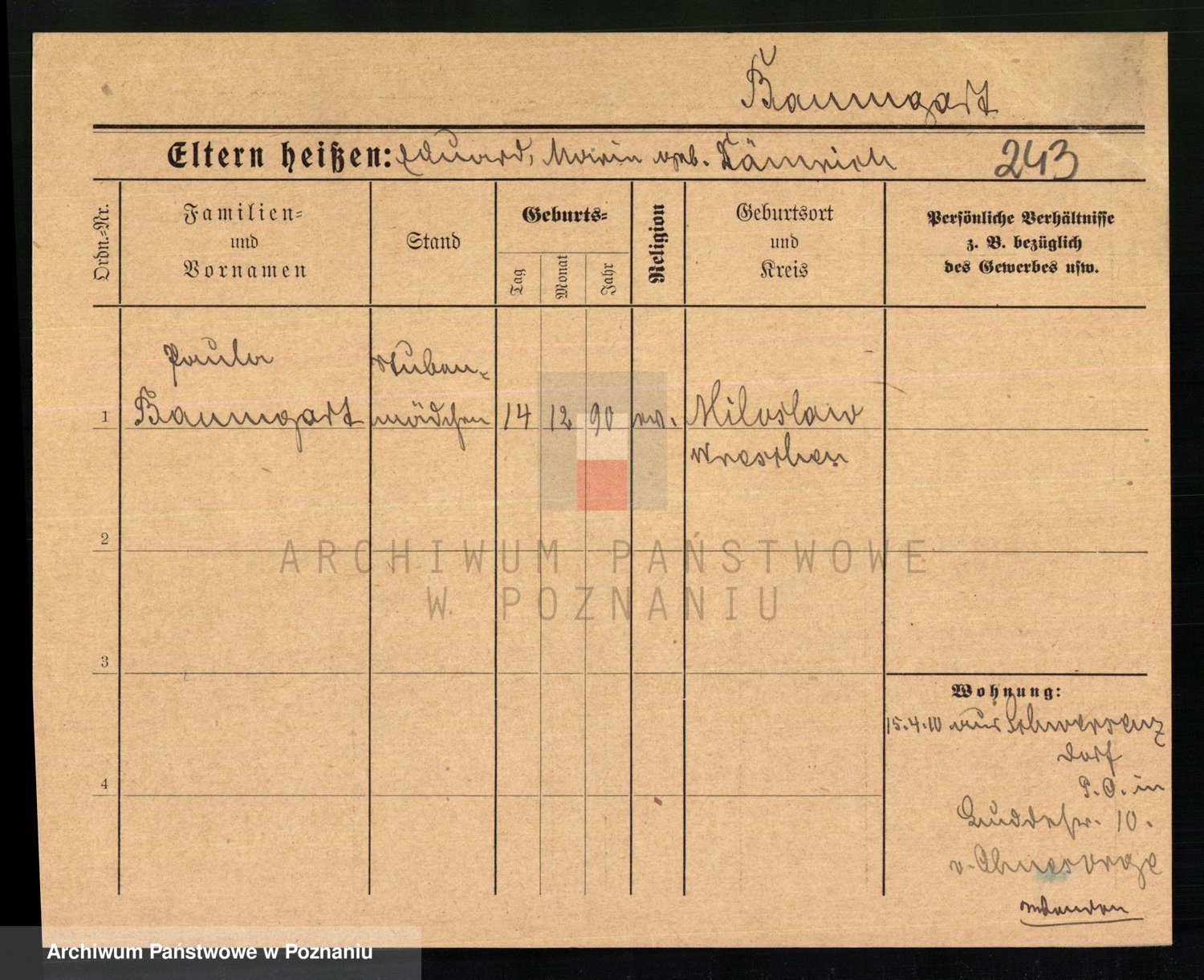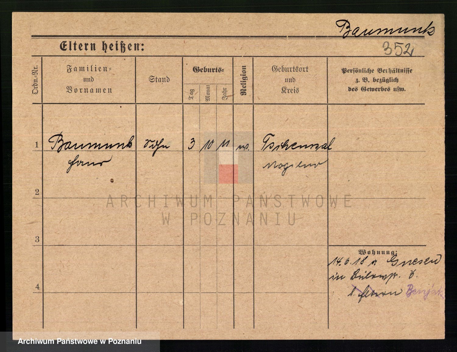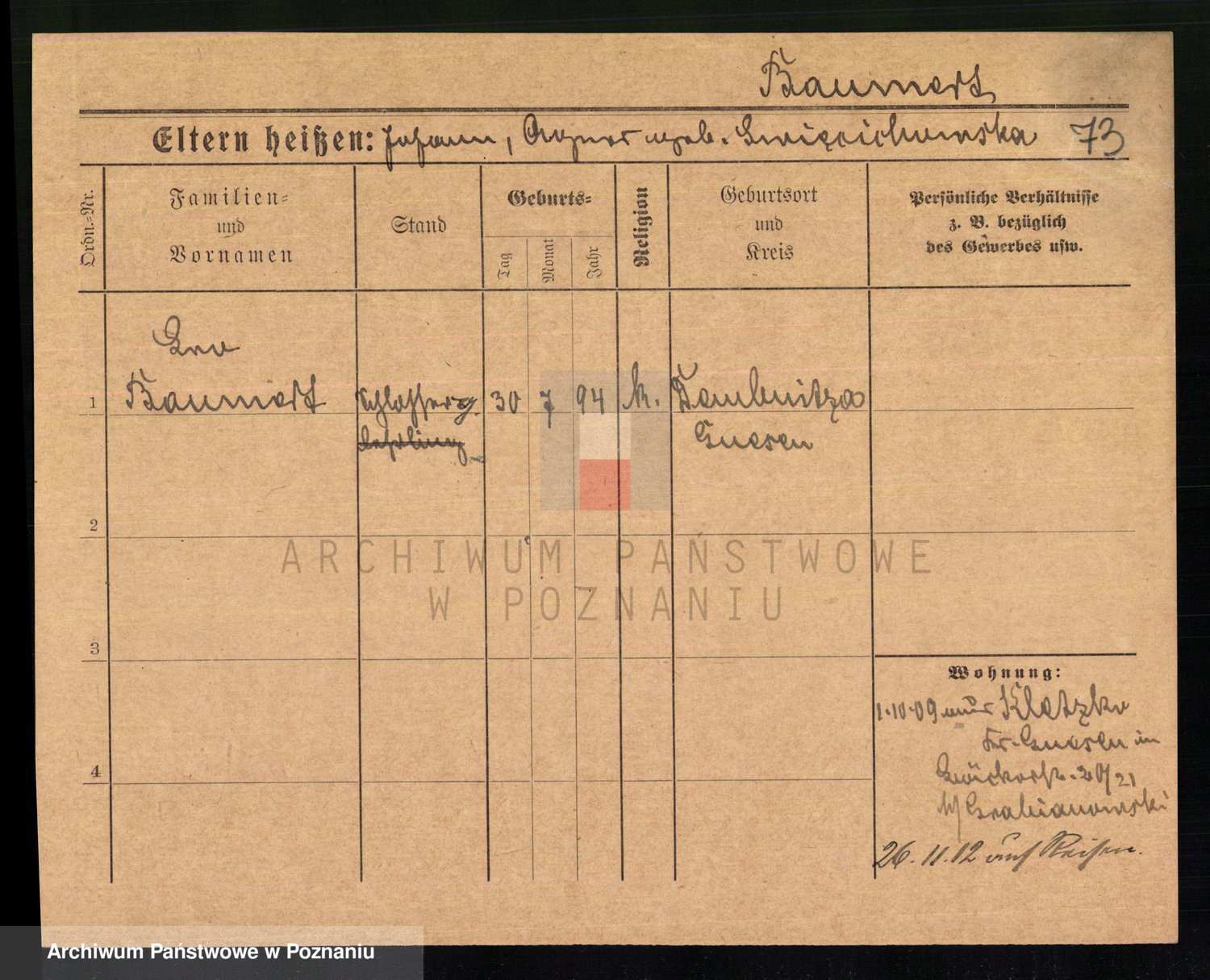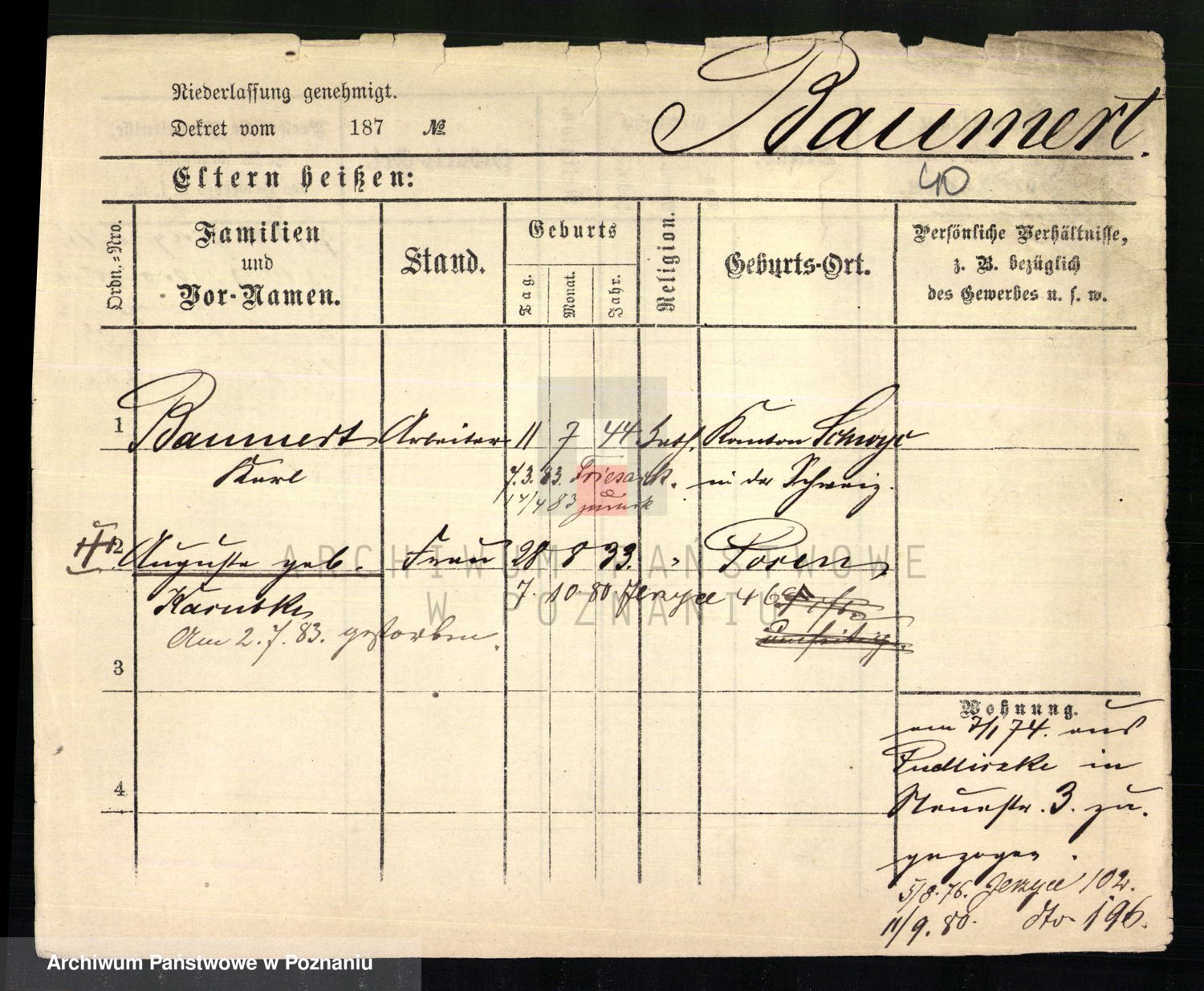 Baumert zd. Kern, Auguste Wilhelmine