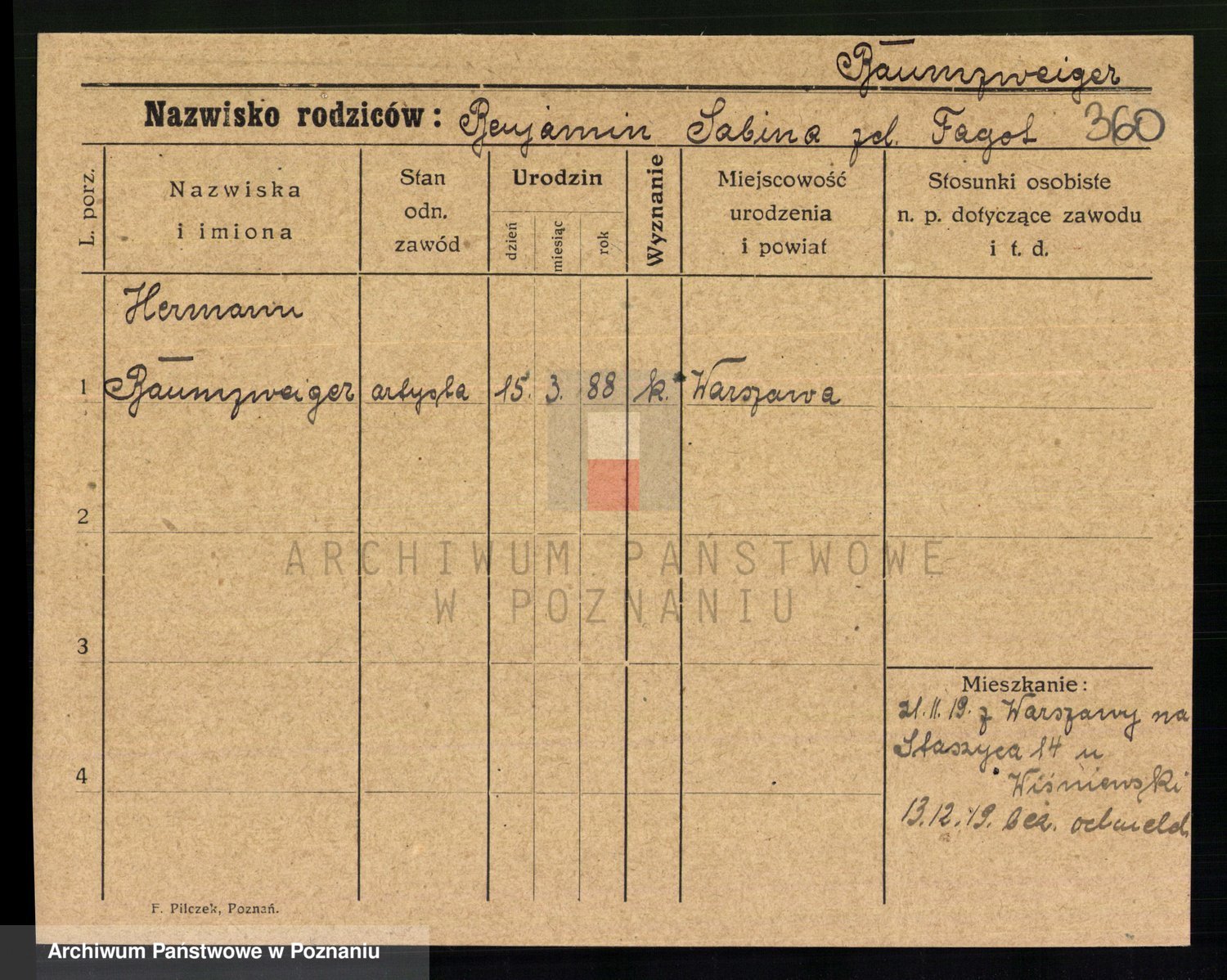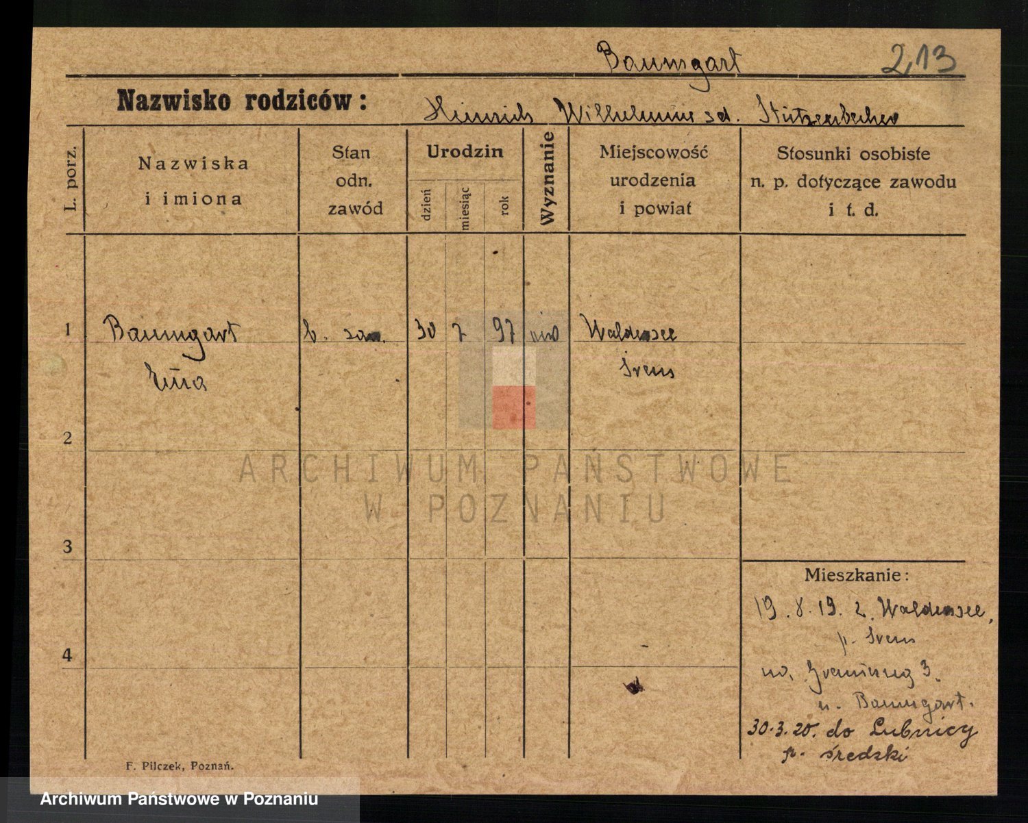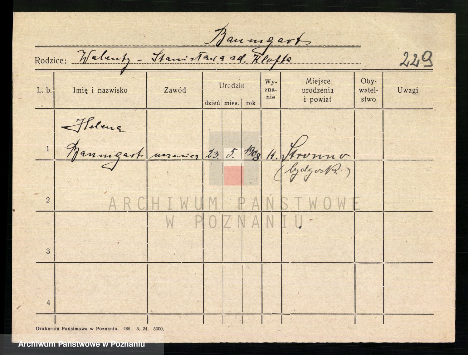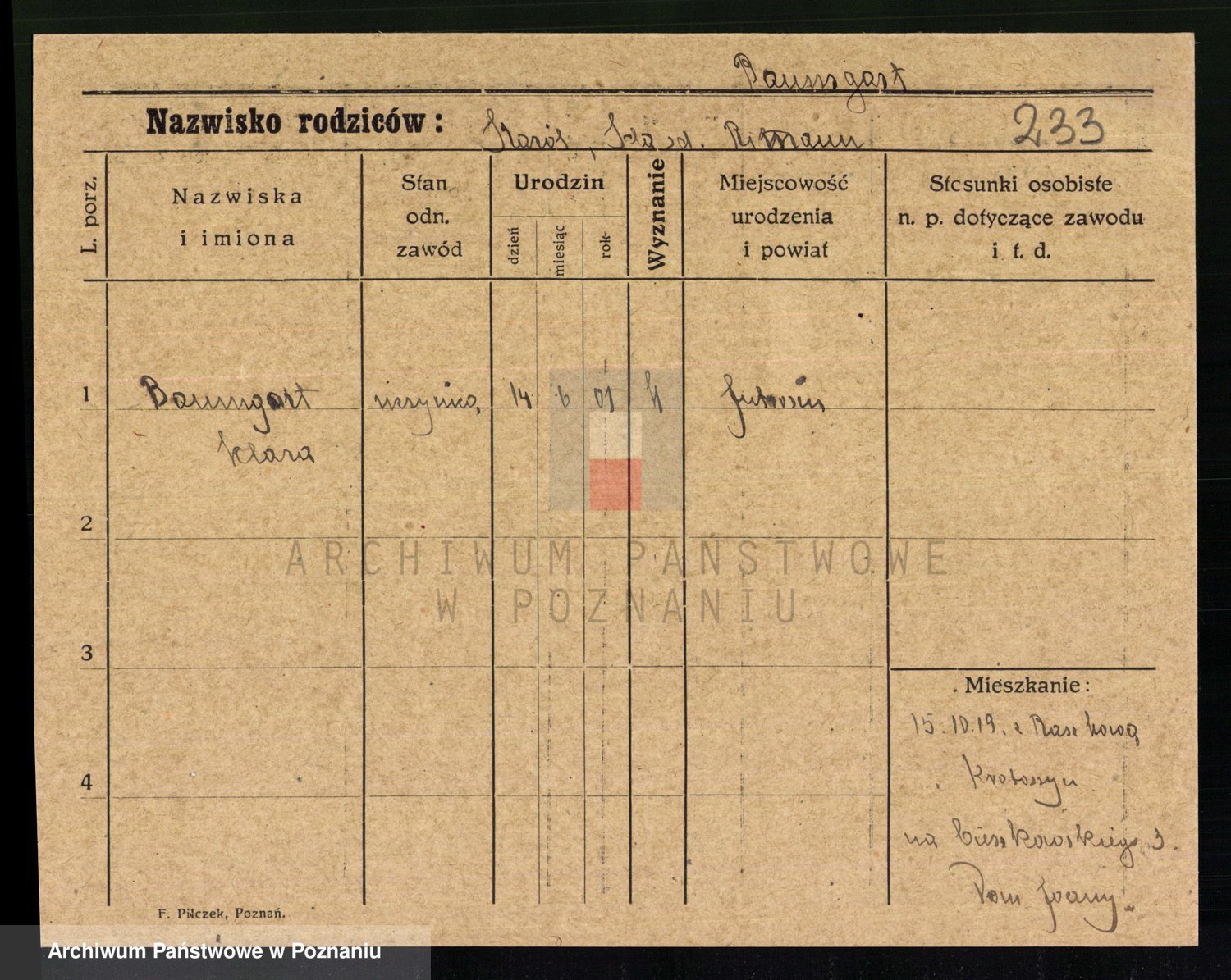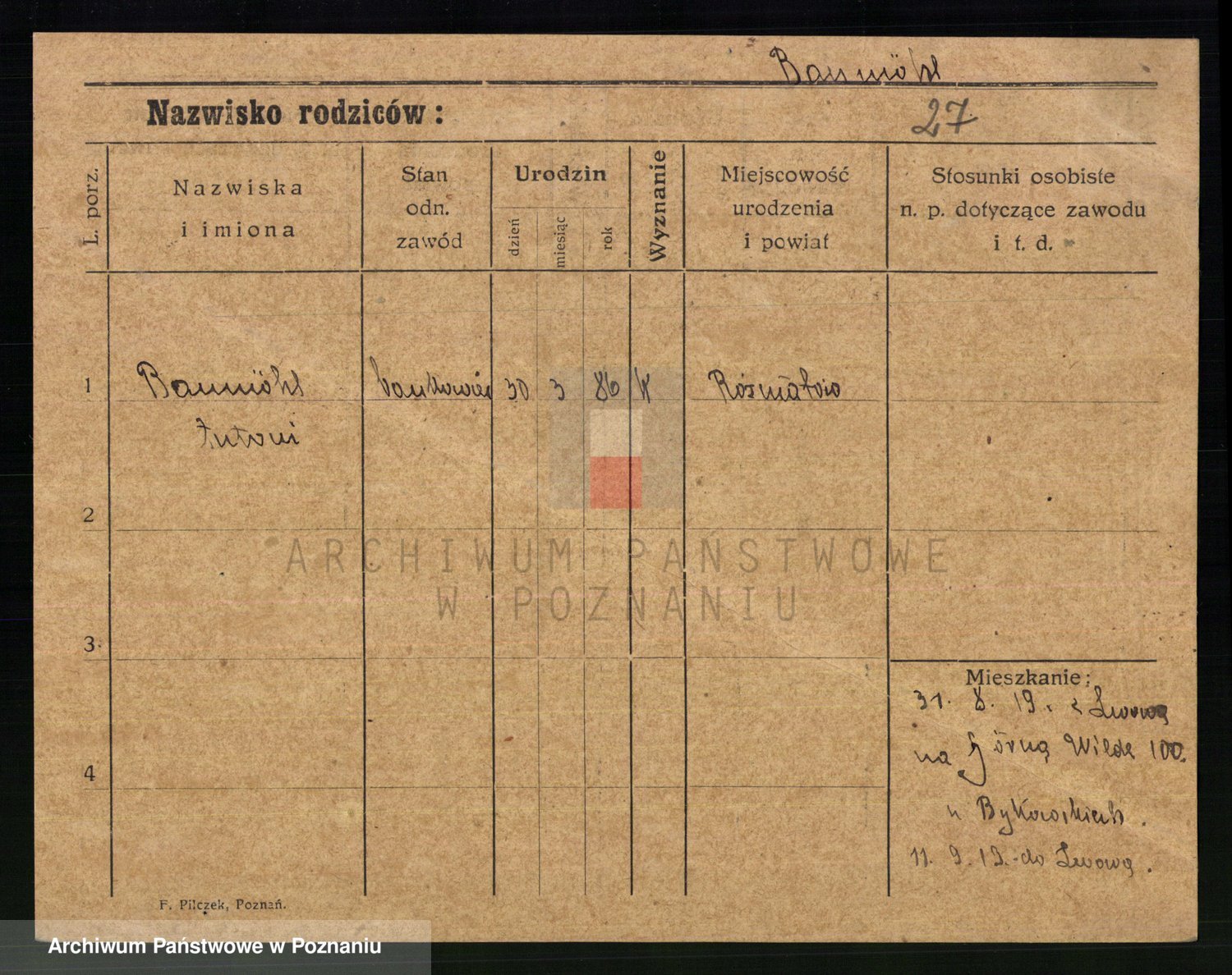 Baumeller zd. Stróżyńska, Sofie