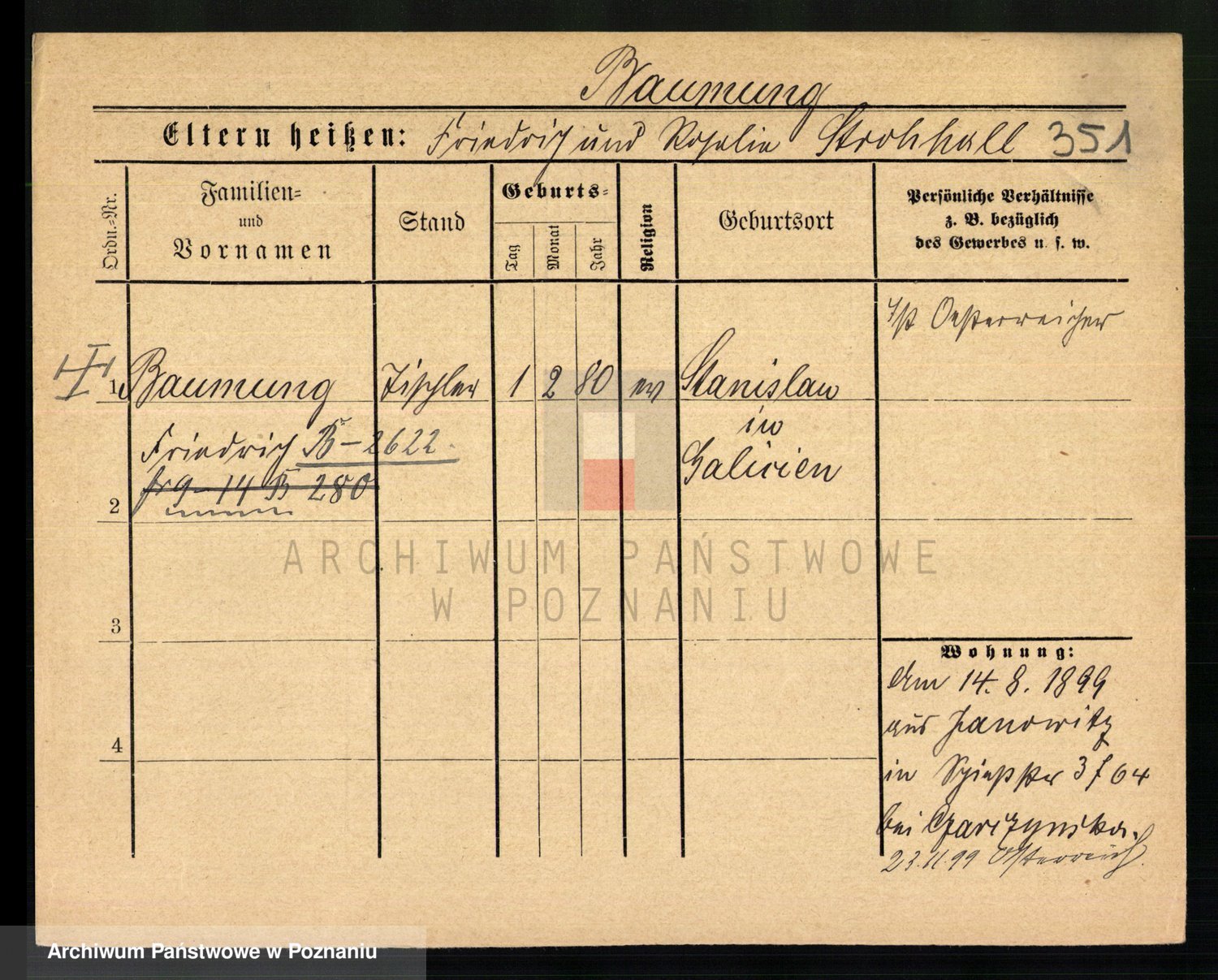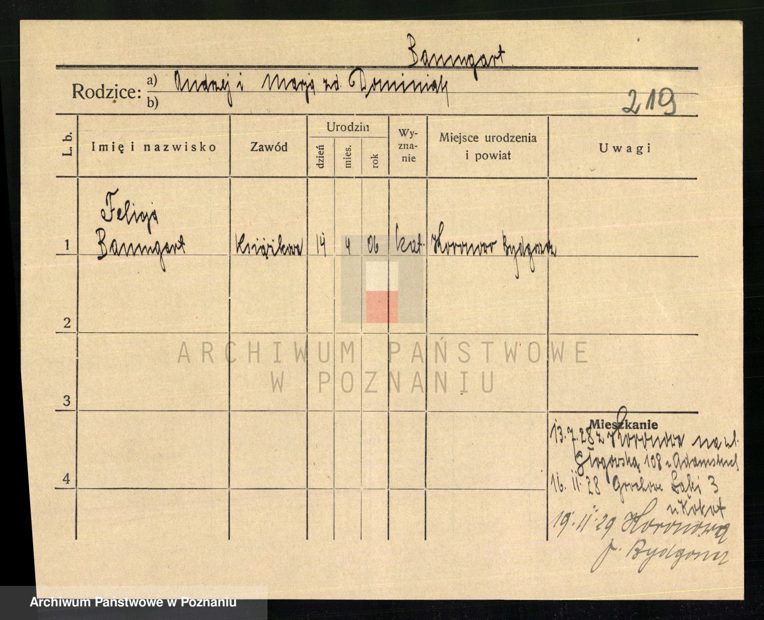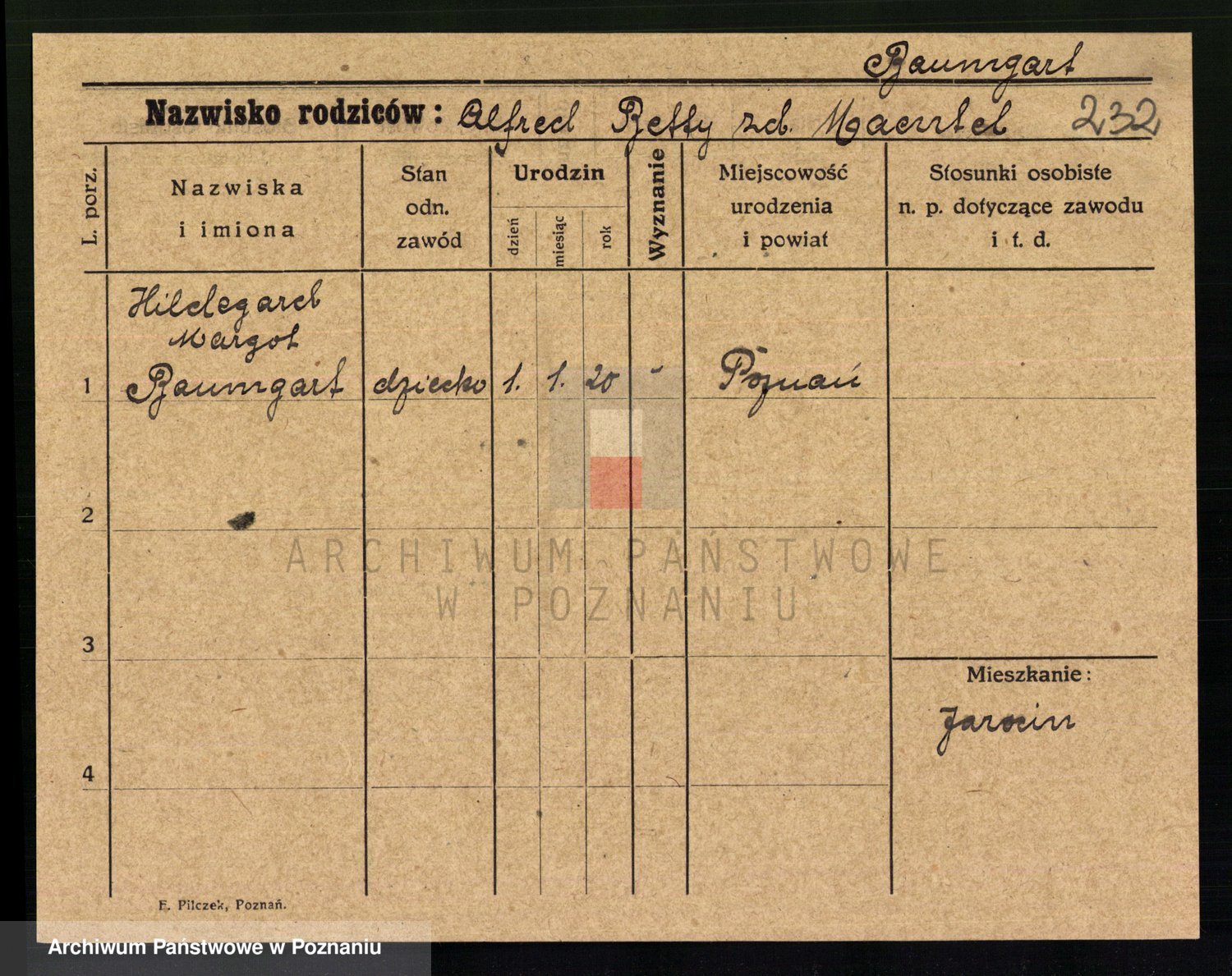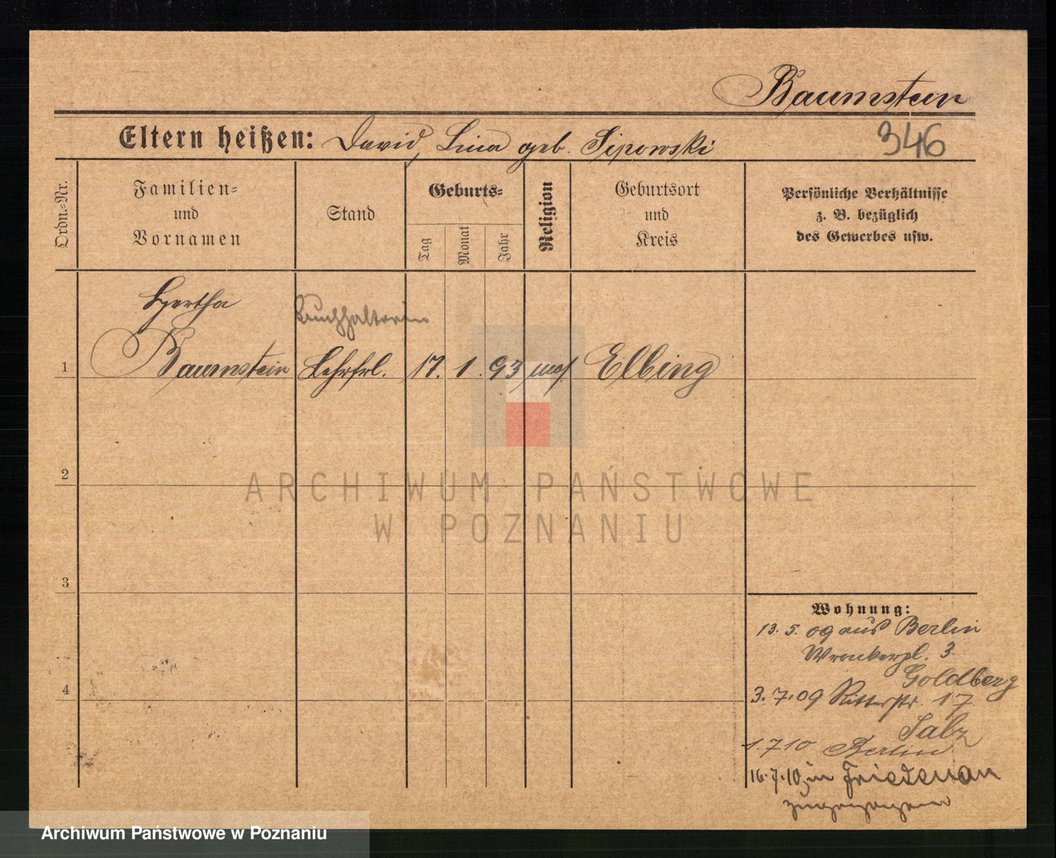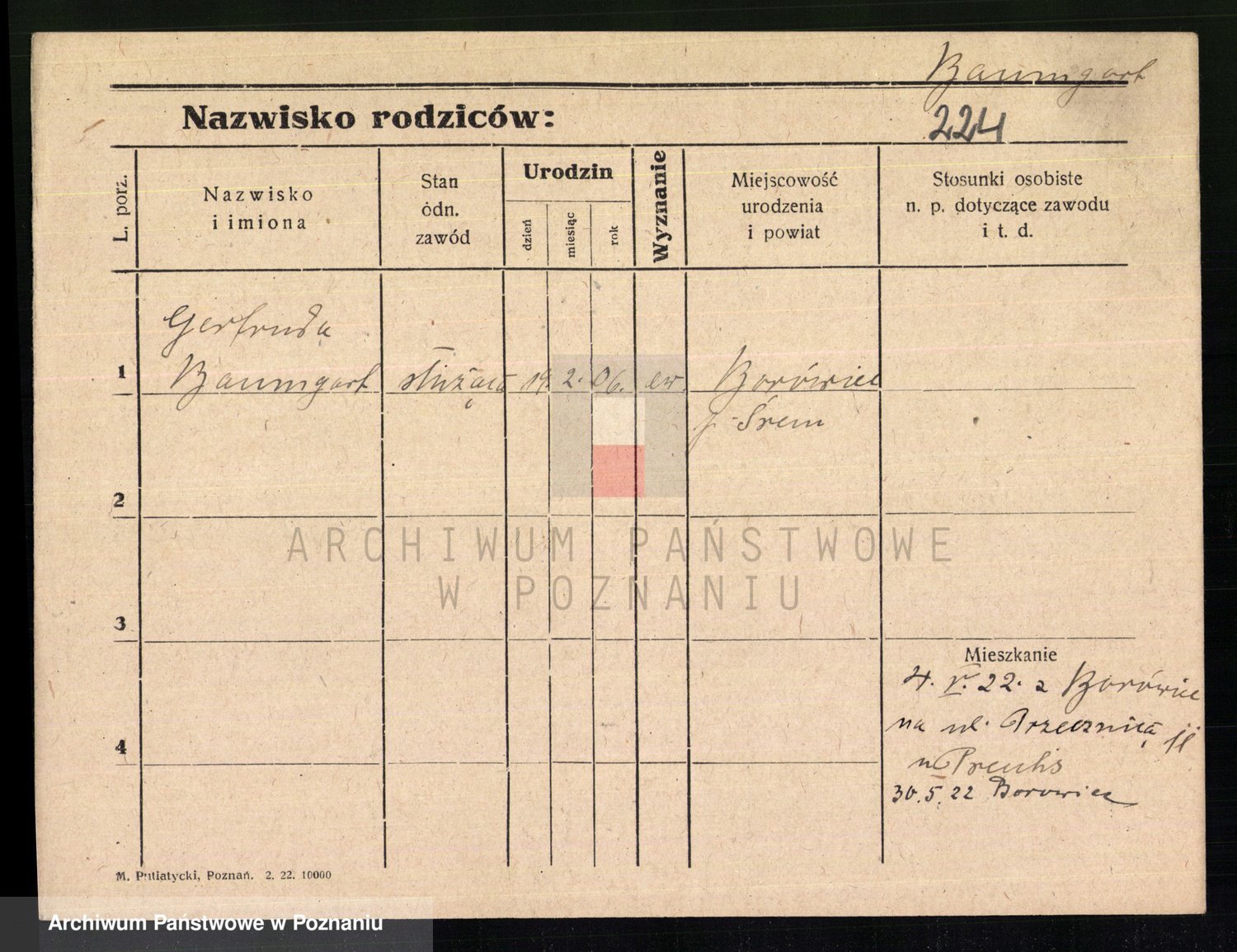 Baumeller zd. Stróżyńska, Sofie