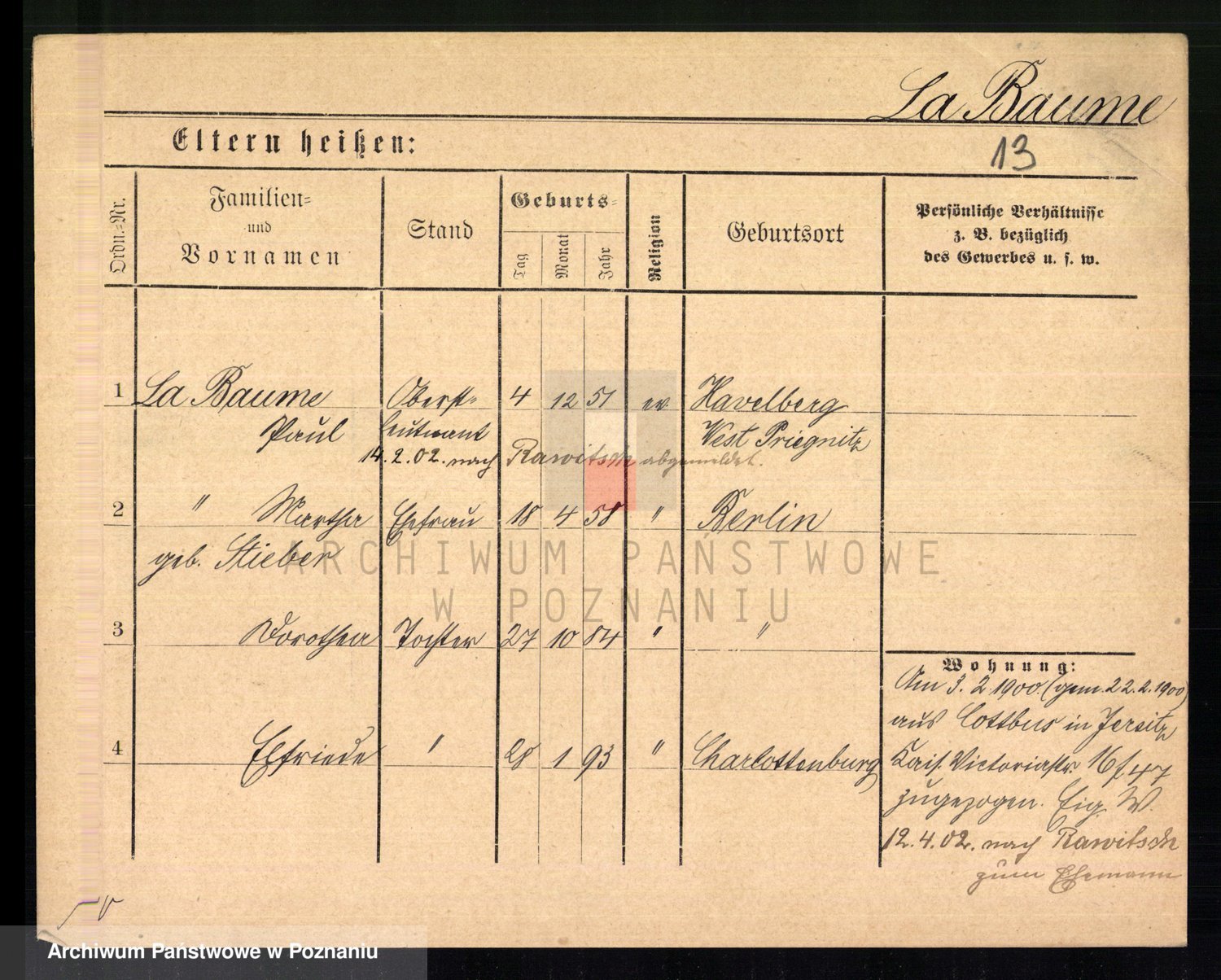 La Baume zd. Stolte, Margarethe Marta