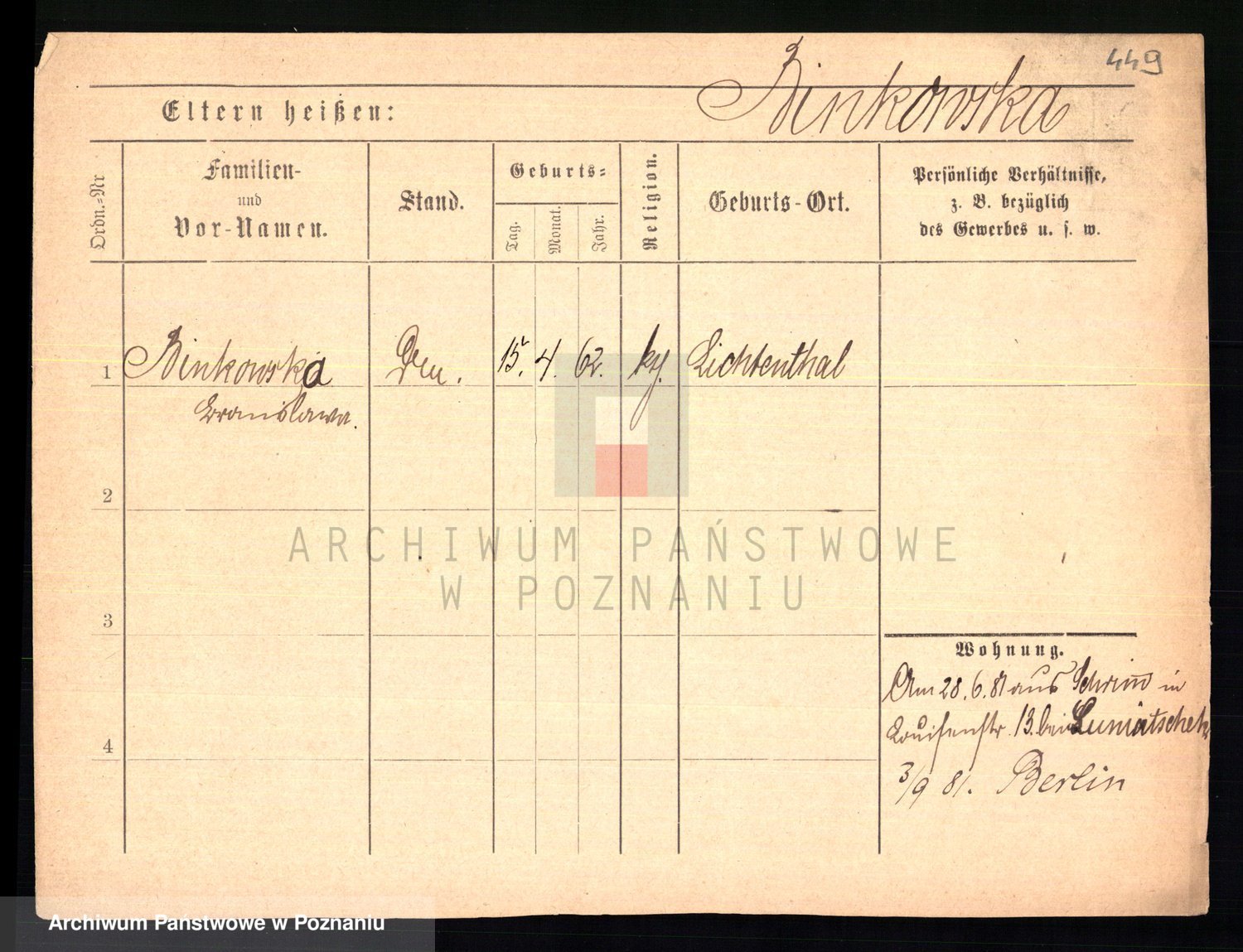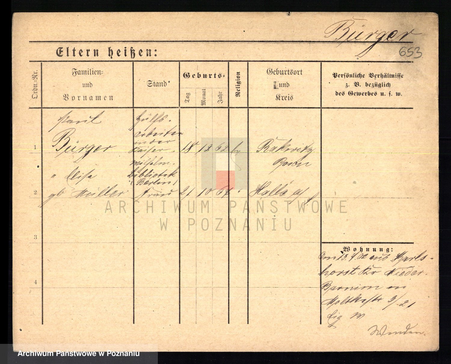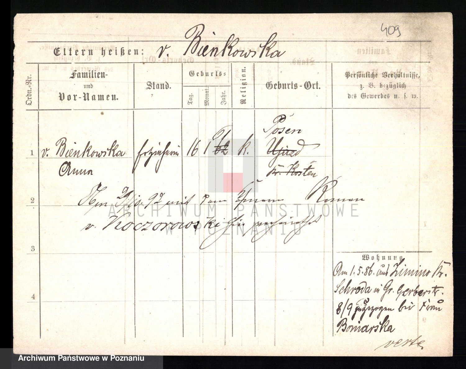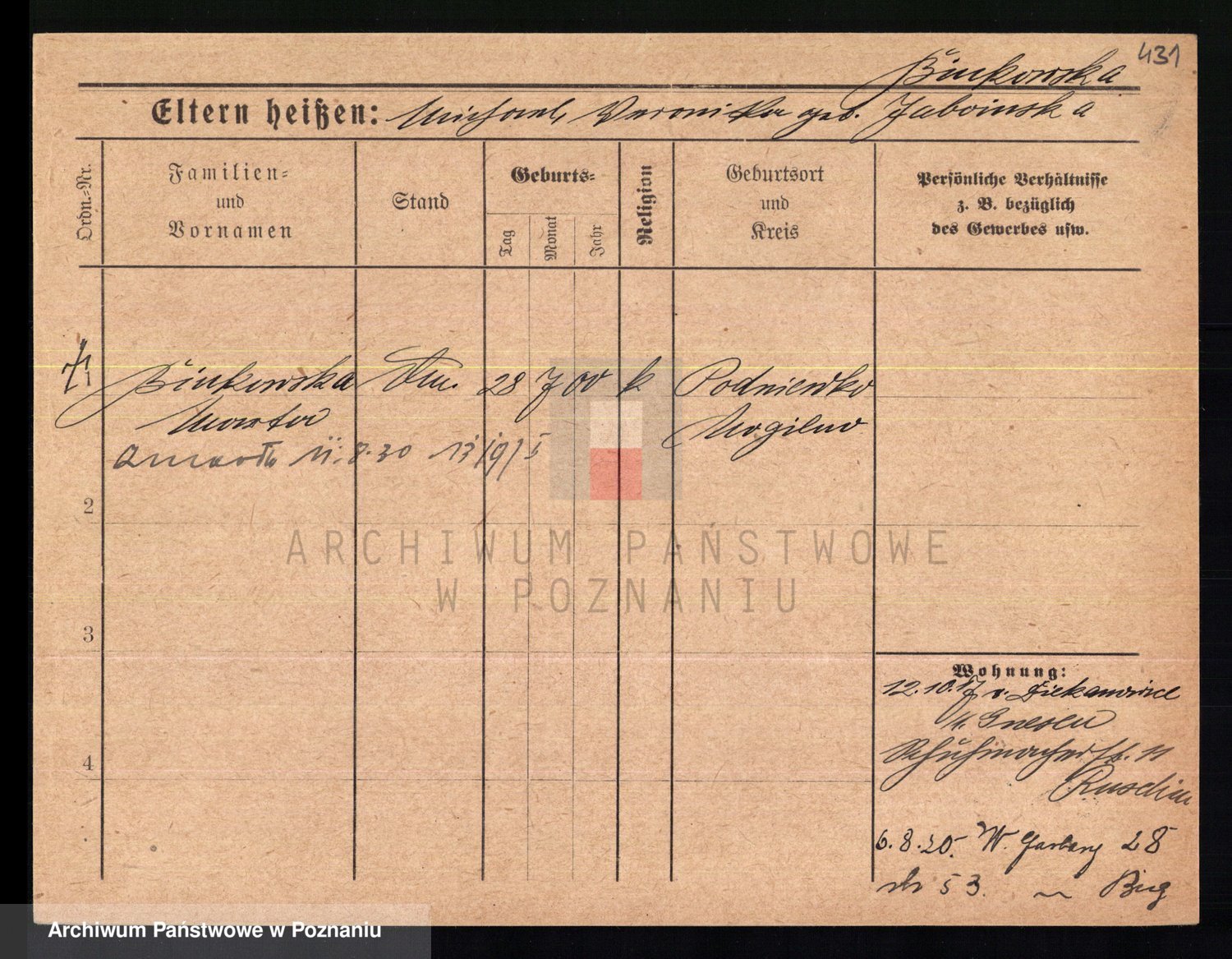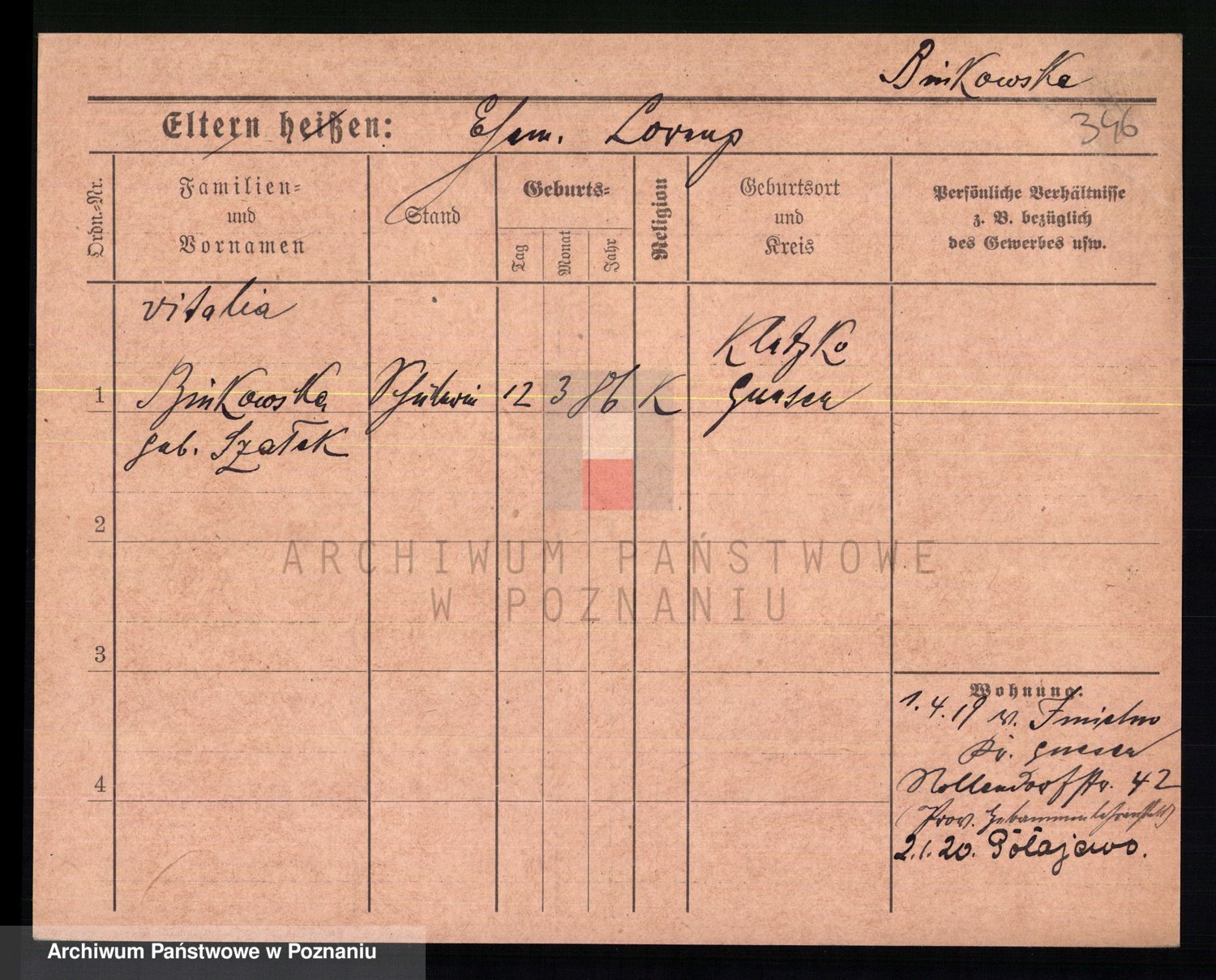 Bünger z d. Niedrig 1 voto Sporakowski, Karoline