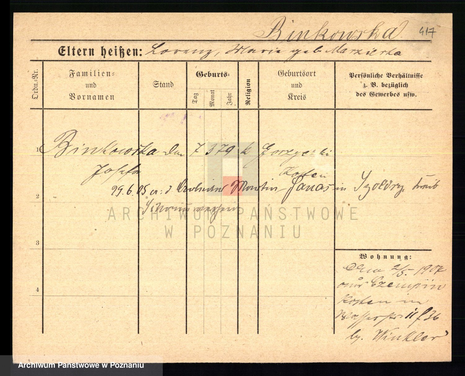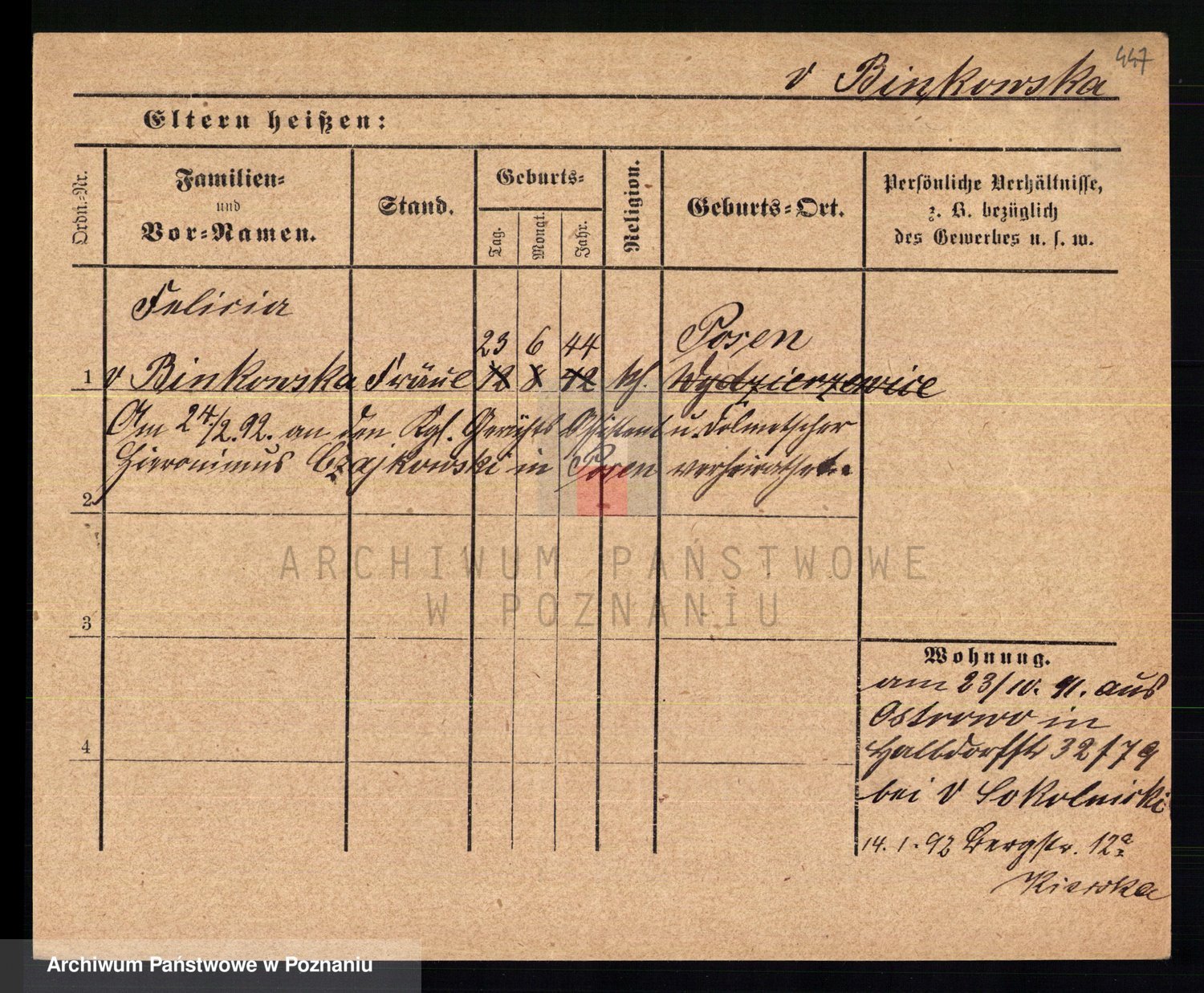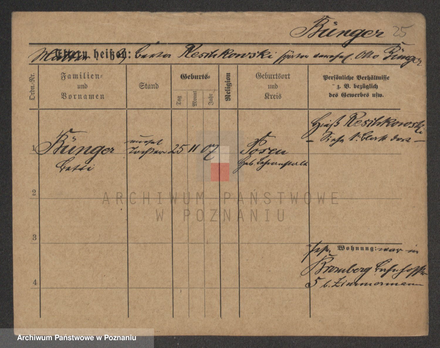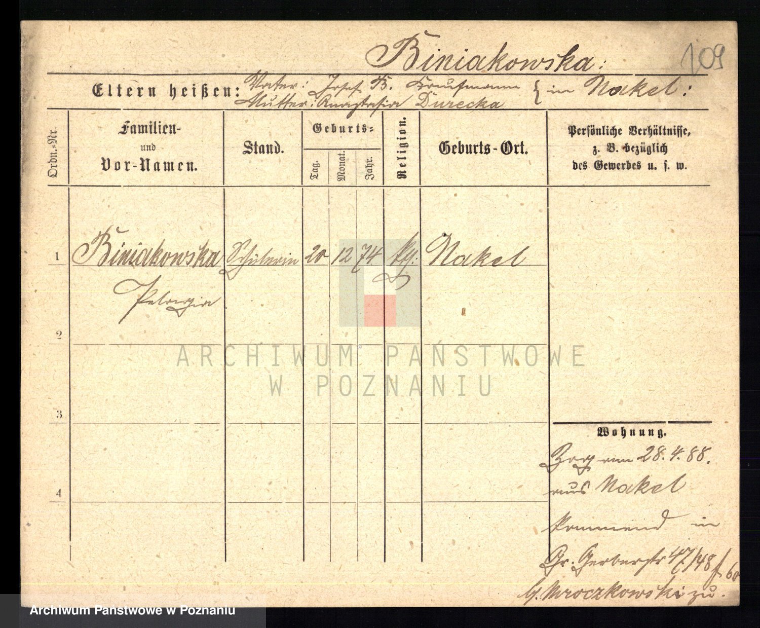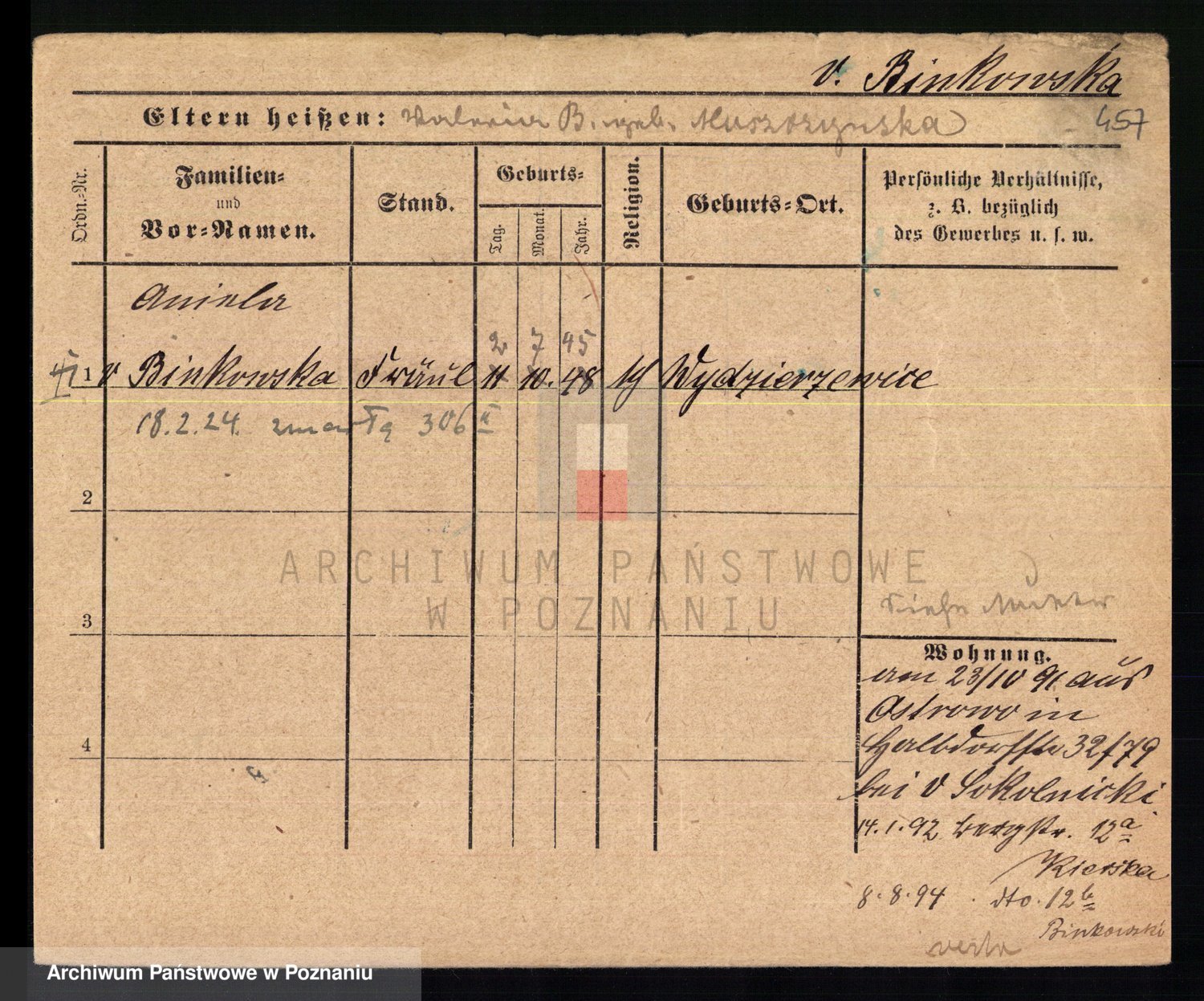 Bünger z d. Niedrig 1 voto Sporakowski, Karoline