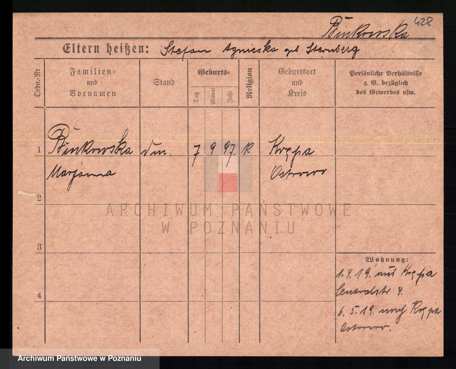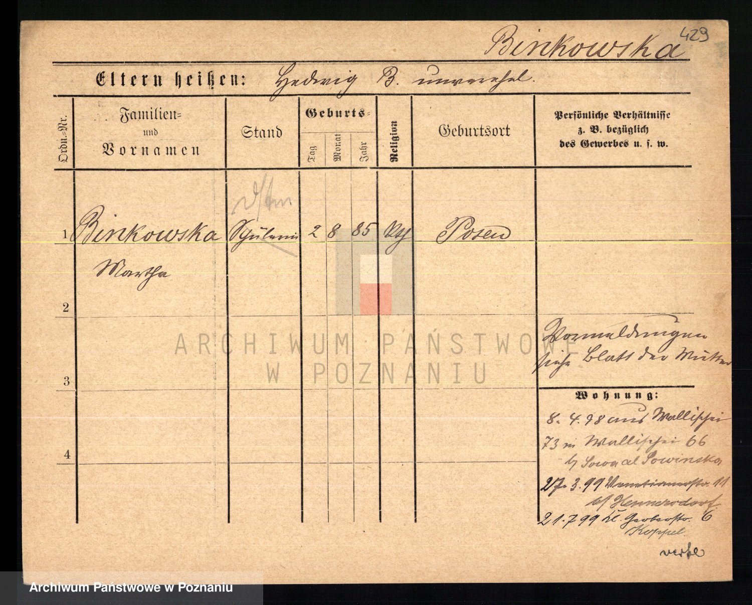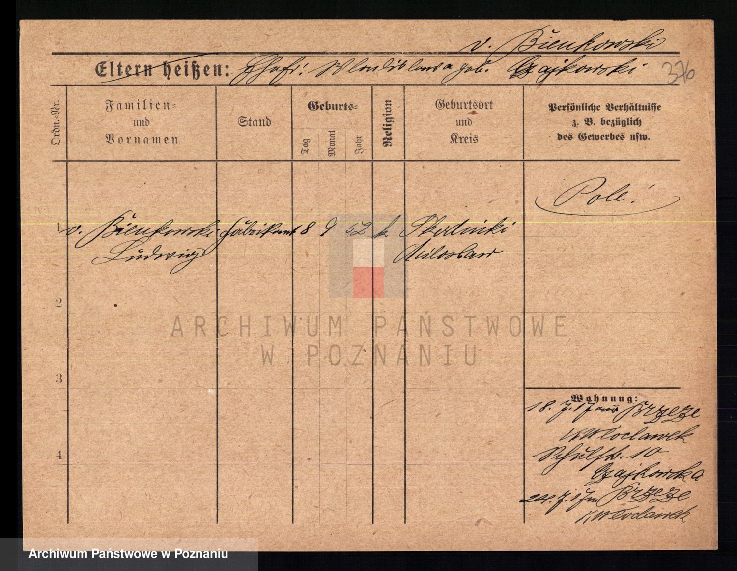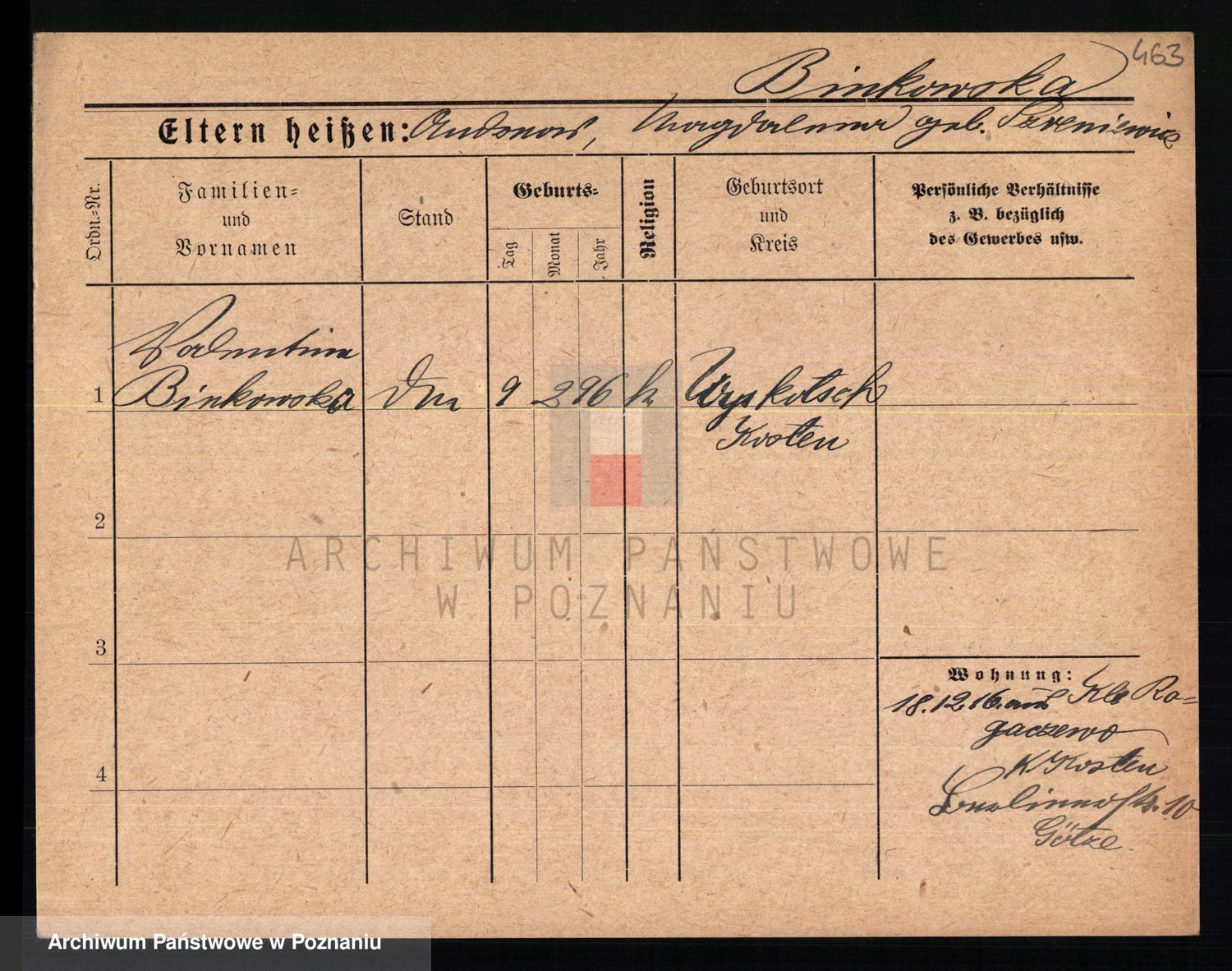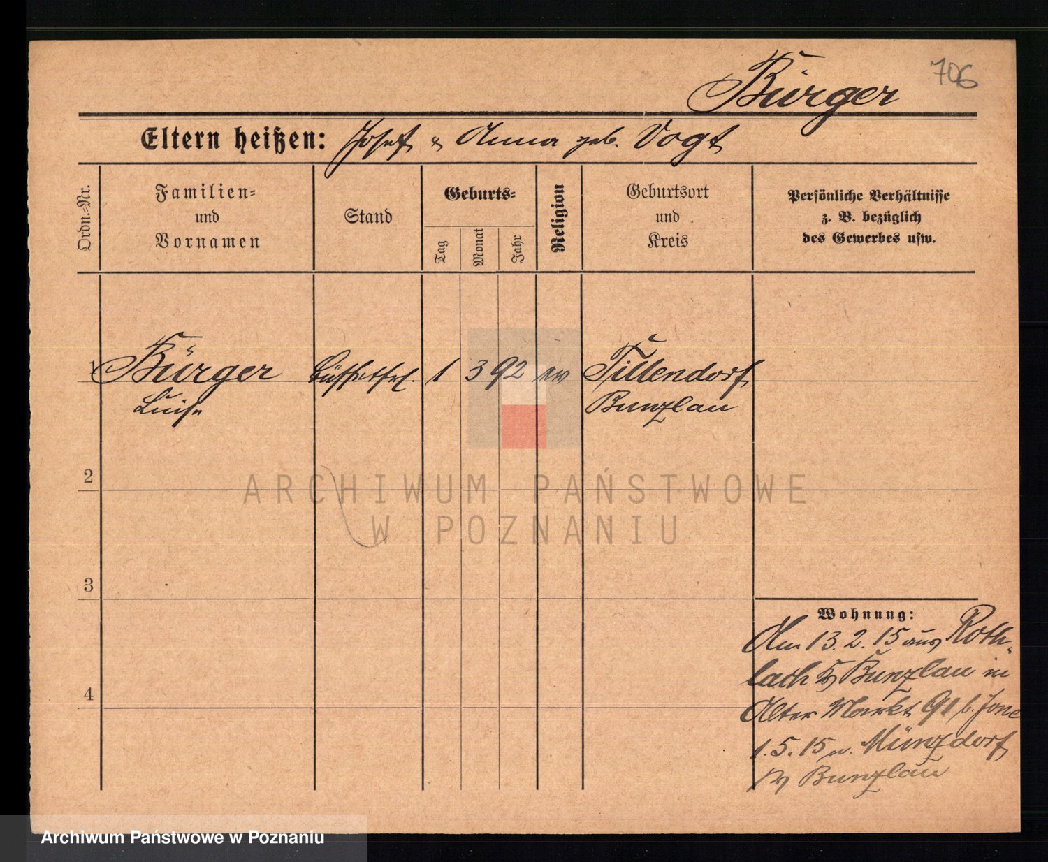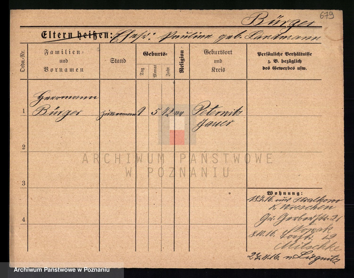 Bünger z d. Niedrig 1 voto Sporakowski, Karoline