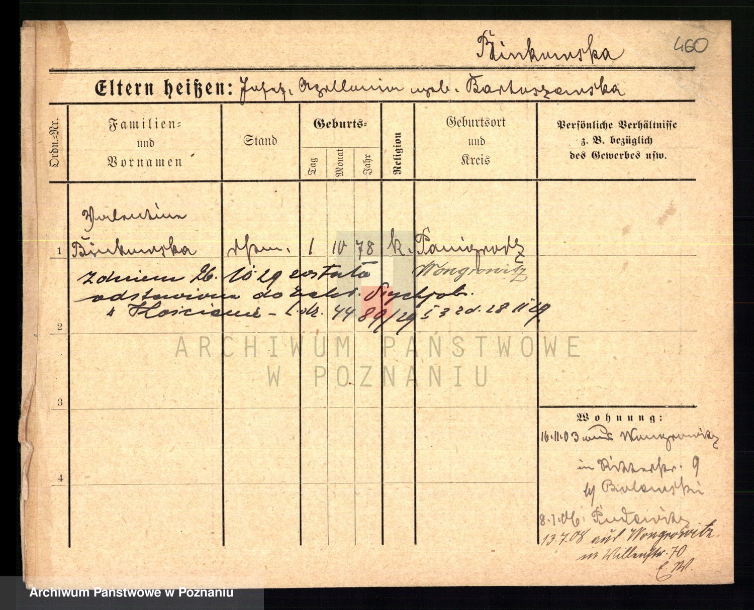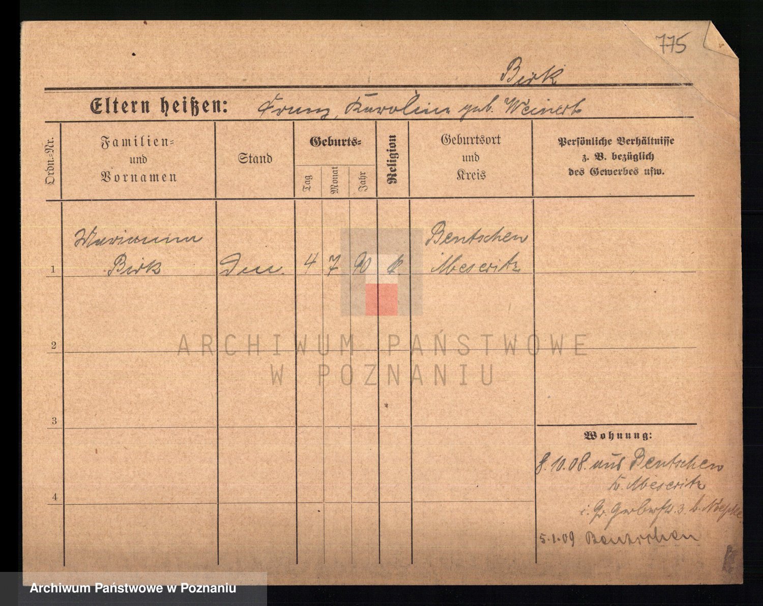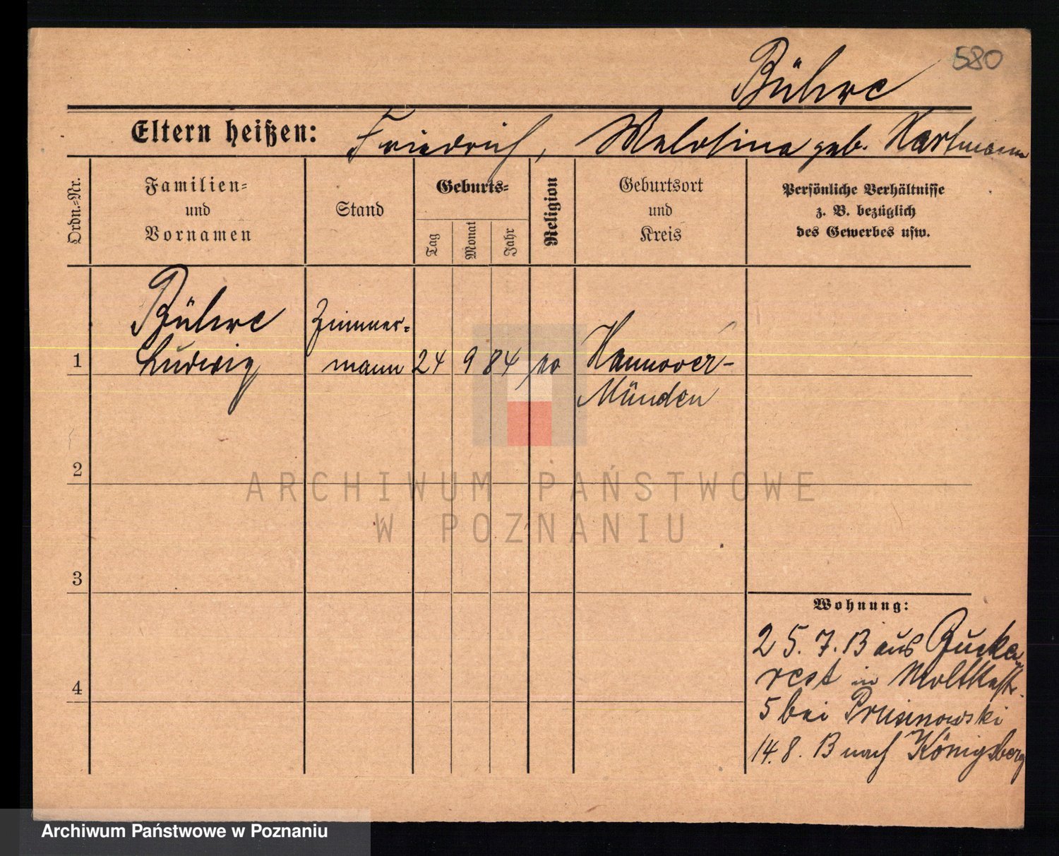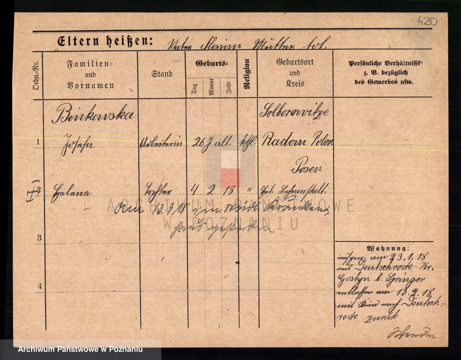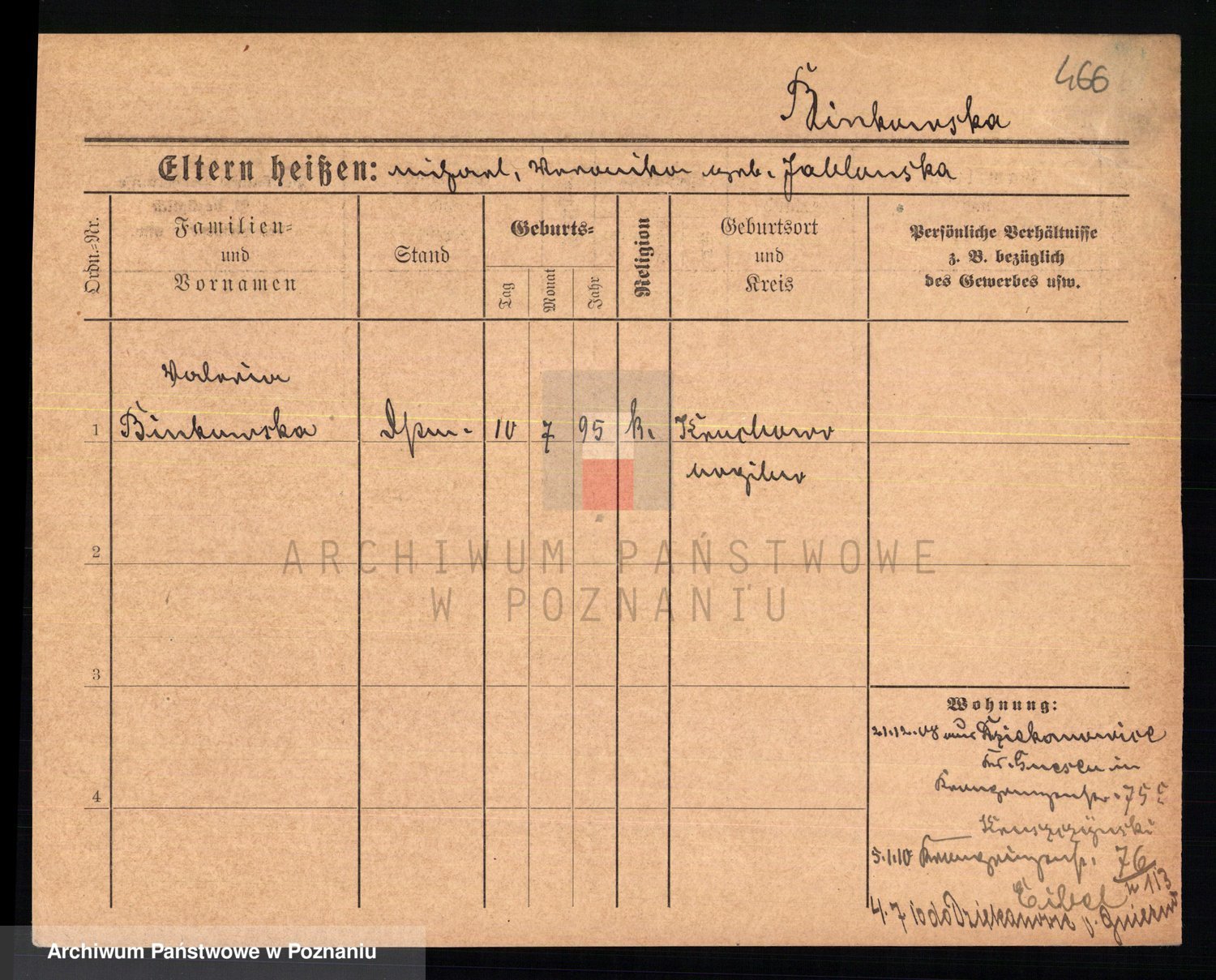 Bünger z d. Niedrig 1 voto Sporakowski, Karoline