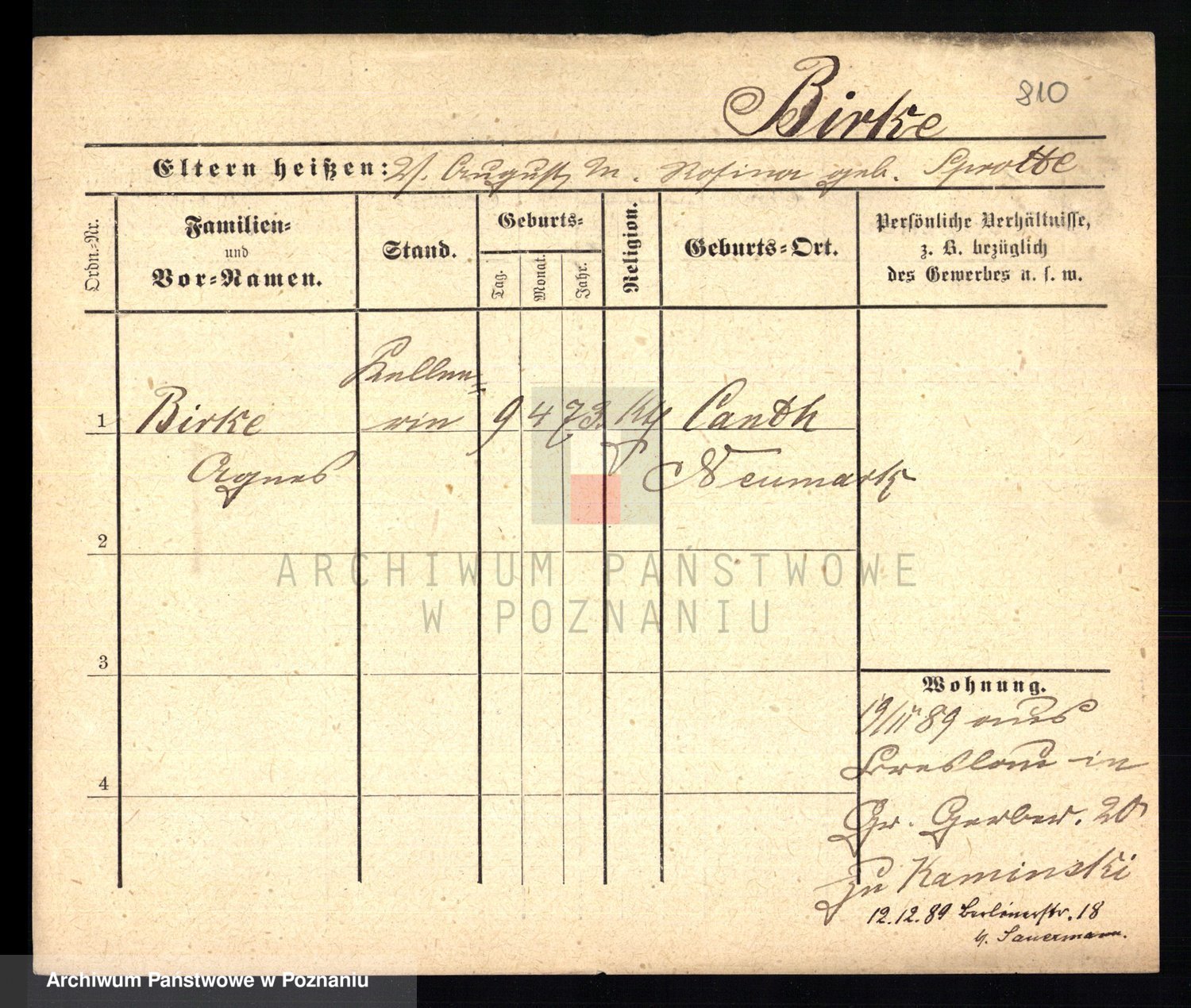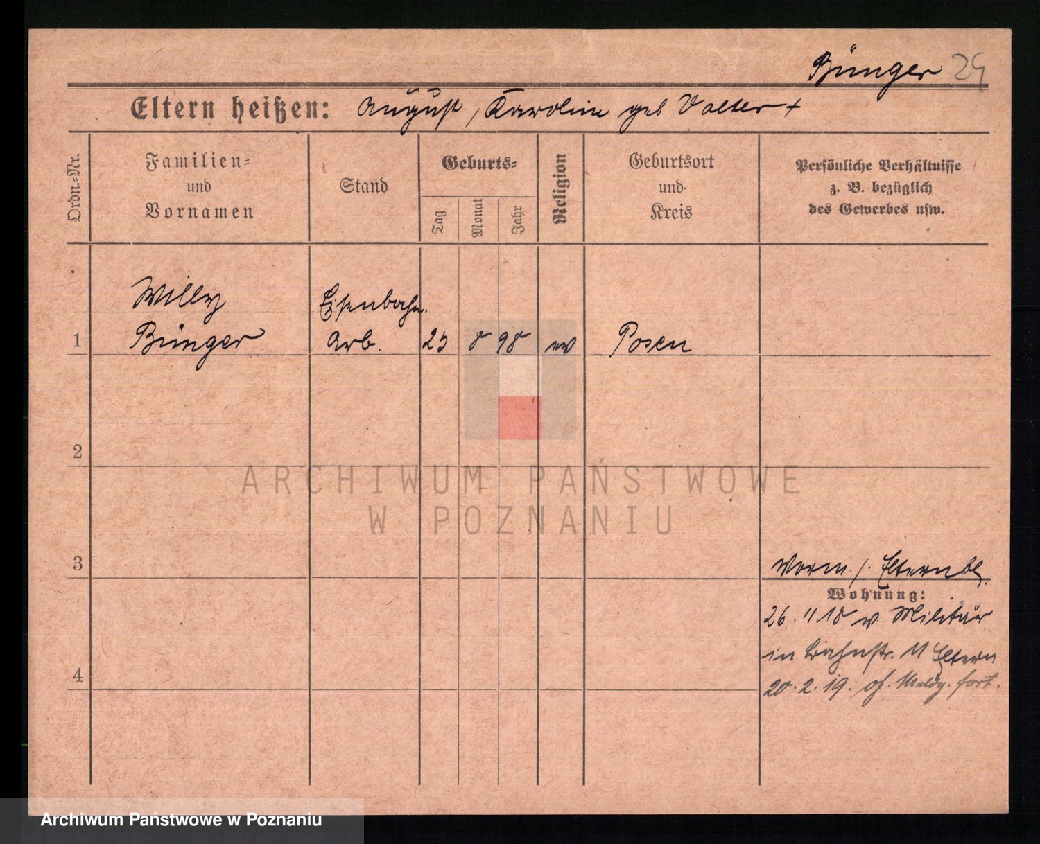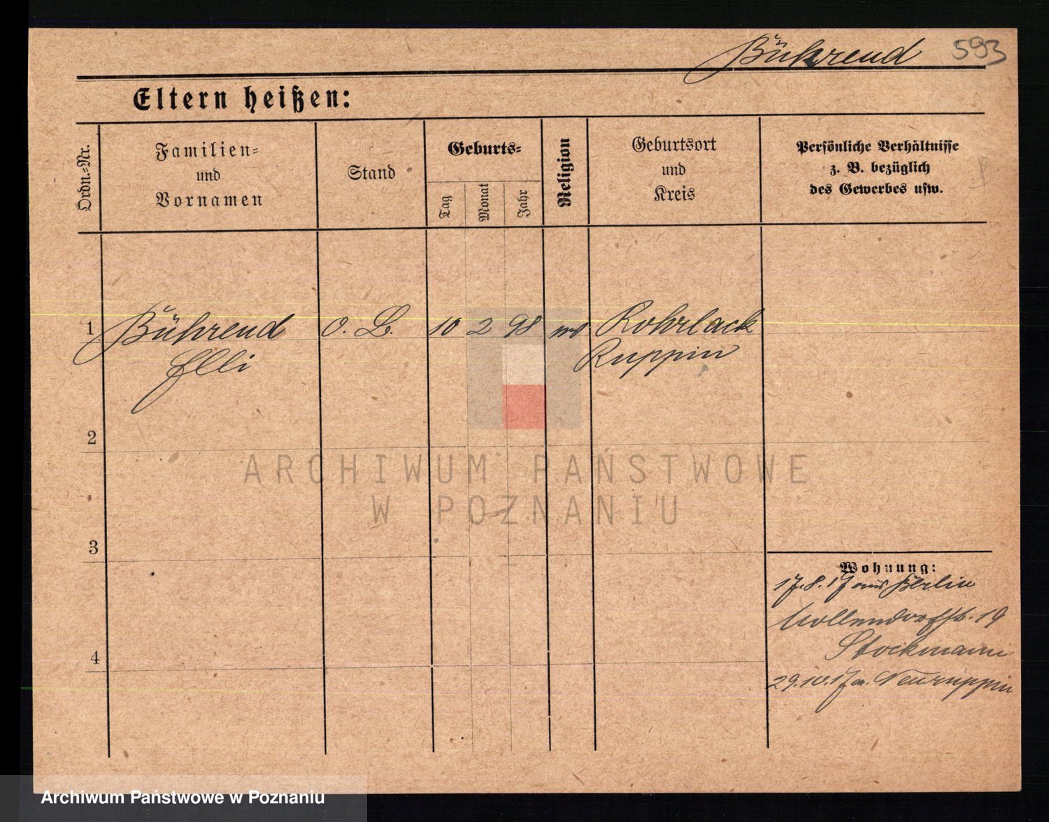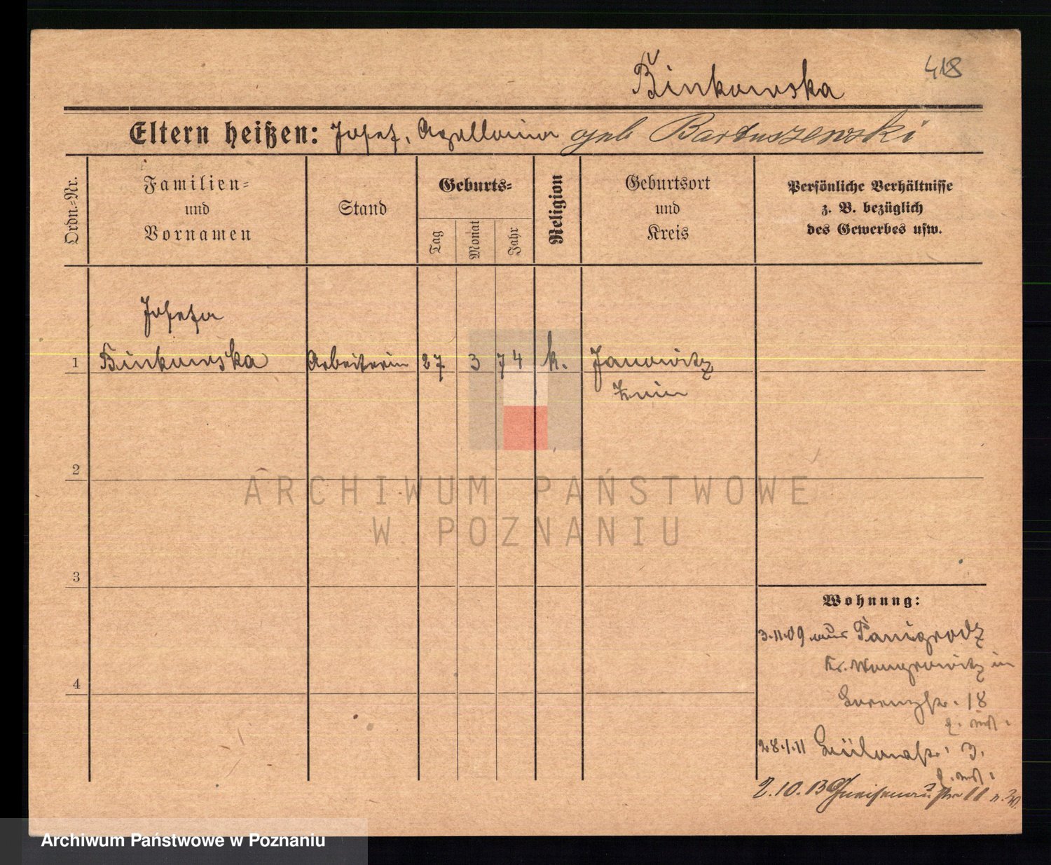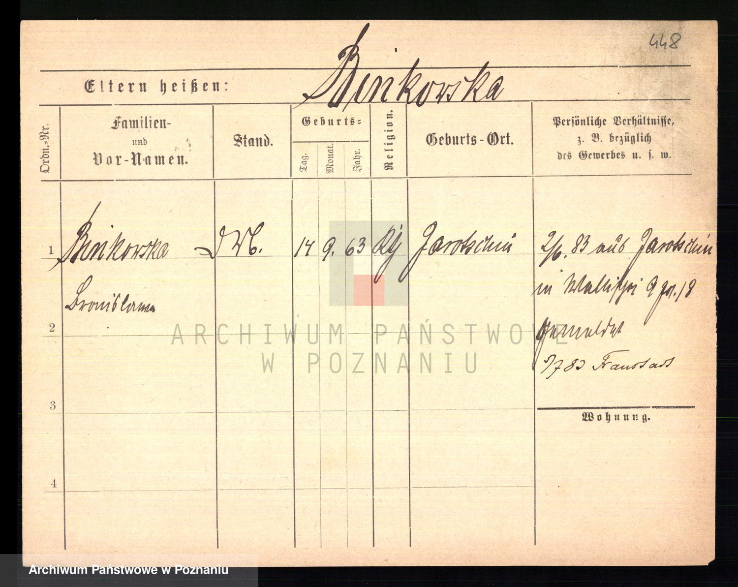 Bünger z d. Niedrig 1 voto Sporakowski, Karoline