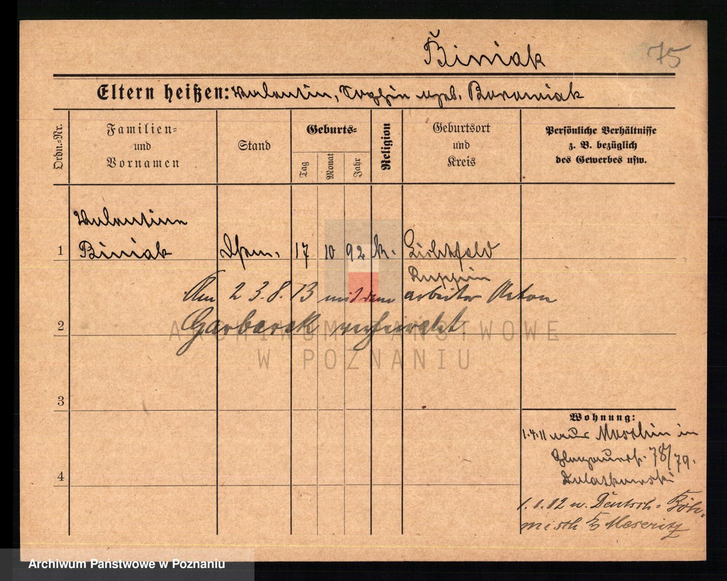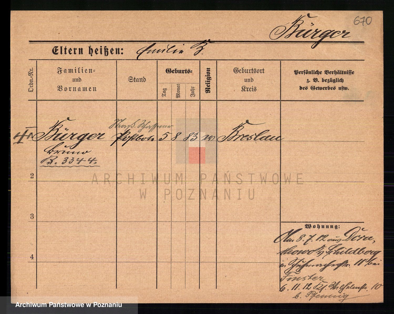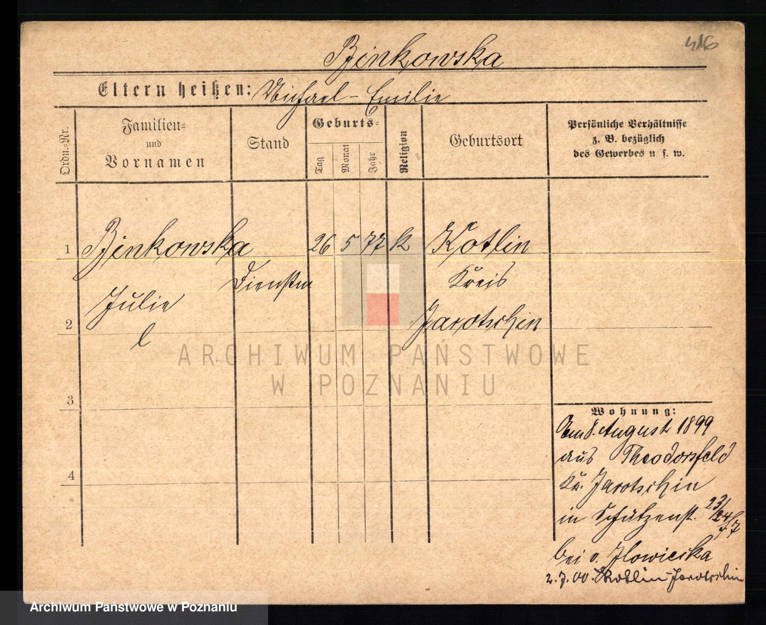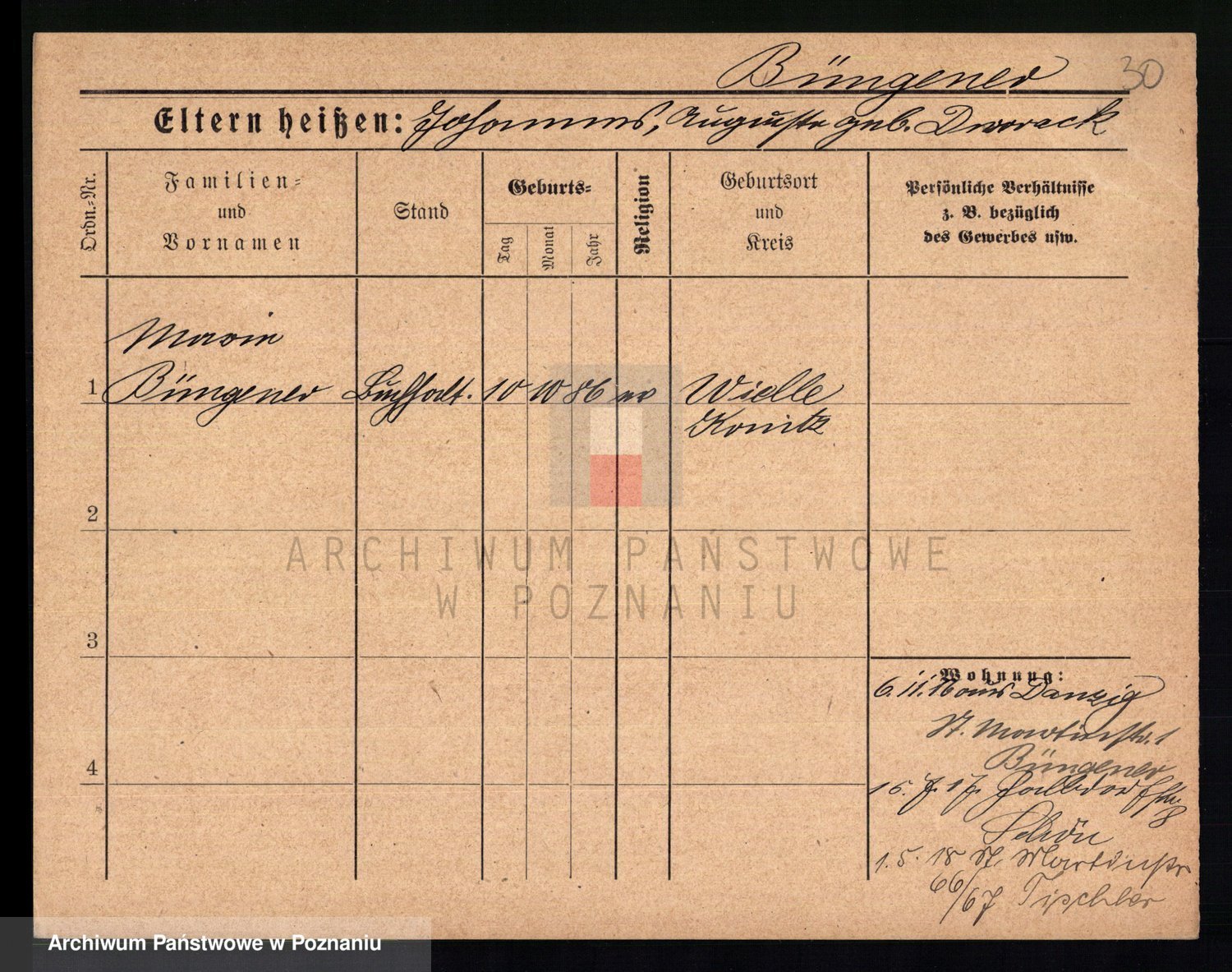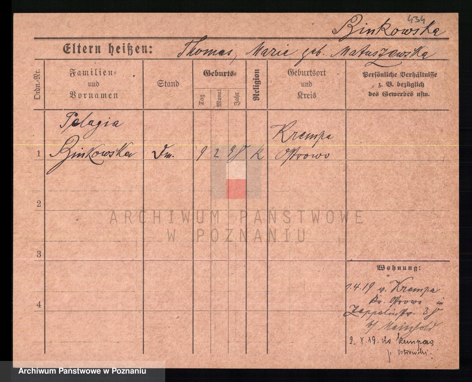 Bünger z d. Niedrig 1 voto Sporakowski, Karoline