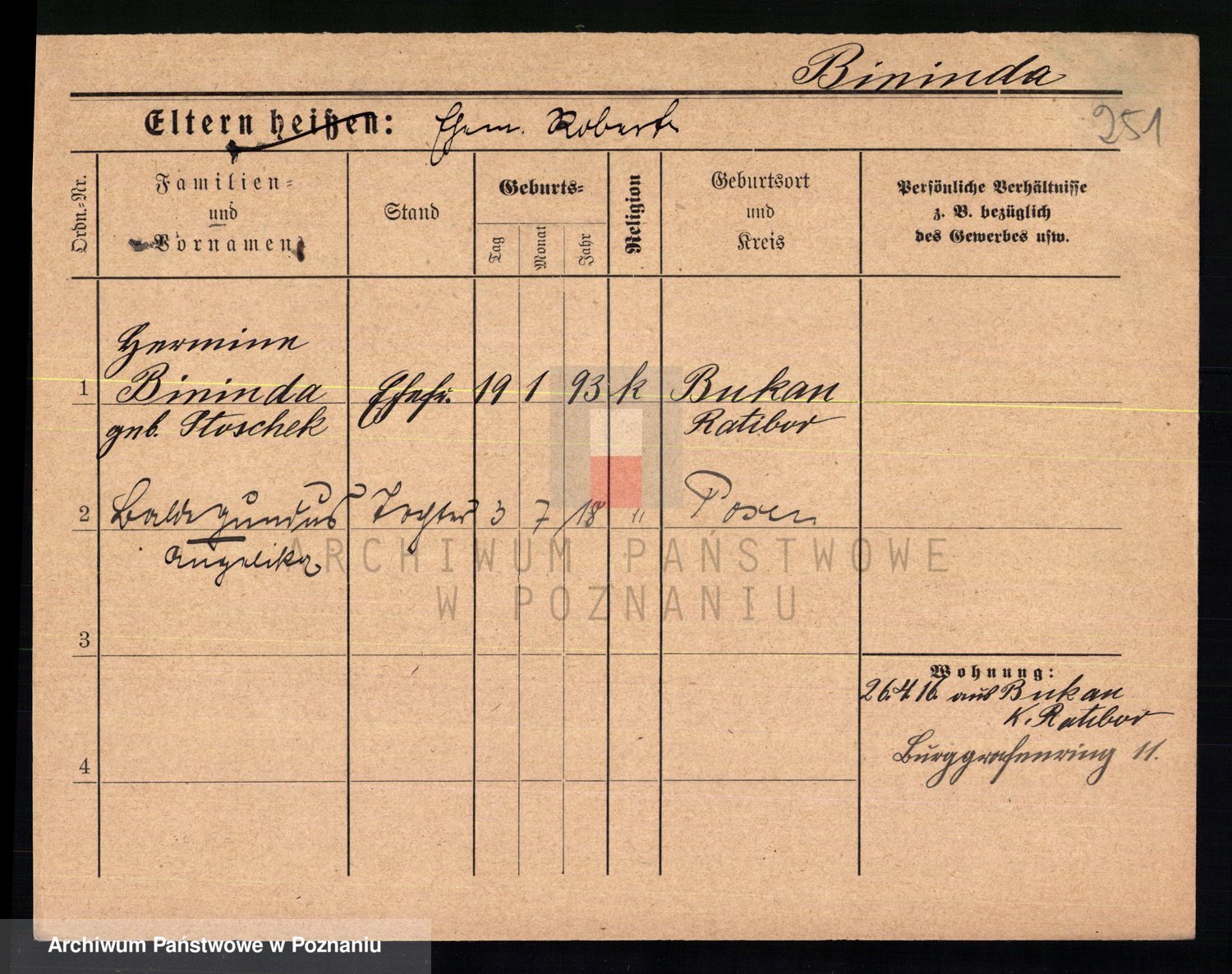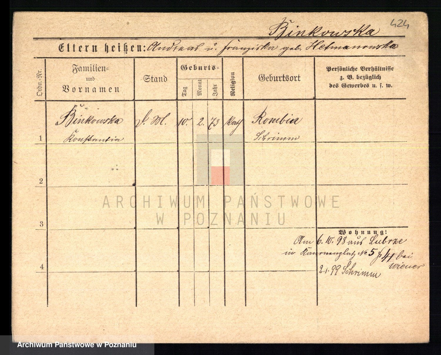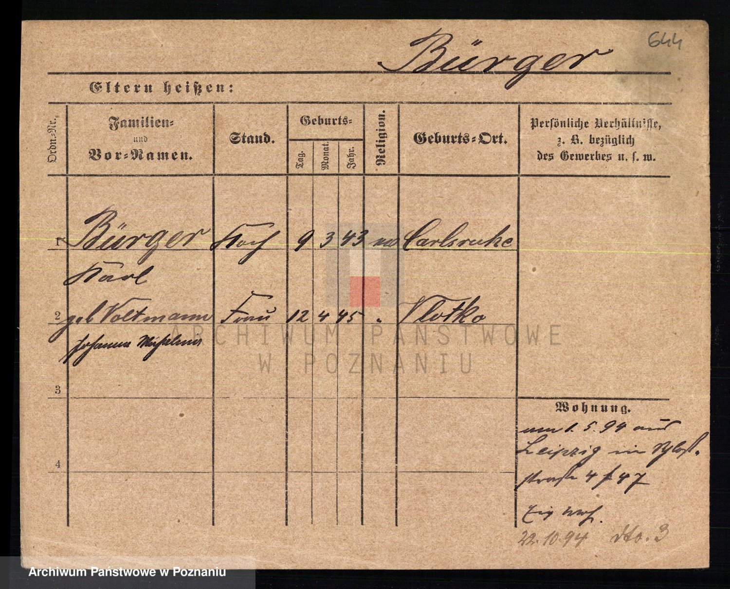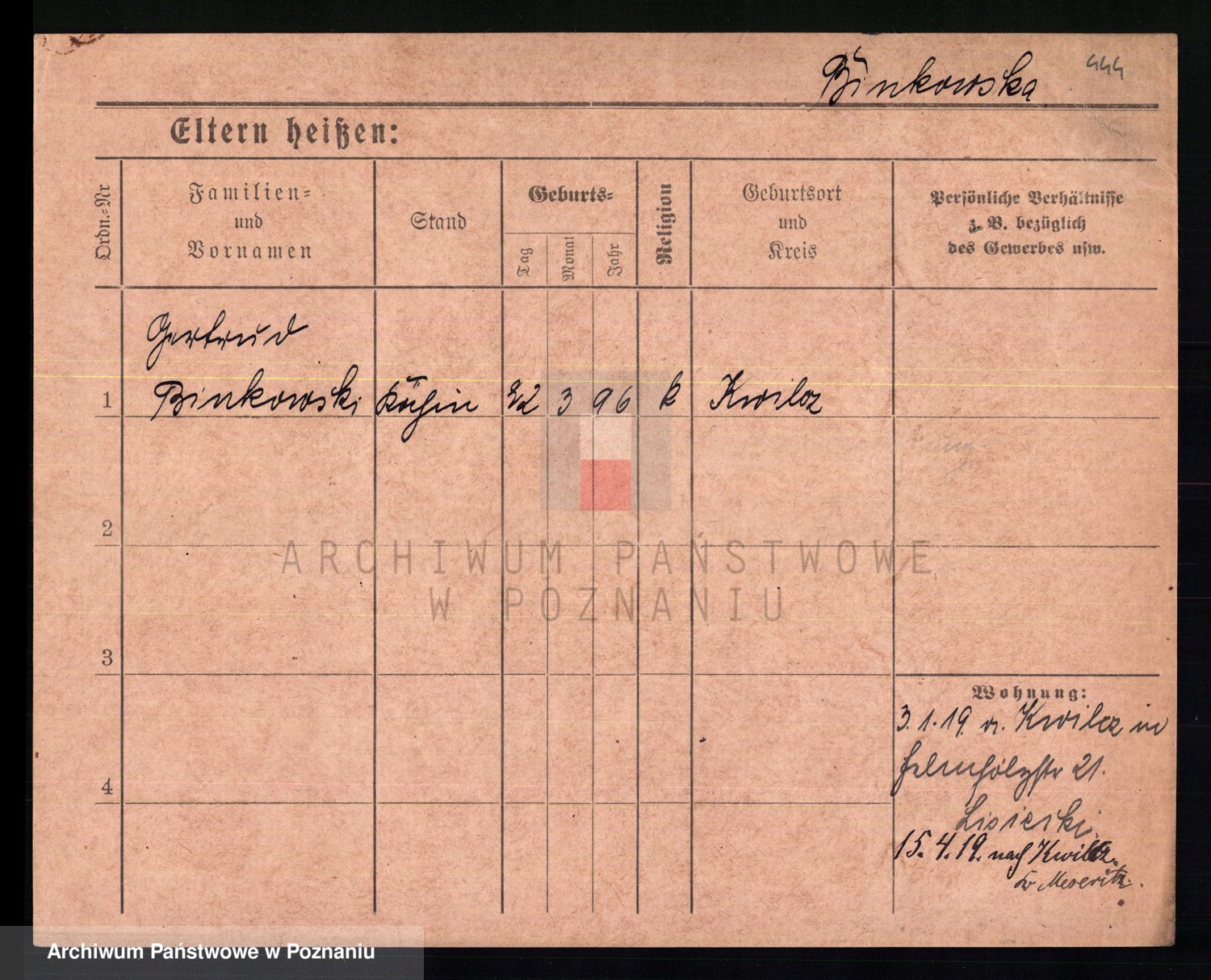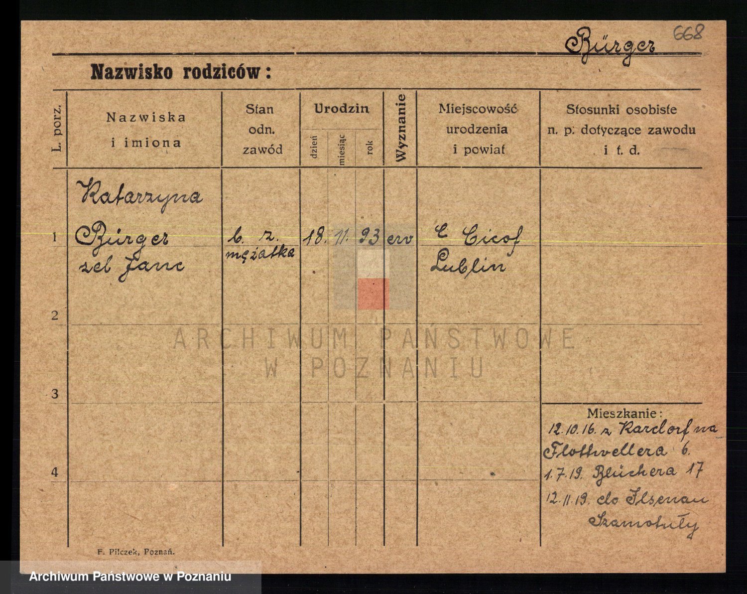 Bünger z d. Niedrig 1 voto Sporakowski, Karoline