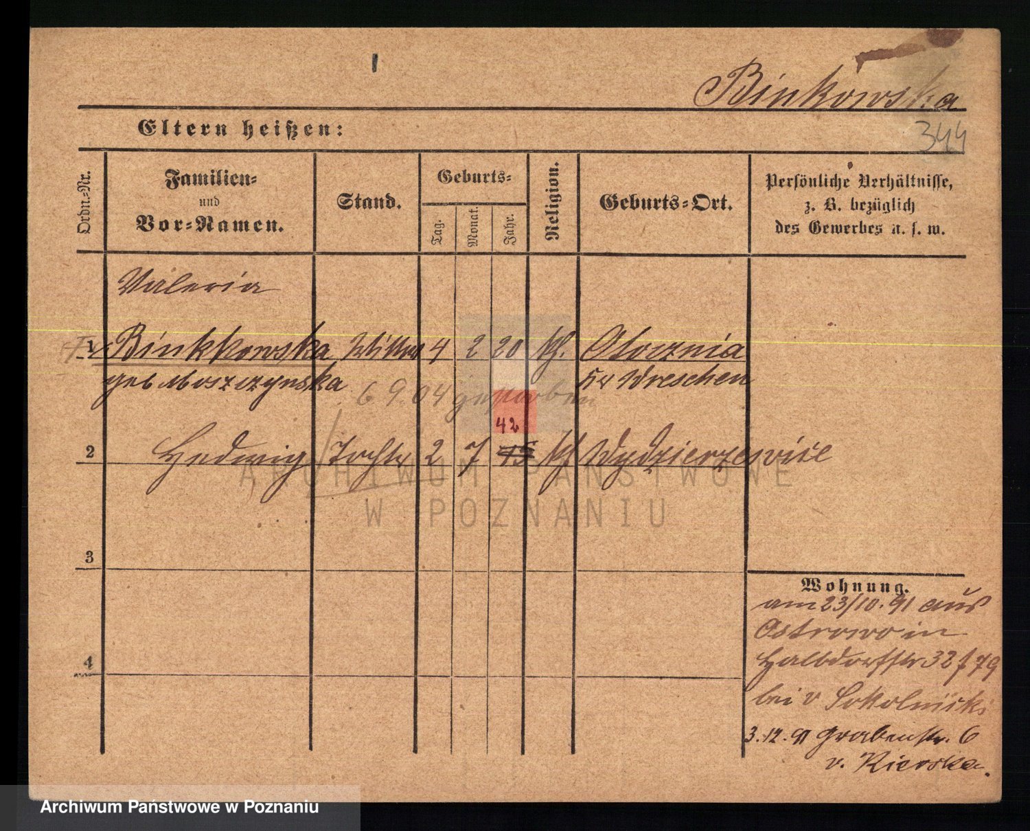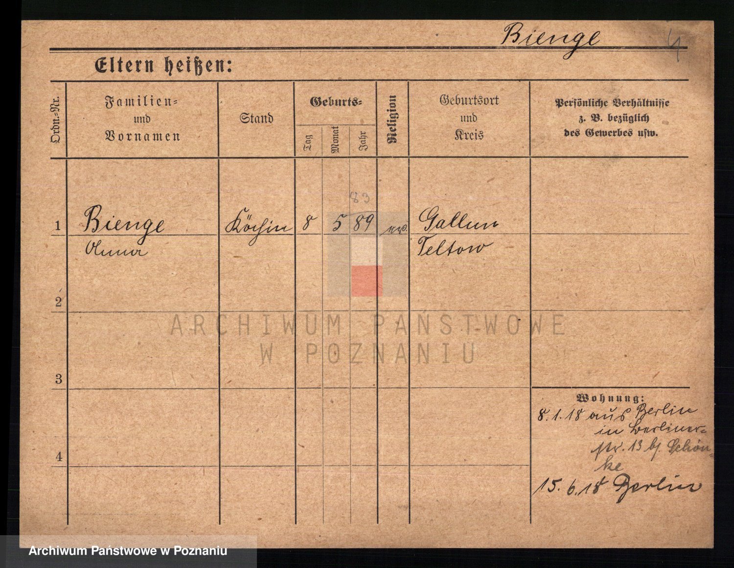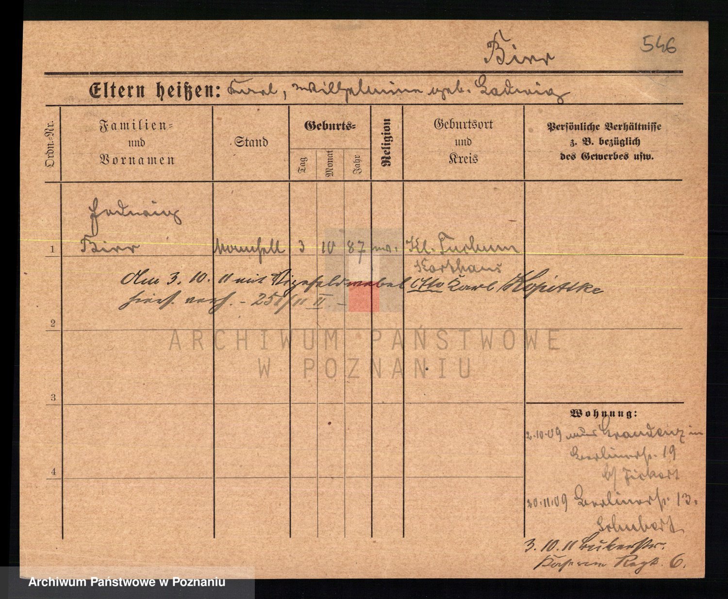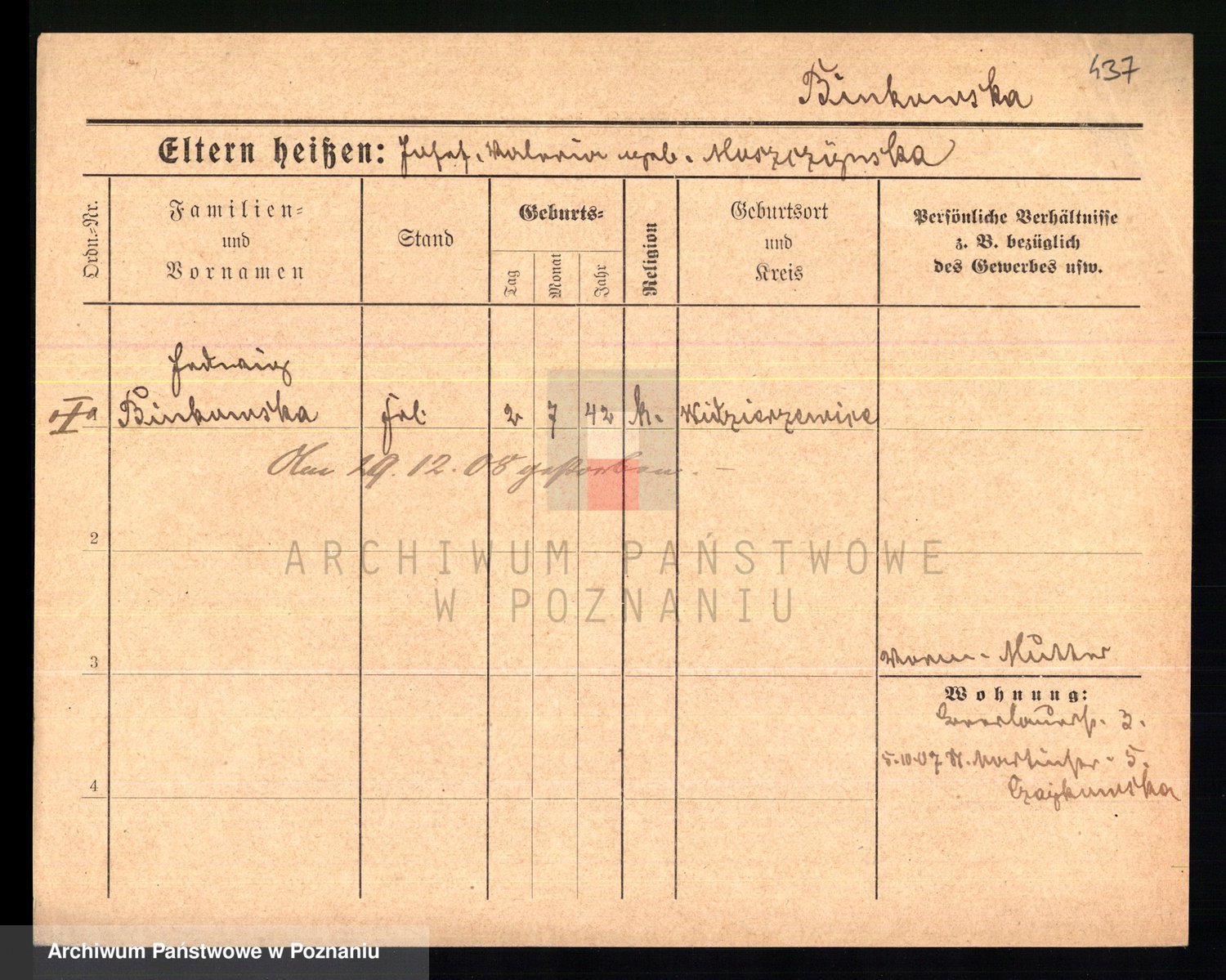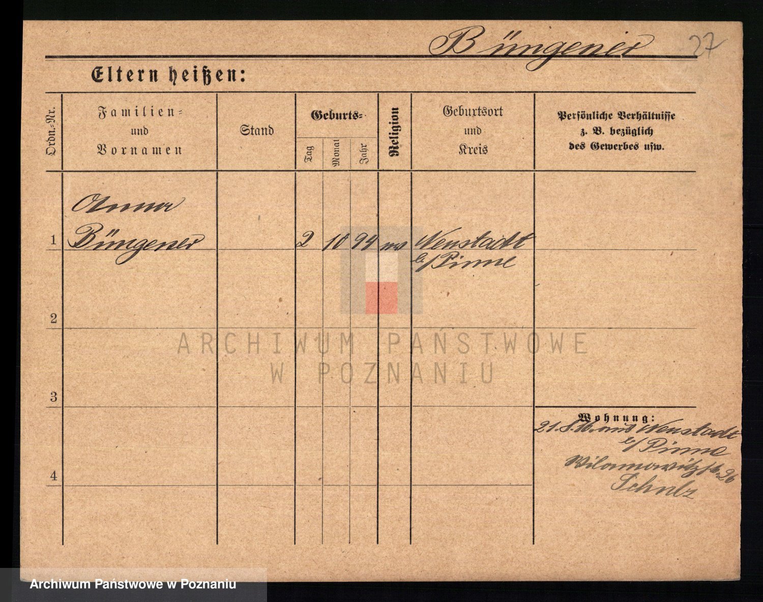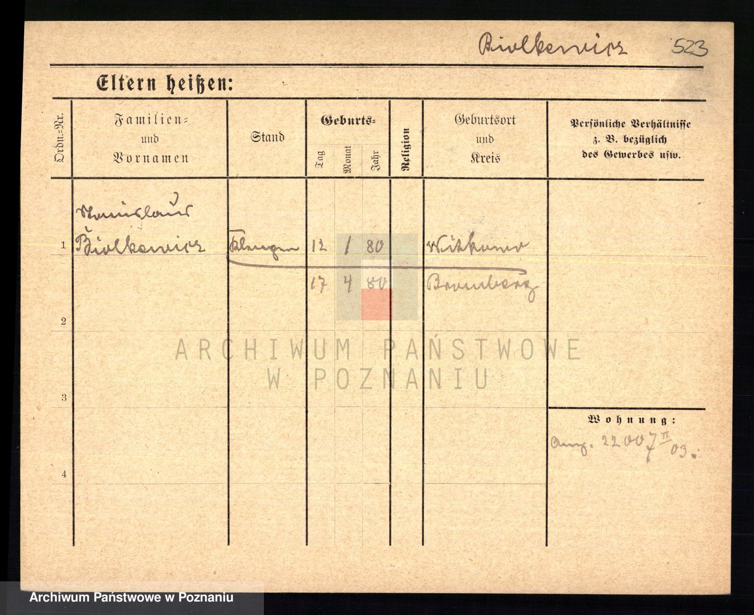 Bünger z d. Niedrig 1 voto Sporakowski, Karoline