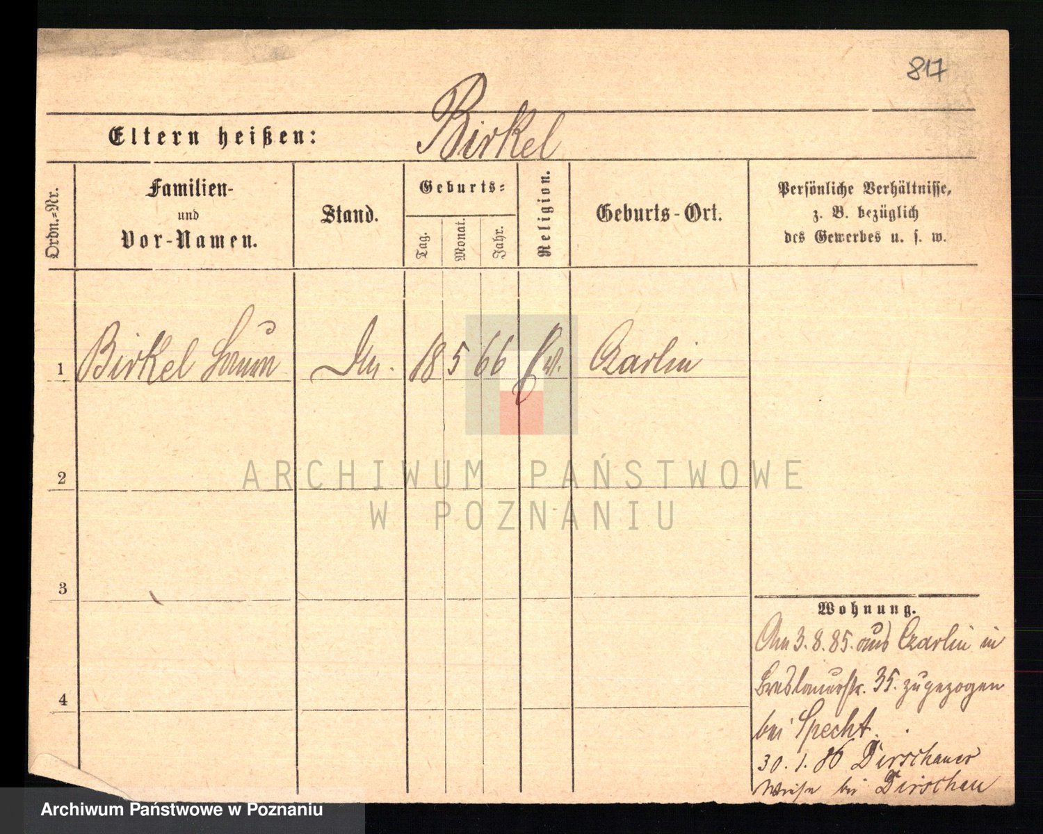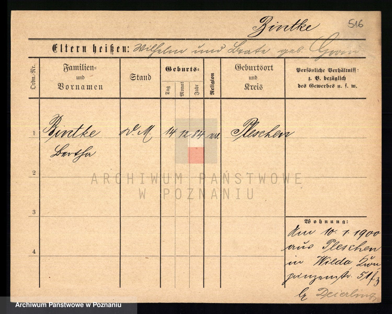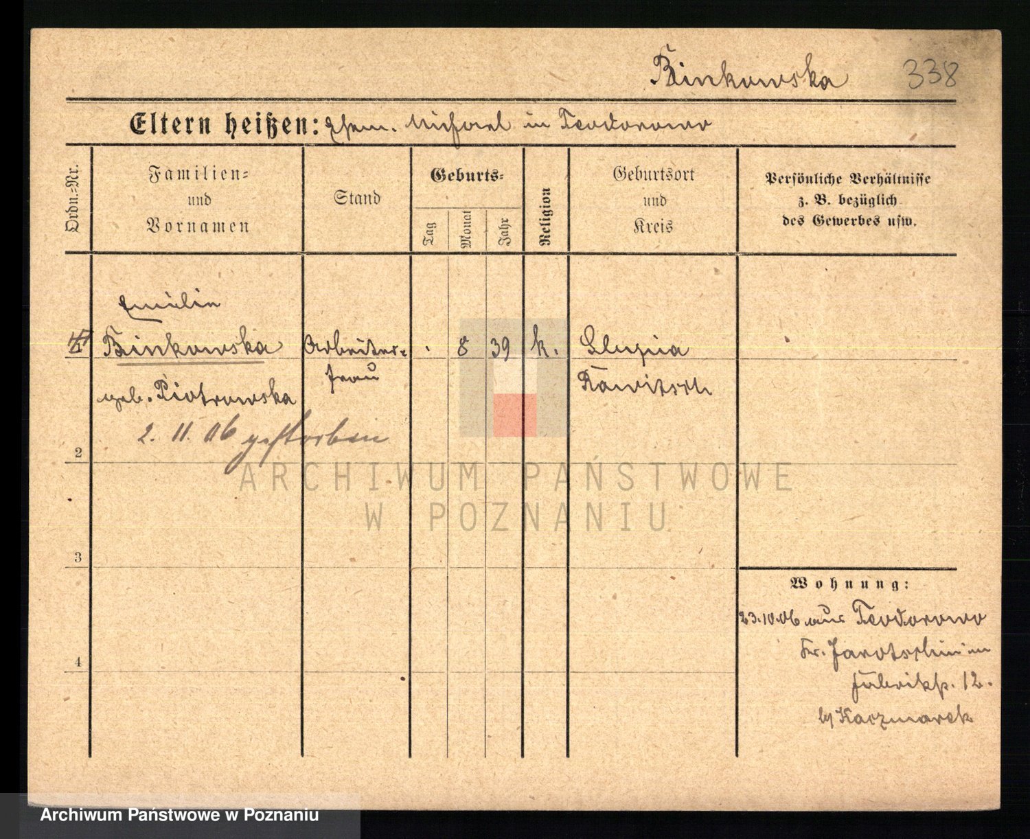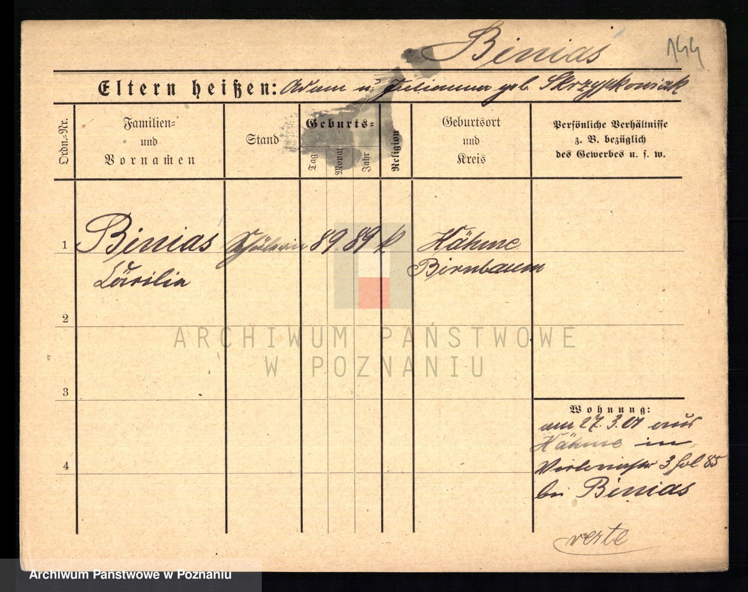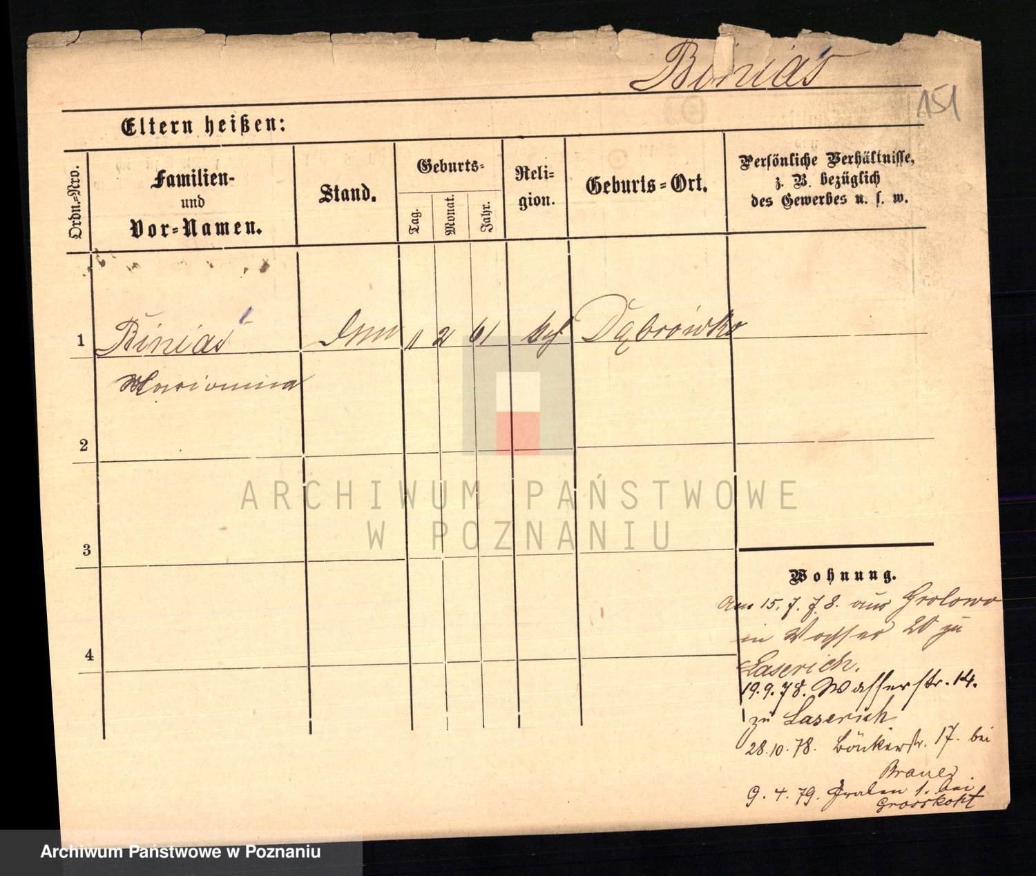 Bünger z d. Niedrig 1 voto Sporakowski, Karoline