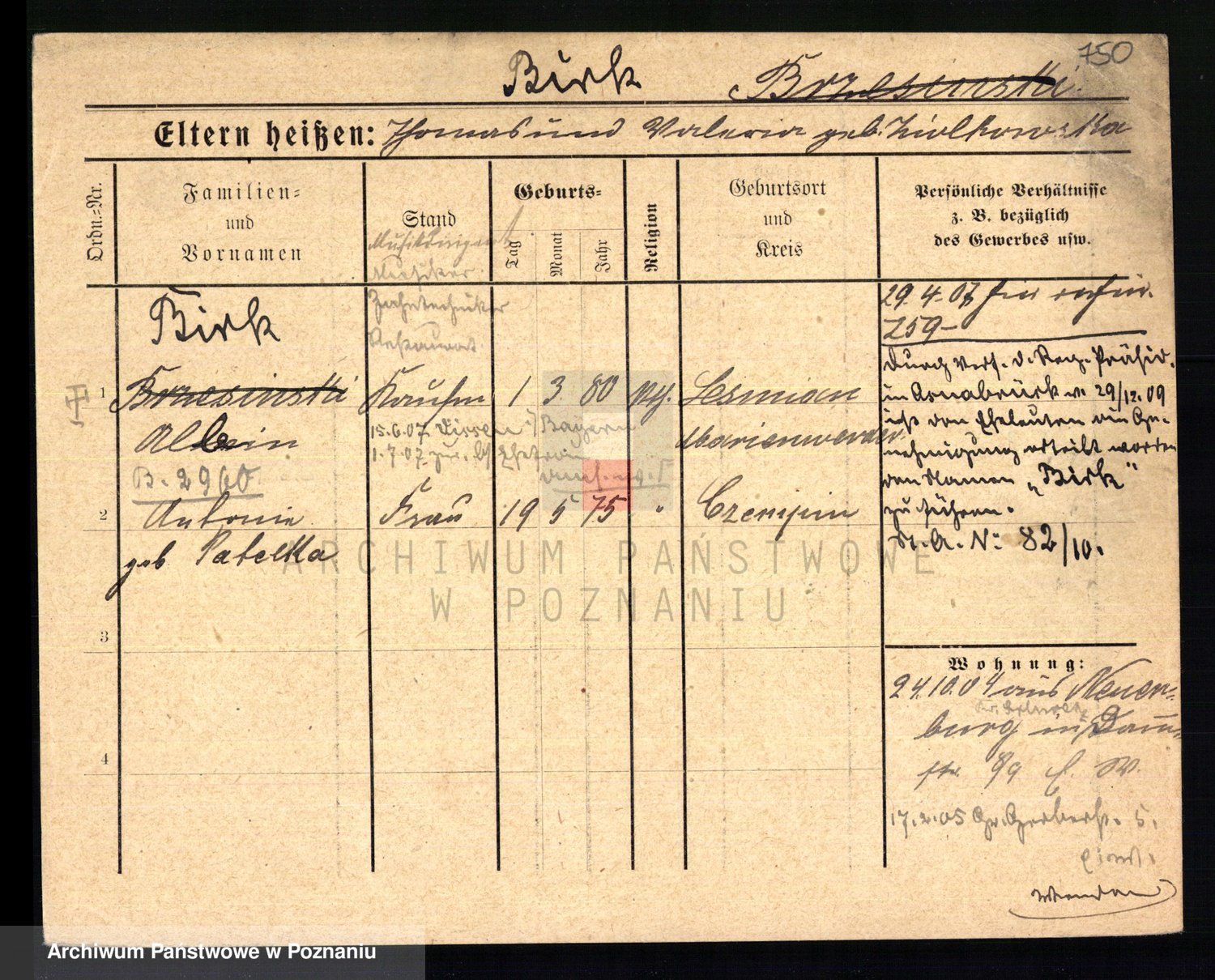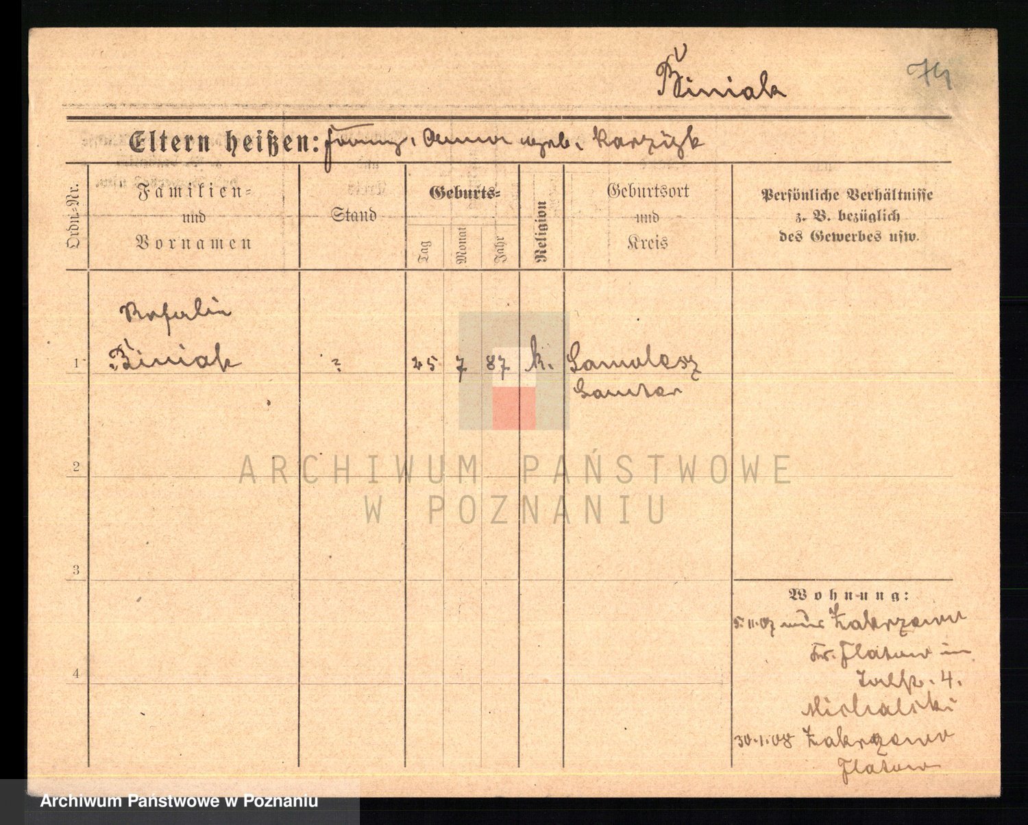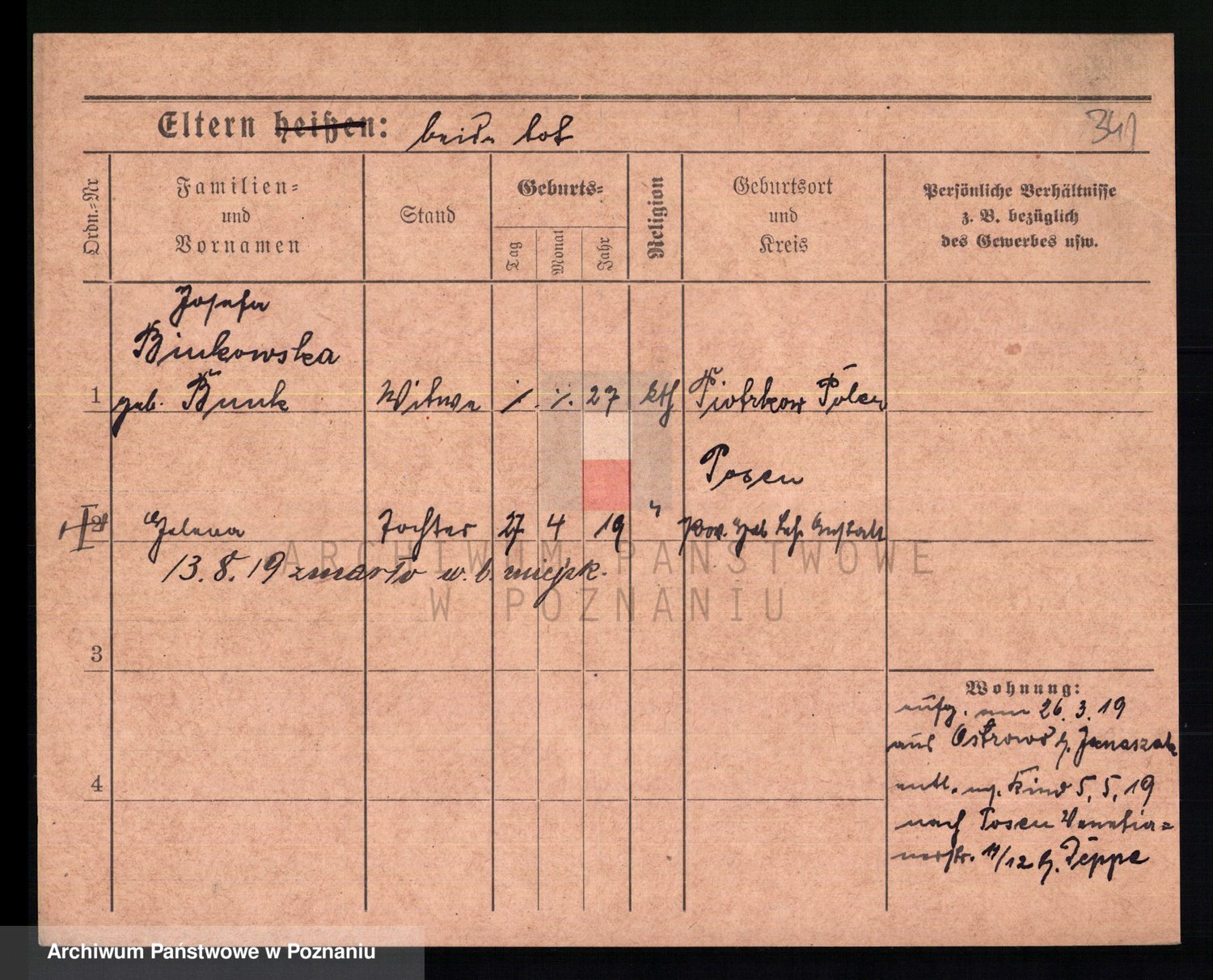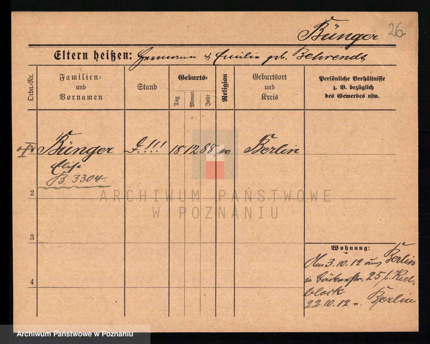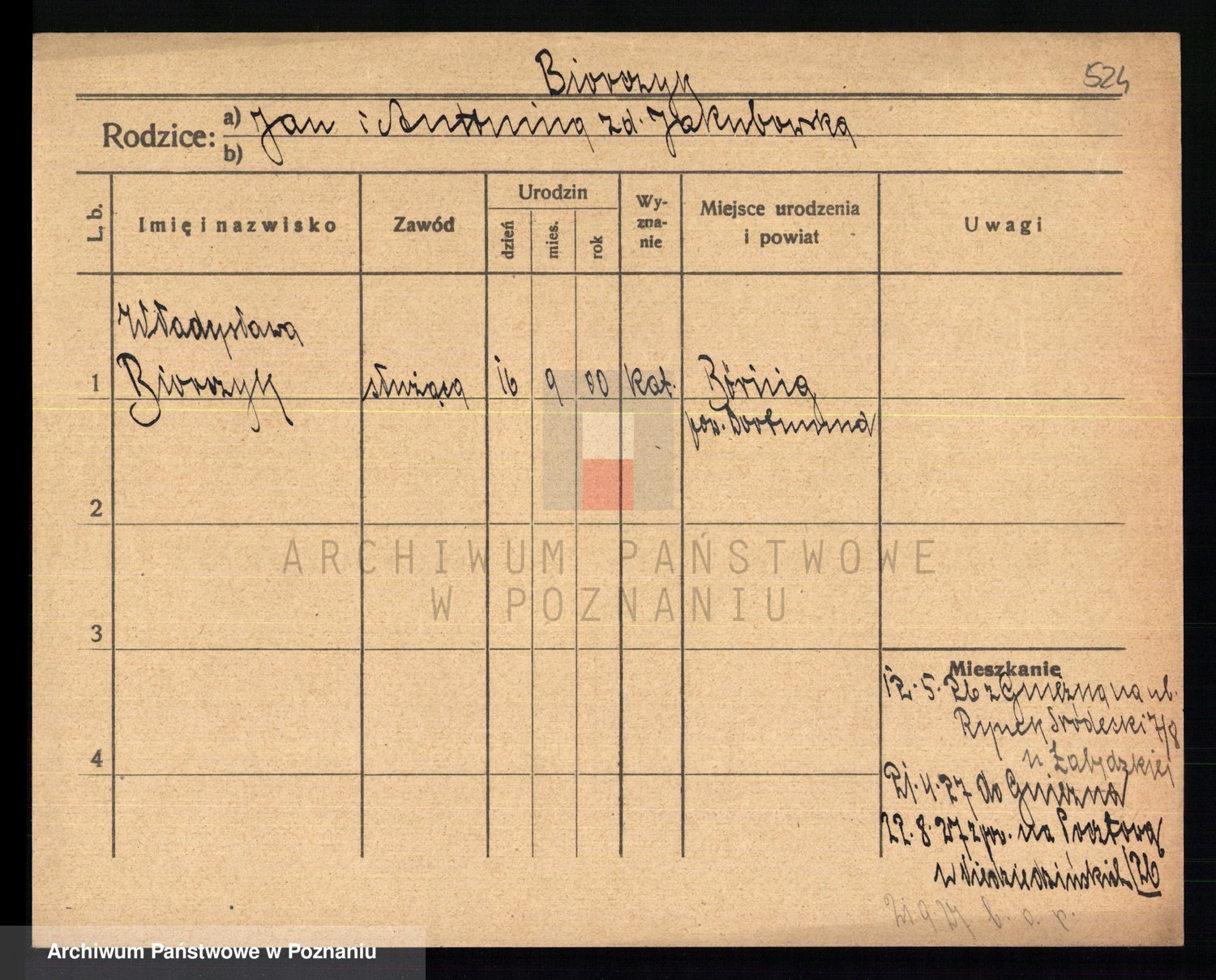 Bünger z d. Niedrig 1 voto Sporakowski, Karoline