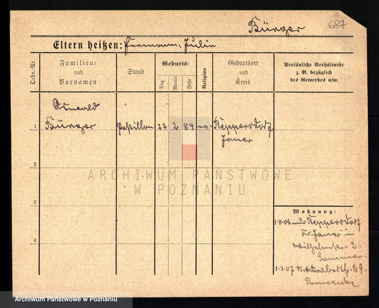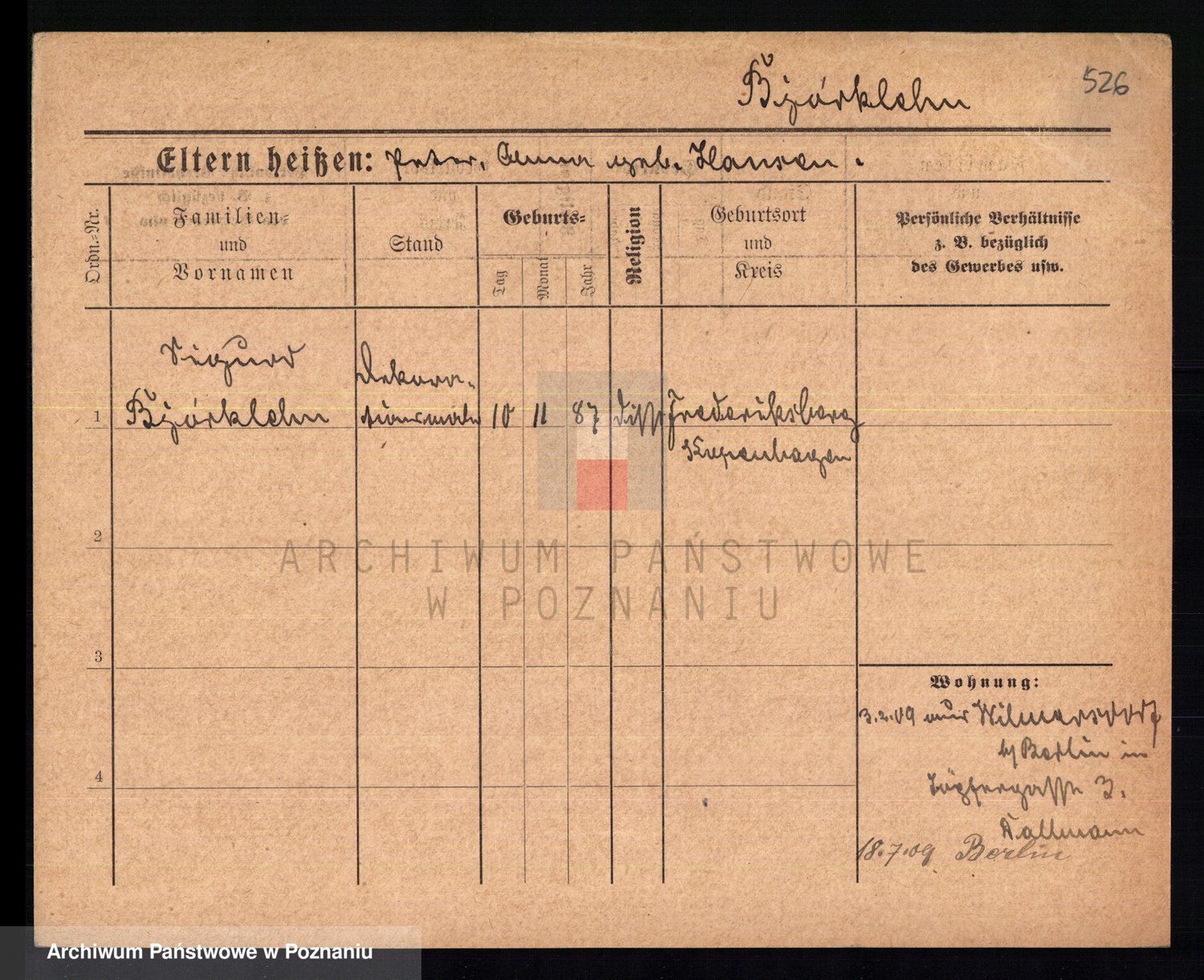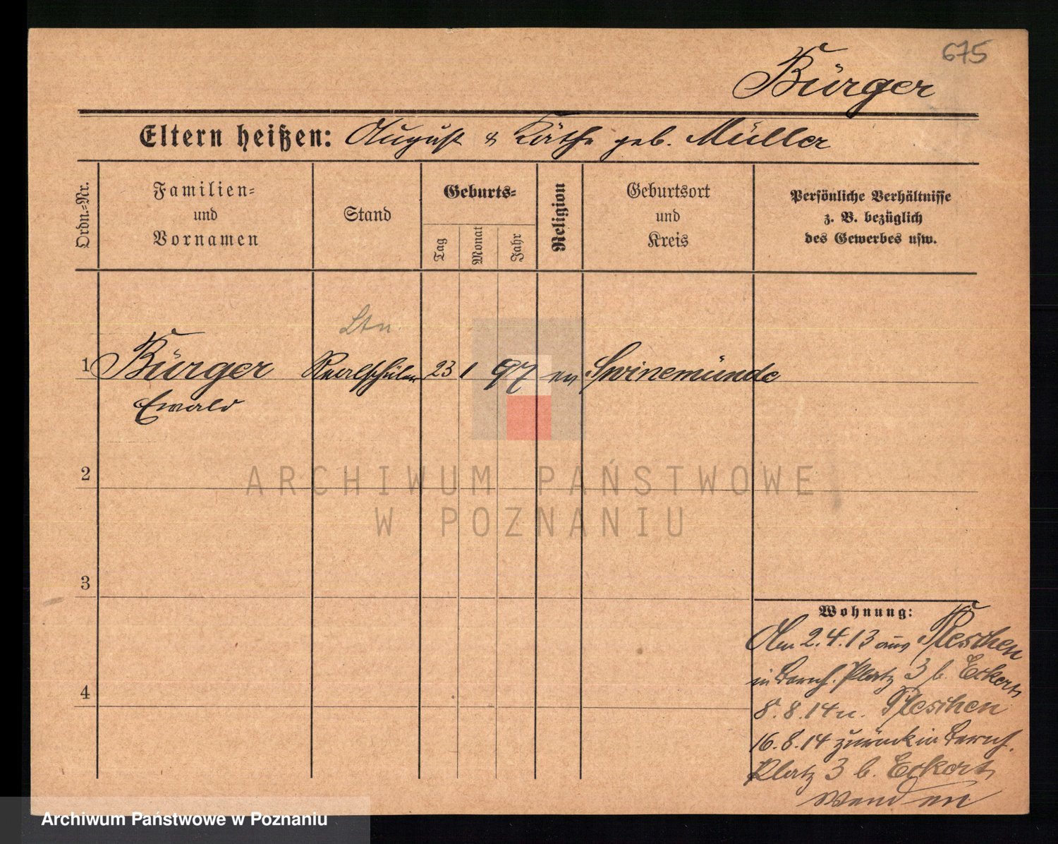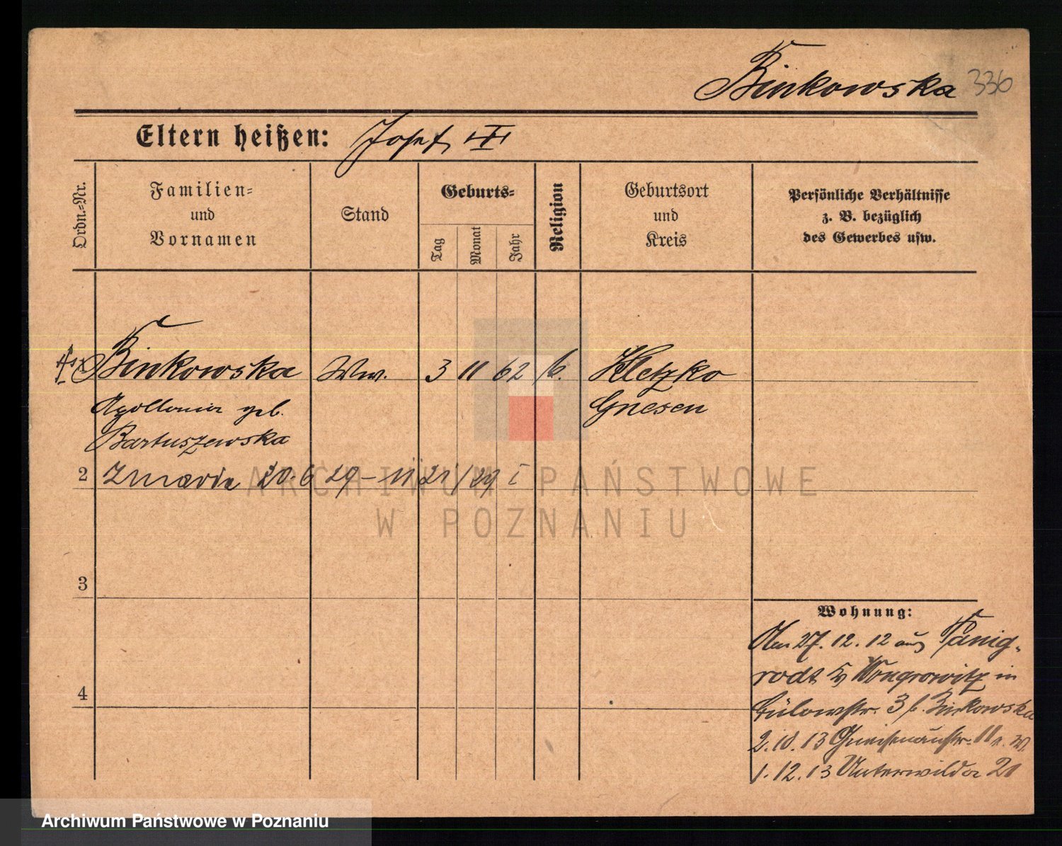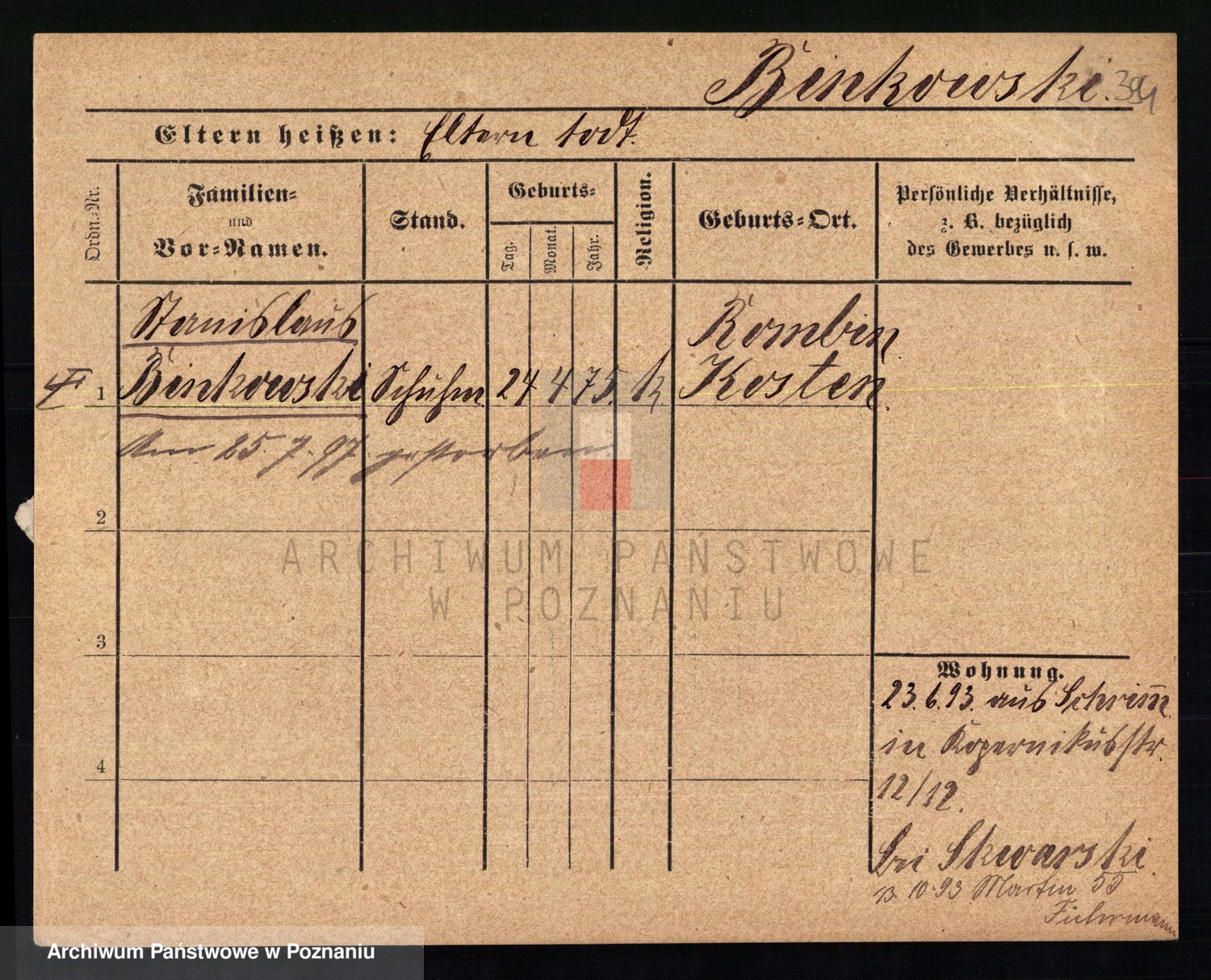 Bünger z d. Niedrig 1 voto Sporakowski, Karoline