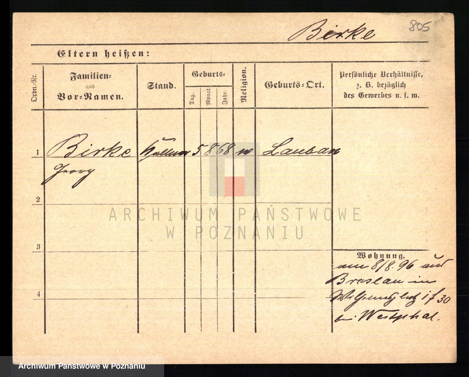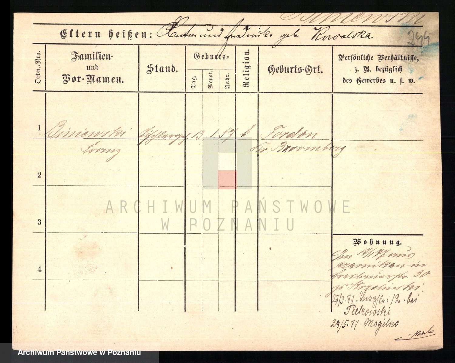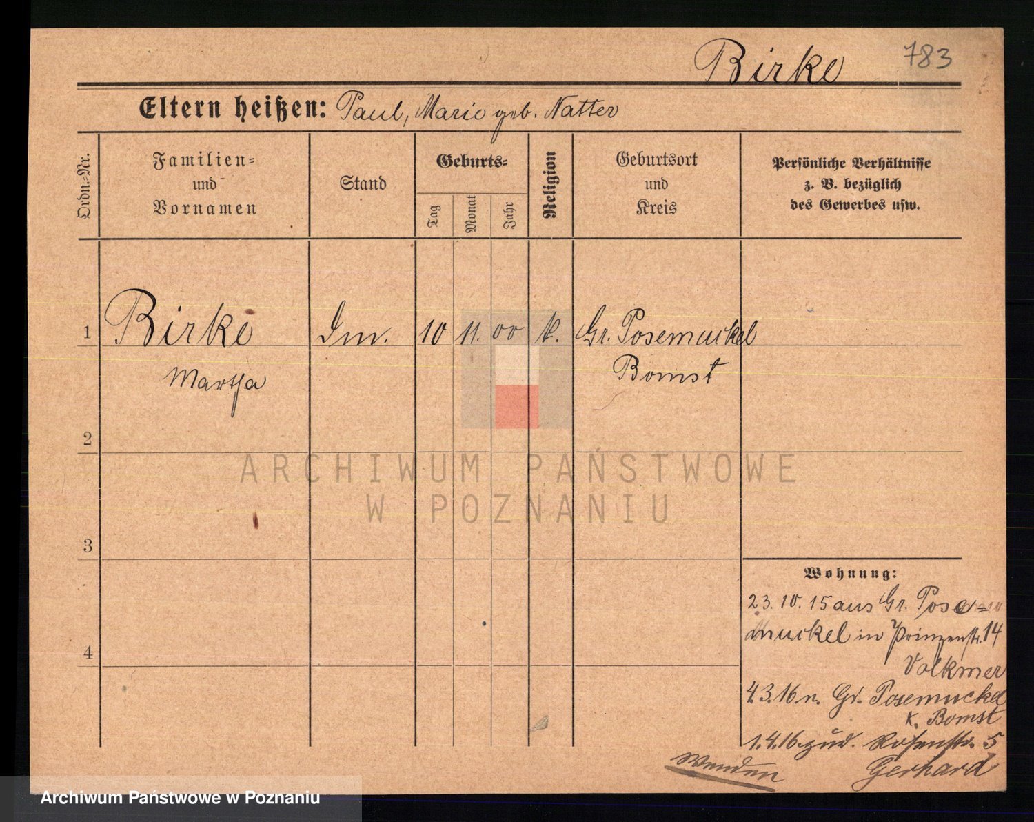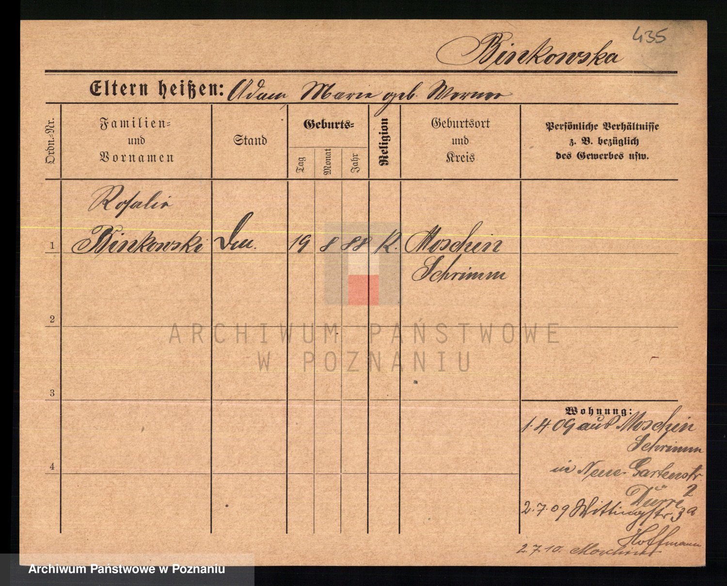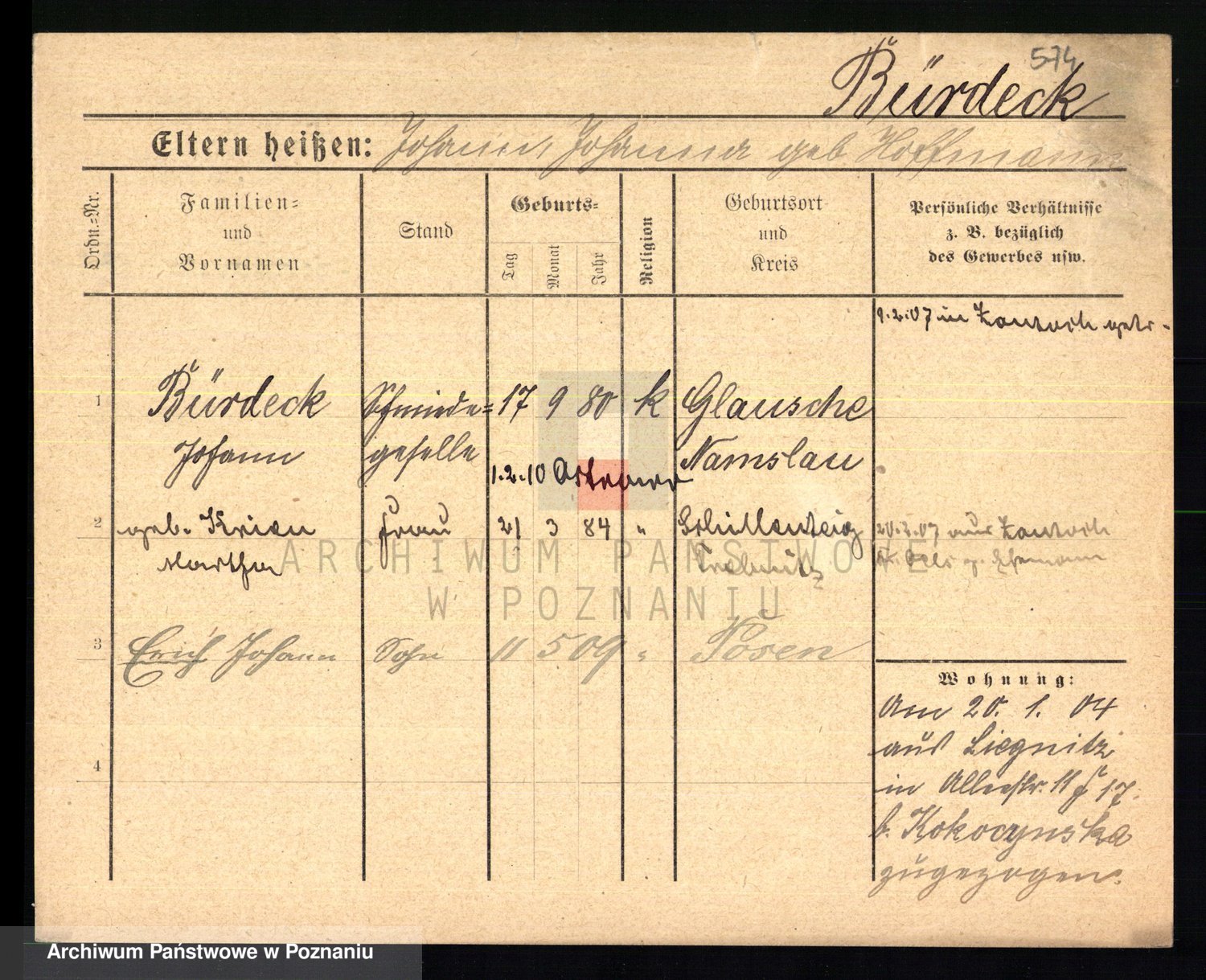 Bünger z d. Niedrig 1 voto Sporakowski, Karoline