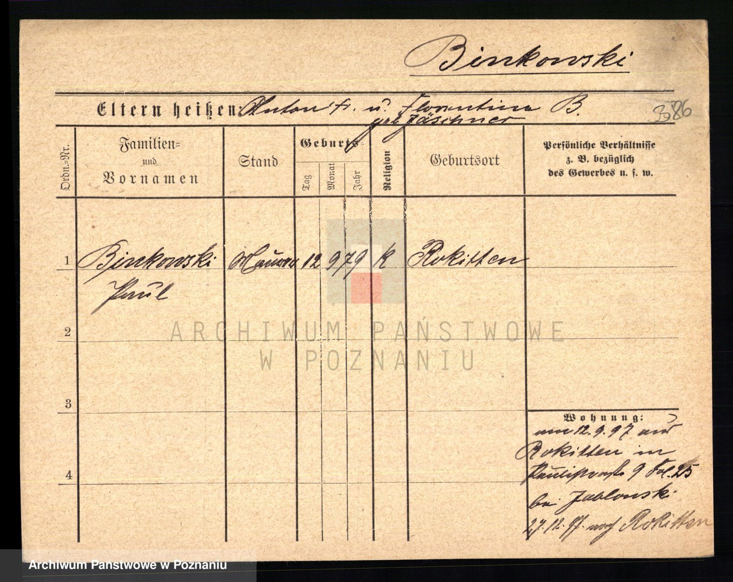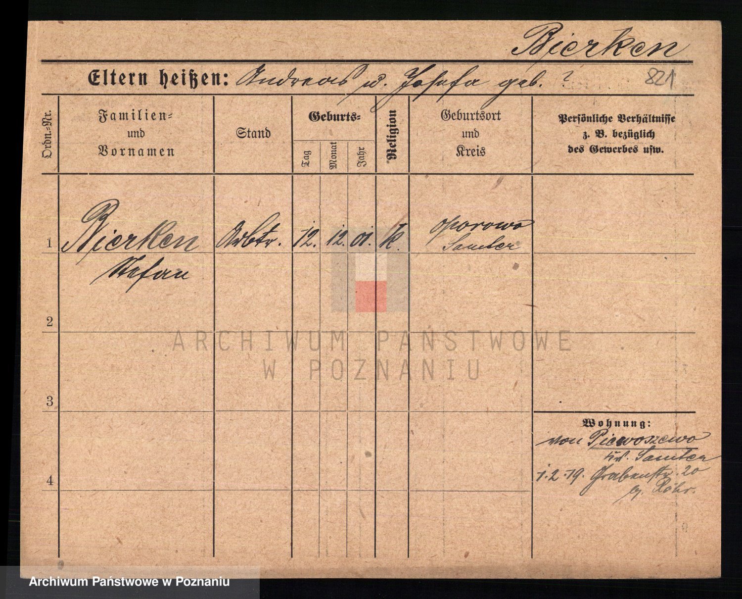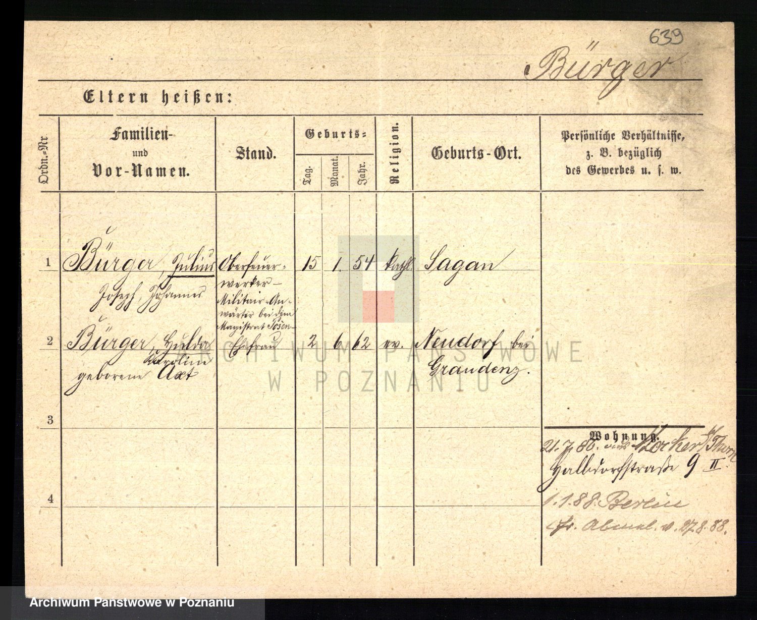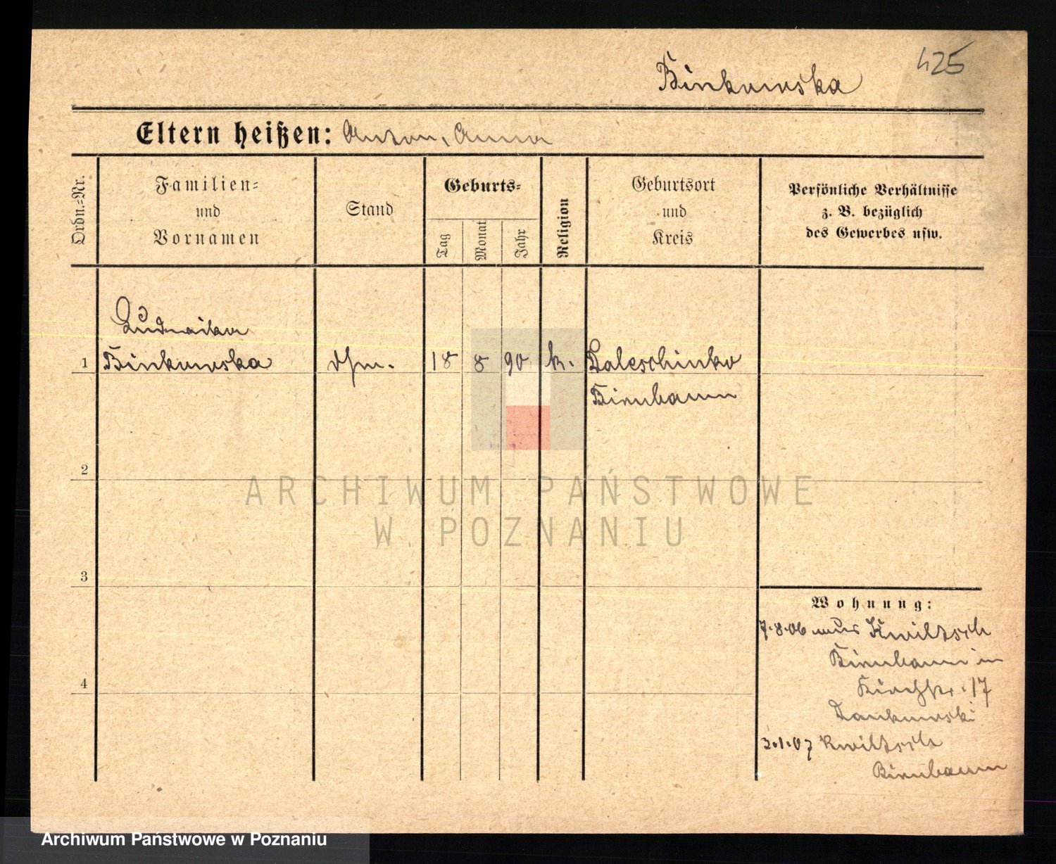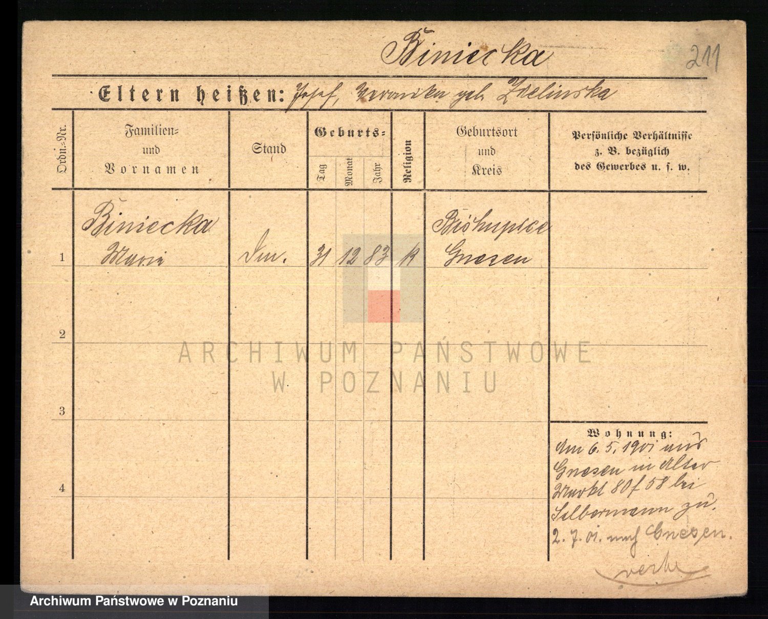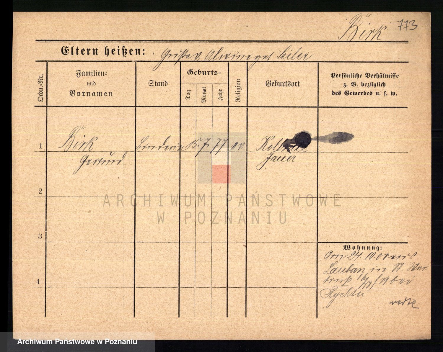 Bünger z d. Niedrig 1 voto Sporakowski, Karoline