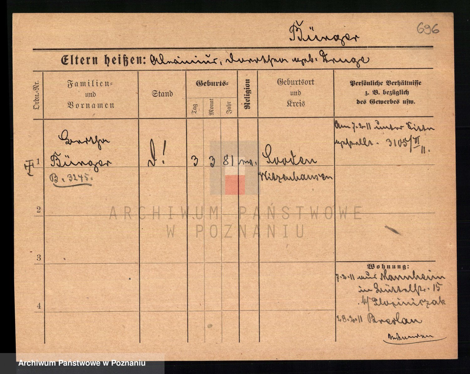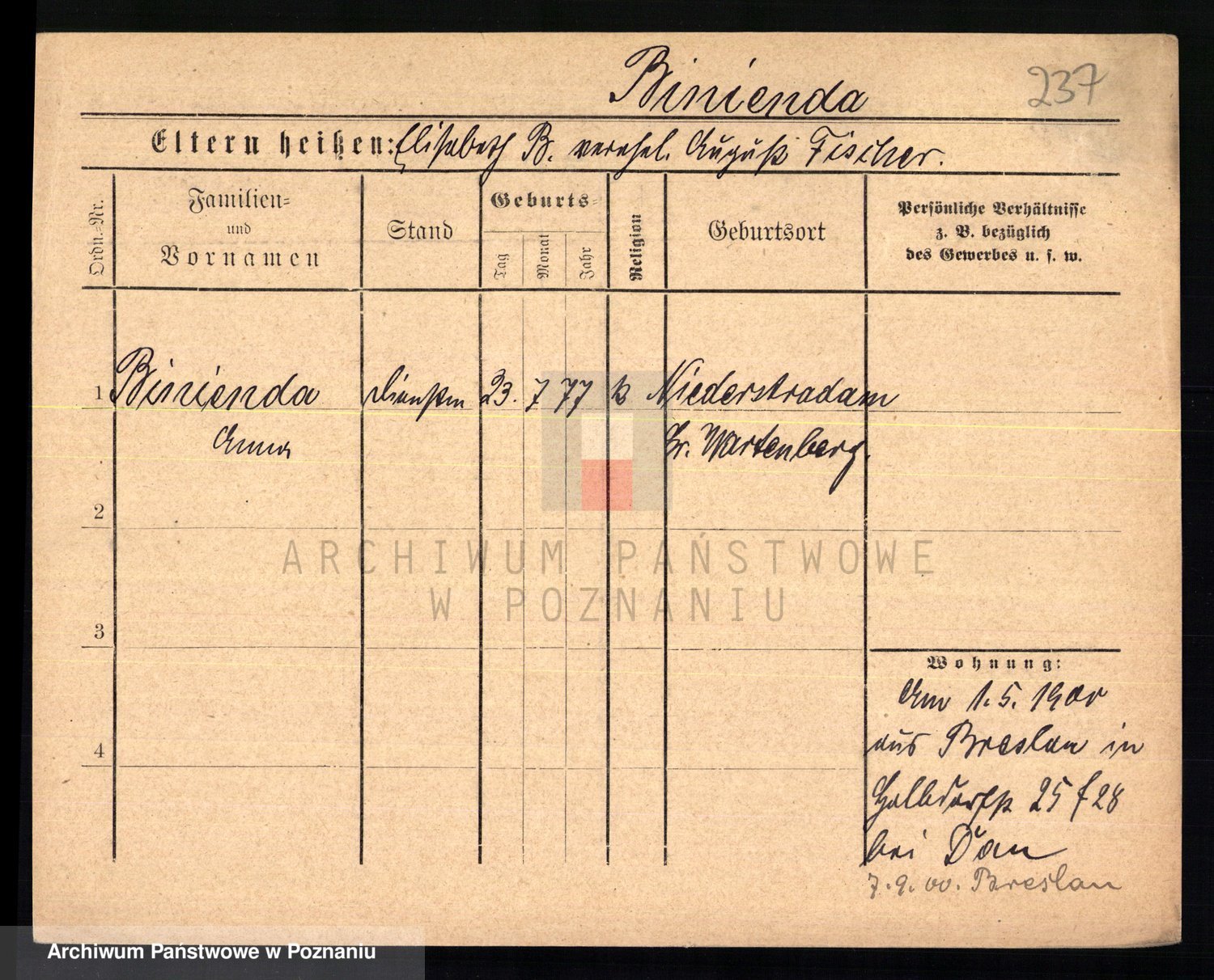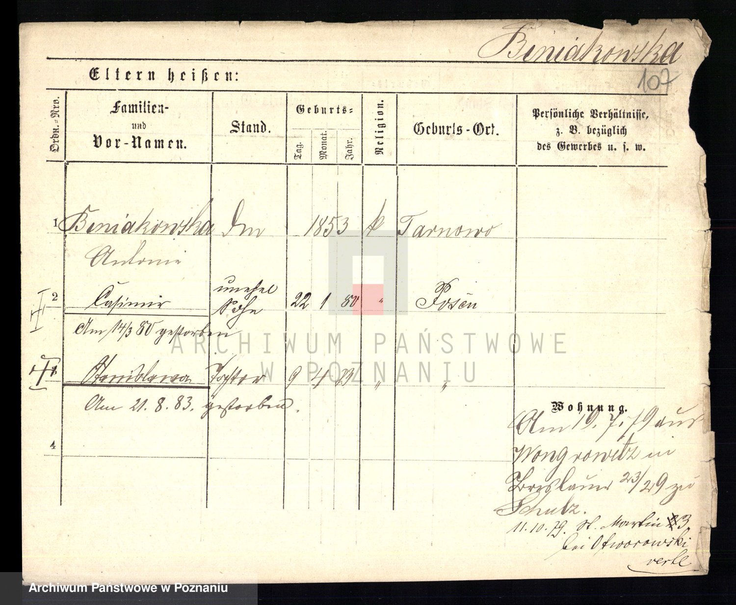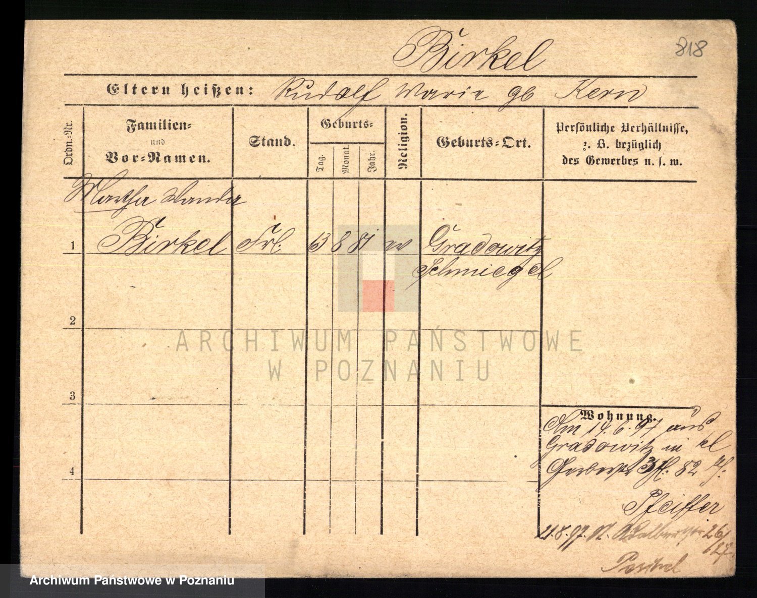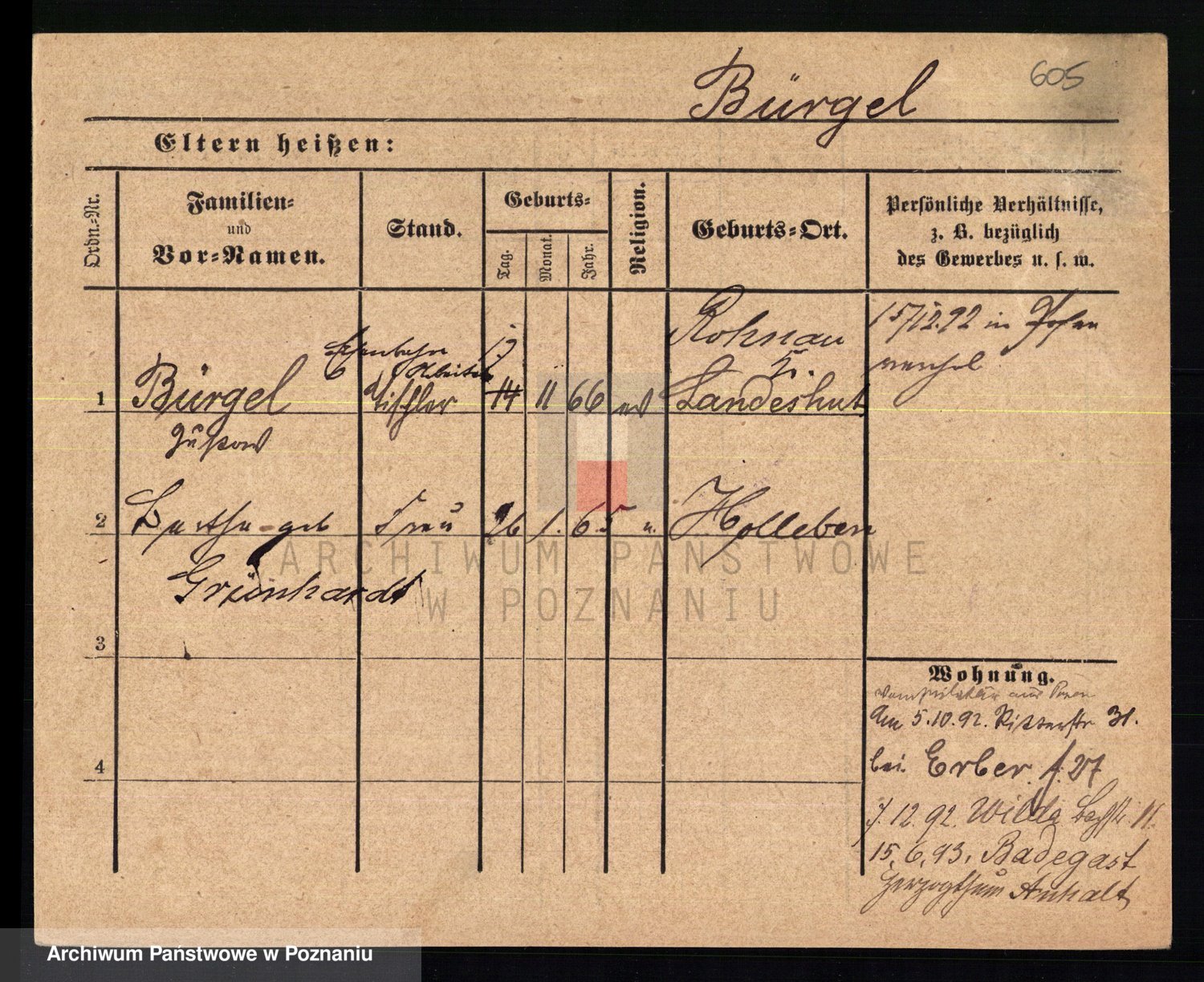 Bünger z d. Niedrig 1 voto Sporakowski, Karoline