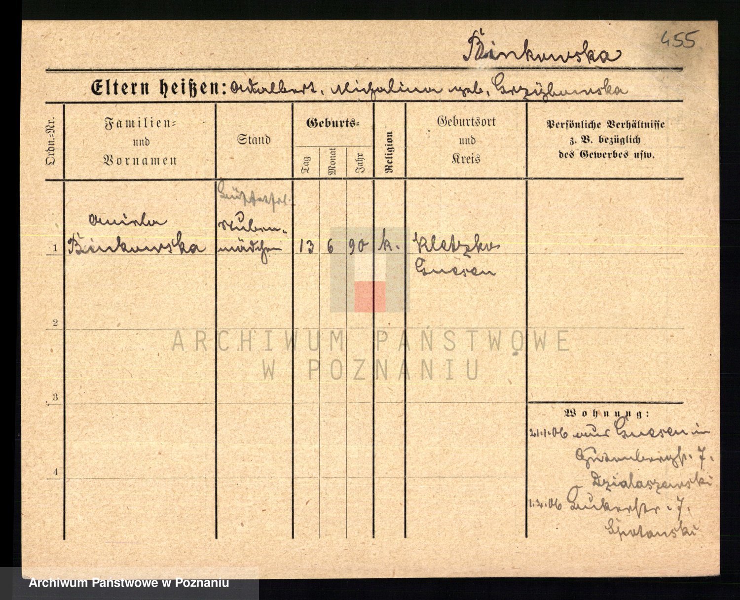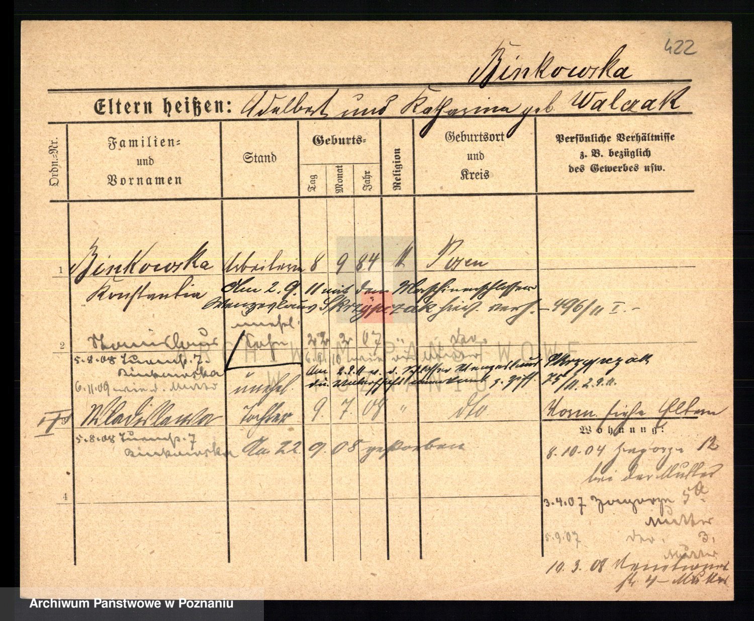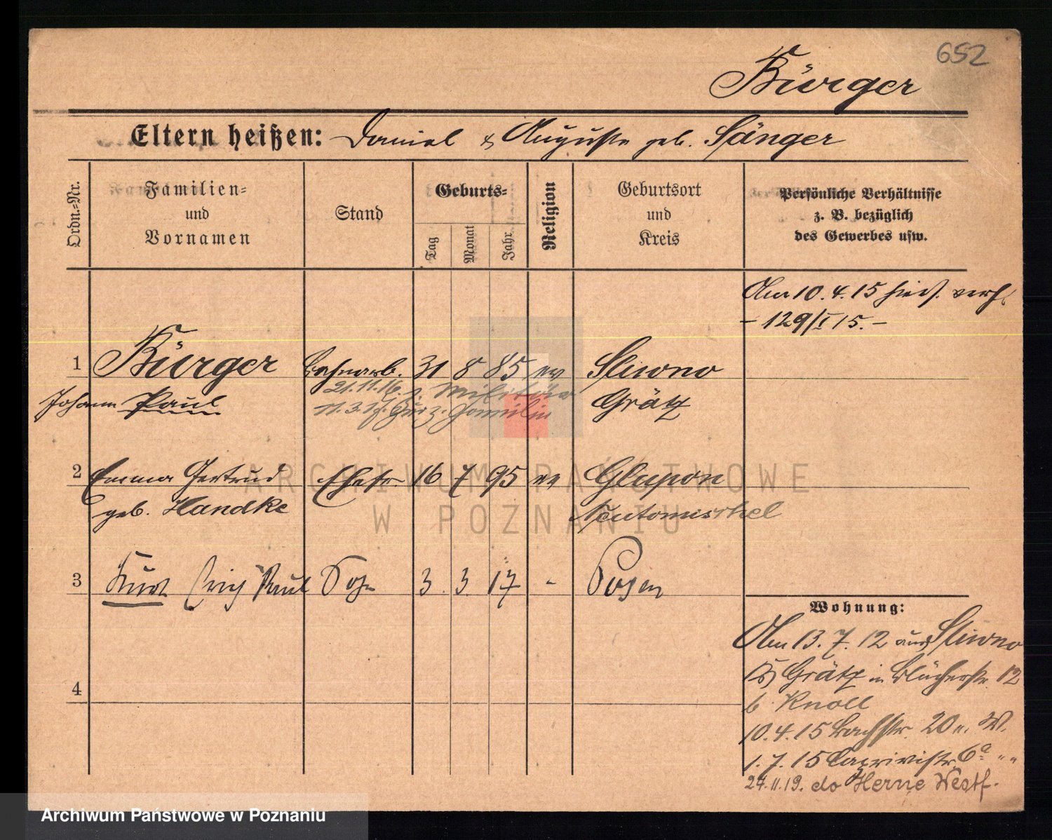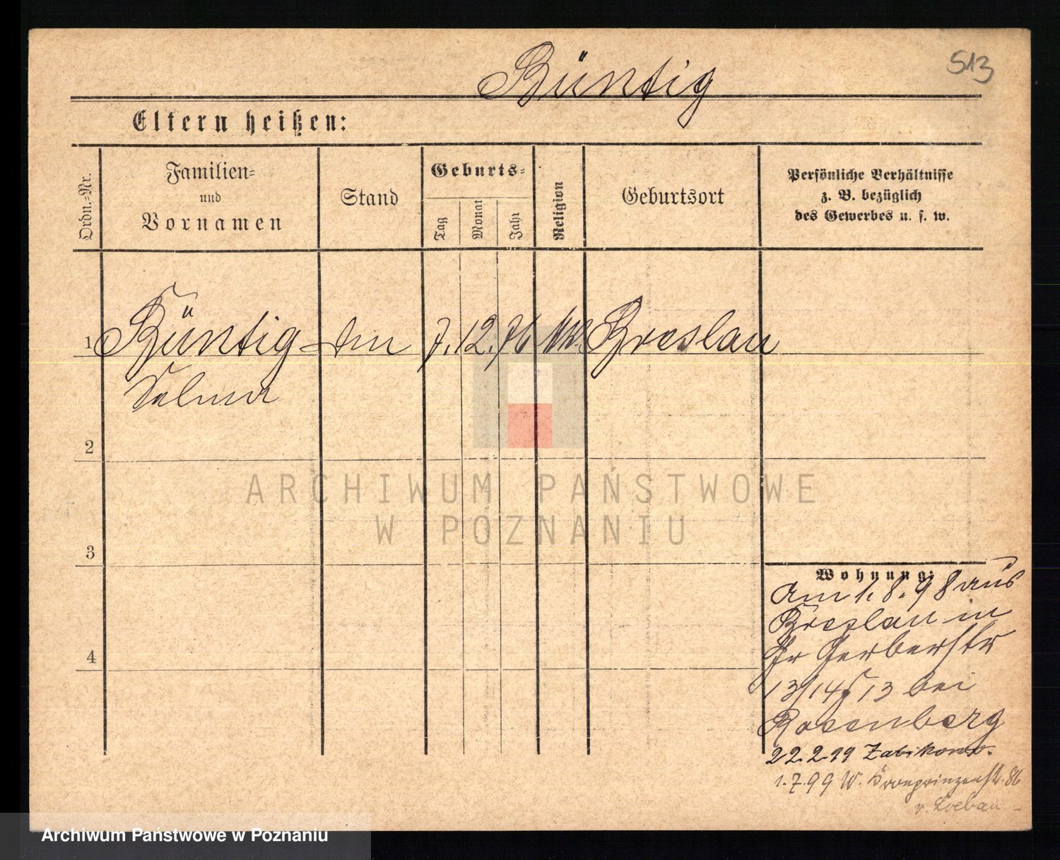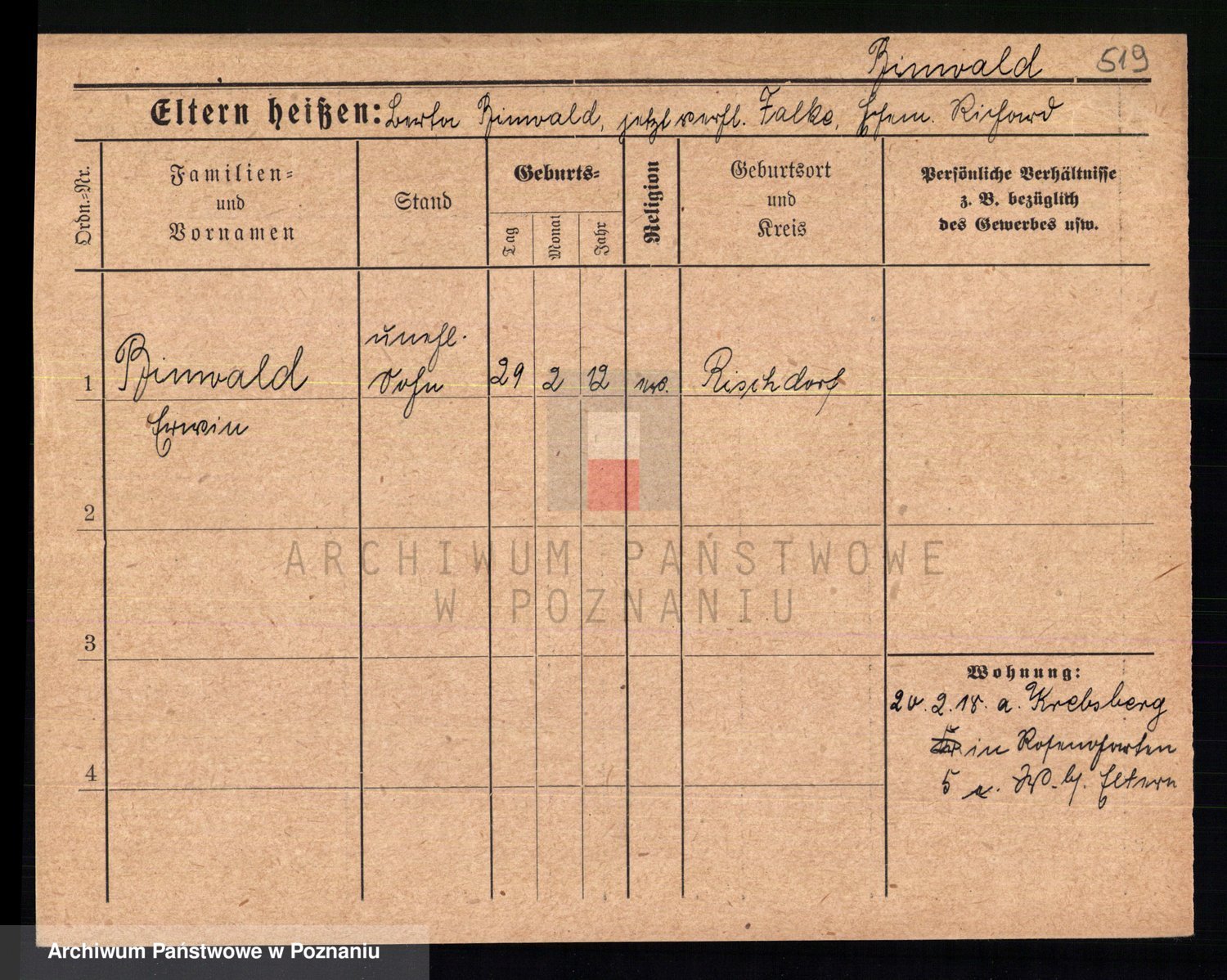 Bünger z d. Niedrig 1 voto Sporakowski, Karoline