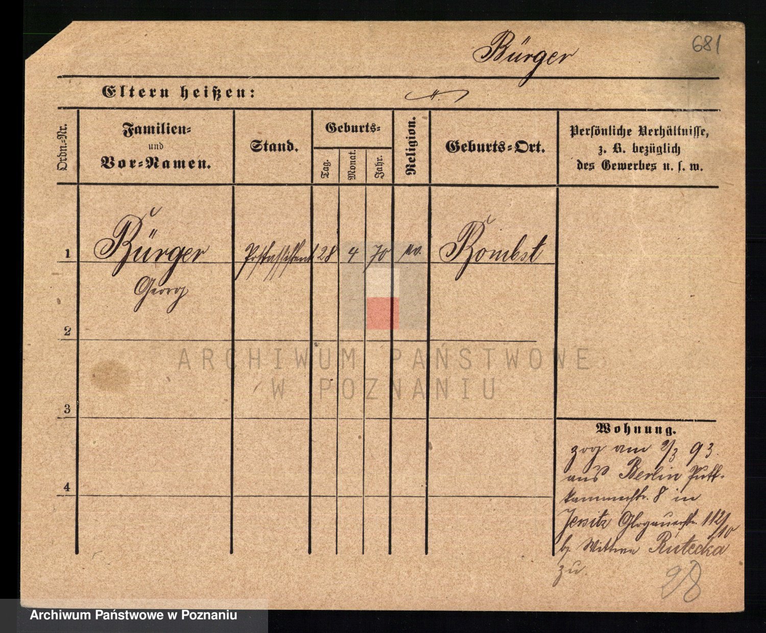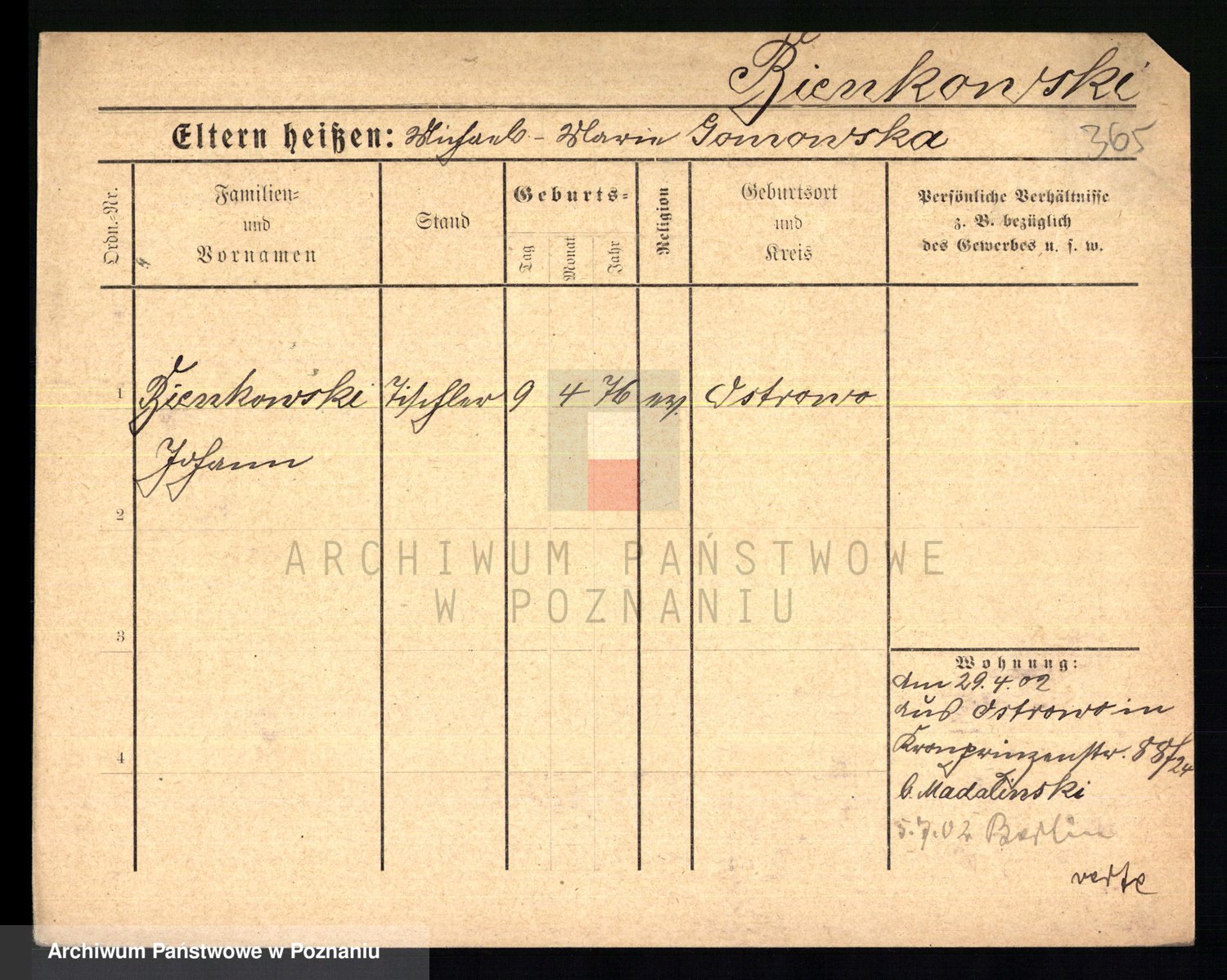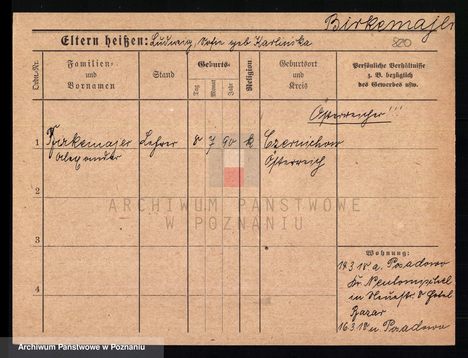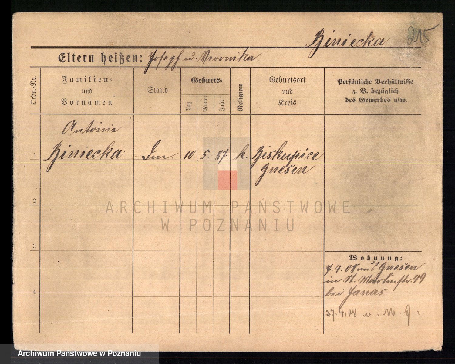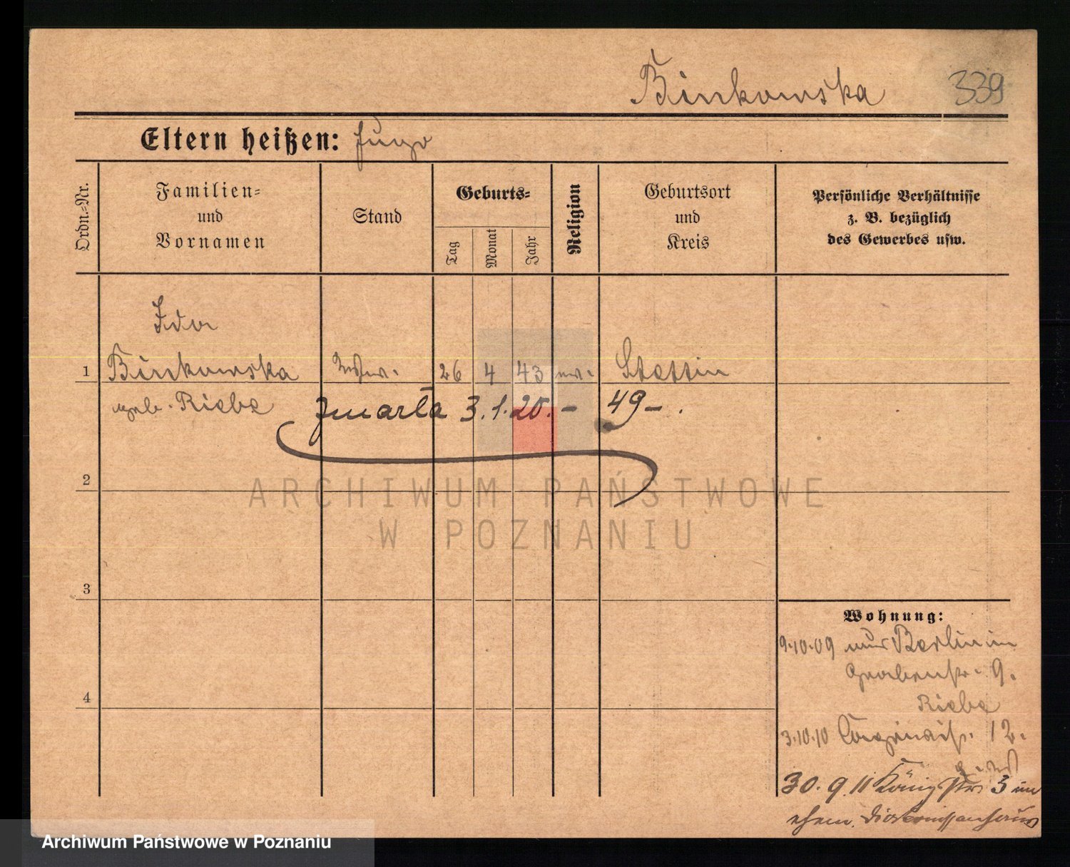 Bünger z d. Niedrig 1 voto Sporakowski, Karoline
