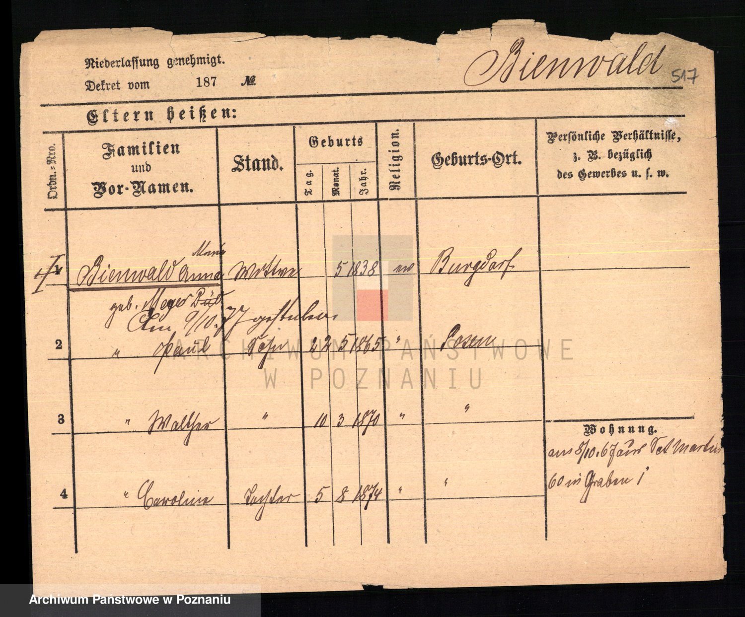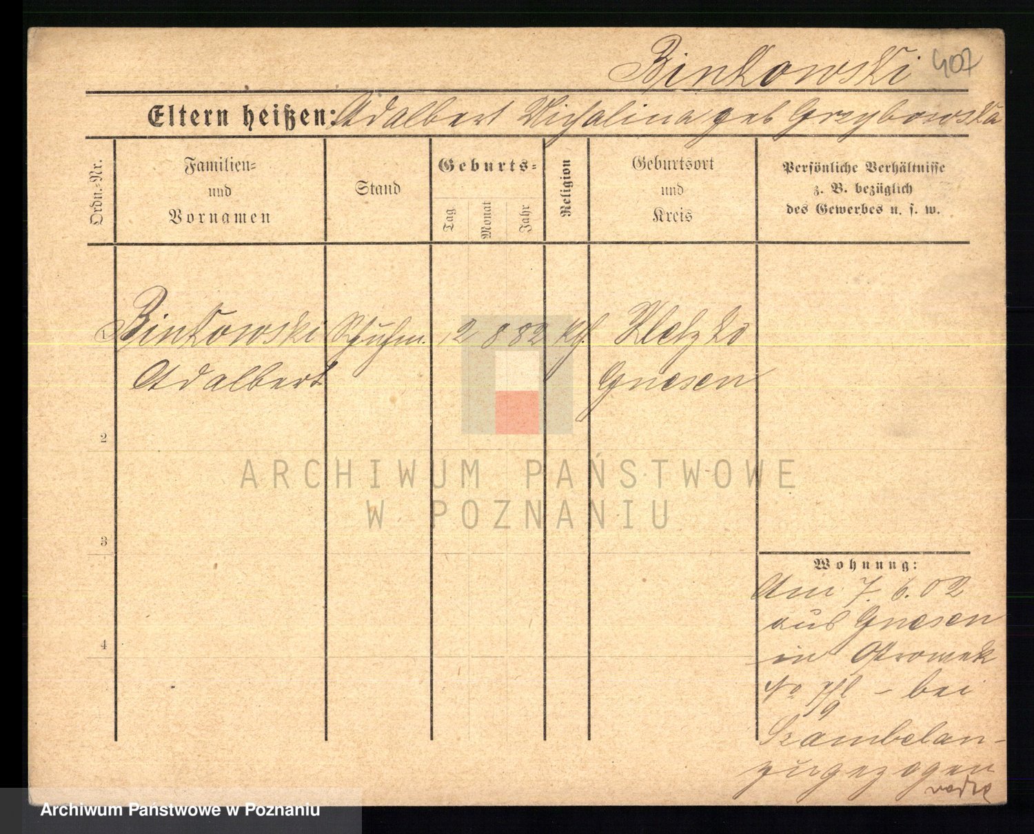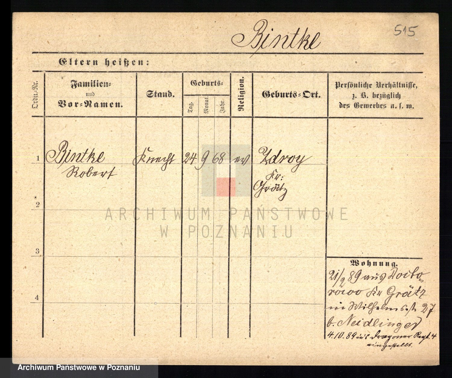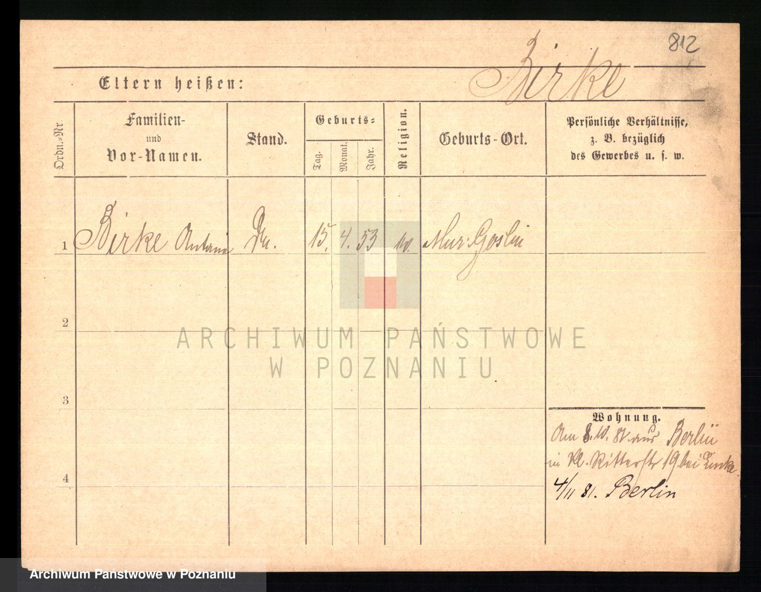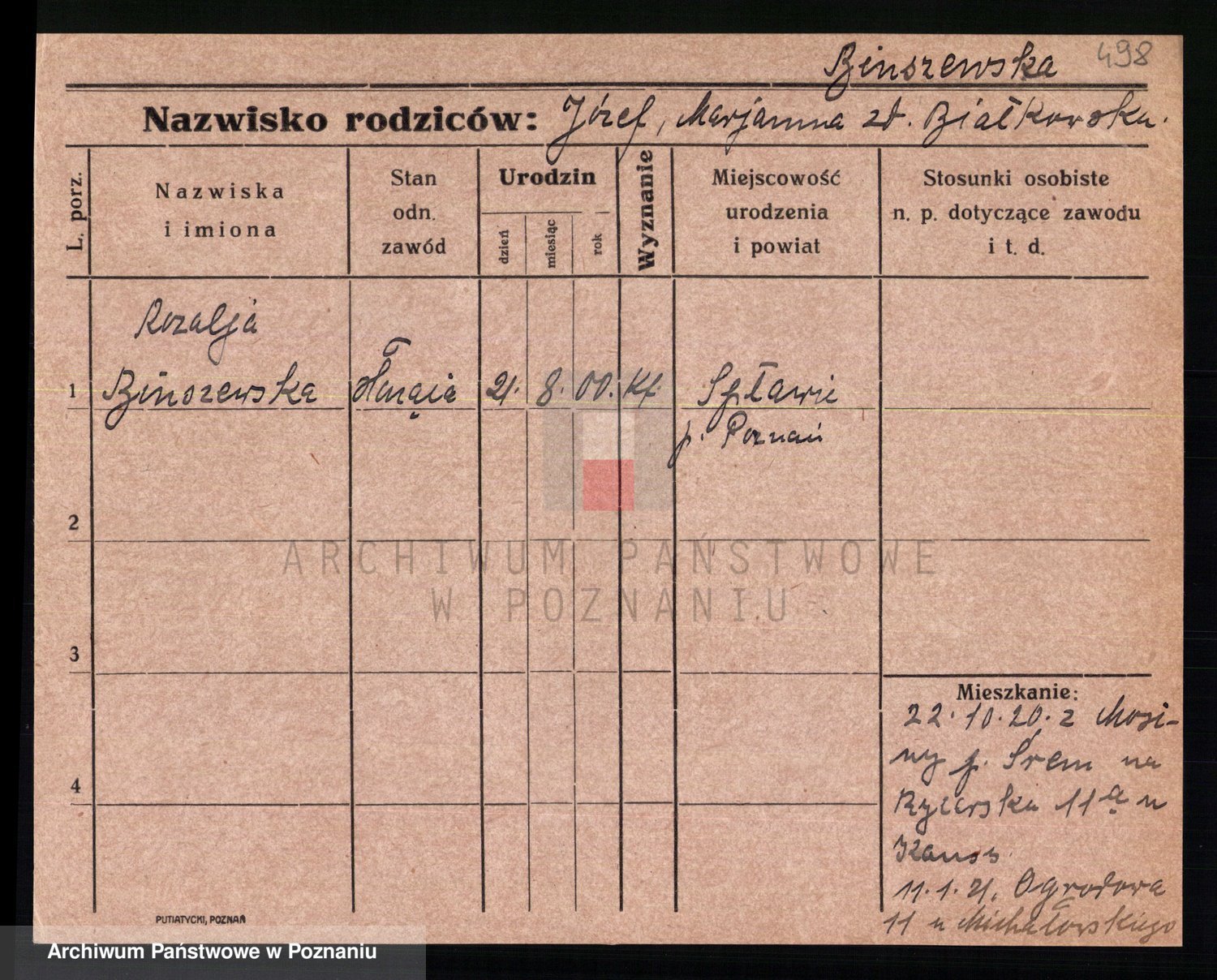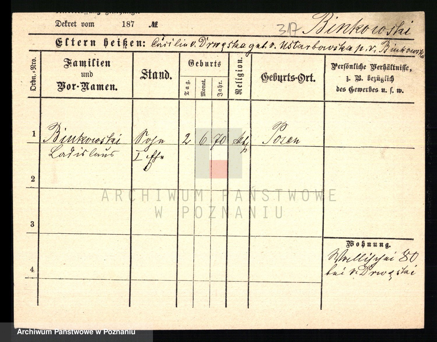Bünger z d. Niedrig 1 voto Sporakowski, Karoline