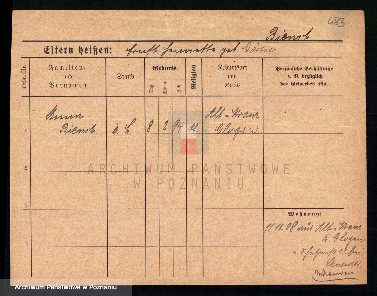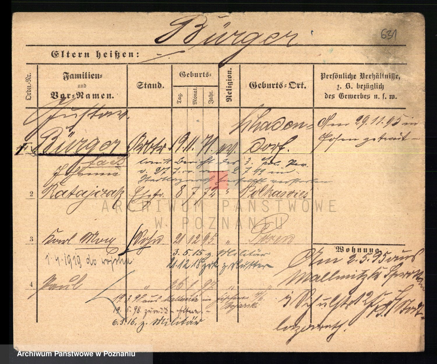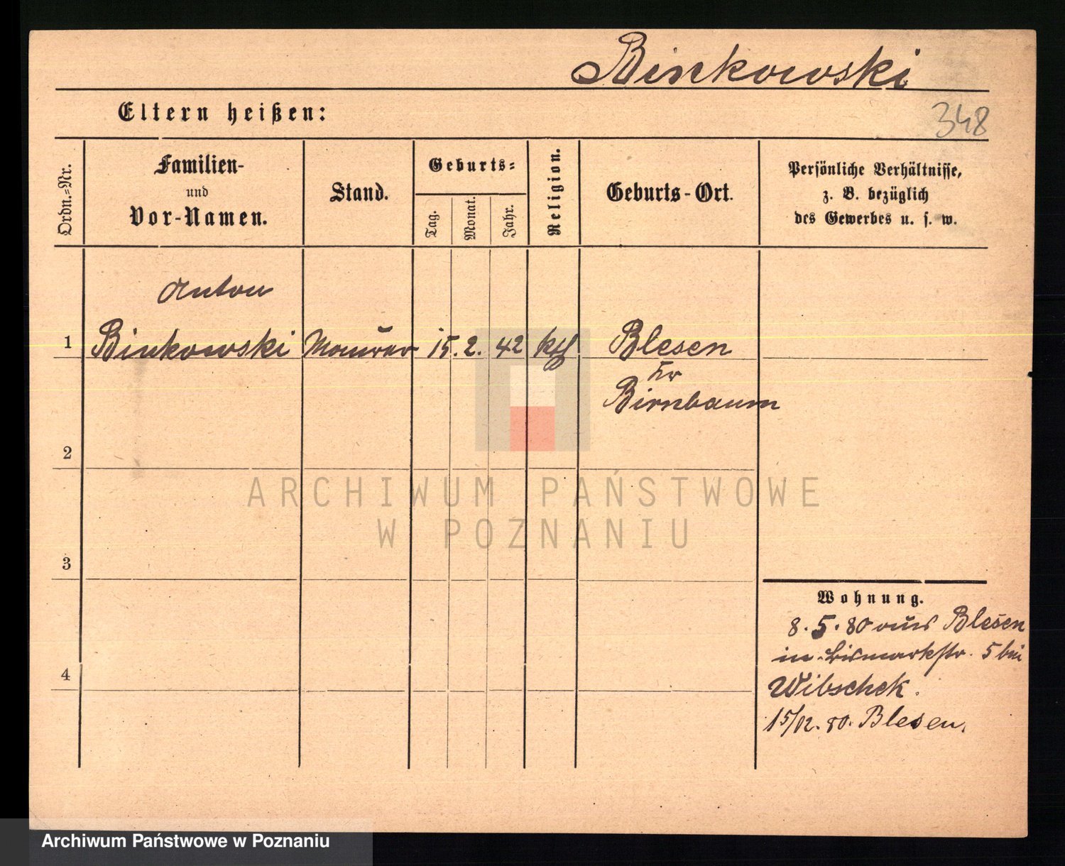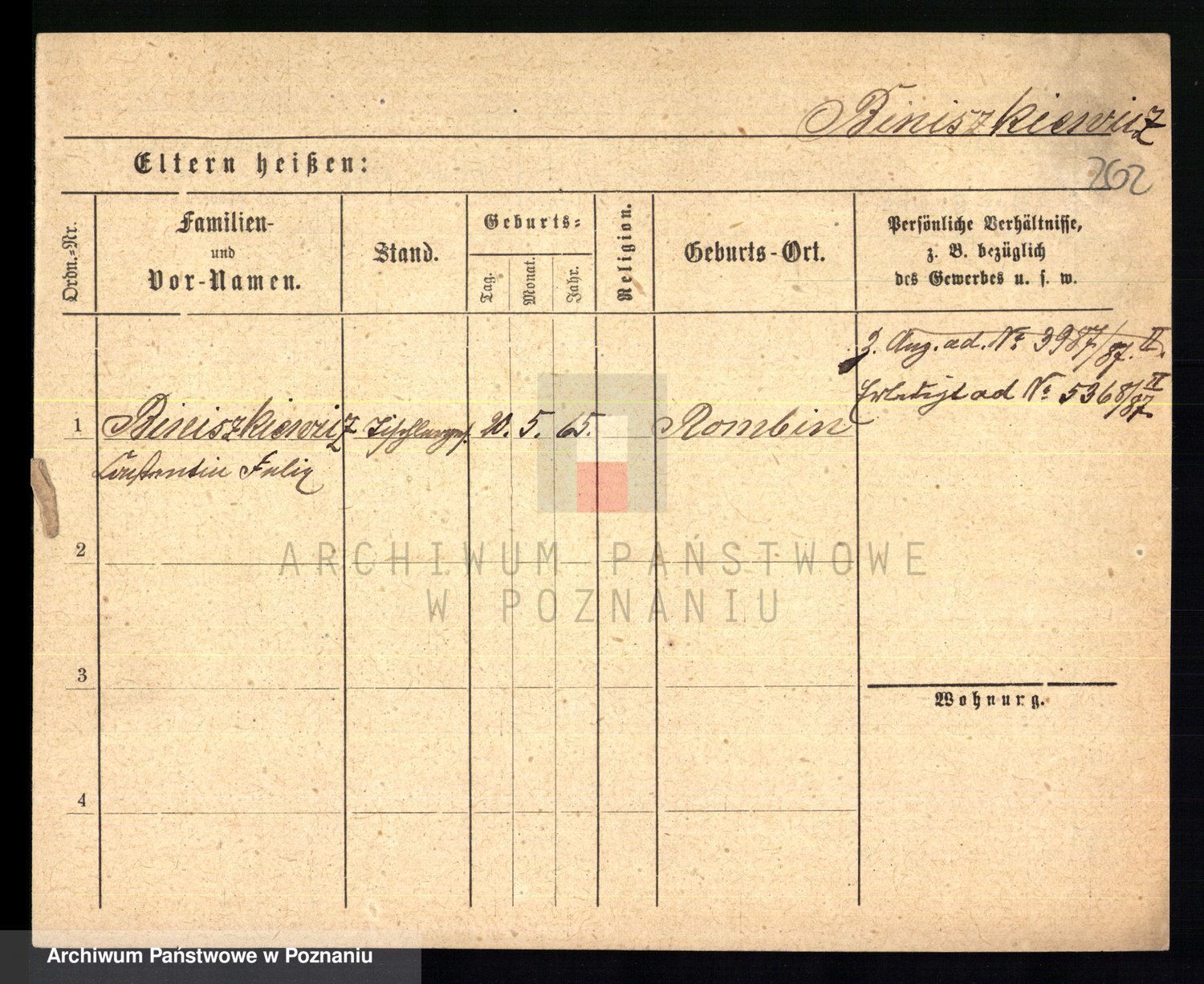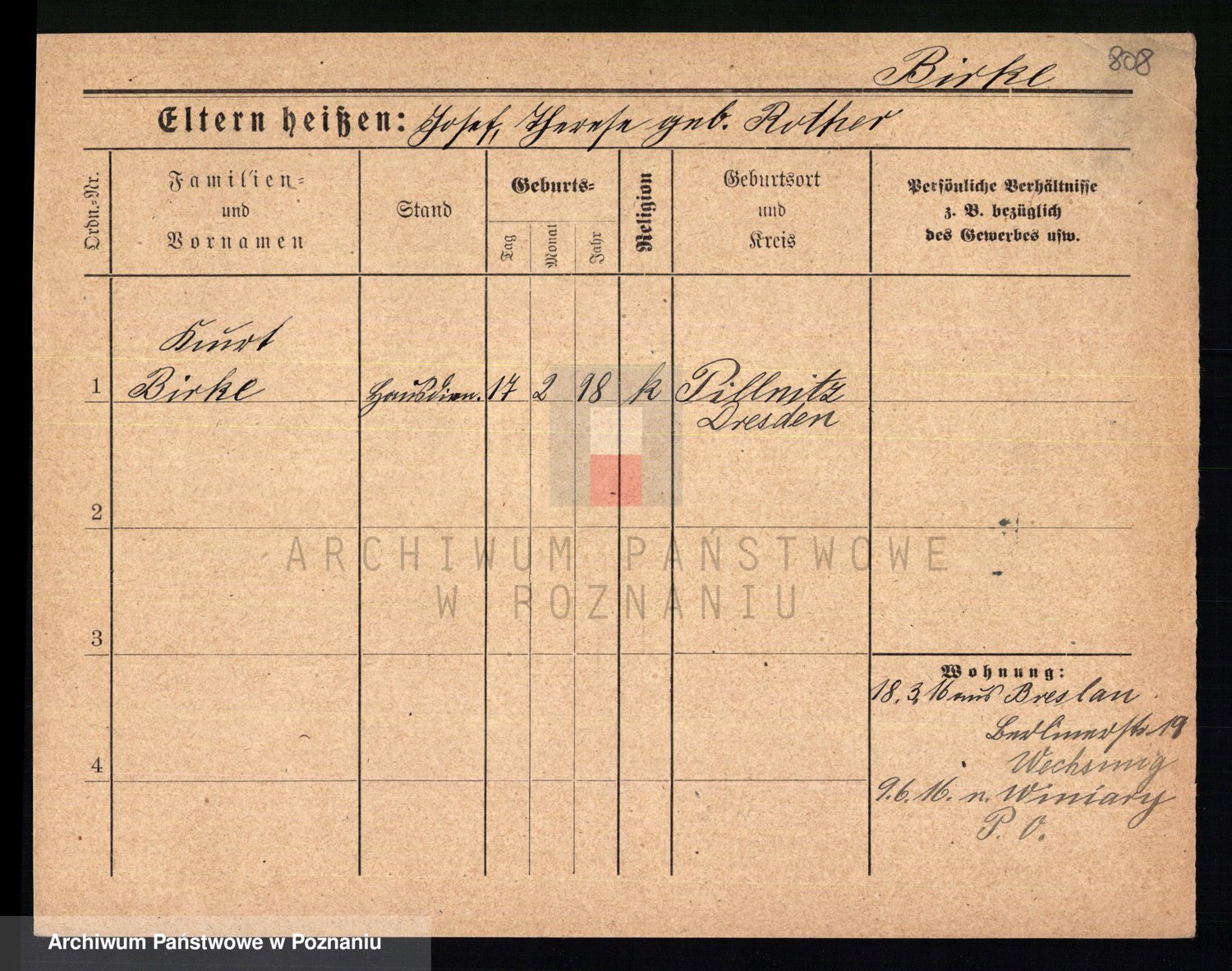Bünger z d. Niedrig 1 voto Sporakowski, Karoline