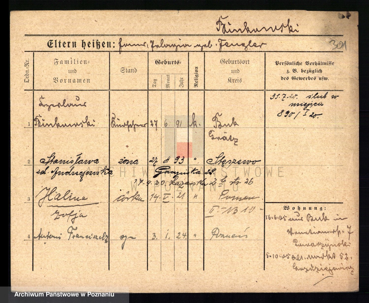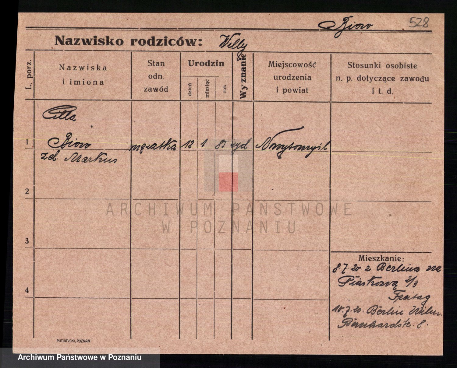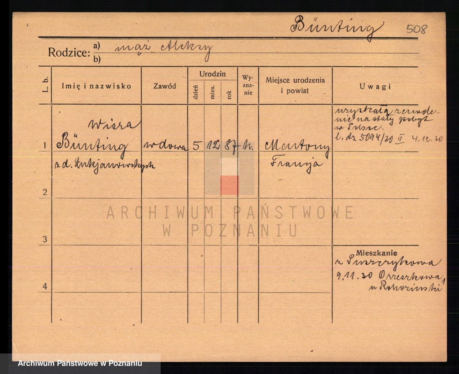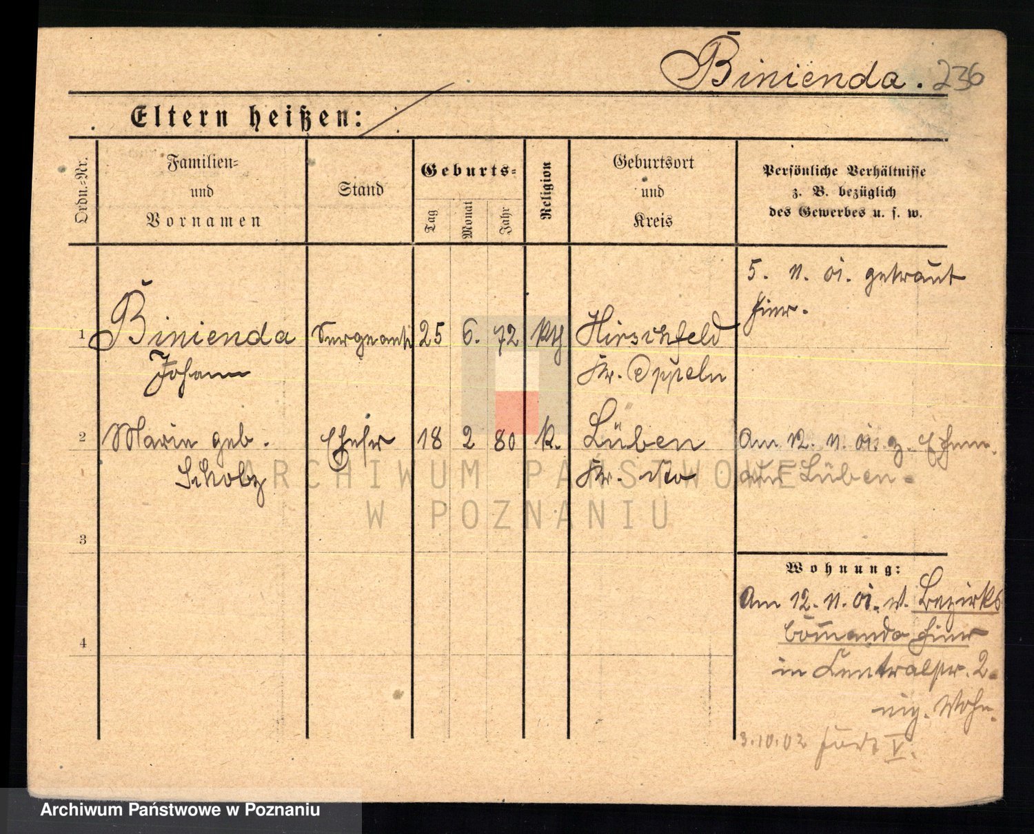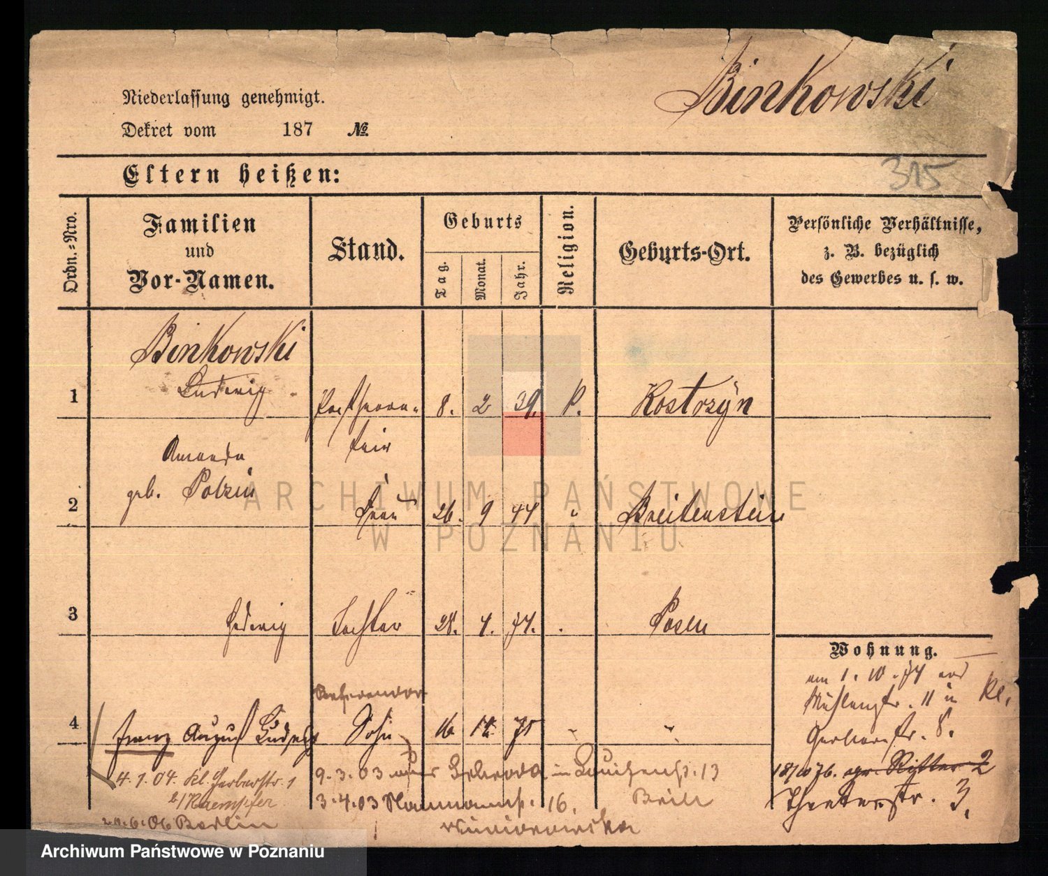 Bünger z d. Niedrig 1 voto Sporakowski, Karoline