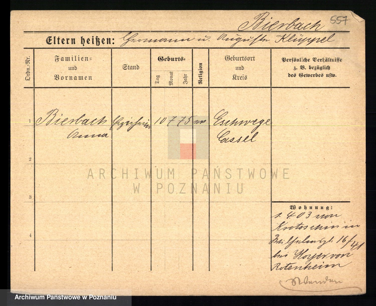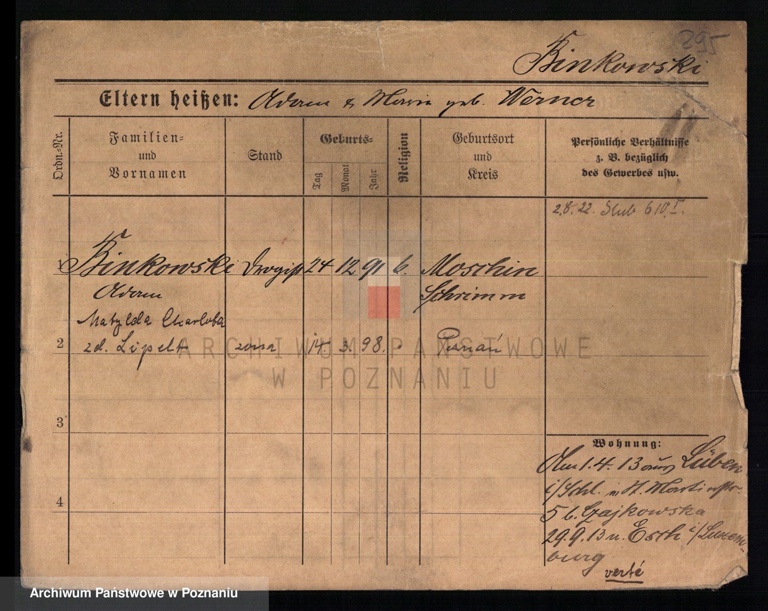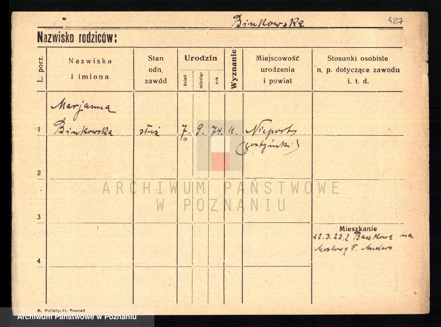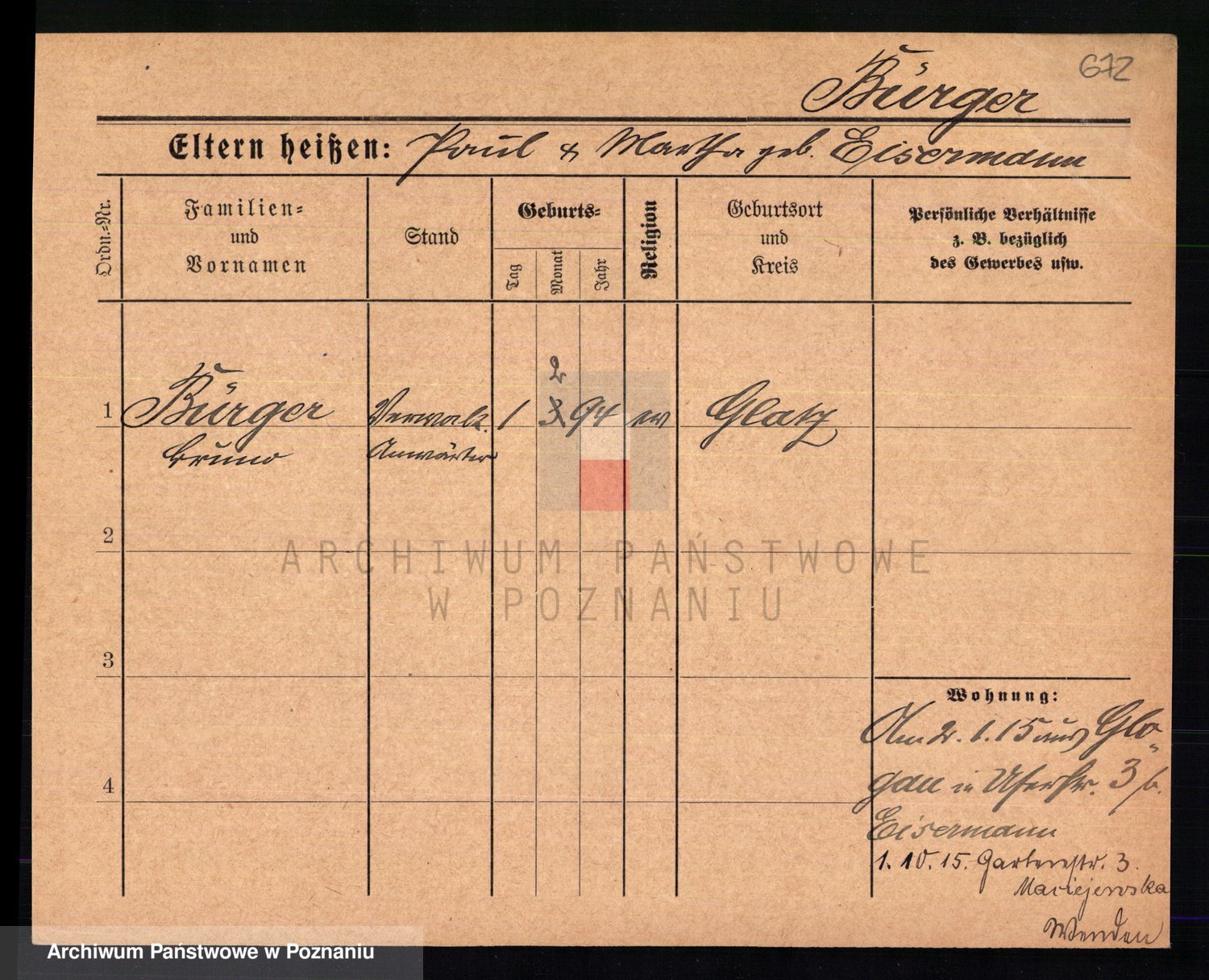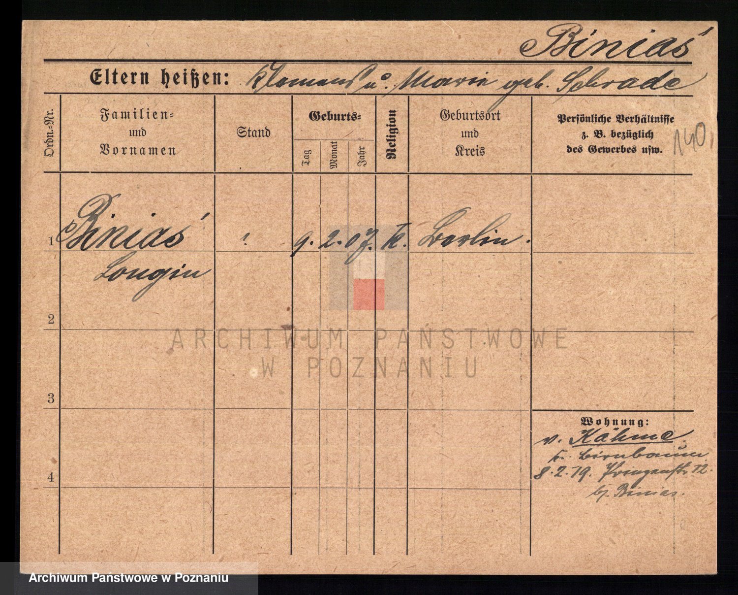 Bünger z d. Niedrig 1 voto Sporakowski, Karoline