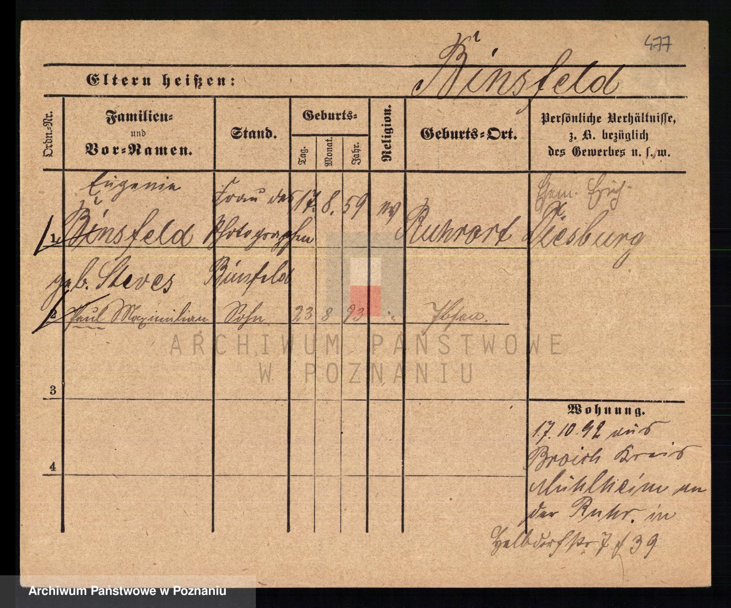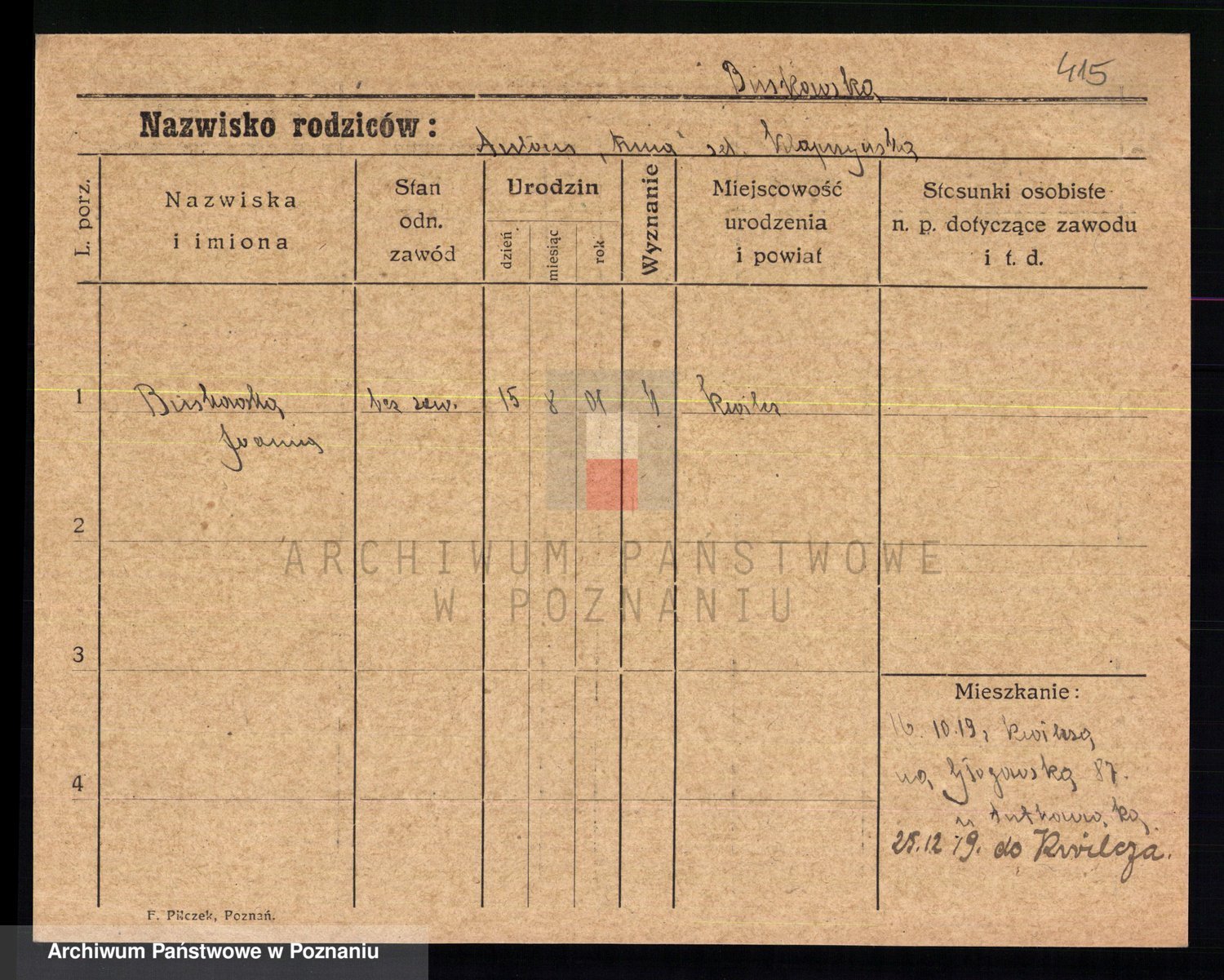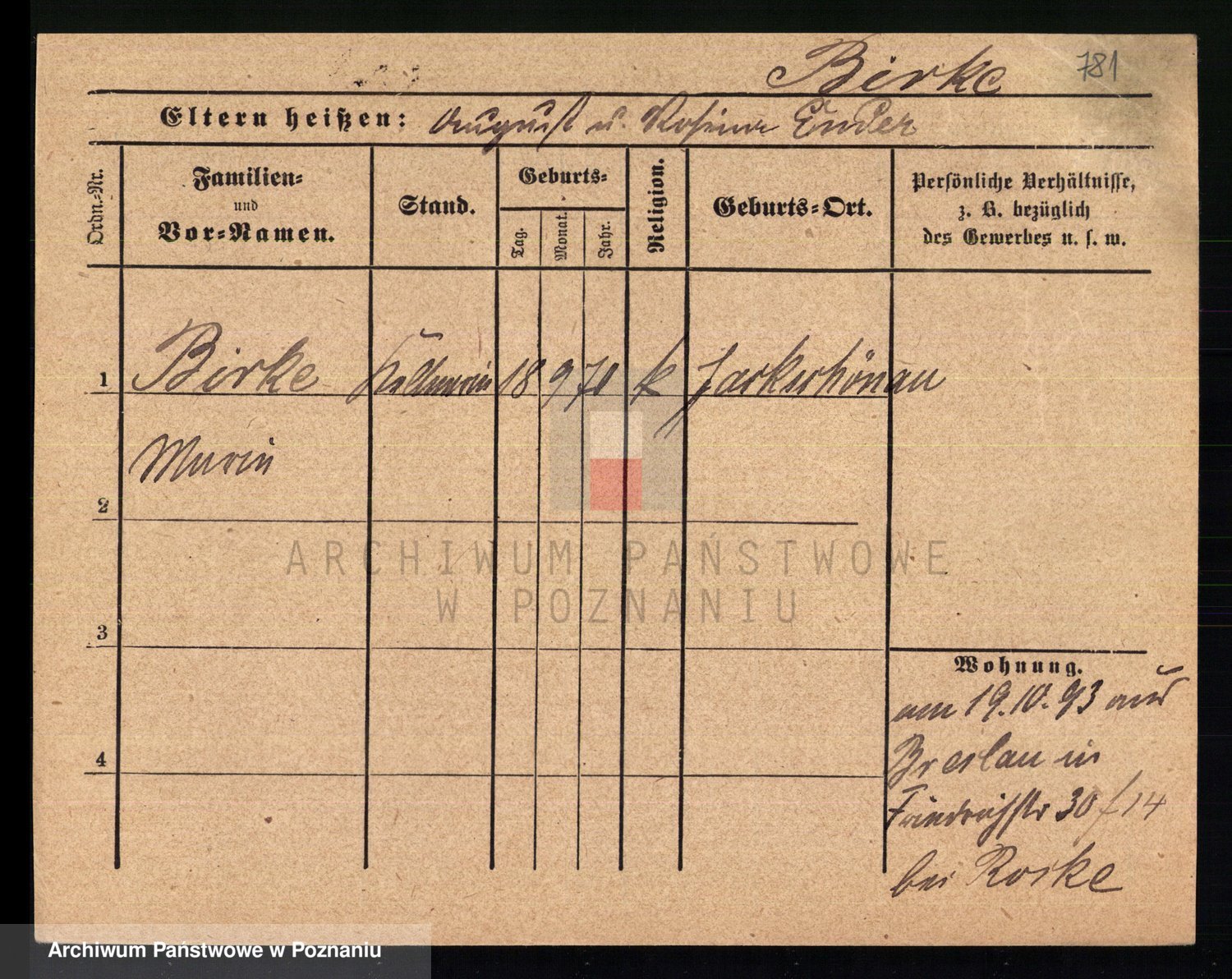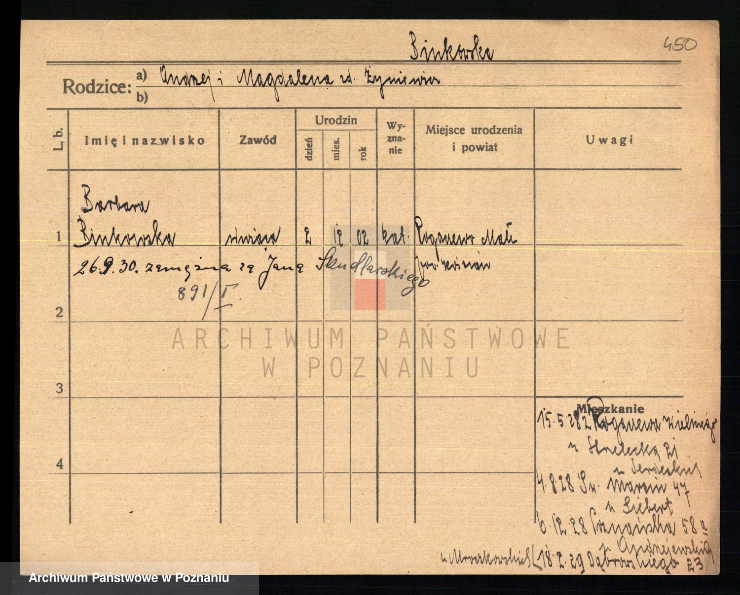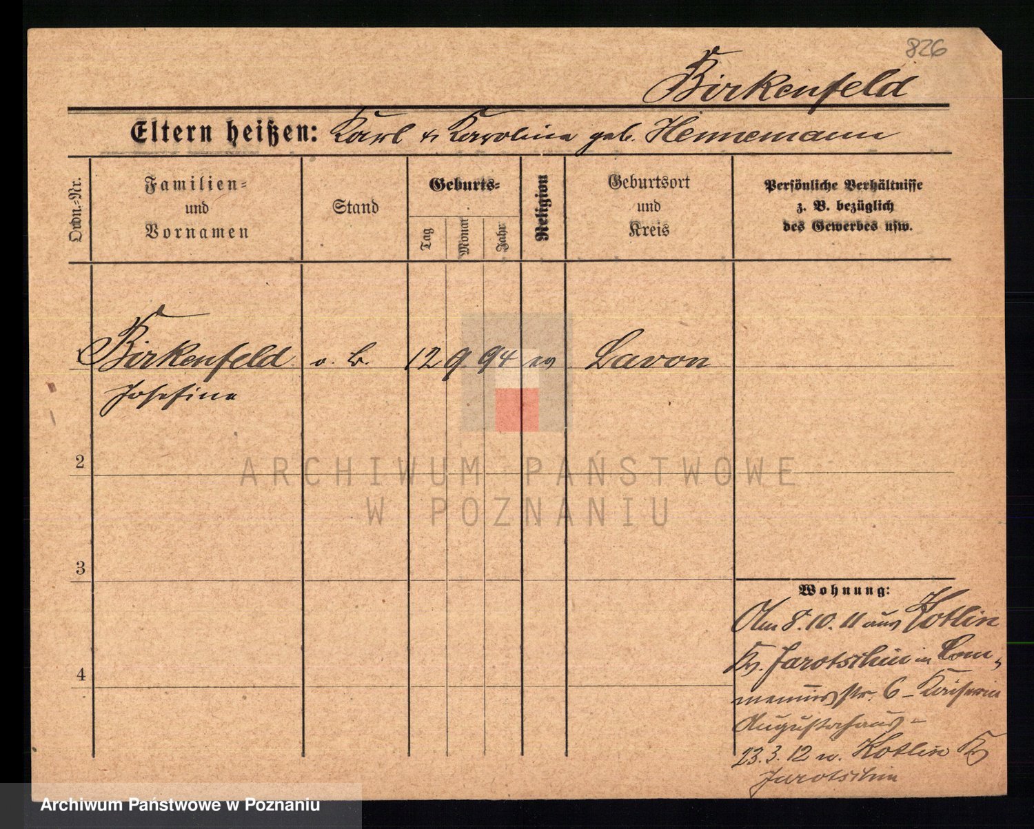 Bünger z d. Niedrig 1 voto Sporakowski, Karoline
