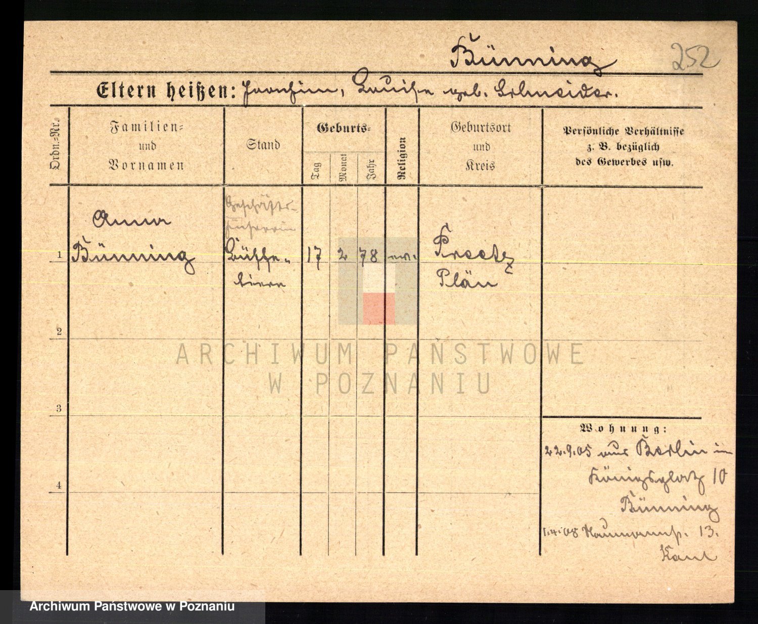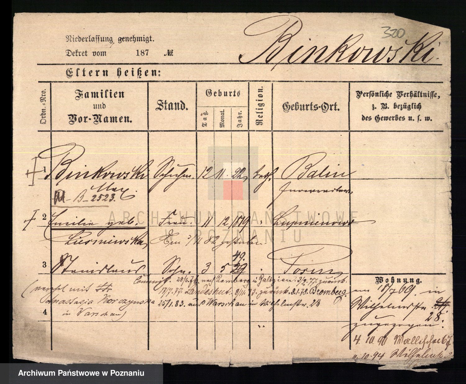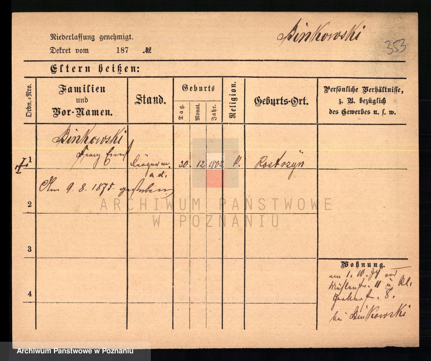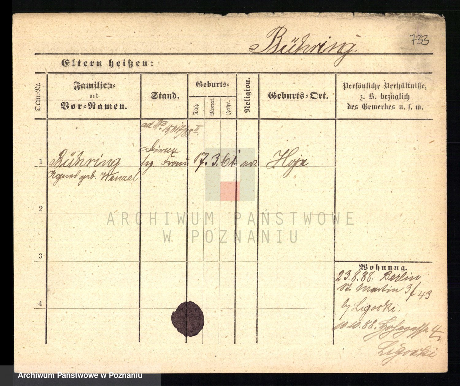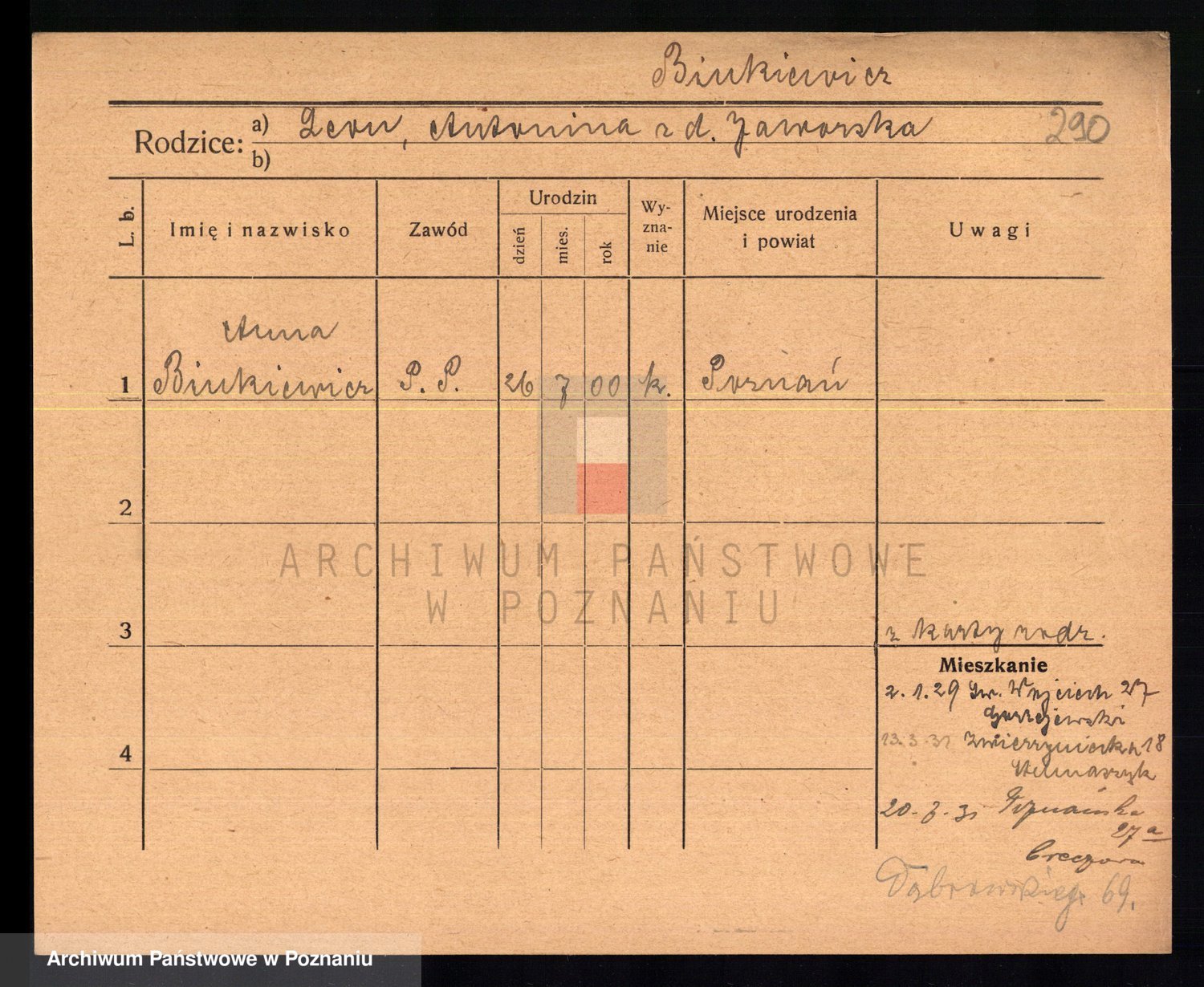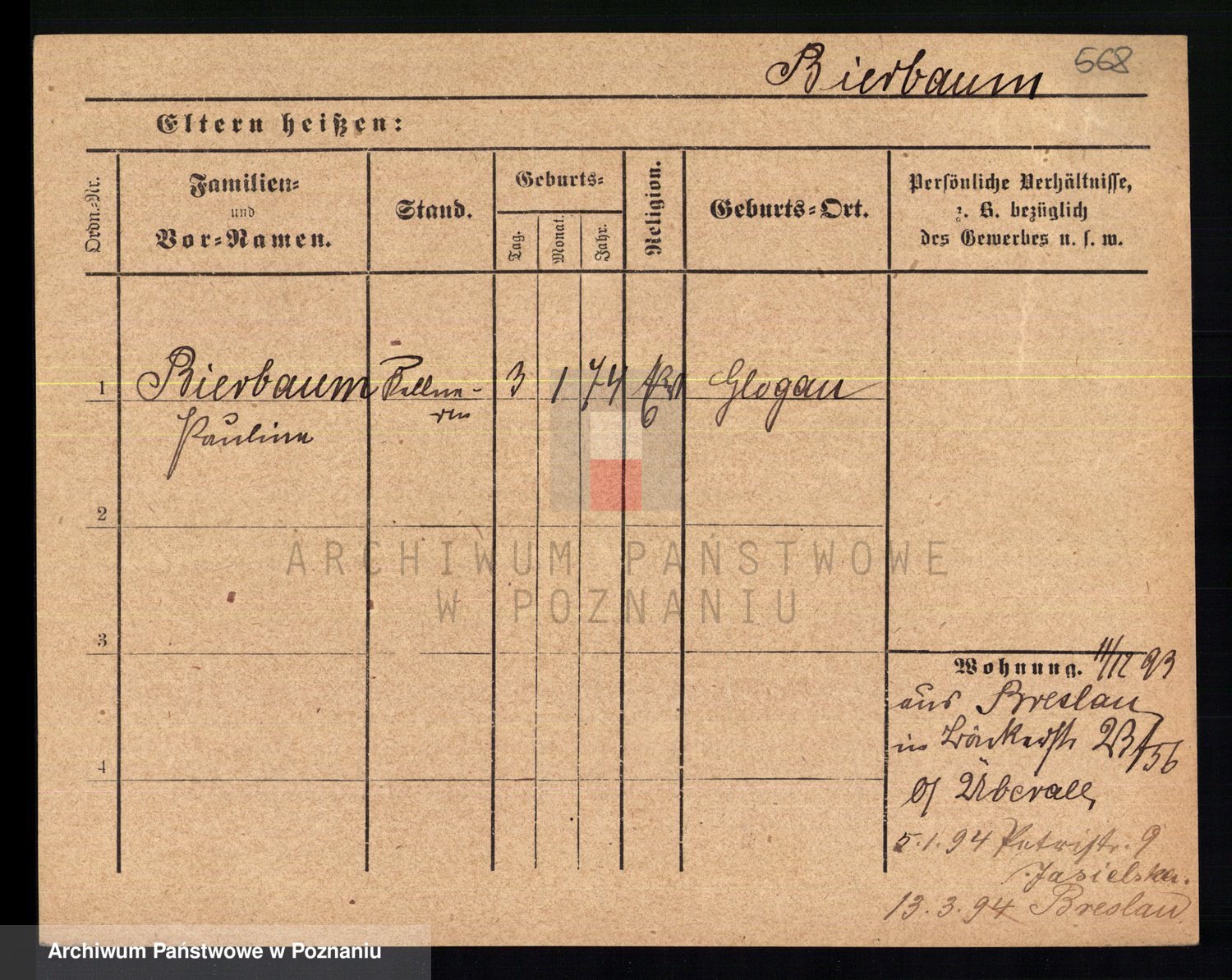 Bünger z d. Niedrig 1 voto Sporakowski, Karoline
