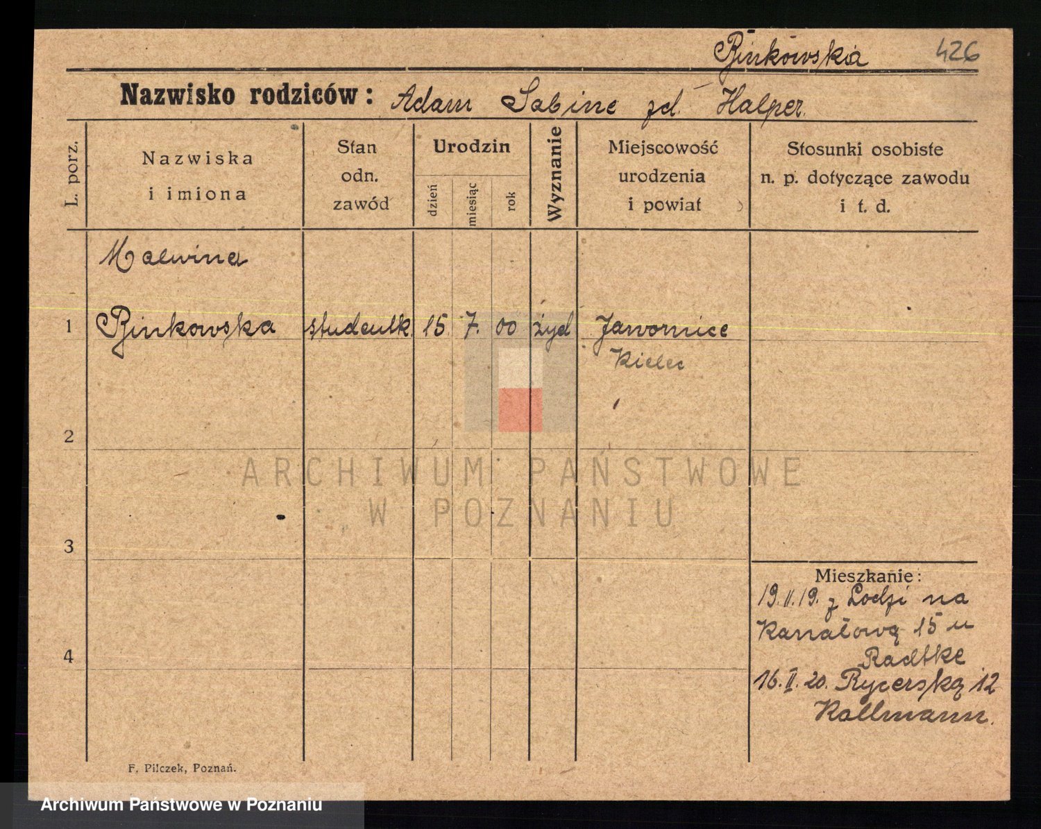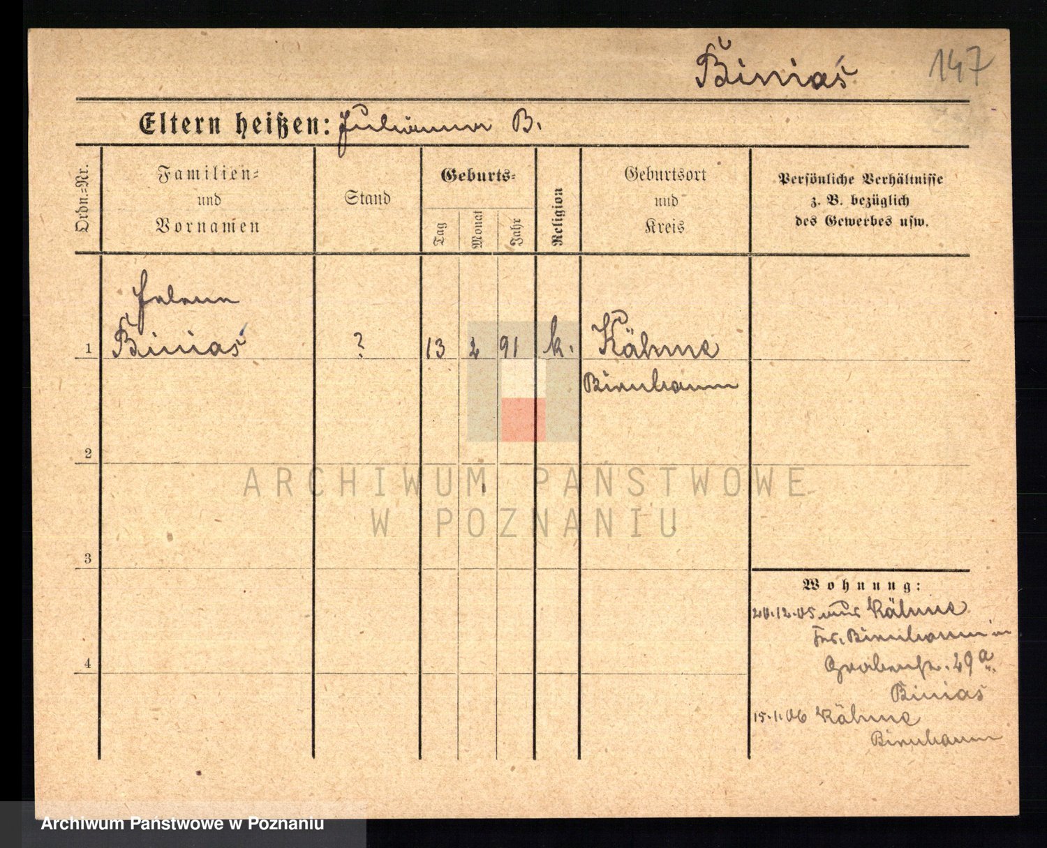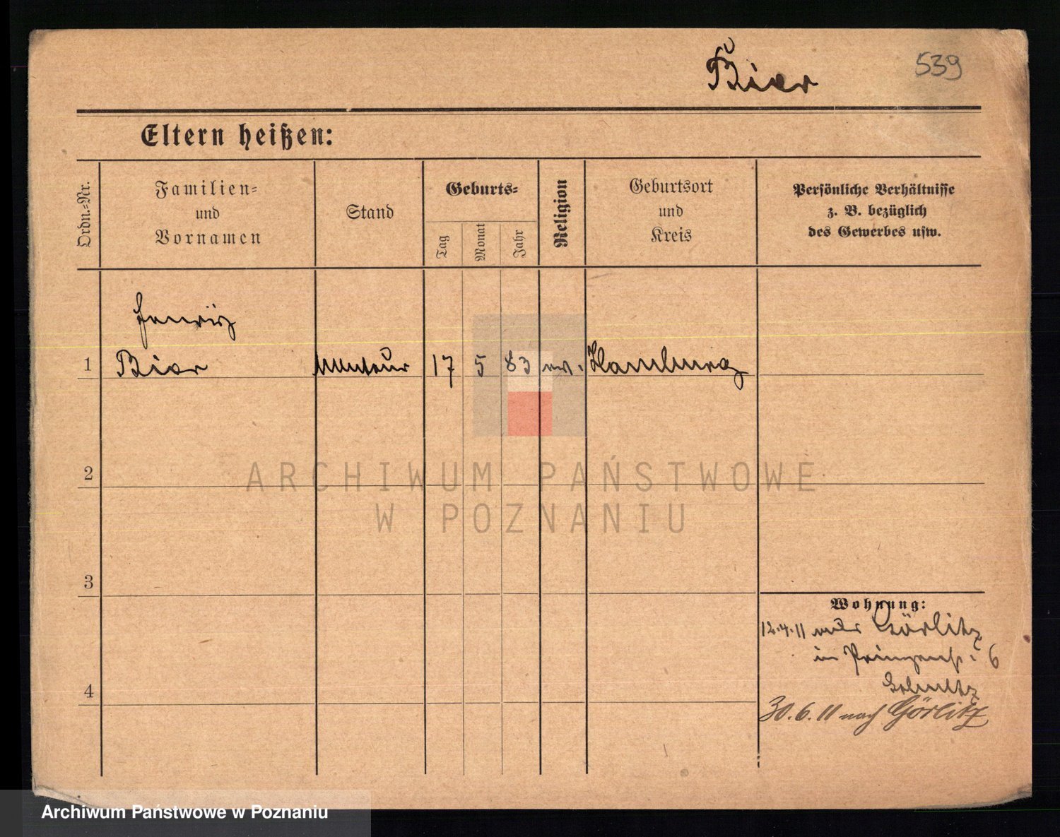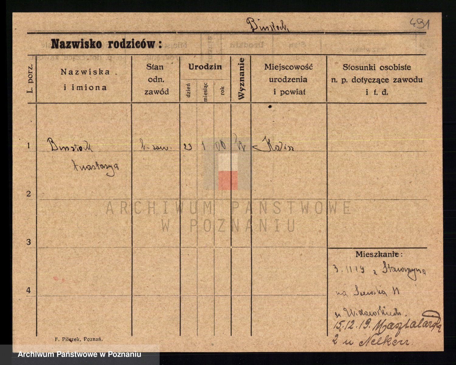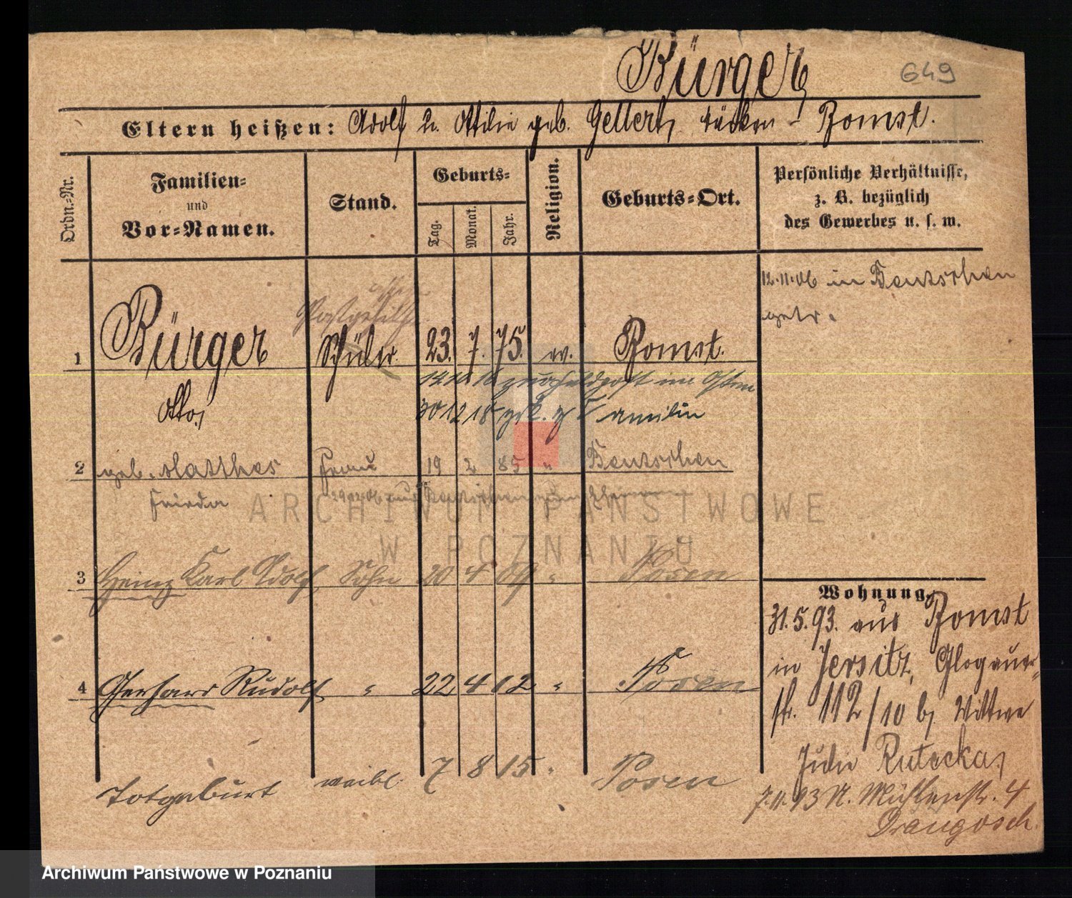 Bünger z d. Niedrig 1 voto Sporakowski, Karoline