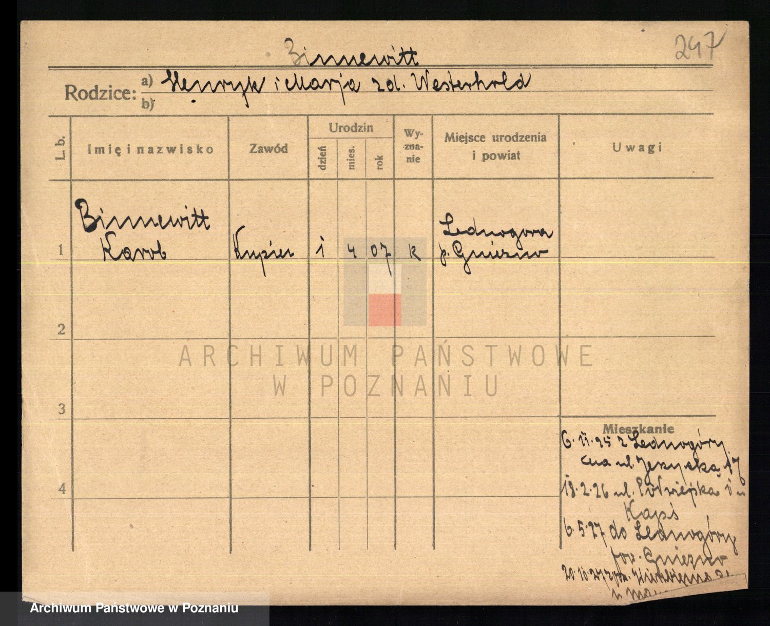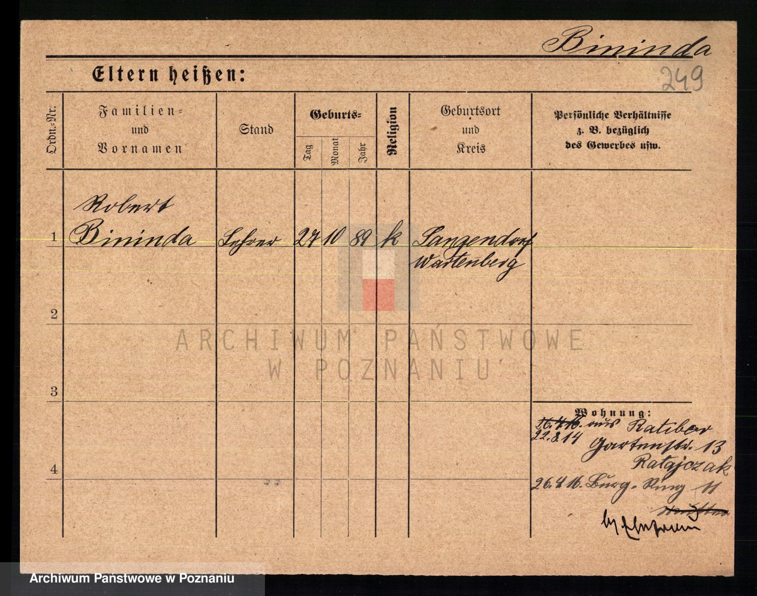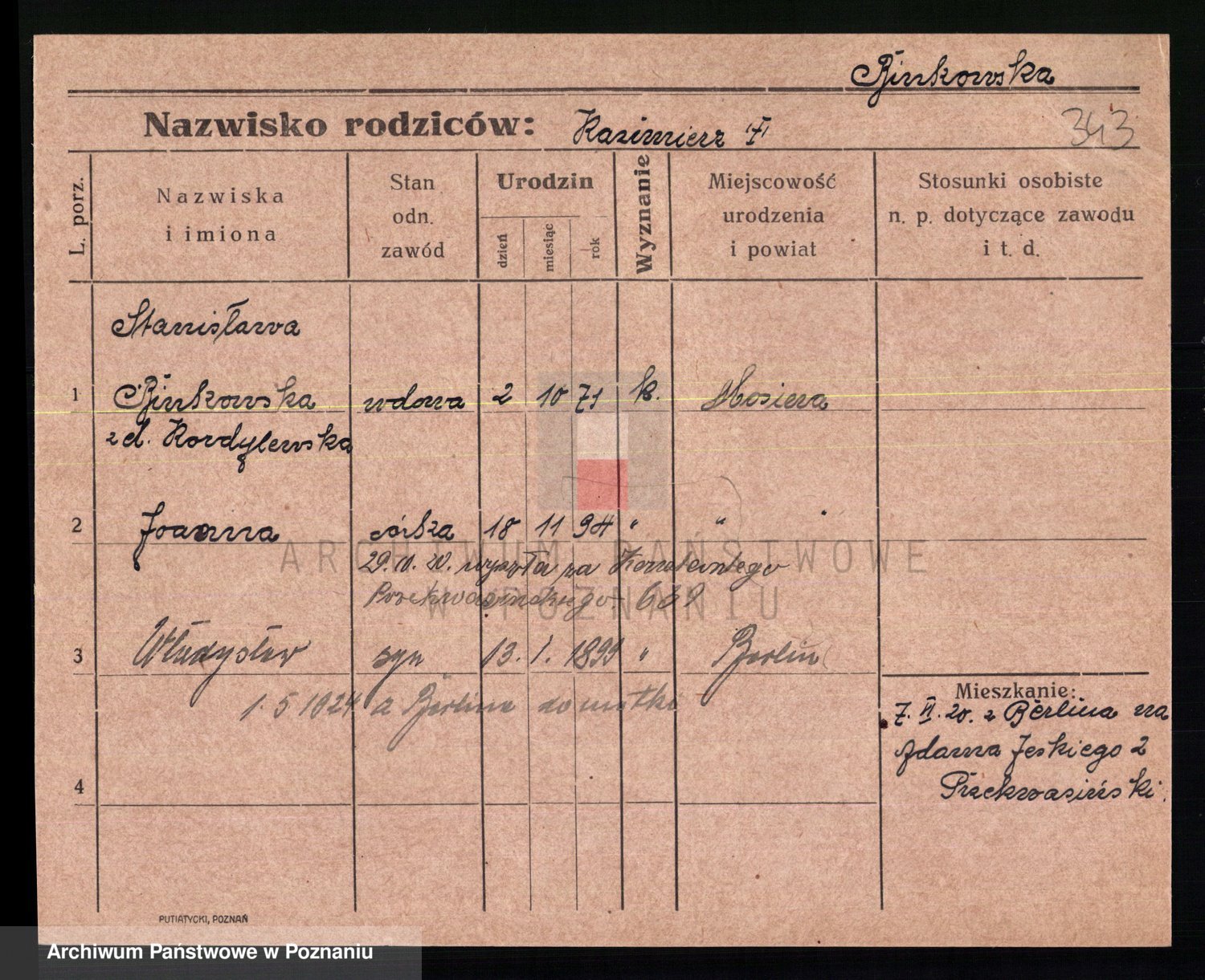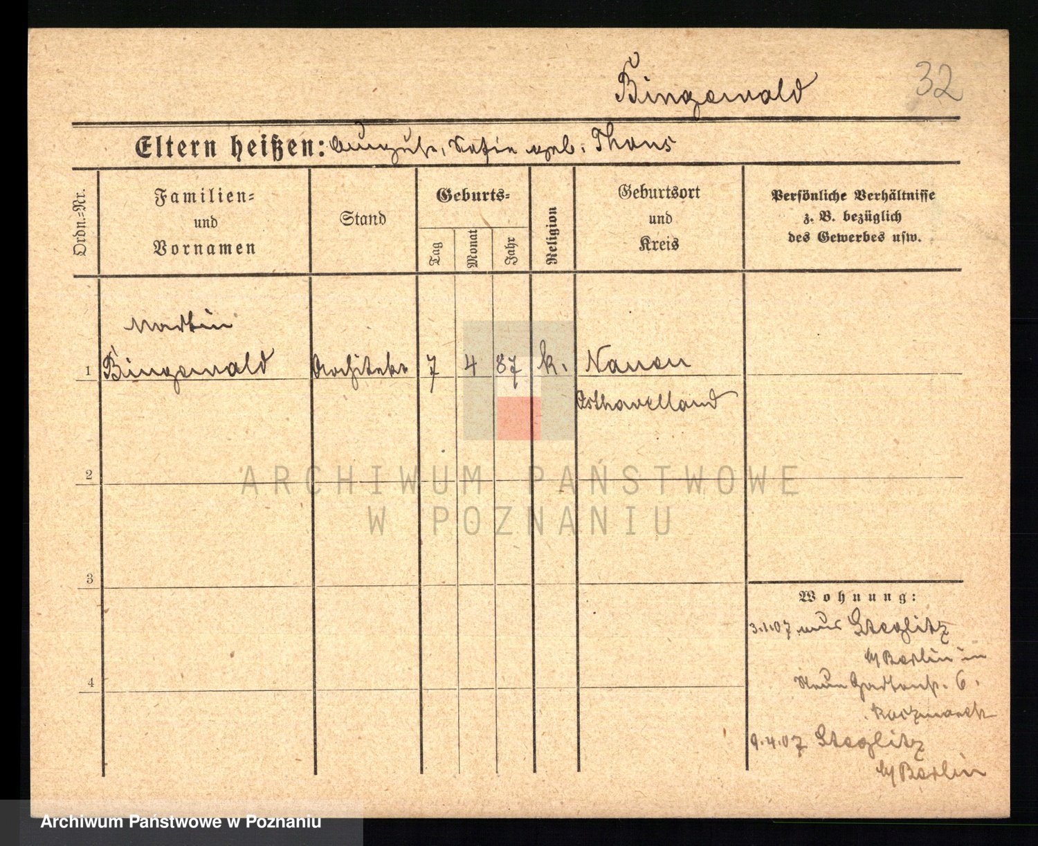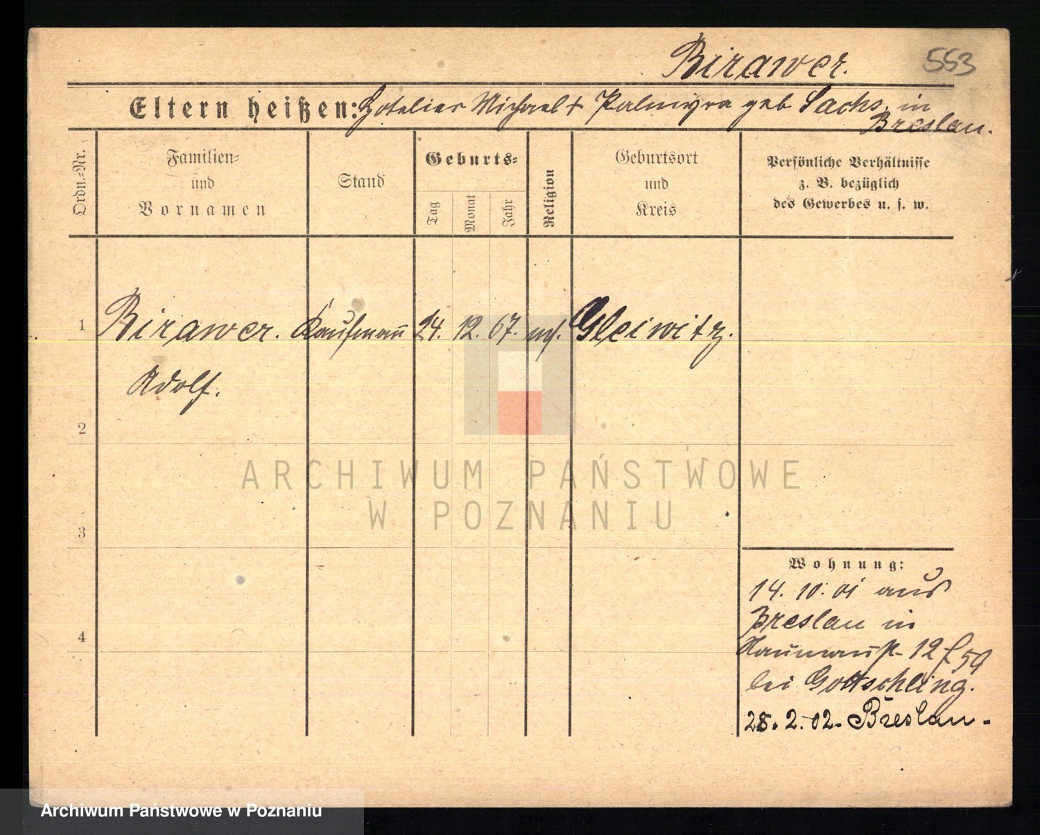 Bünger z d. Niedrig 1 voto Sporakowski, Karoline
