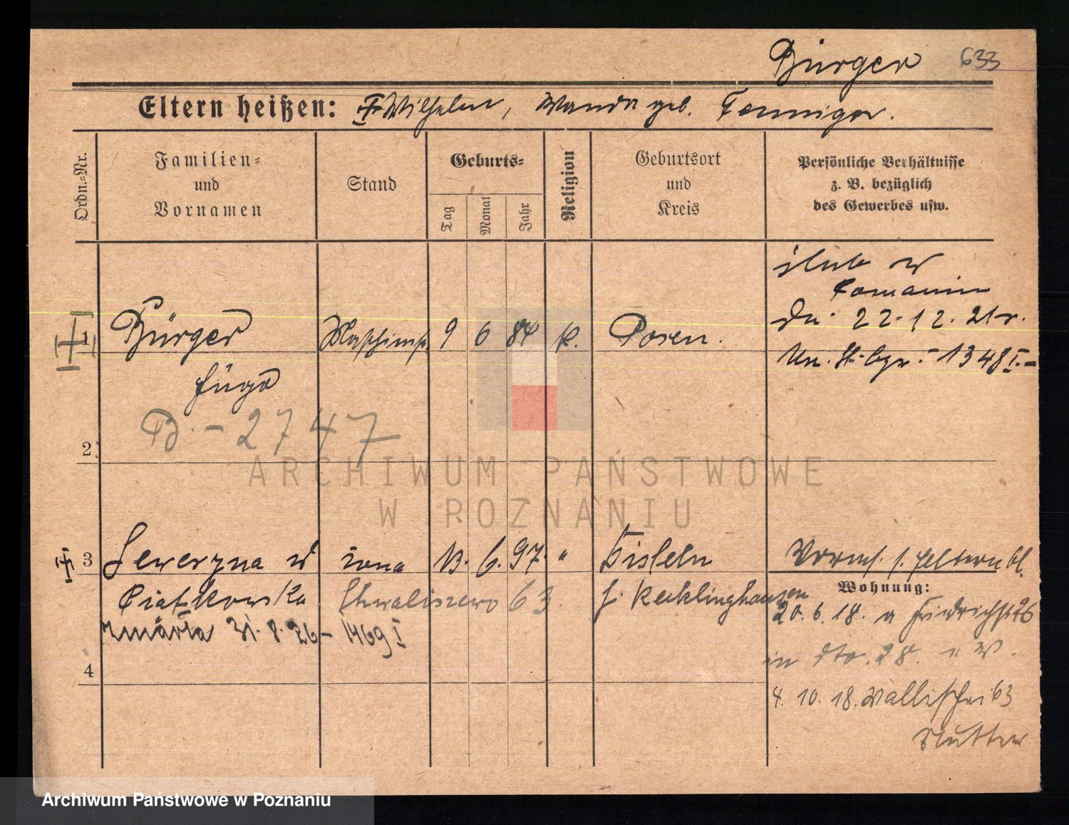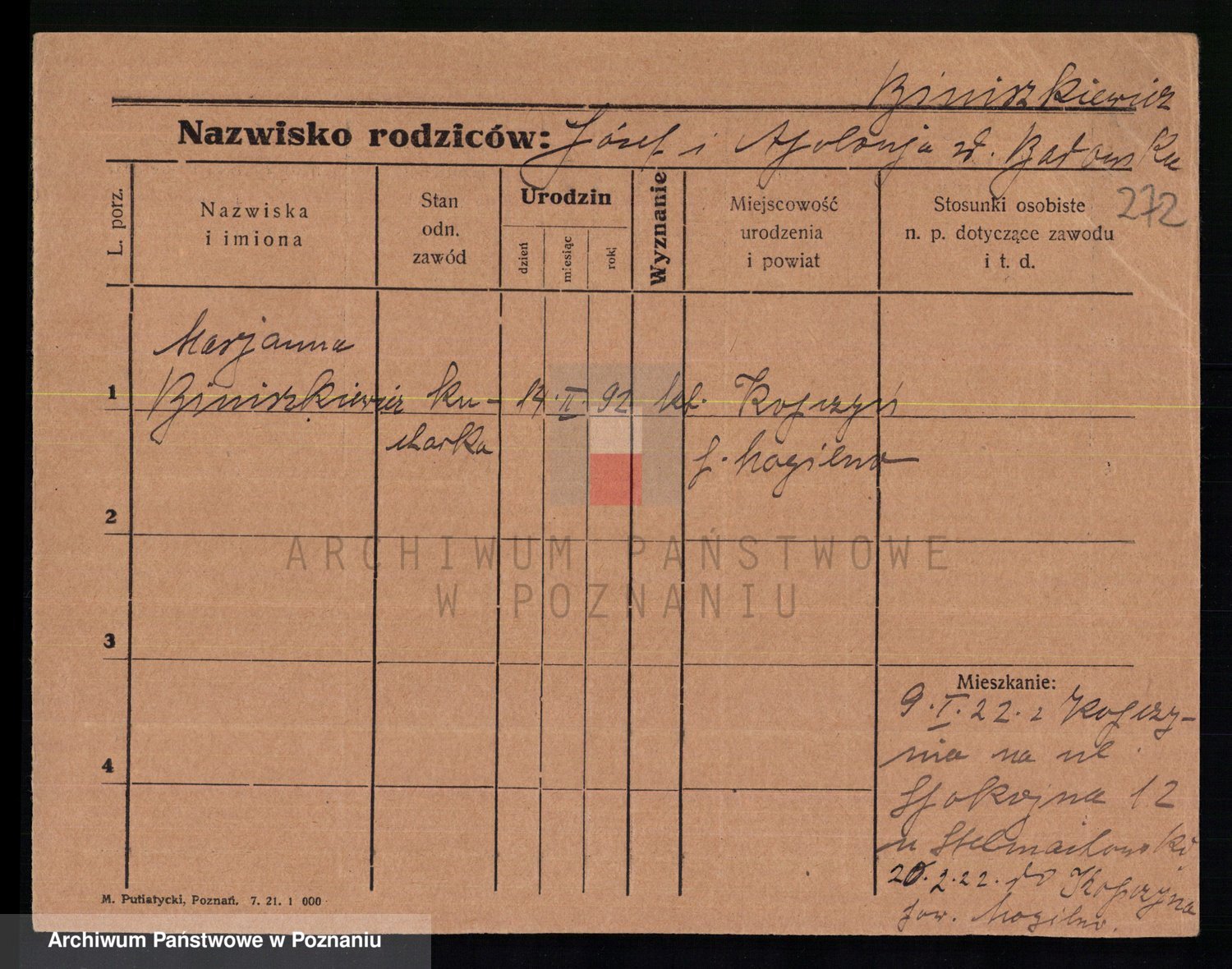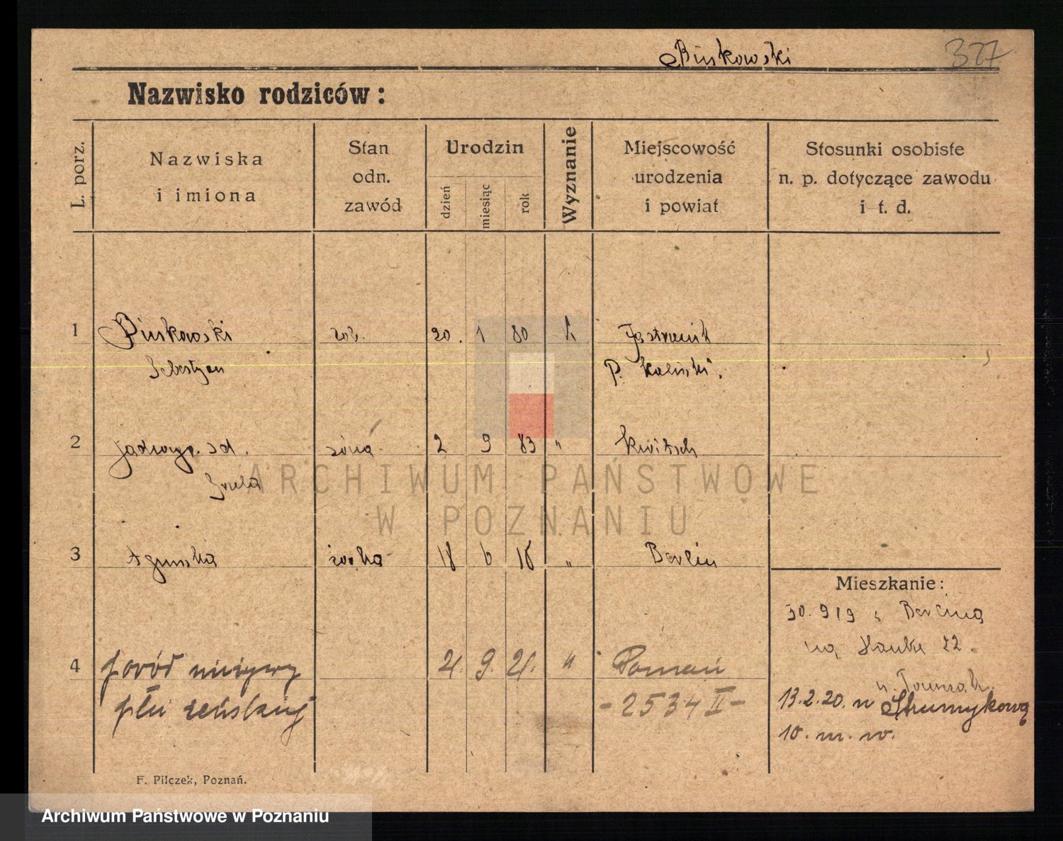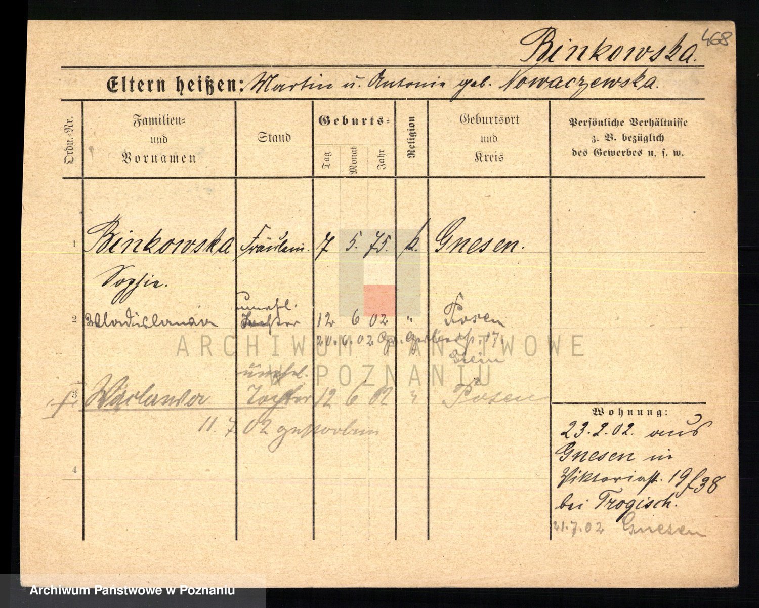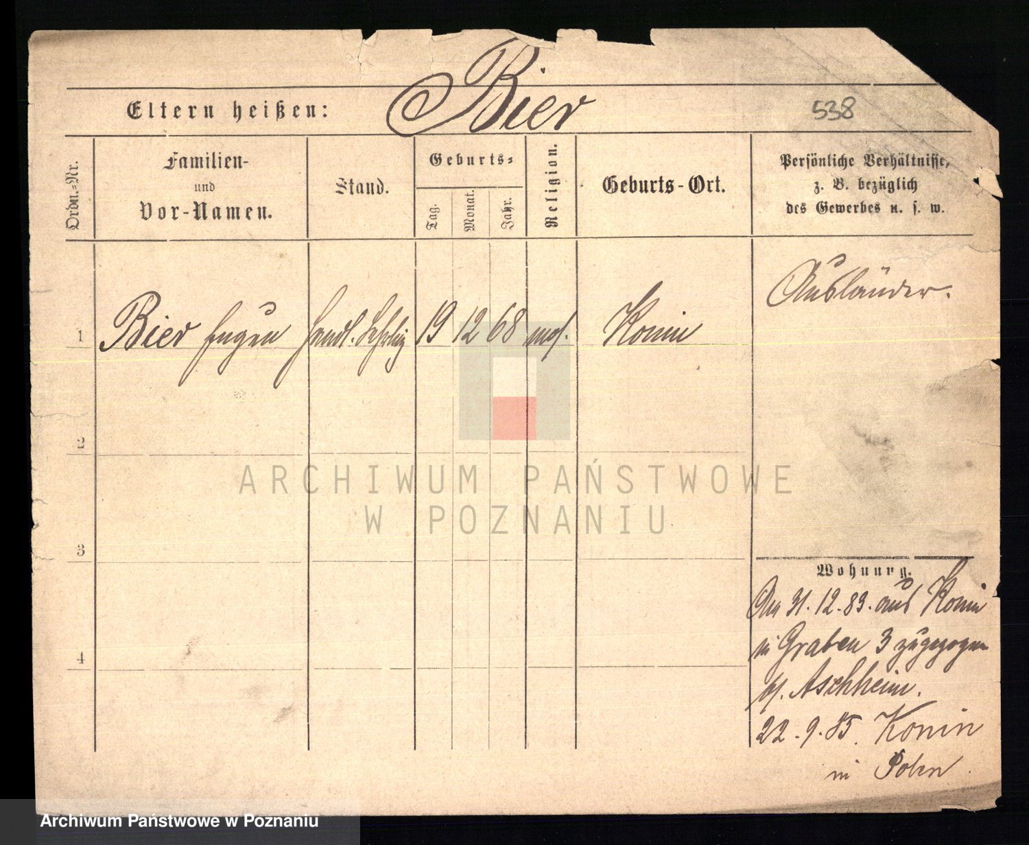 Bünger z d. Niedrig 1 voto Sporakowski, Karoline