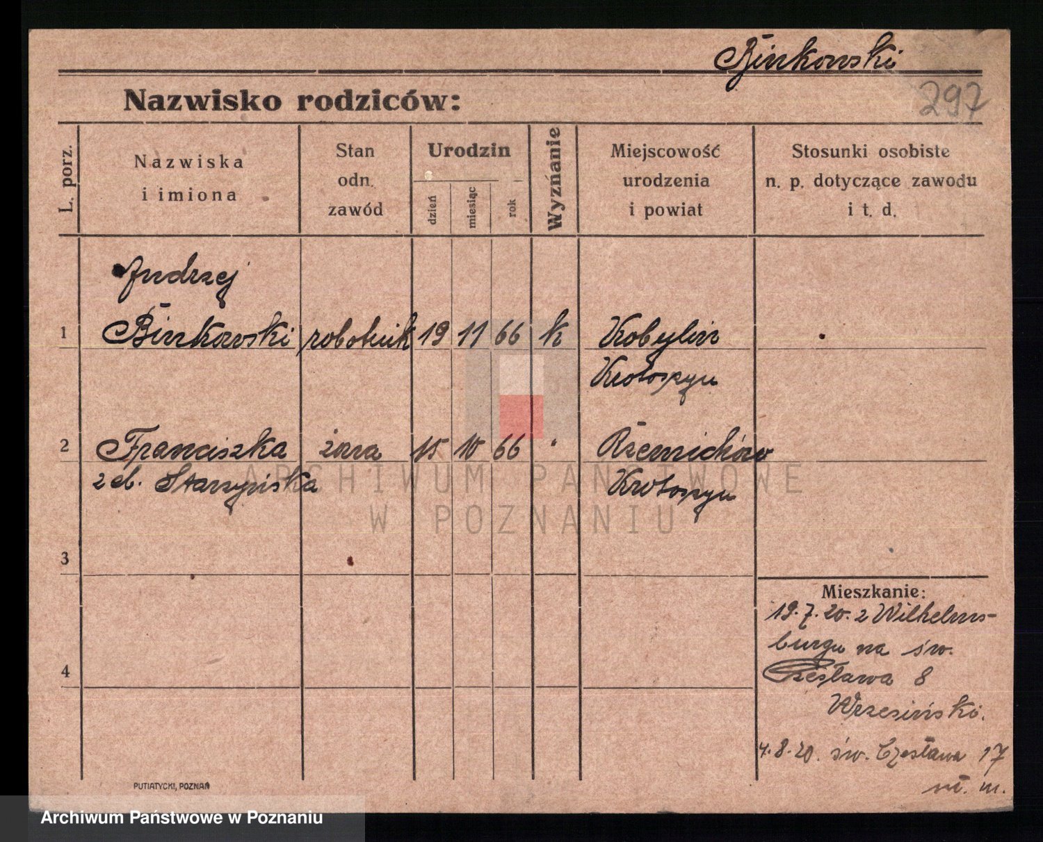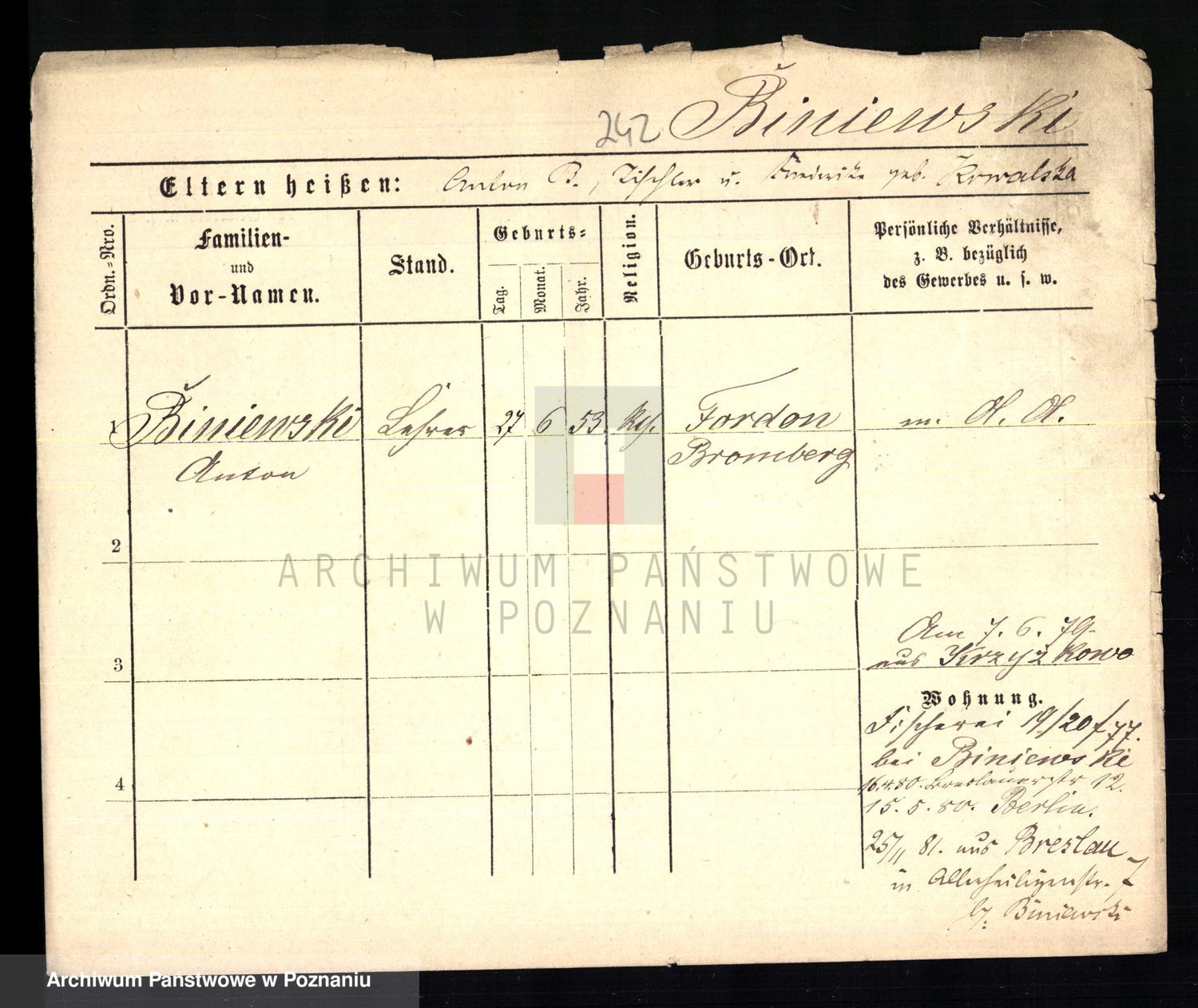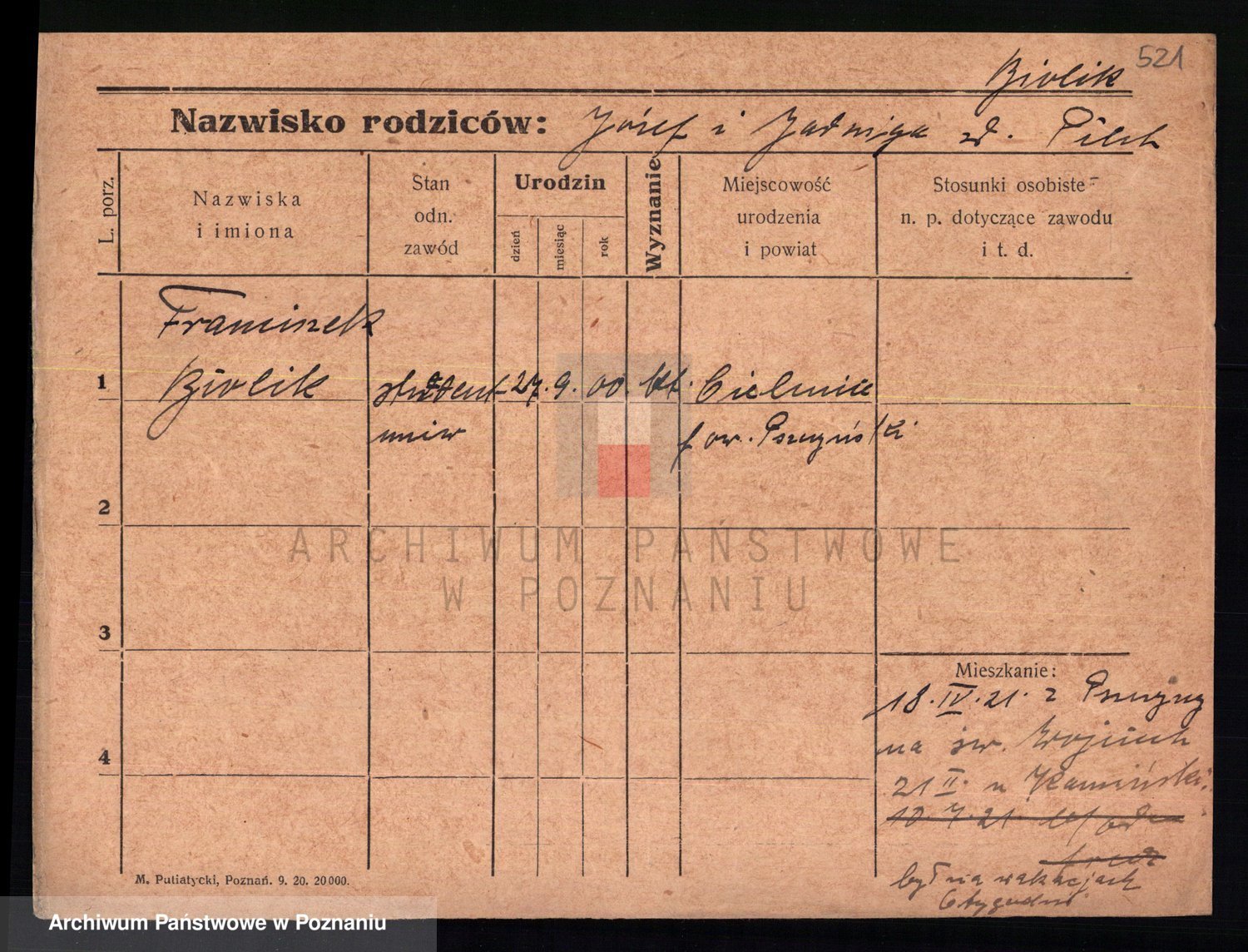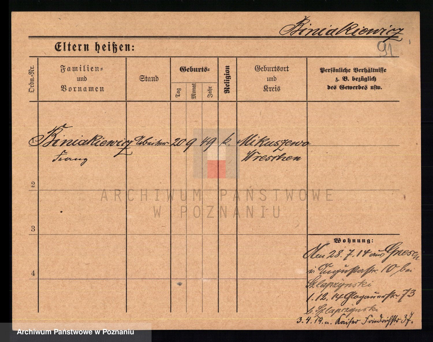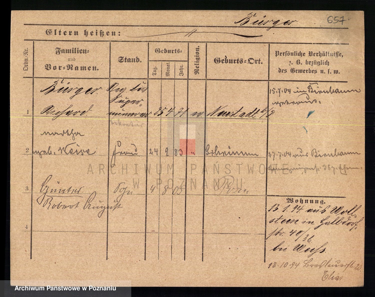 Bünger z d. Niedrig 1 voto Sporakowski, Karoline
