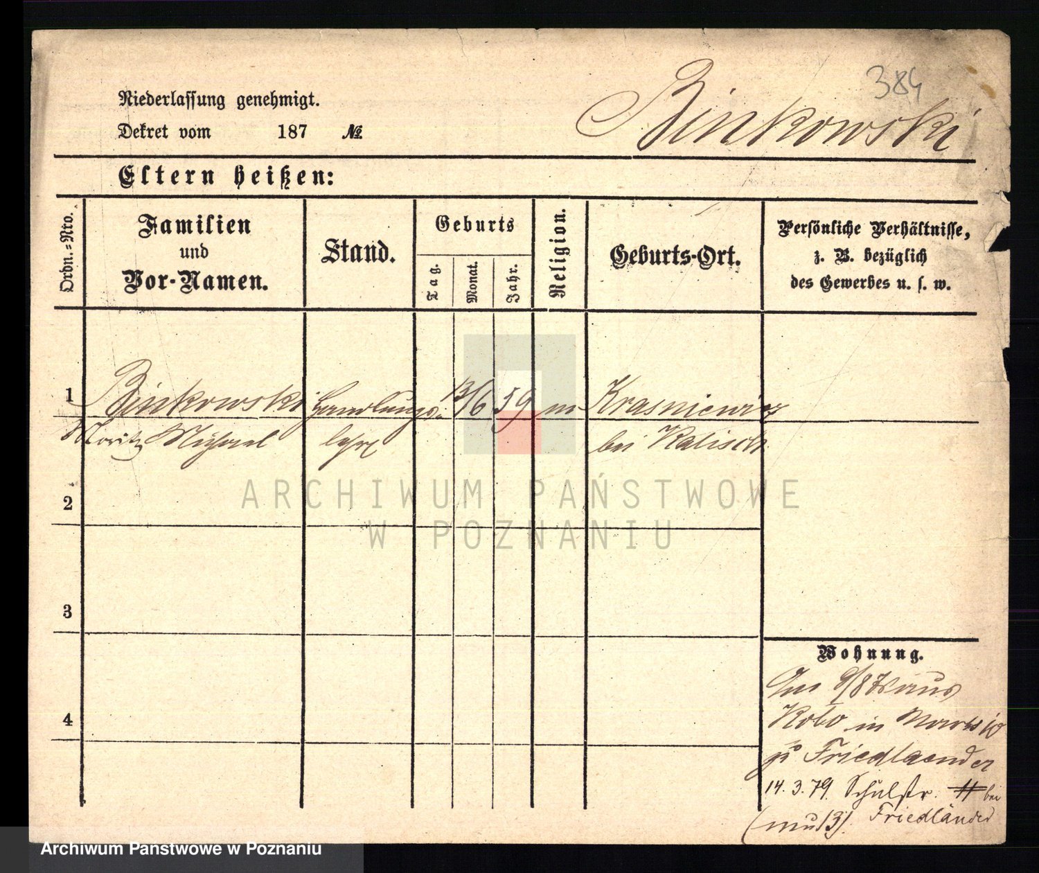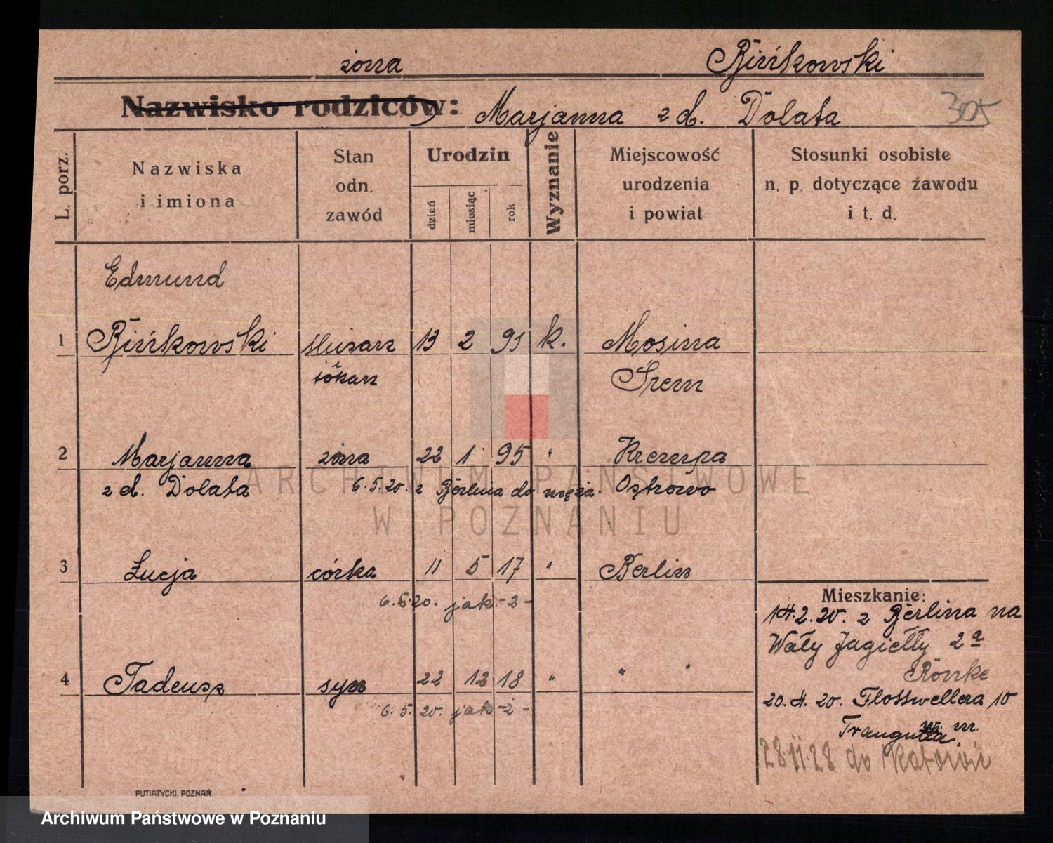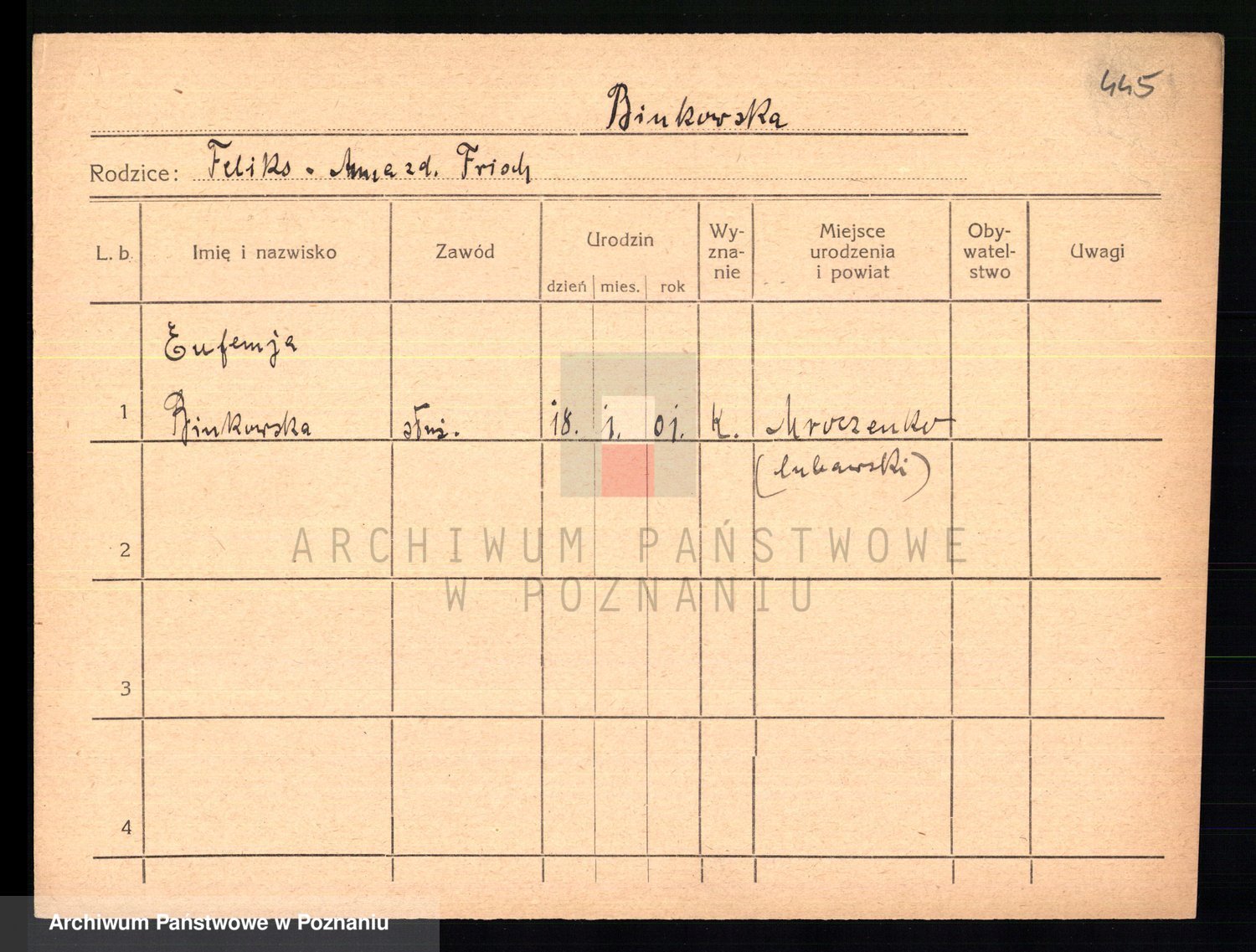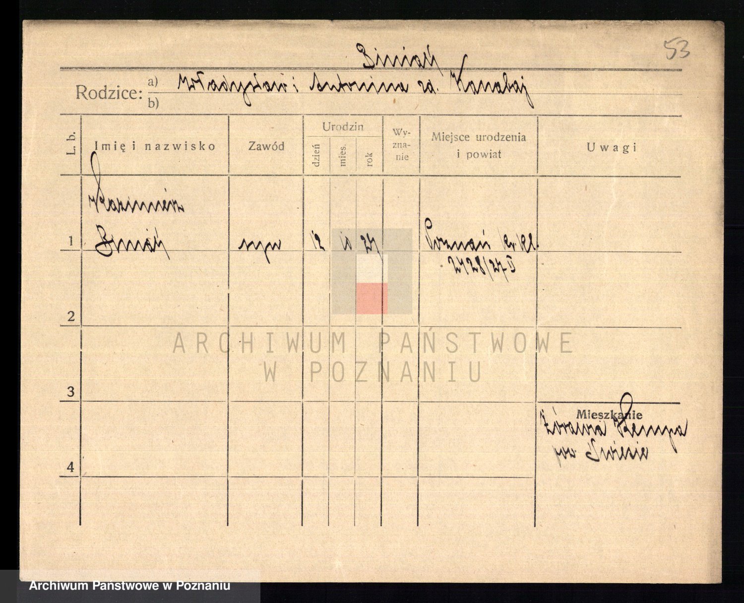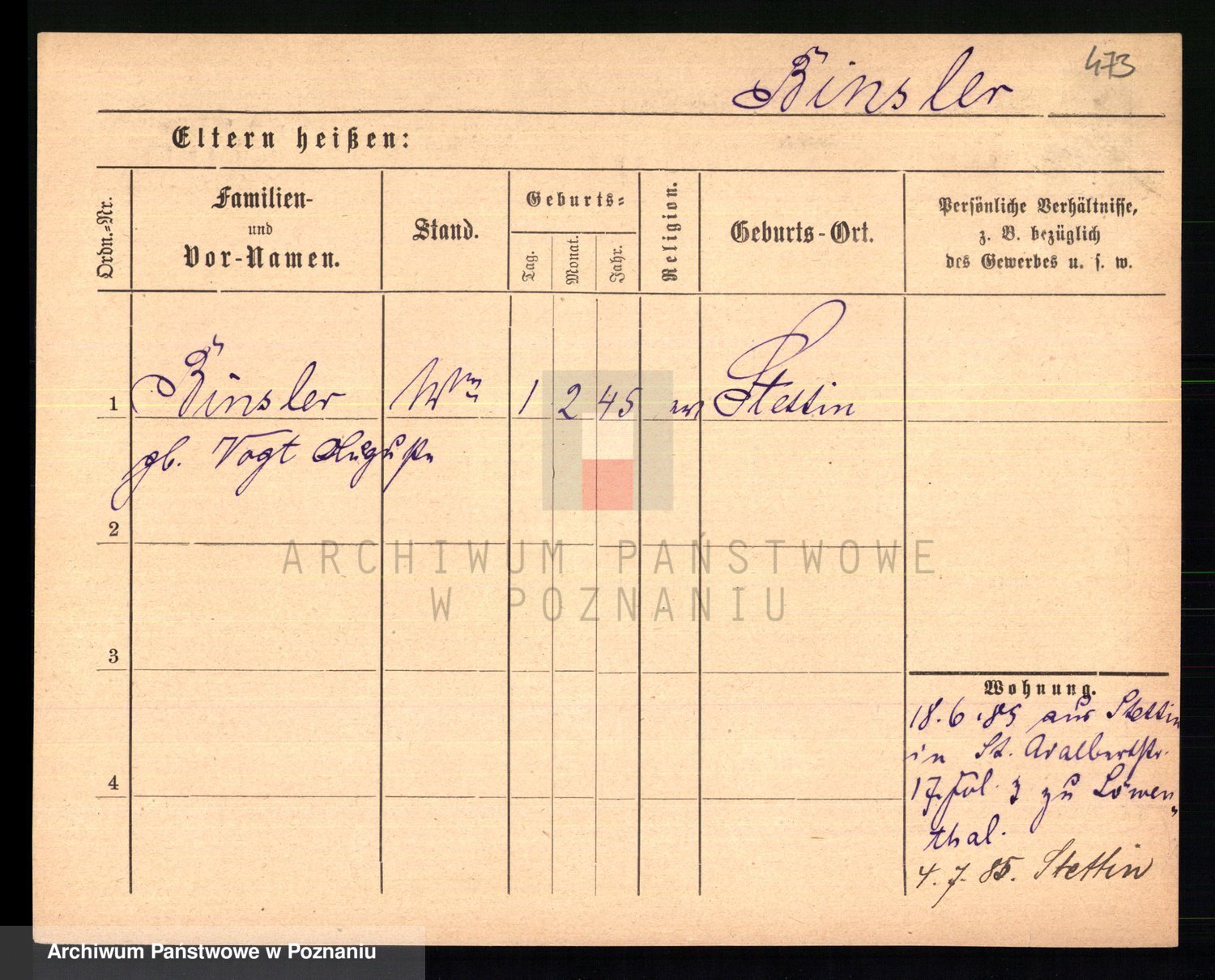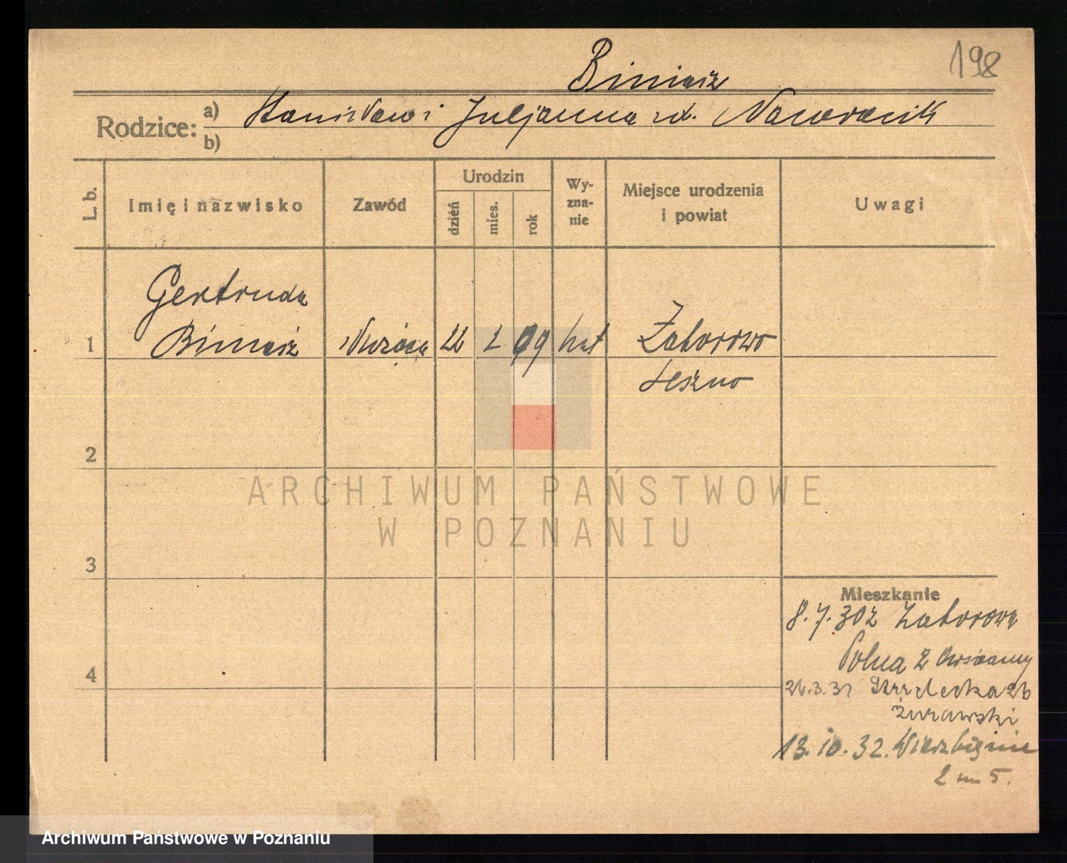 Bünger z d. Niedrig 1 voto Sporakowski, Karoline