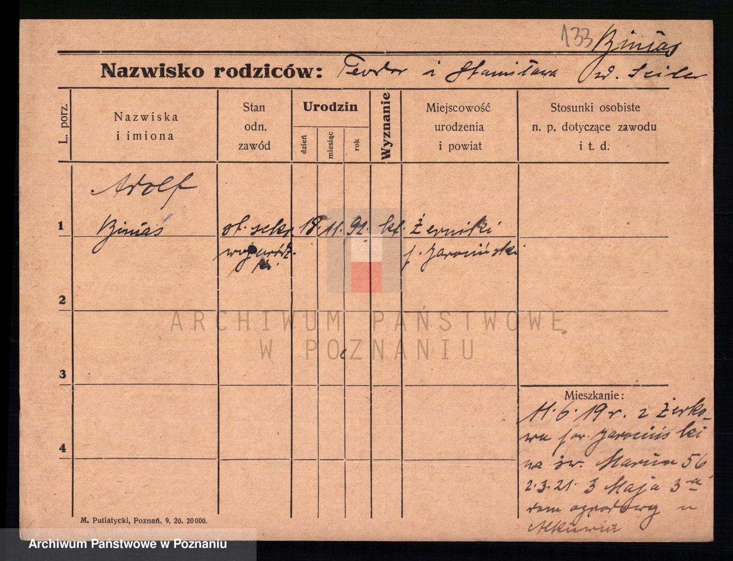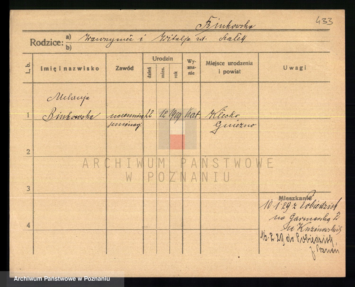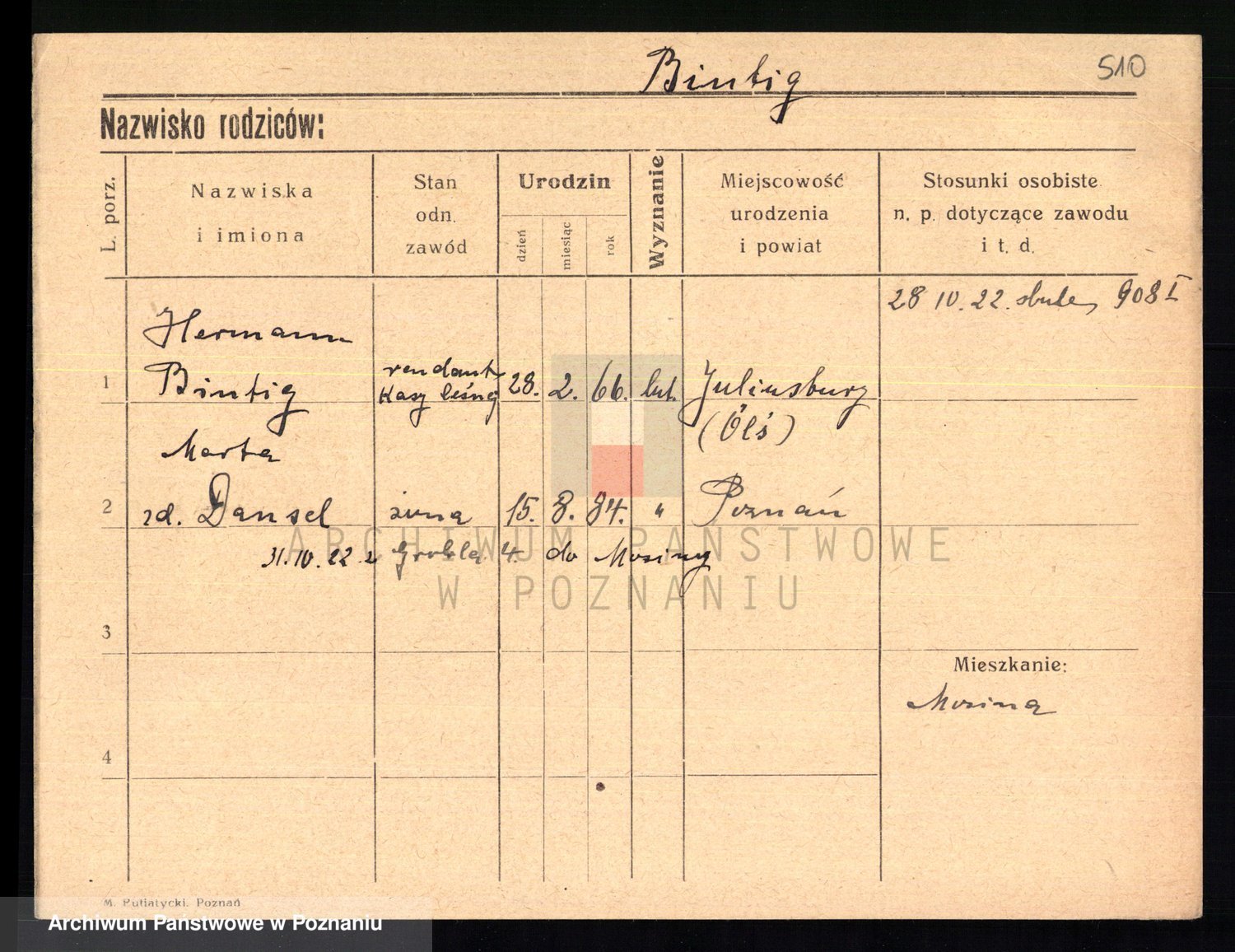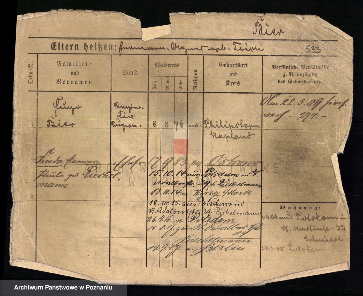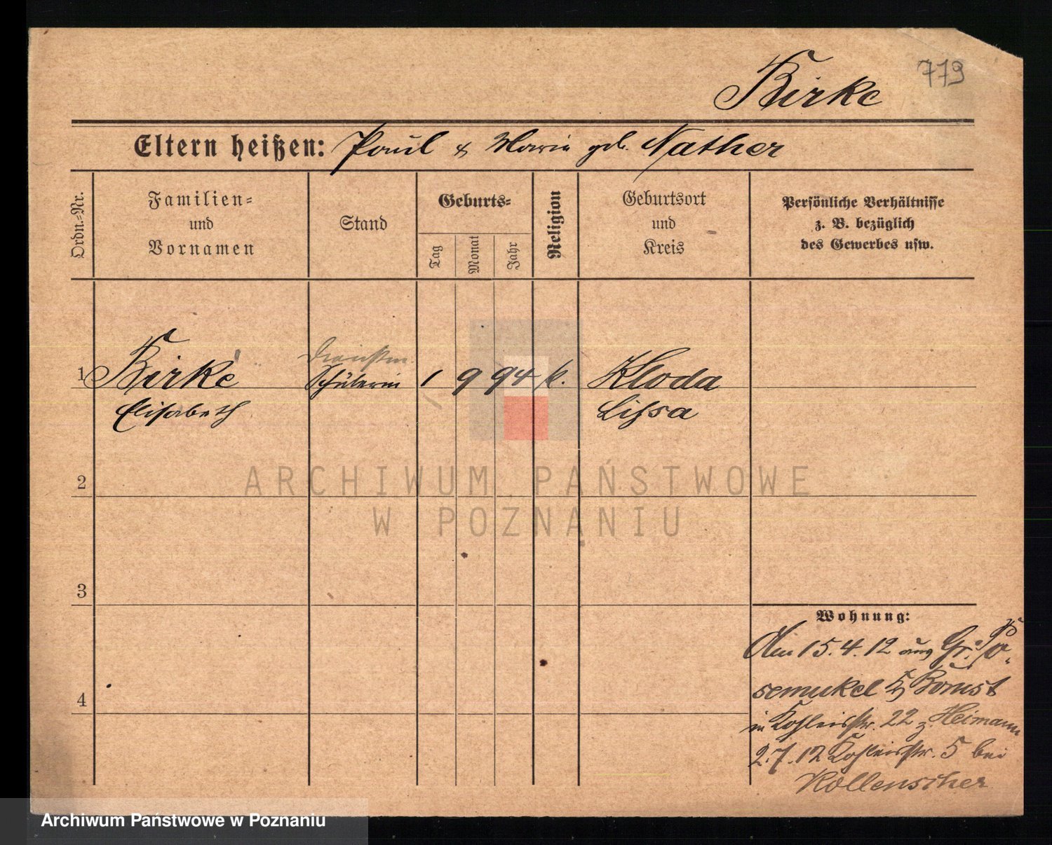 Bünger z d. Niedrig 1 voto Sporakowski, Karoline