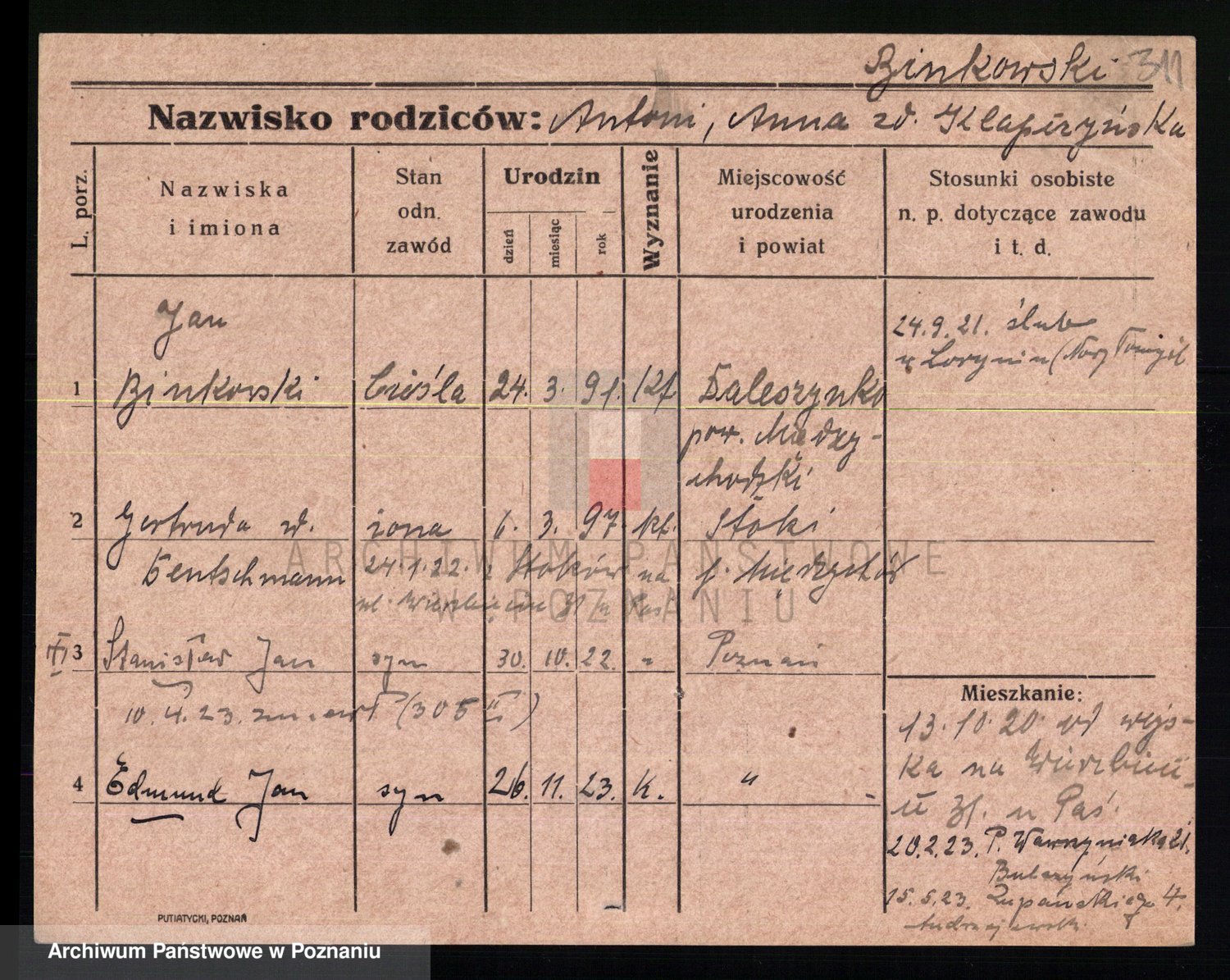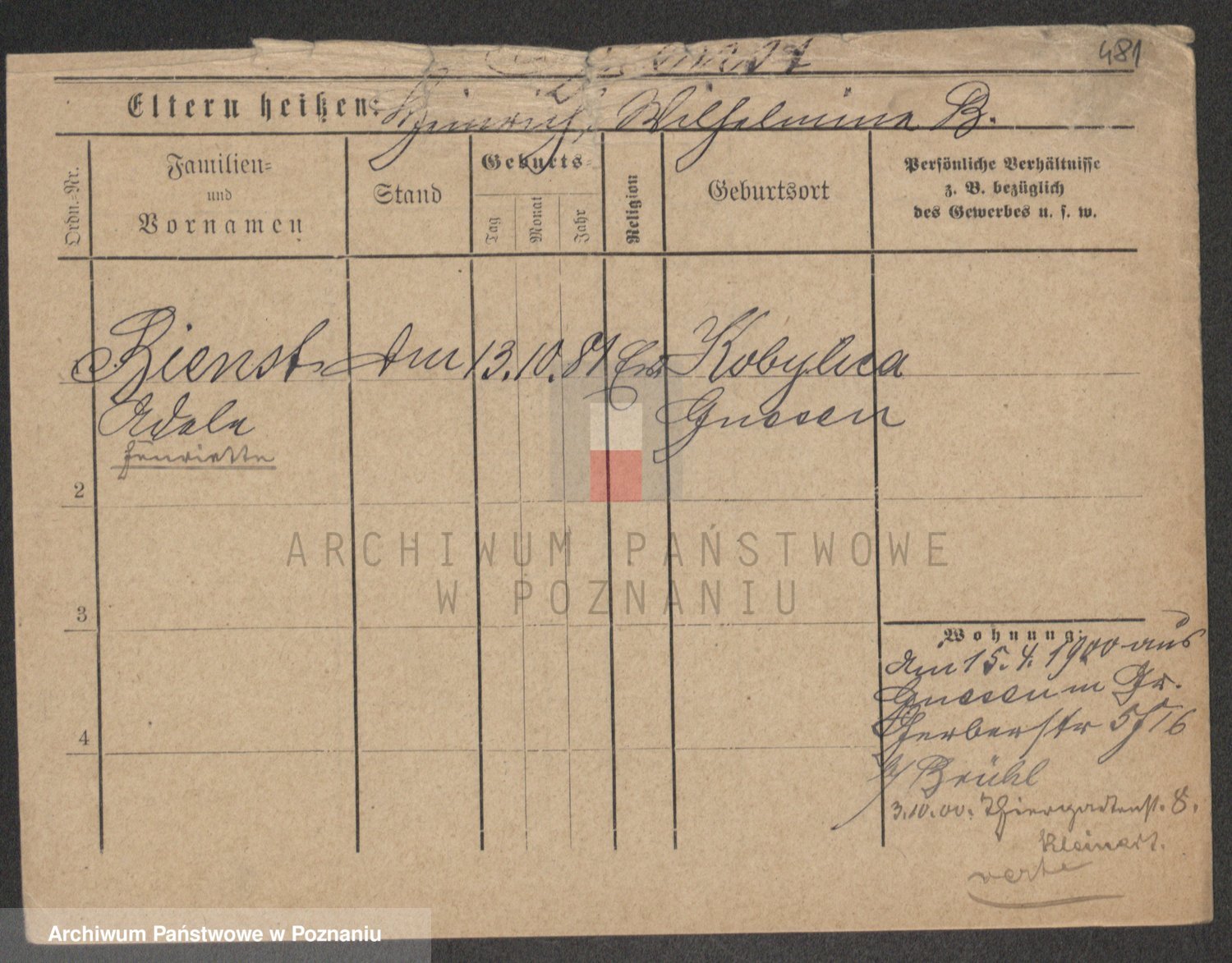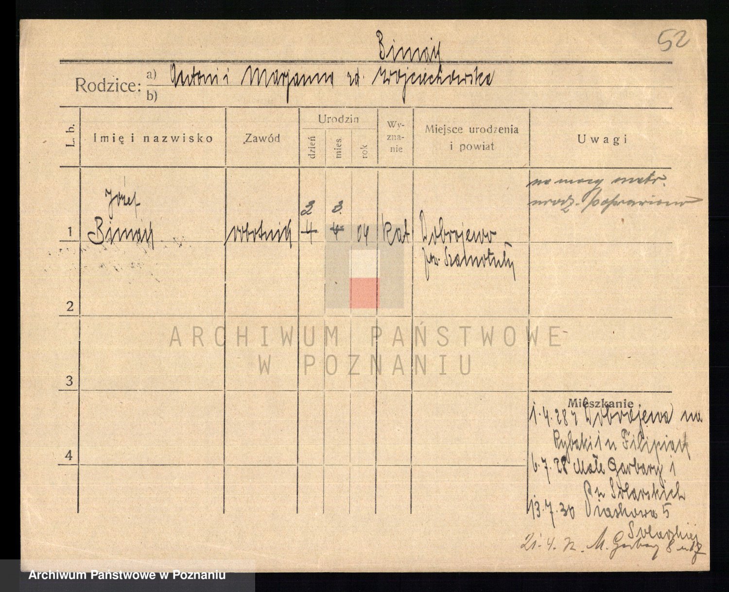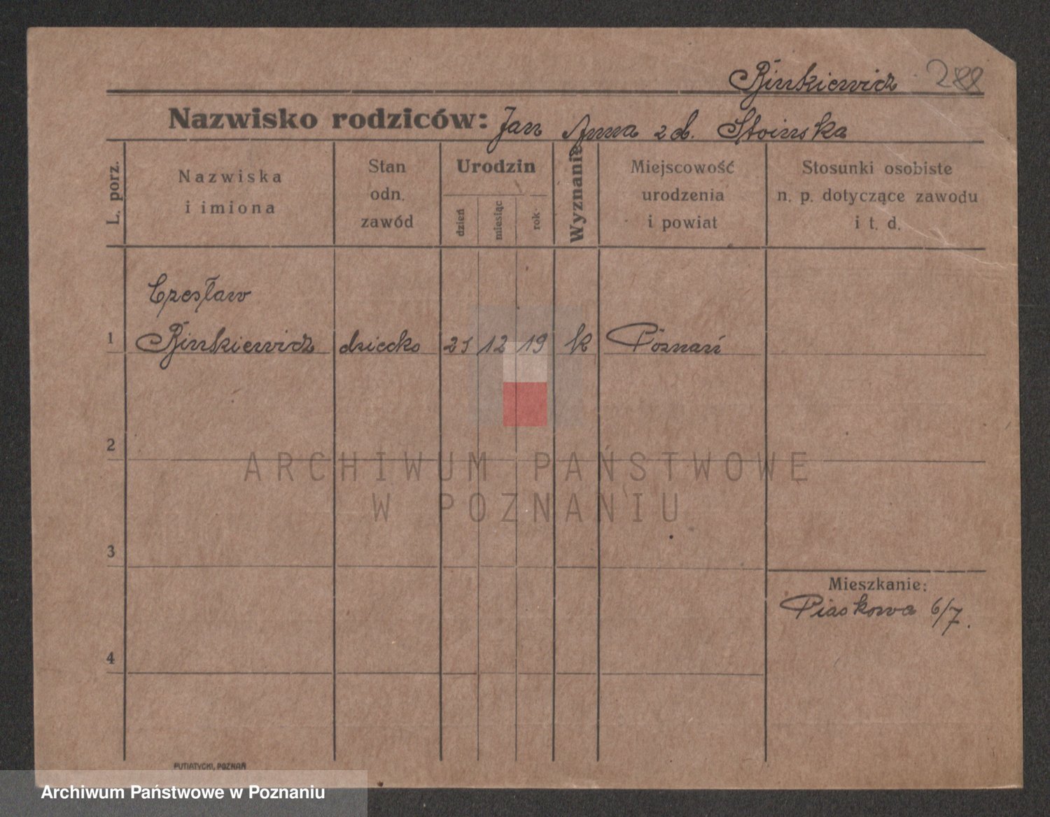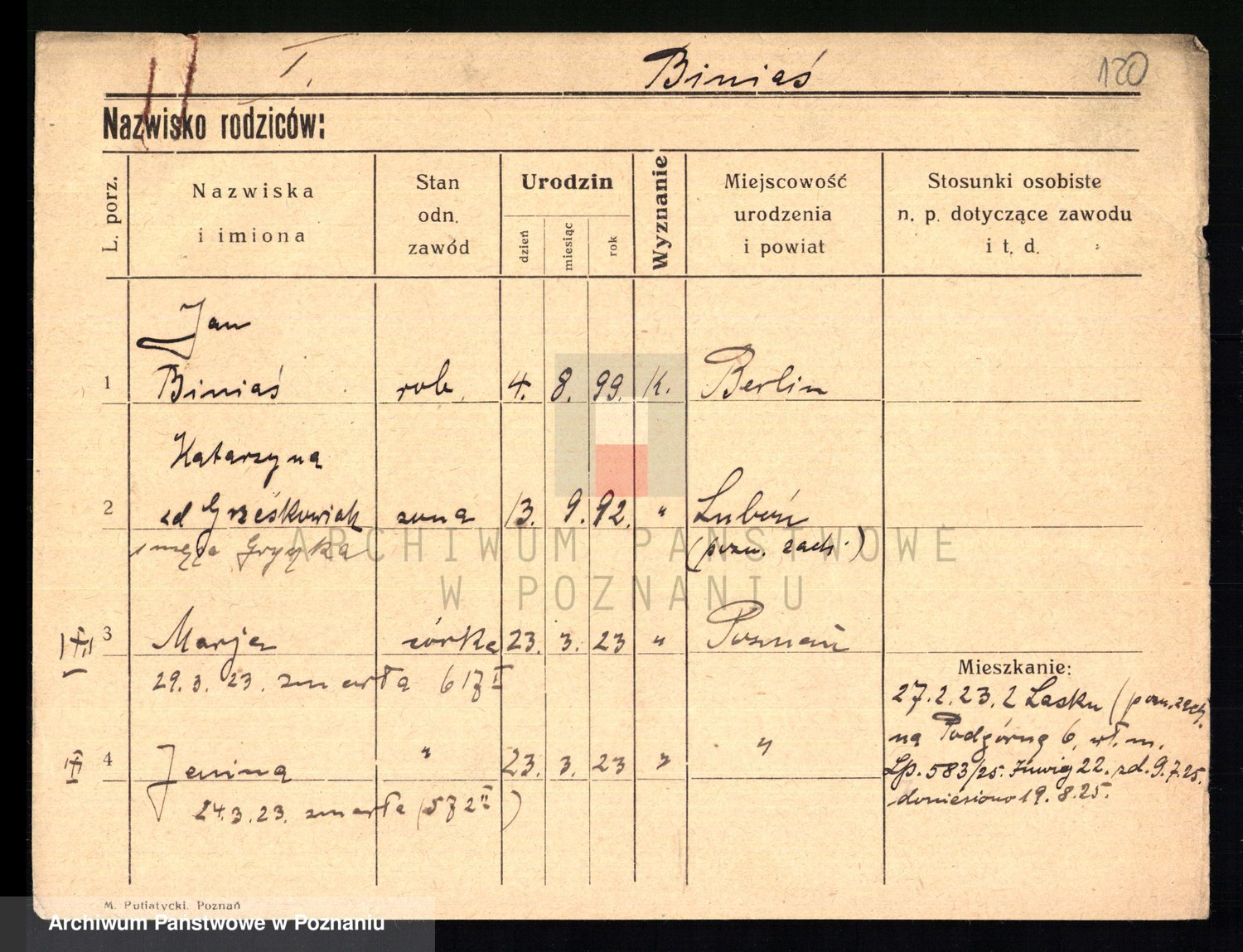 Bünger z d. Niedrig 1 voto Sporakowski, Karoline