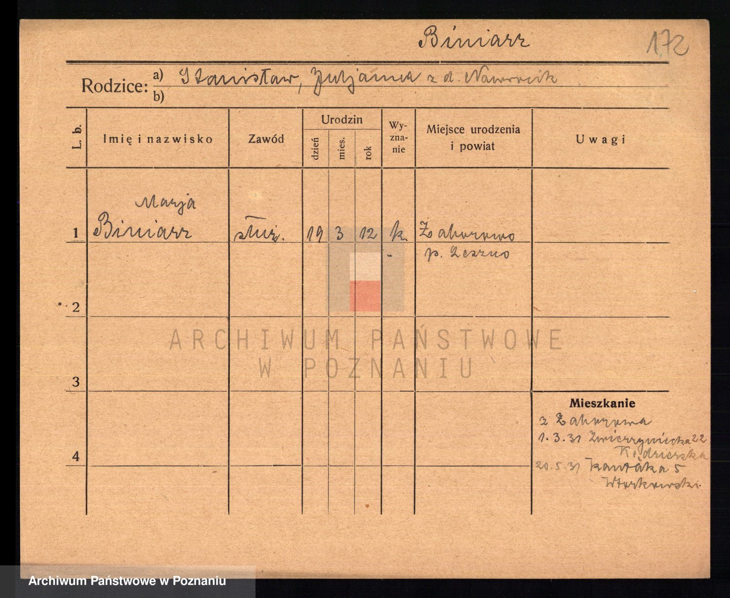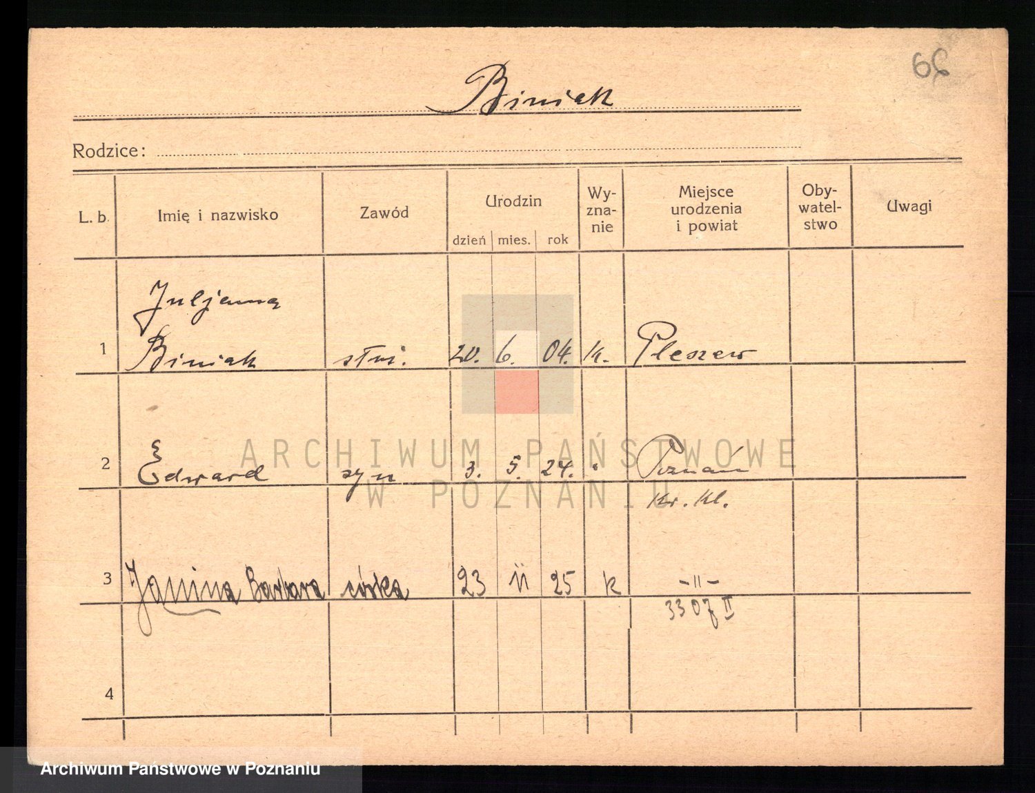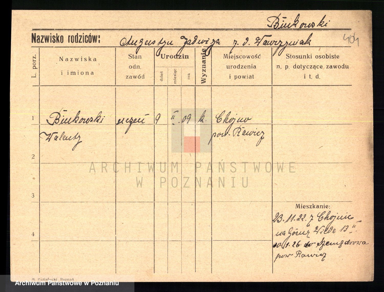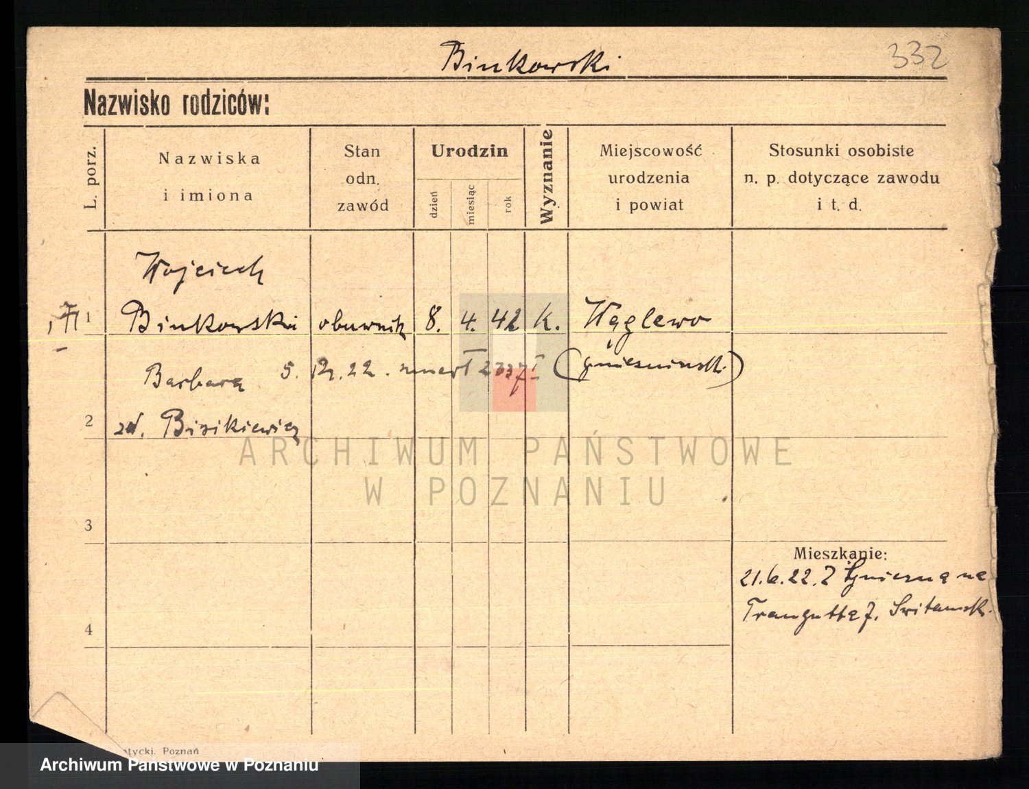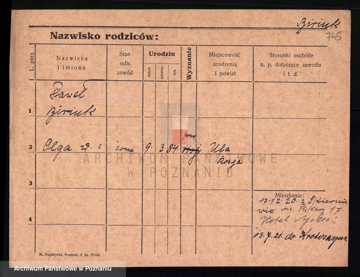 Podgląd karty osobowej dostępny jest po kliknięciu na nazwisko lub ikonkę karty. Można dokonywać powiększenia (ikony na górze) lub przechodzić między kolejnymi skanami (strzałki po bokach).