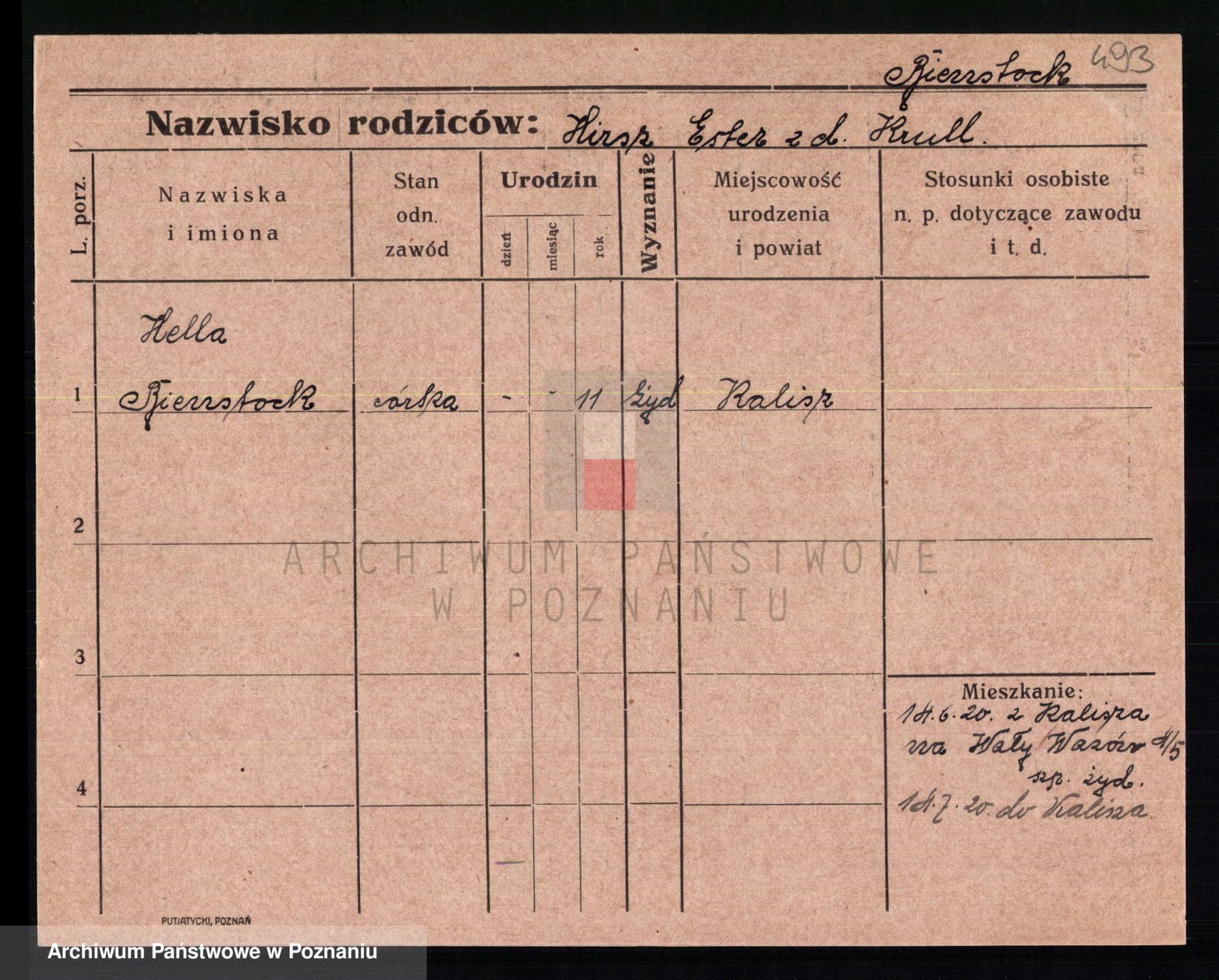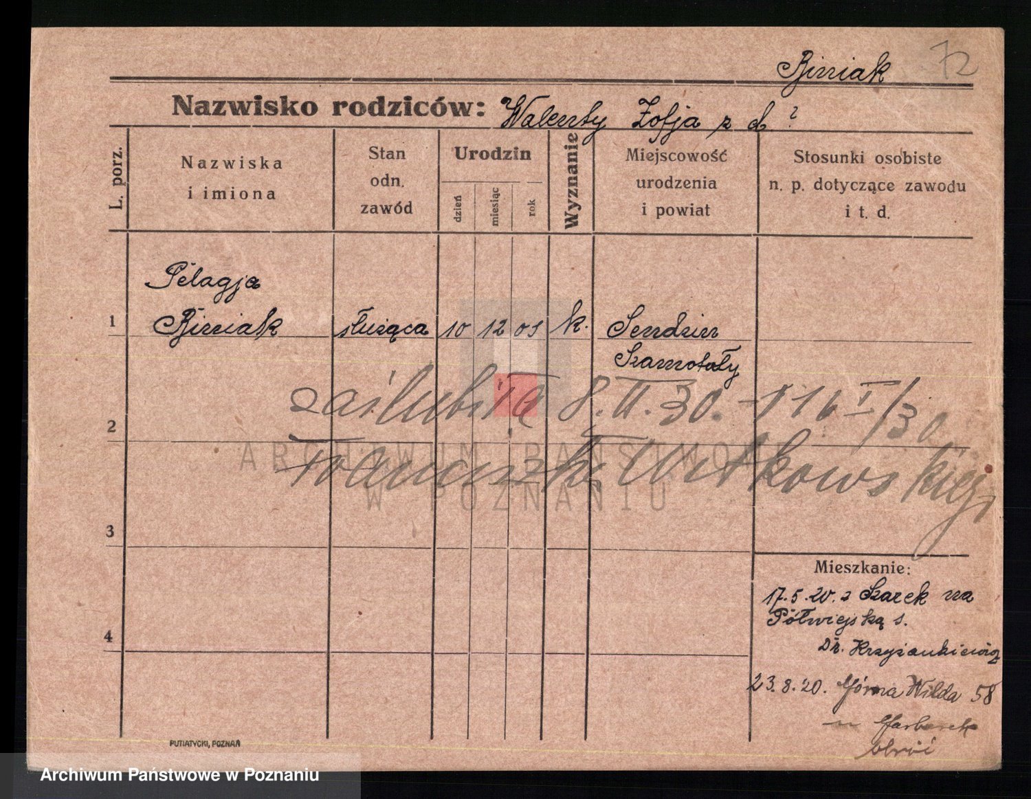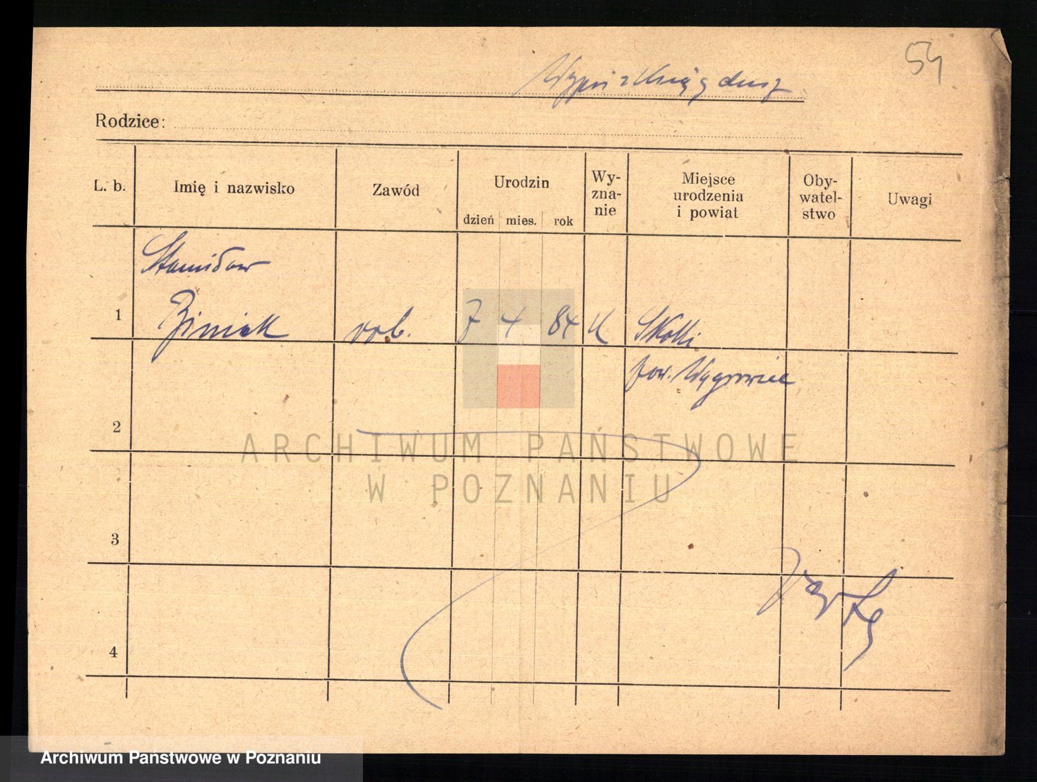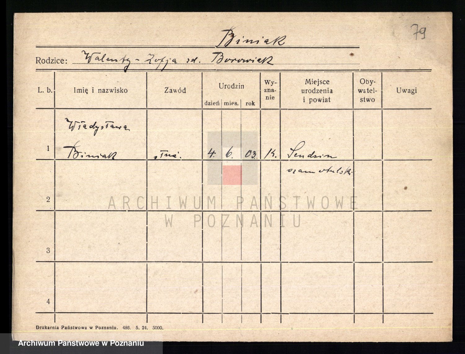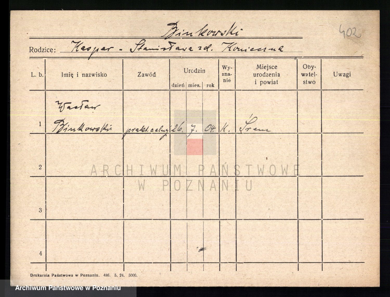 Podgląd karty osobowej dostępny jest po kliknięciu na nazwisko lub ikonkę karty. Można dokonywać powiększenia (ikony na górze) lub przechodzić między kolejnymi skanami (strzałki po bokach).