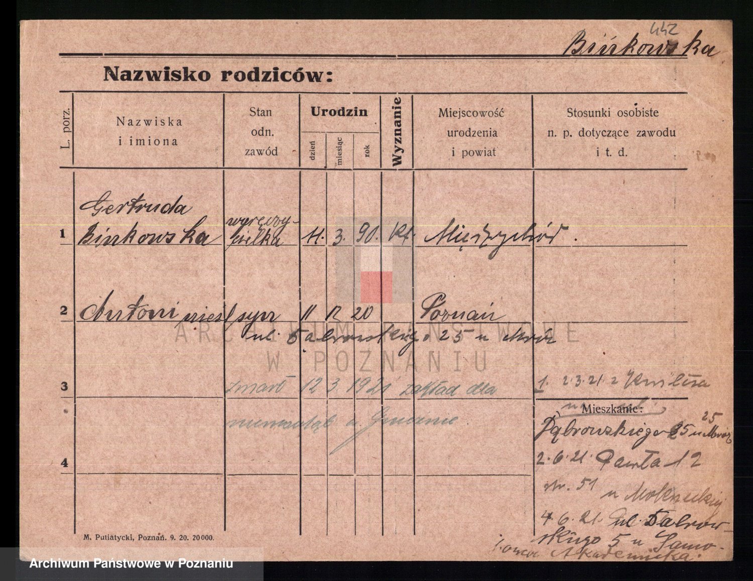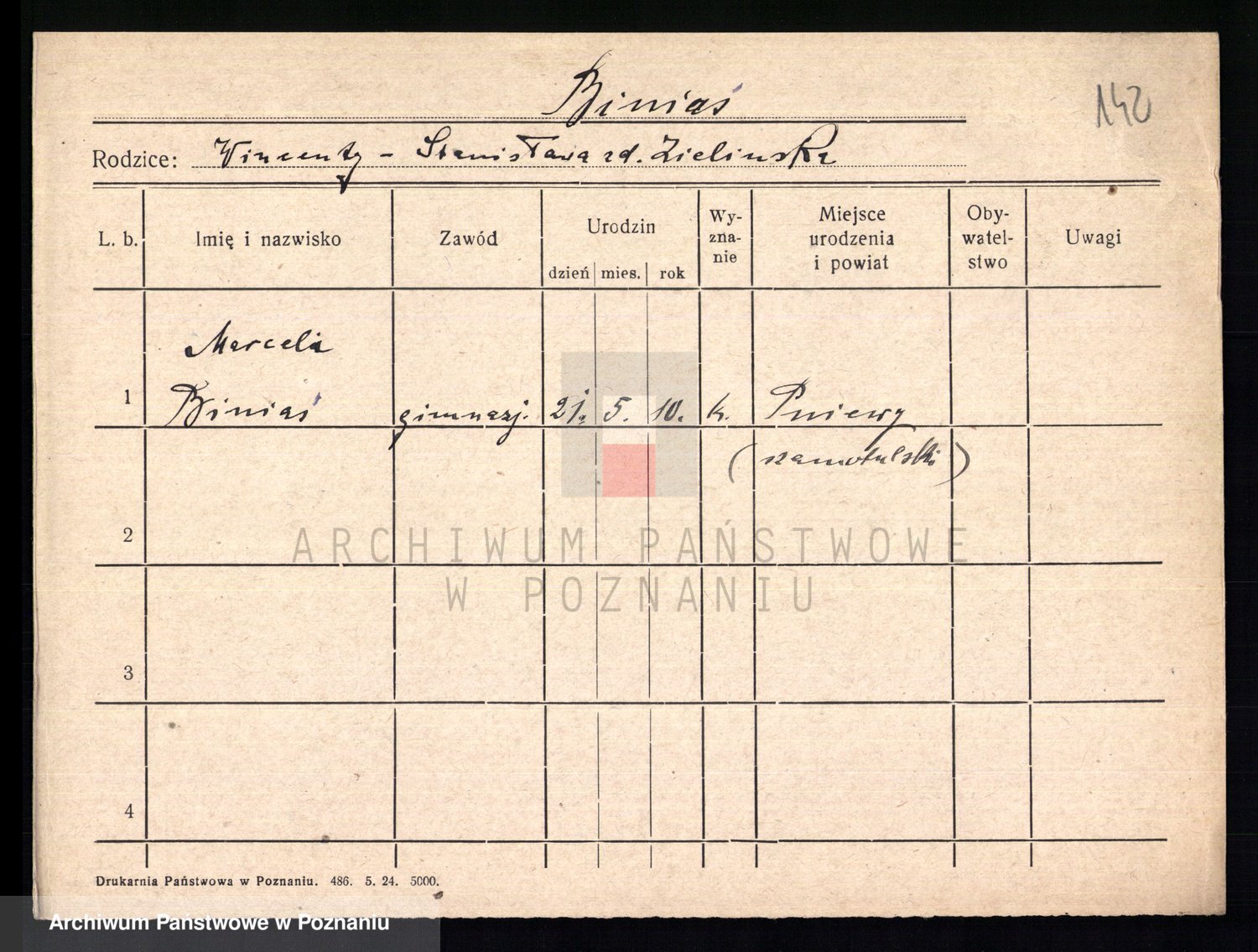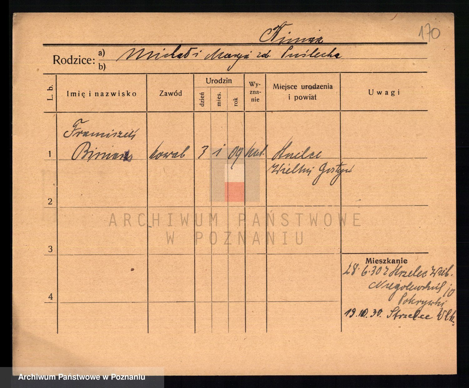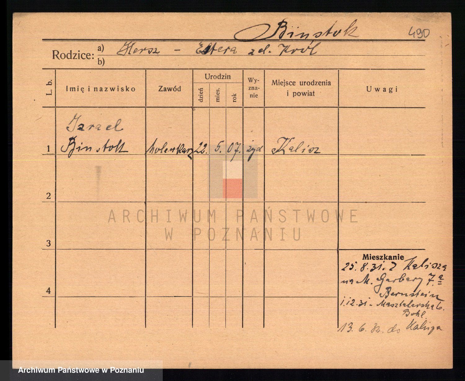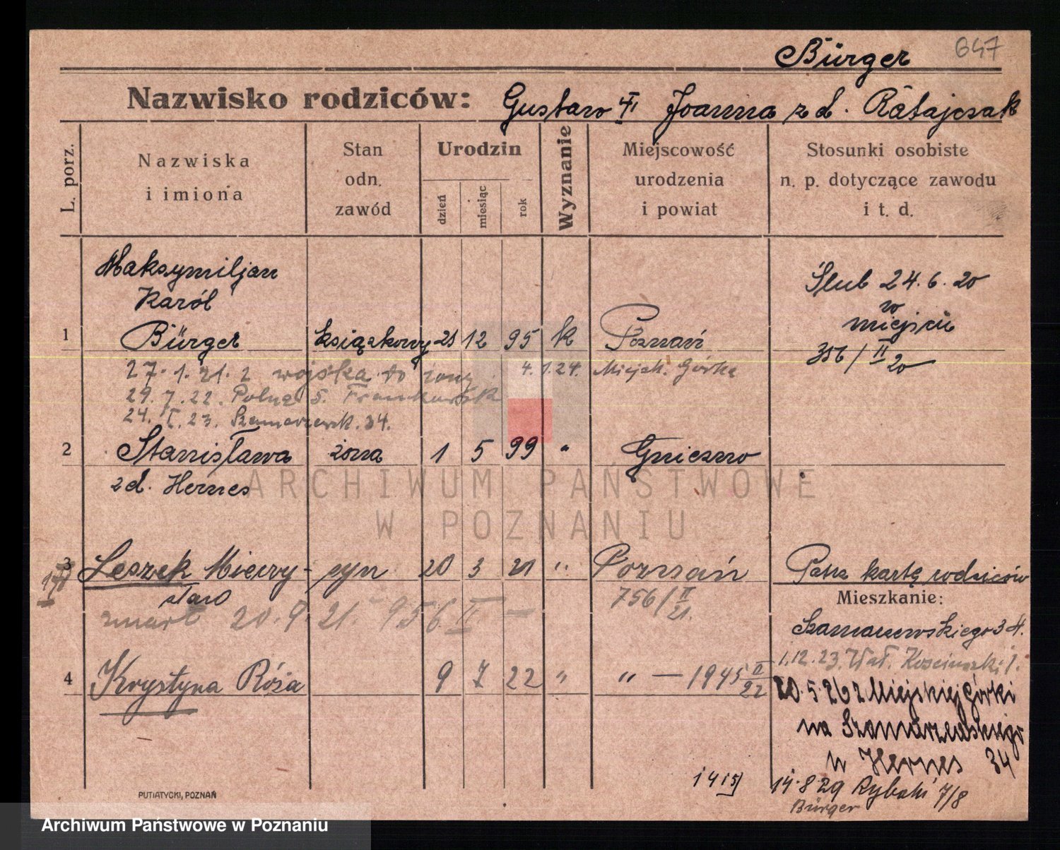 Podgląd karty osobowej dostępny jest po kliknięciu na nazwisko lub ikonkę karty. Można dokonywać powiększenia (ikony na górze) lub przechodzić między kolejnymi skanami (strzałki po bokach).