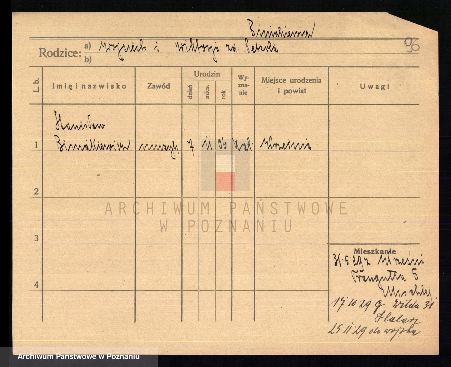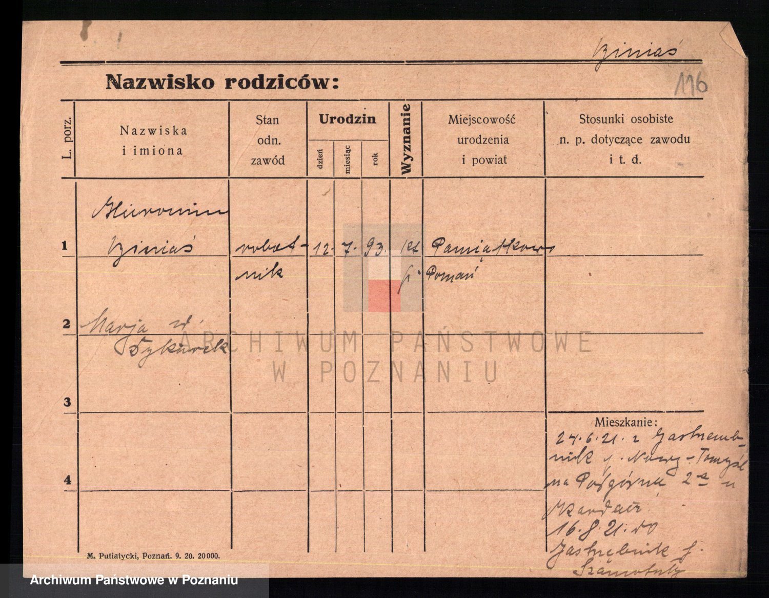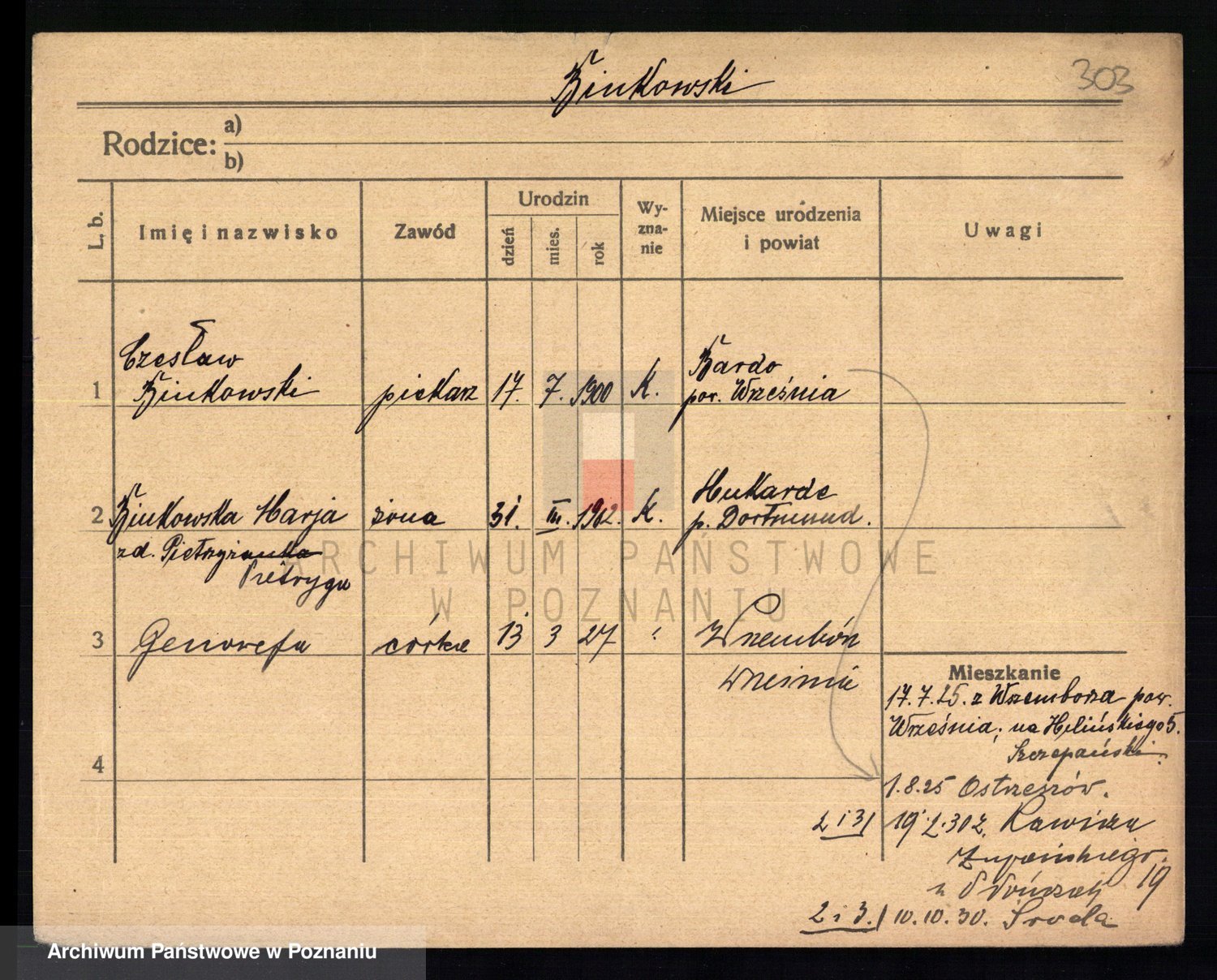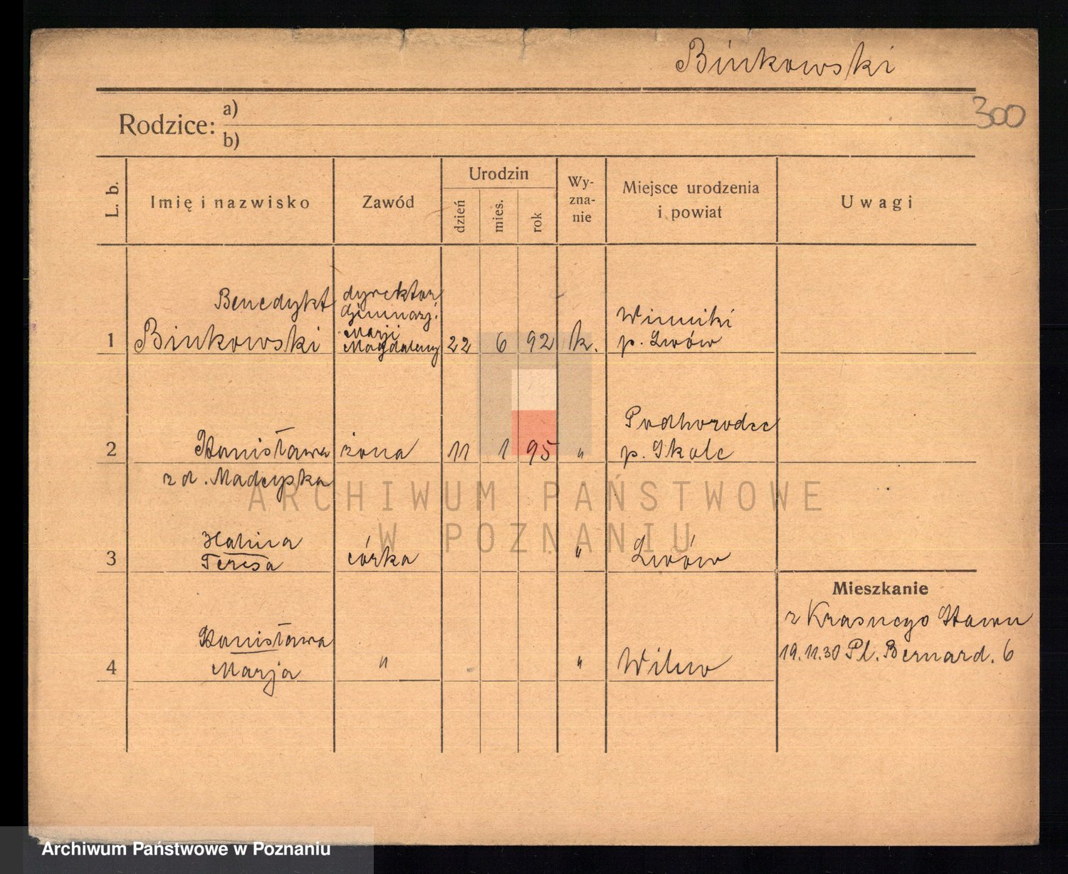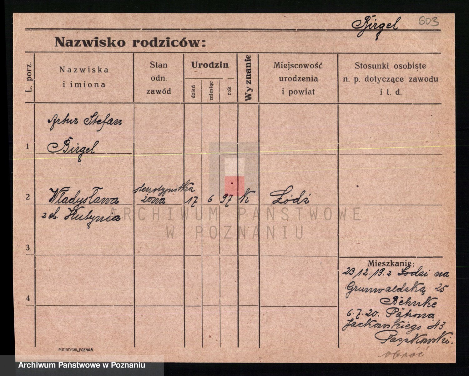 Podgląd karty osobowej dostępny jest po kliknięciu na nazwisko lub ikonkę karty. Można dokonywać powiększenia (ikony na górze) lub przechodzić między kolejnymi skanami (strzałki po bokach).