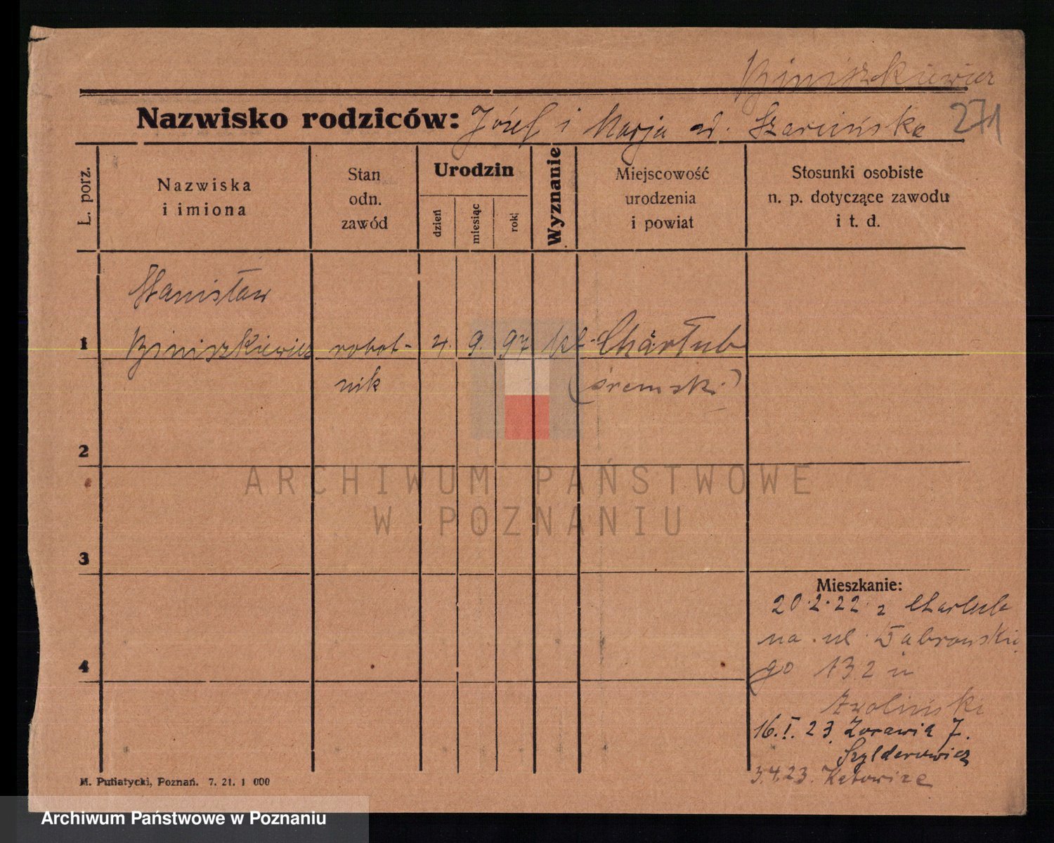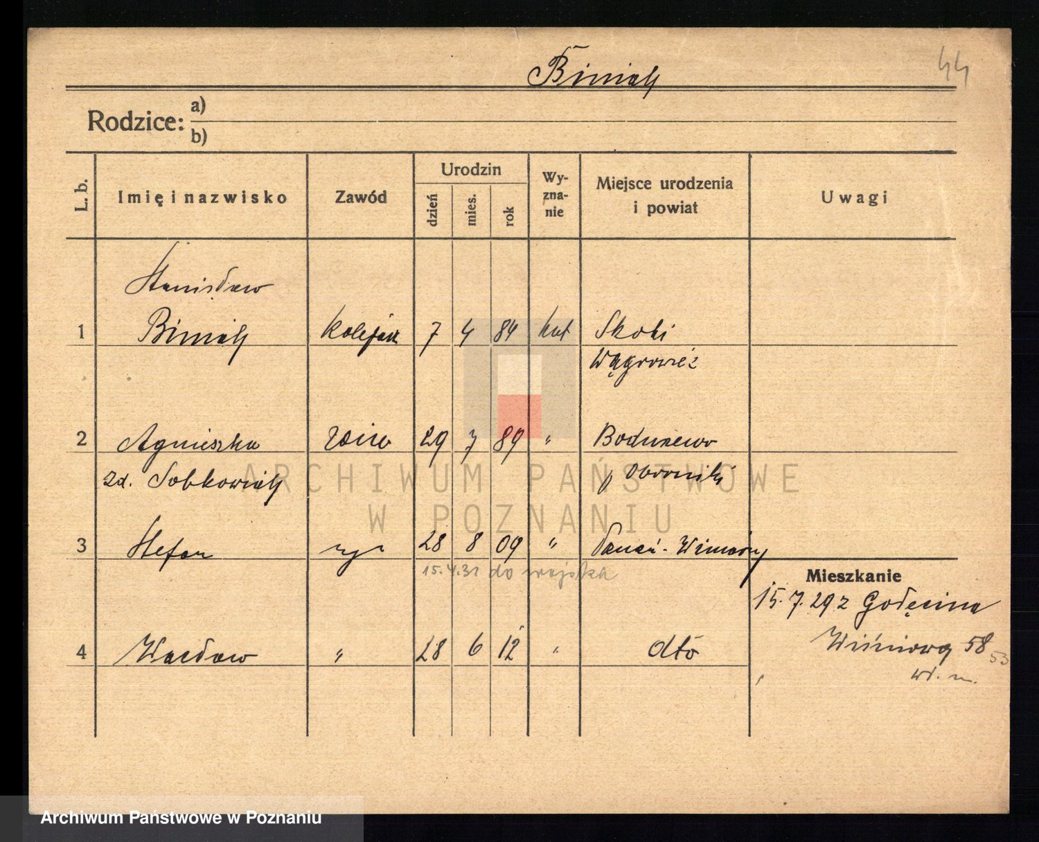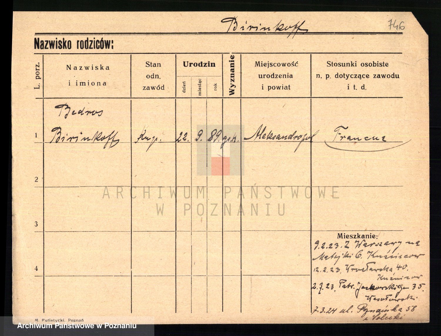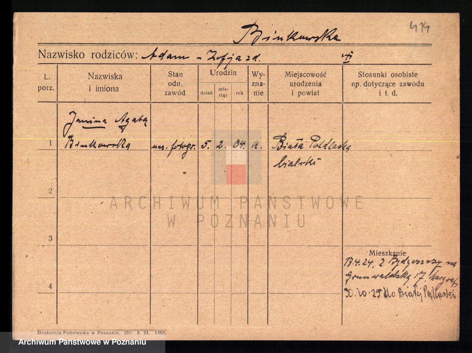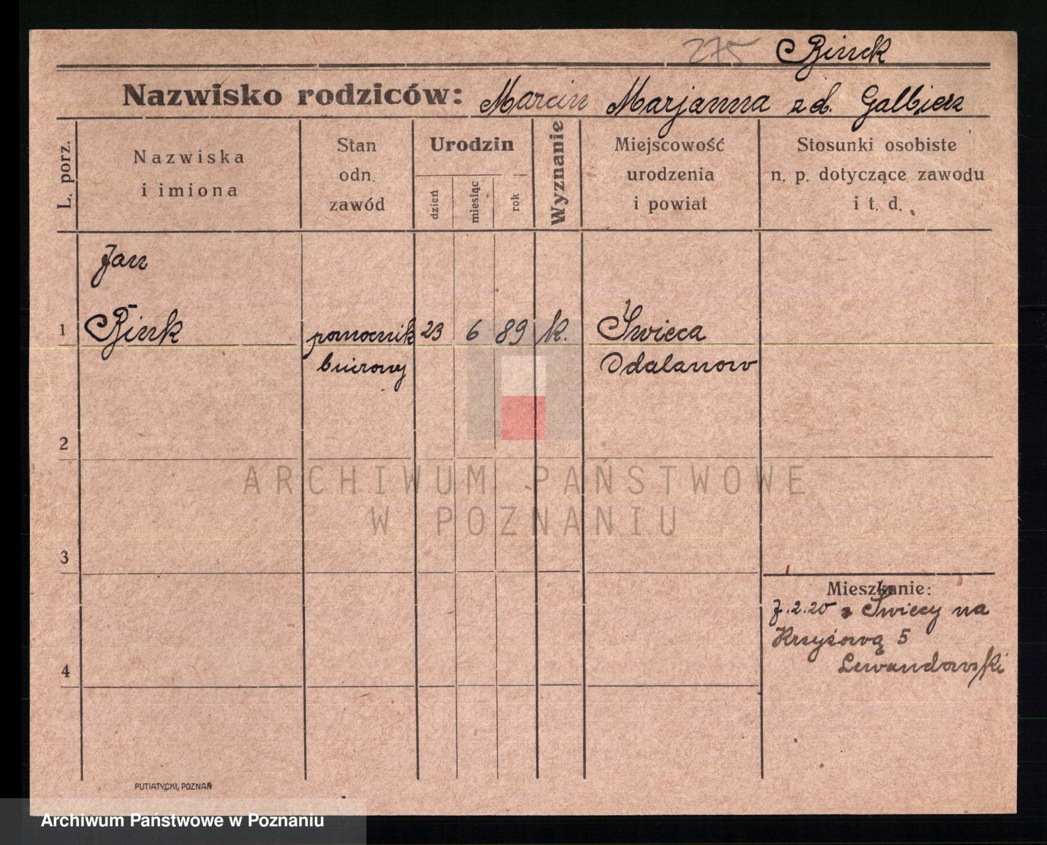 Podgląd karty osobowej dostępny jest po kliknięciu na nazwisko lub ikonkę karty. Można dokonywać powiększenia (ikony na górze) lub przechodzić między kolejnymi skanami (strzałki po bokach).