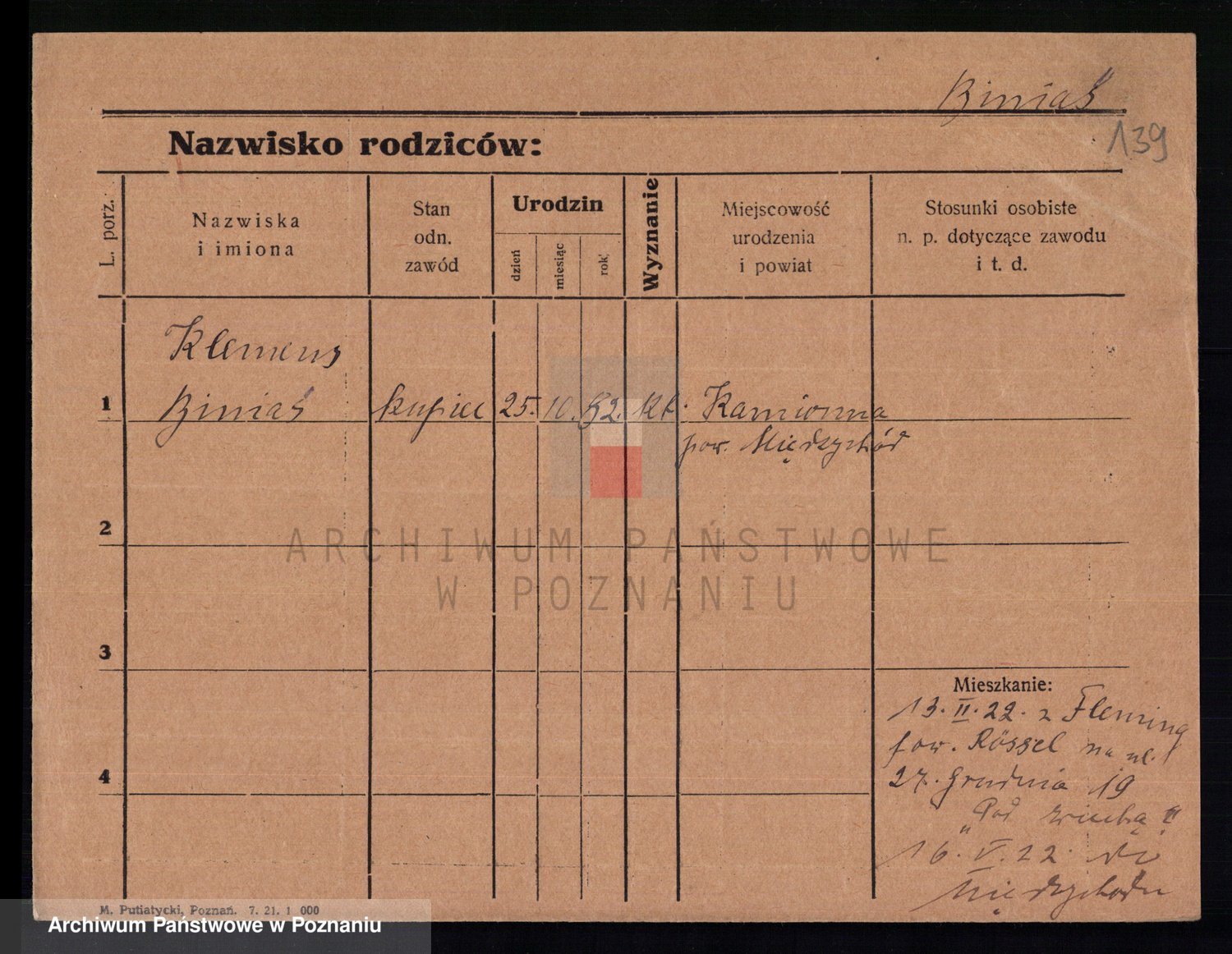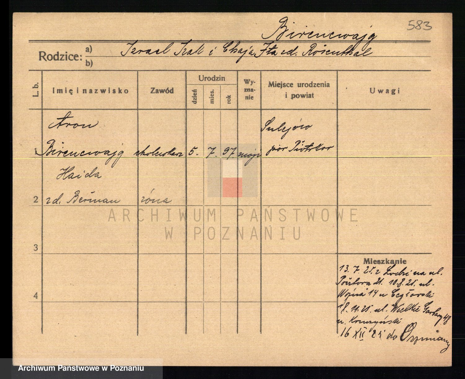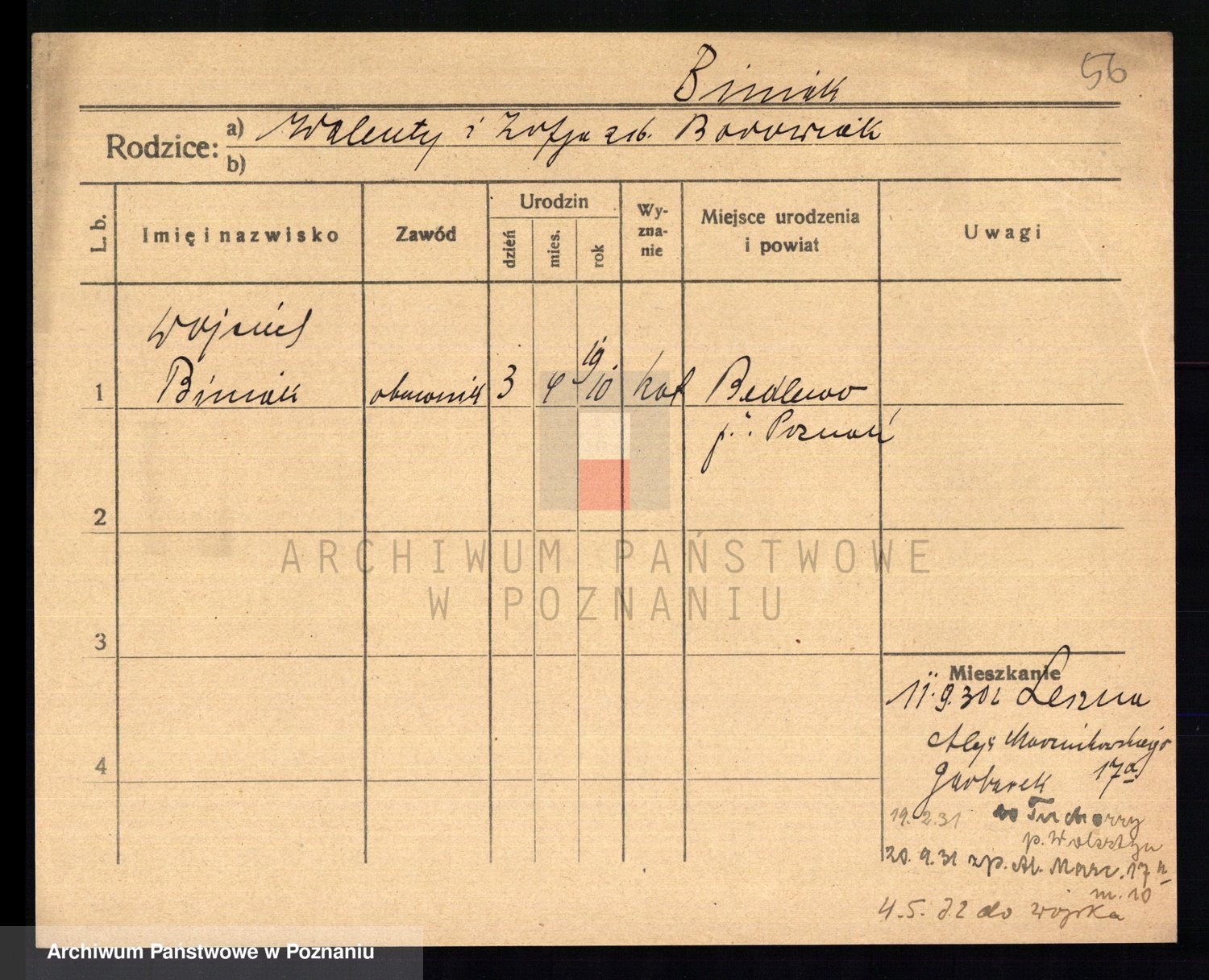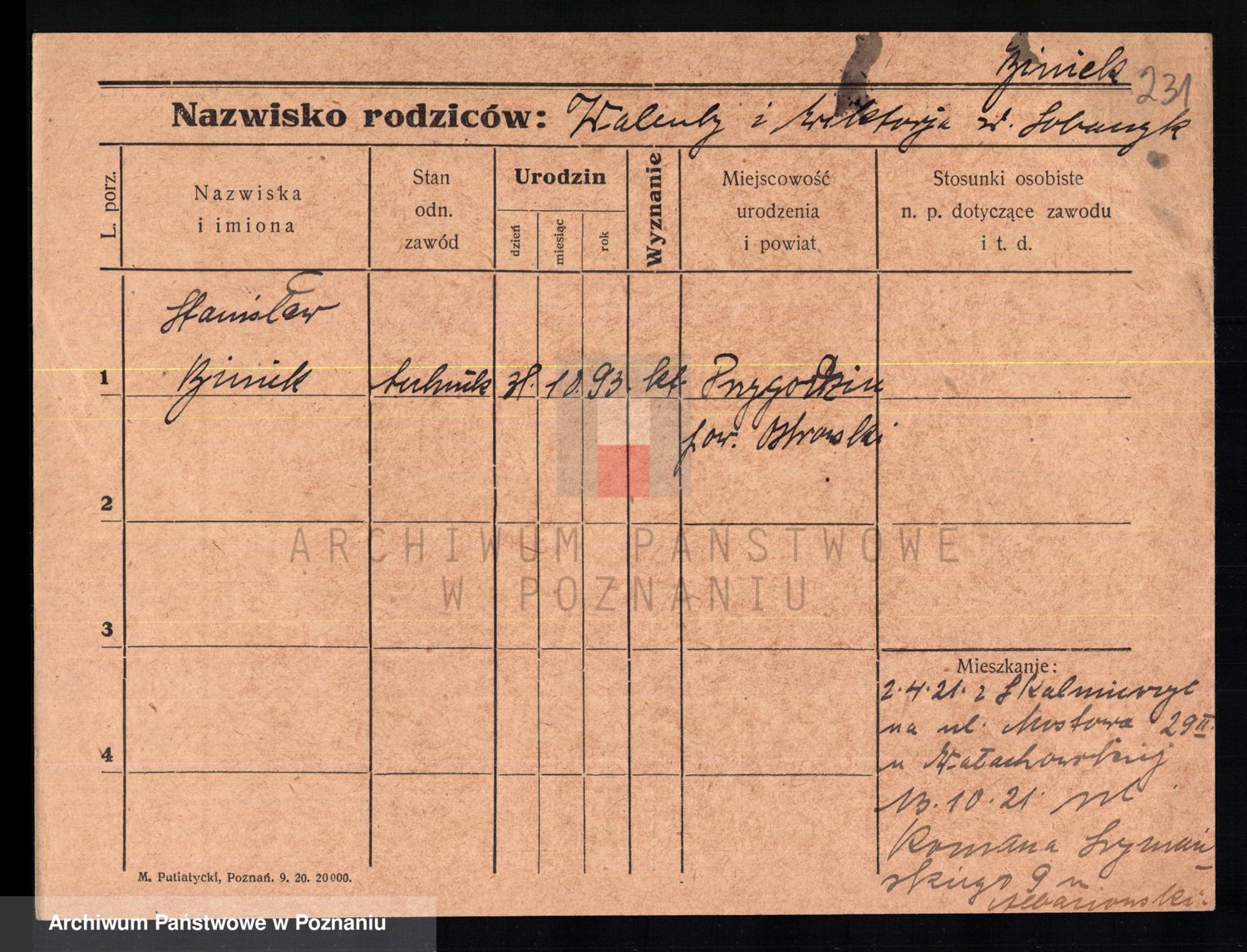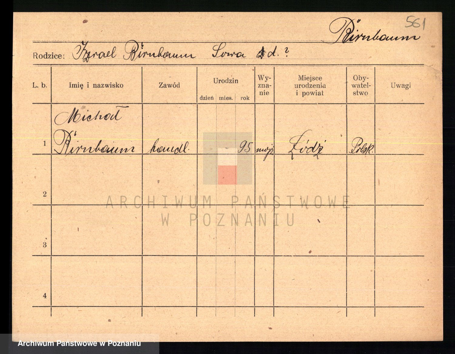 Podgląd karty osobowej dostępny jest po kliknięciu na nazwisko lub ikonkę karty. Można dokonywać powiększenia (ikony na górze) lub przechodzić między kolejnymi skanami (strzałki po bokach).