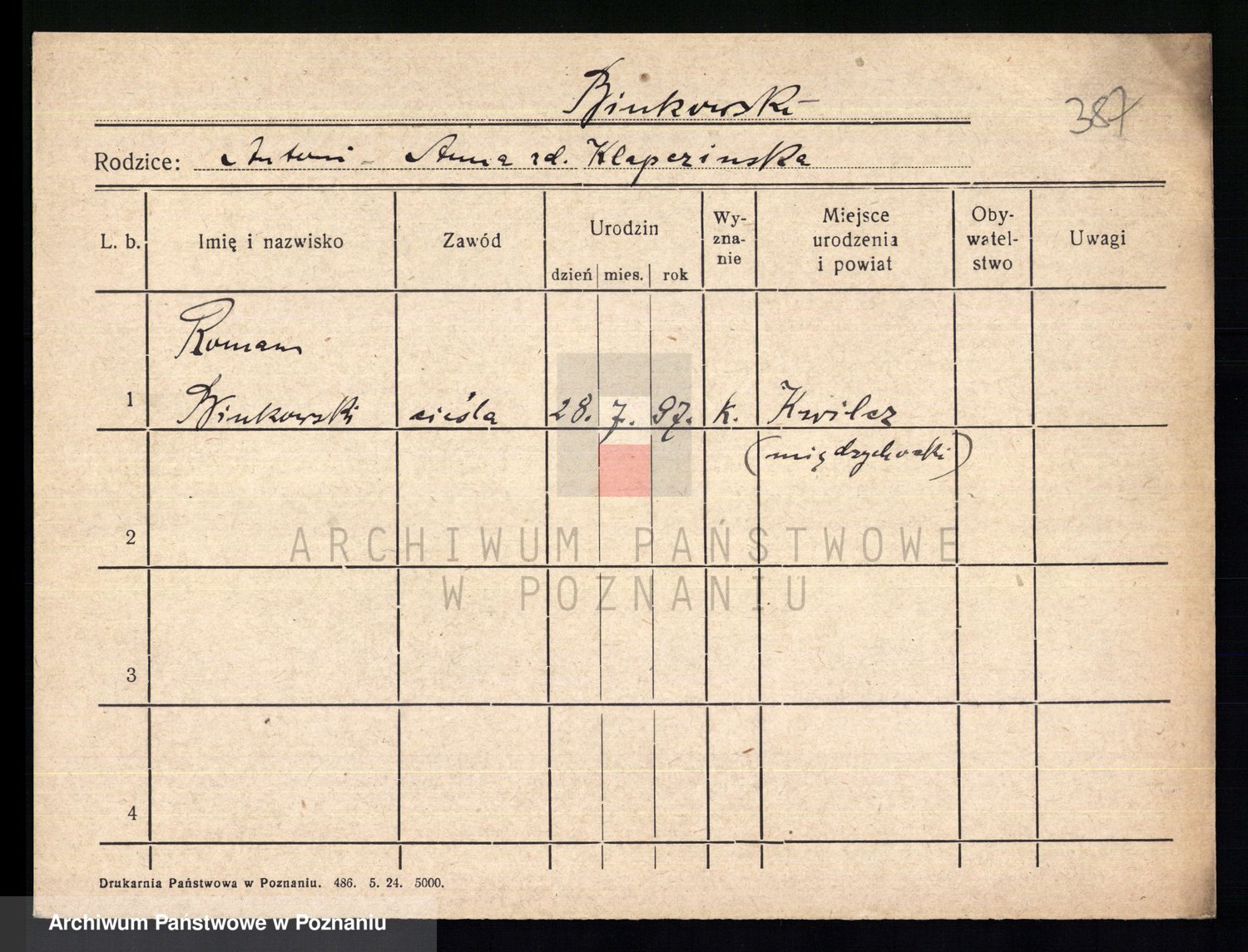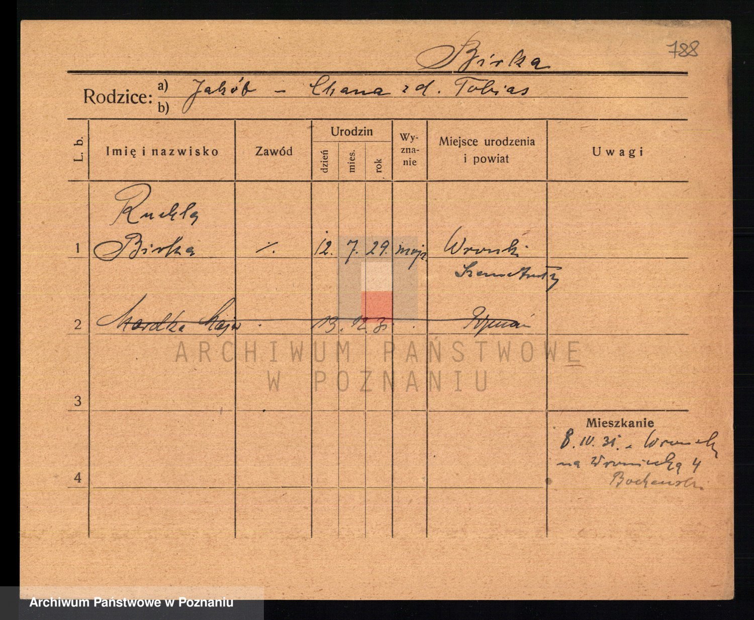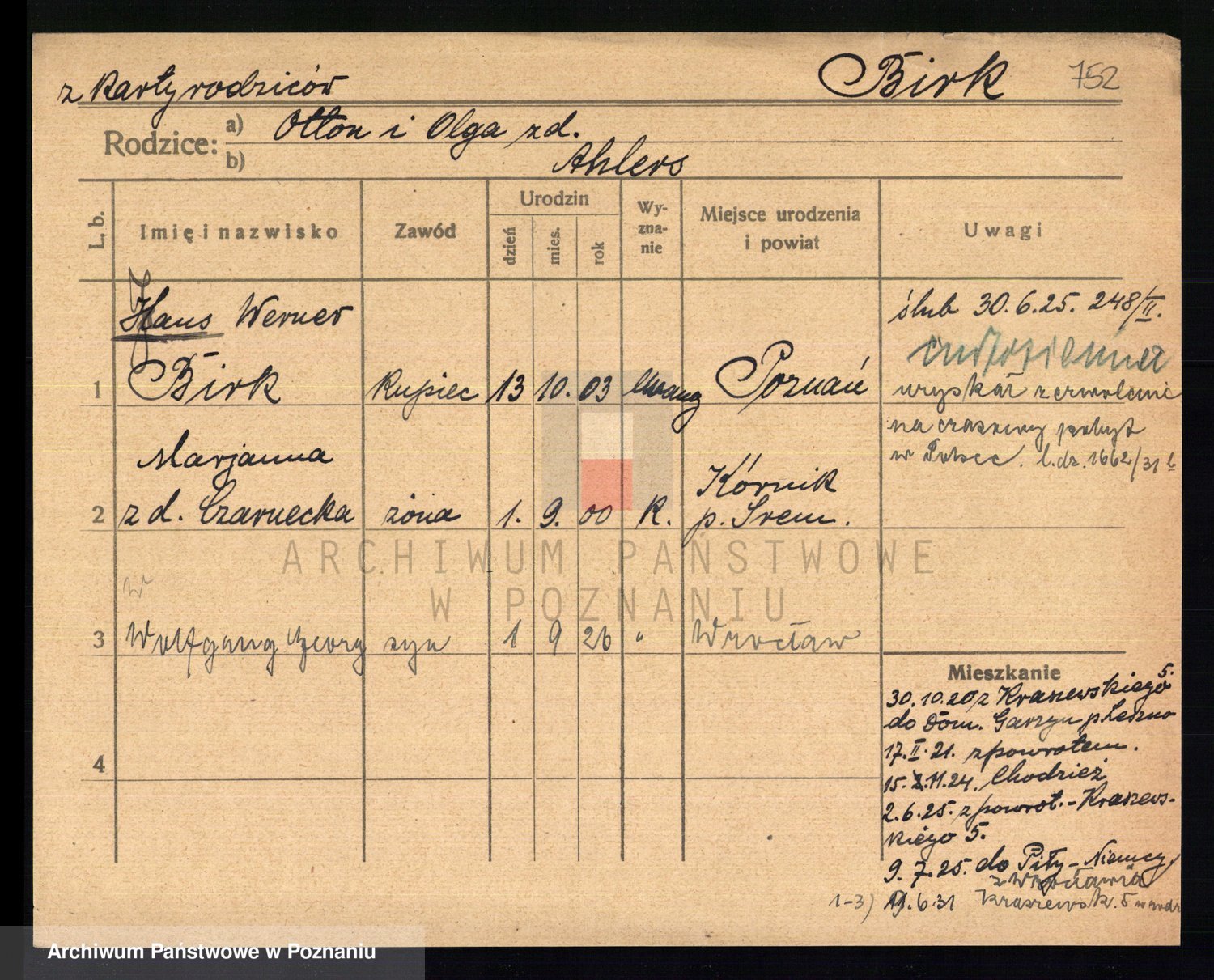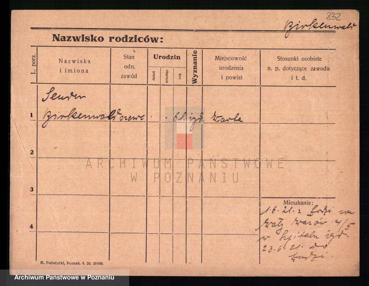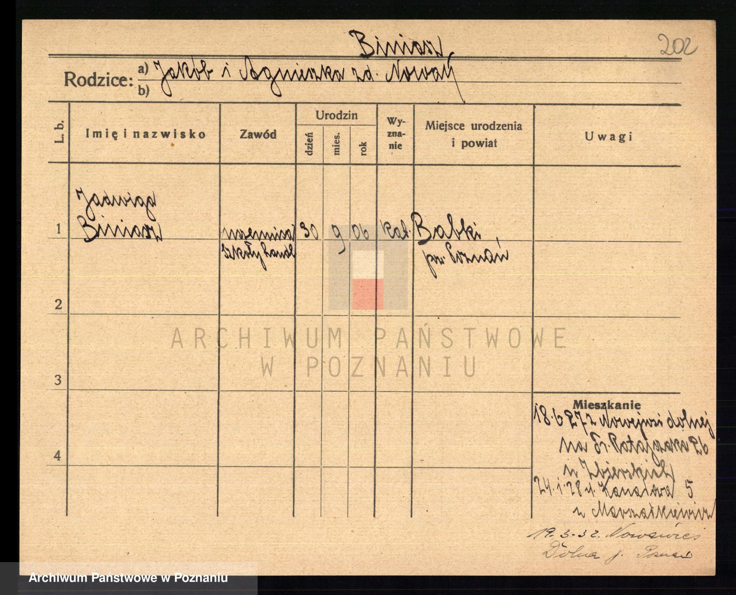Podgląd karty osobowej dostępny jest po kliknięciu na nazwisko lub ikonkę karty. Można dokonywać powiększenia (ikony na górze) lub przechodzić między kolejnymi skanami (strzałki po bokach).