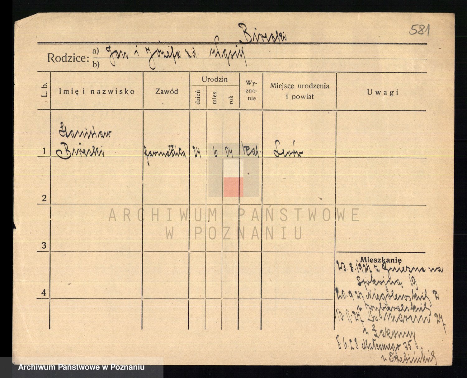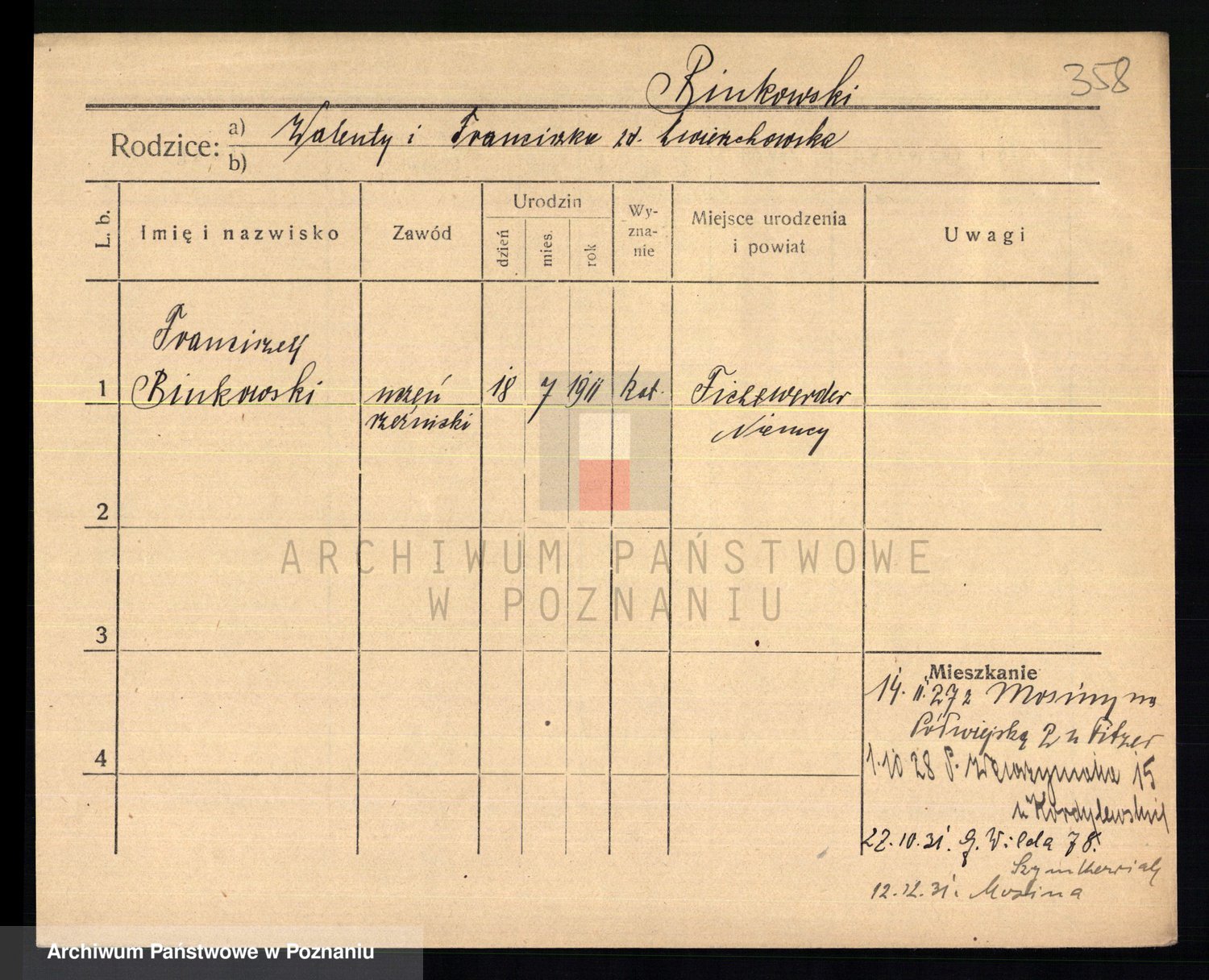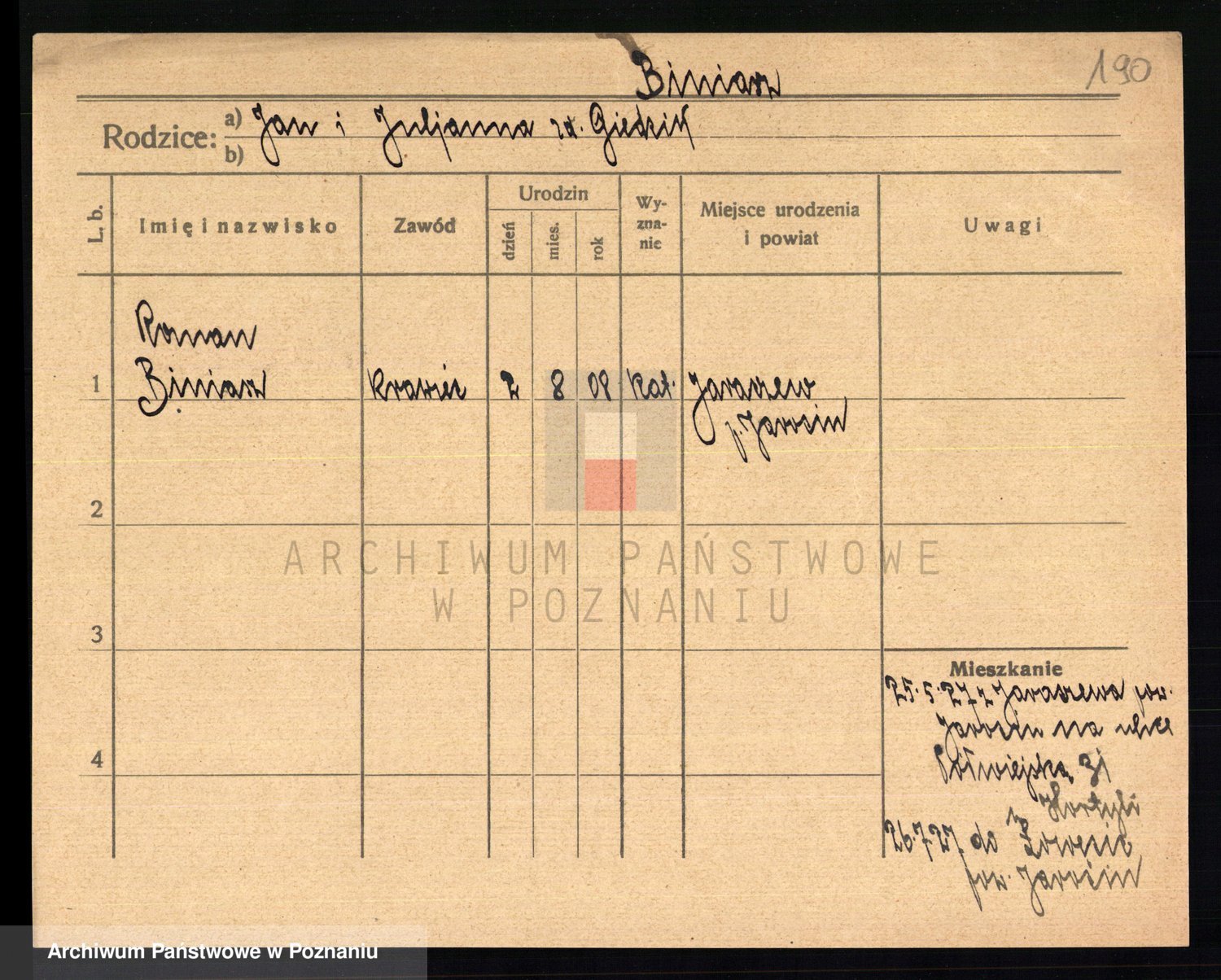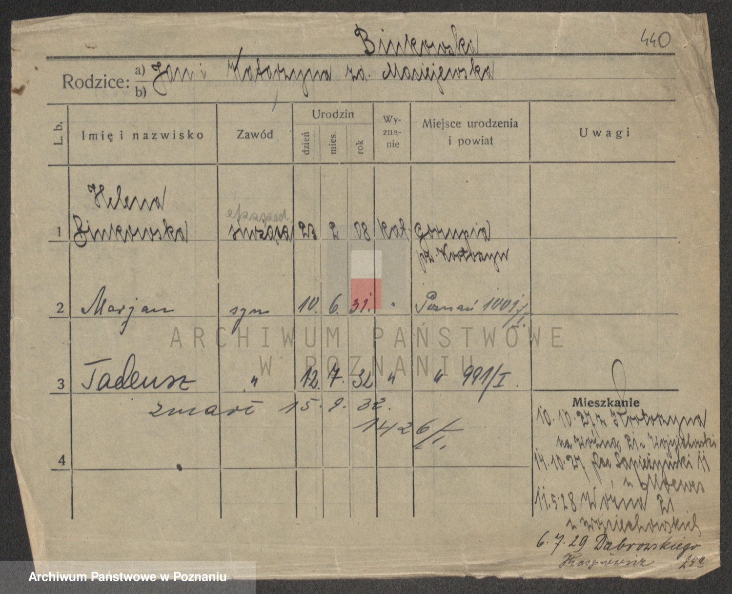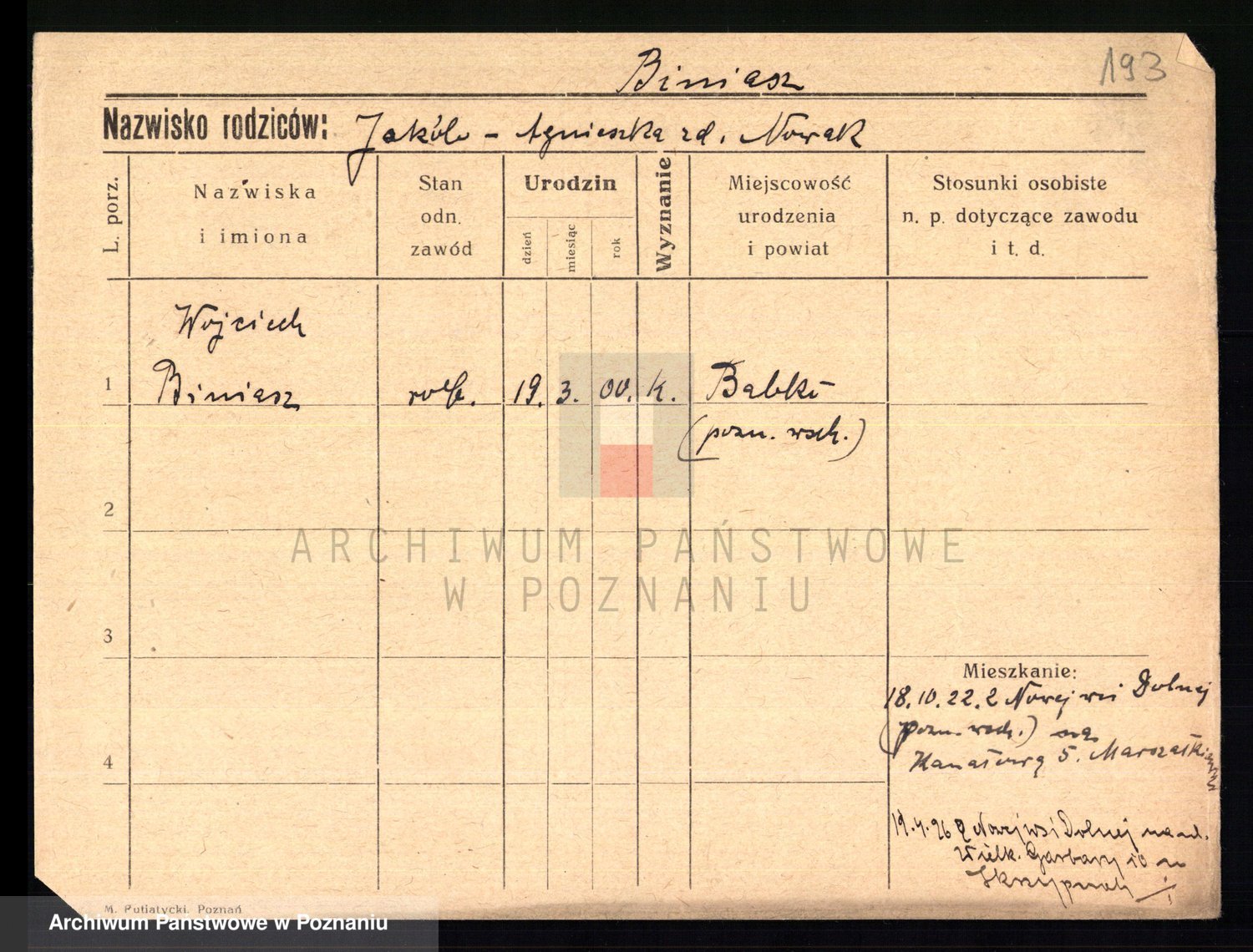 Podgląd karty osobowej dostępny jest po kliknięciu na nazwisko lub ikonkę karty. Można dokonywać powiększenia (ikony na górze) lub przechodzić między kolejnymi skanami (strzałki po bokach).