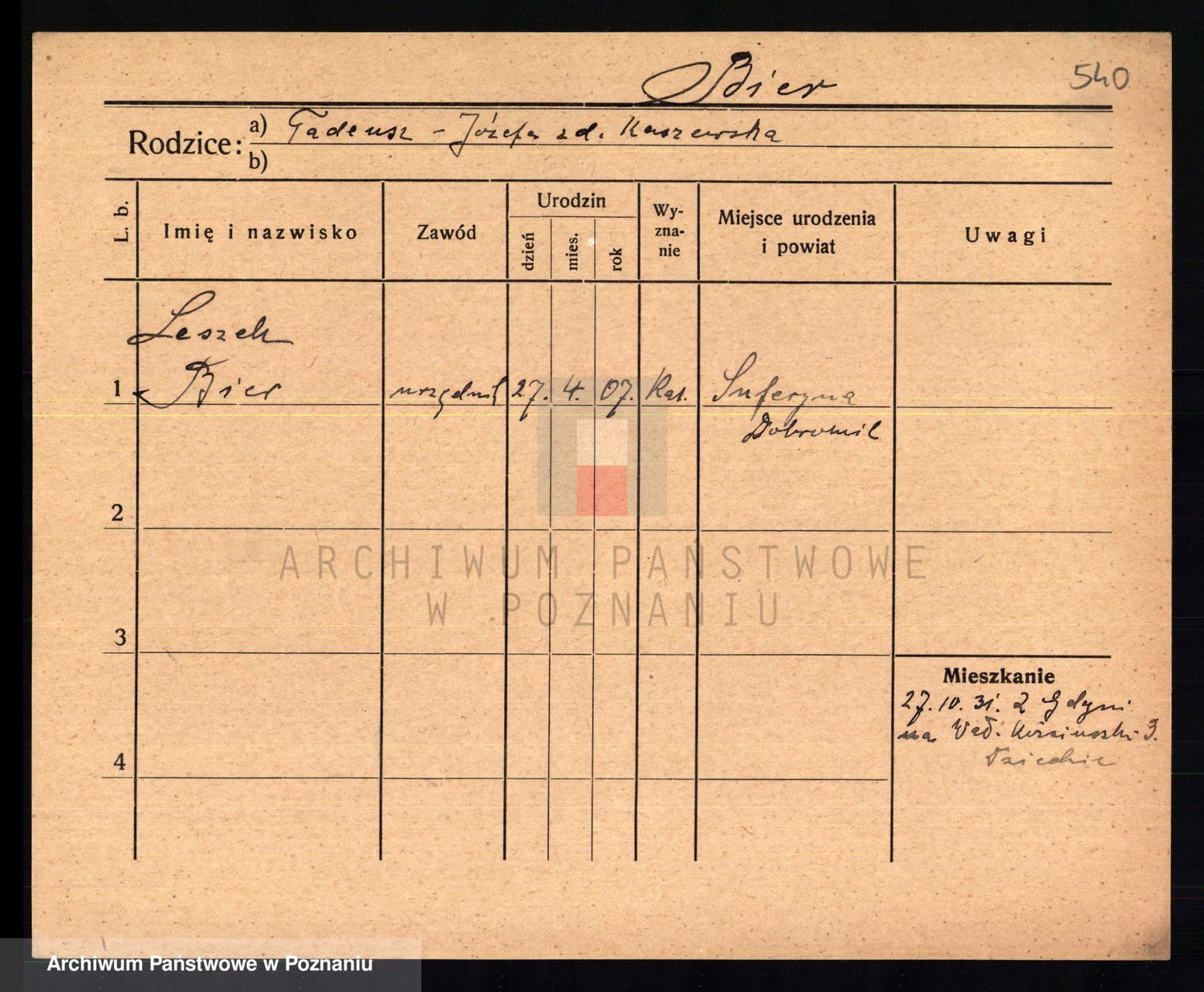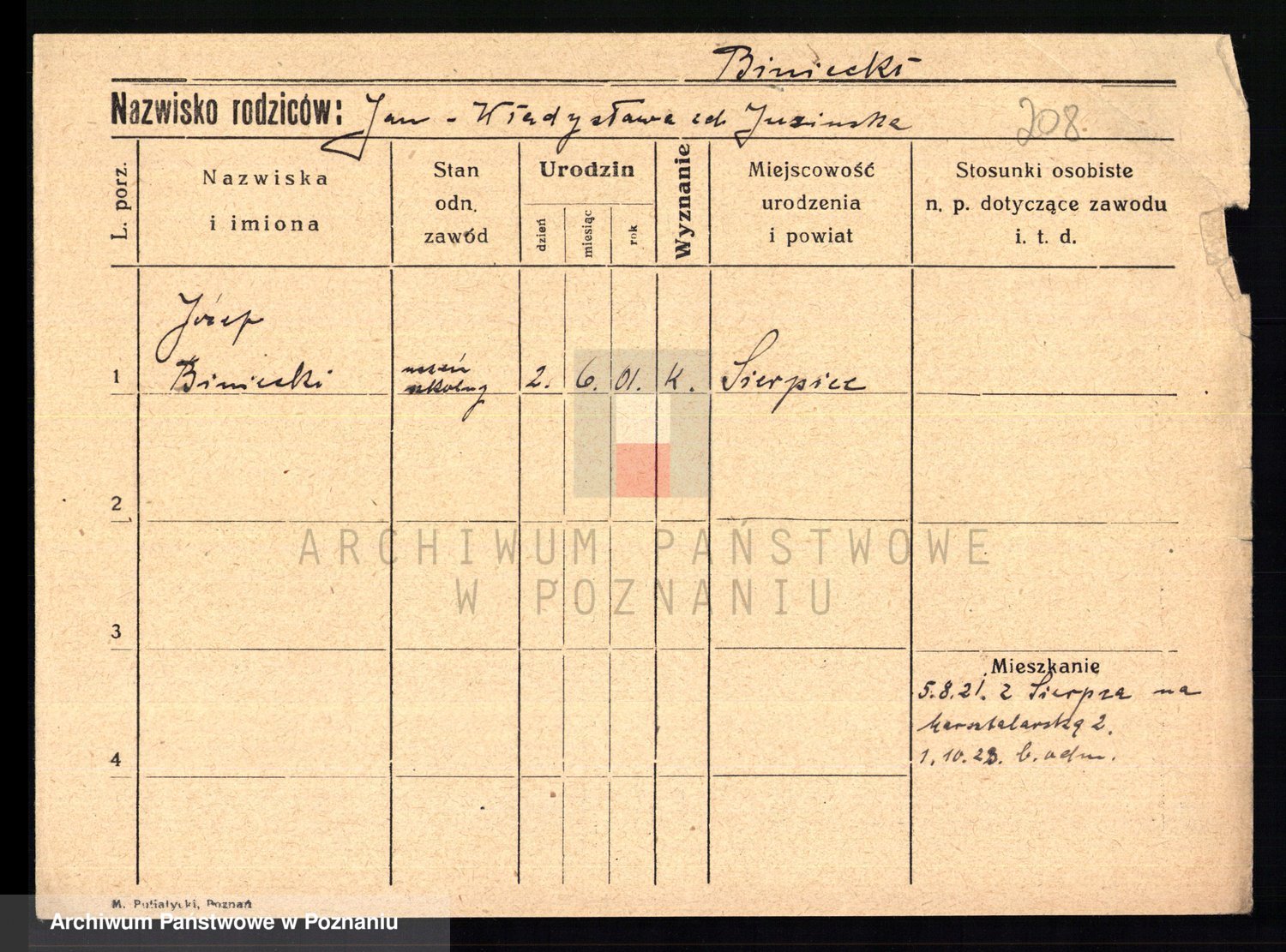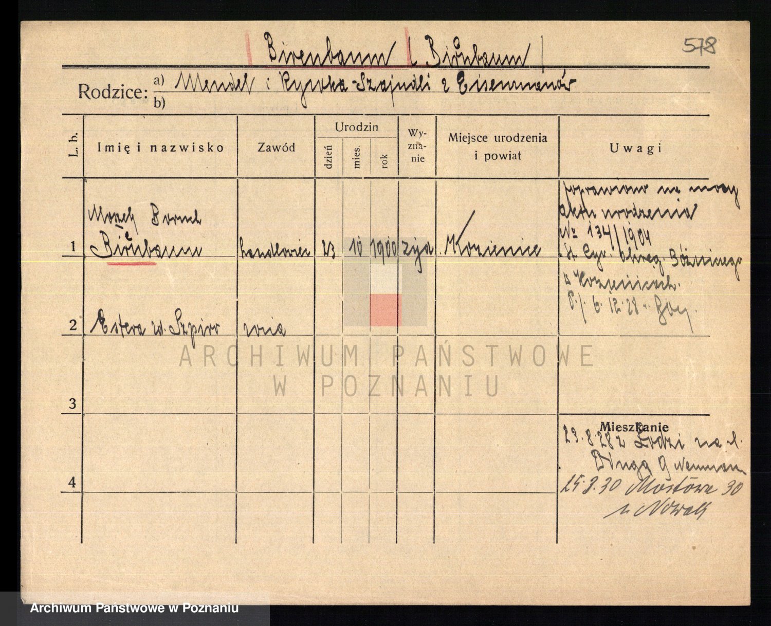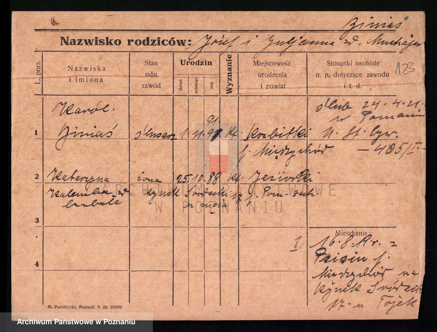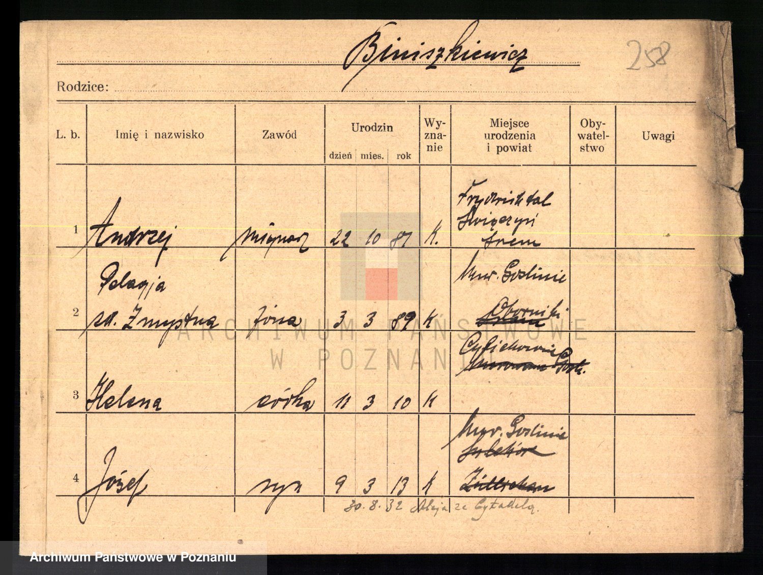 Podgląd karty osobowej dostępny jest po kliknięciu na nazwisko lub ikonkę karty. Można dokonywać powiększenia (ikony na górze) lub przechodzić między kolejnymi skanami (strzałki po bokach).