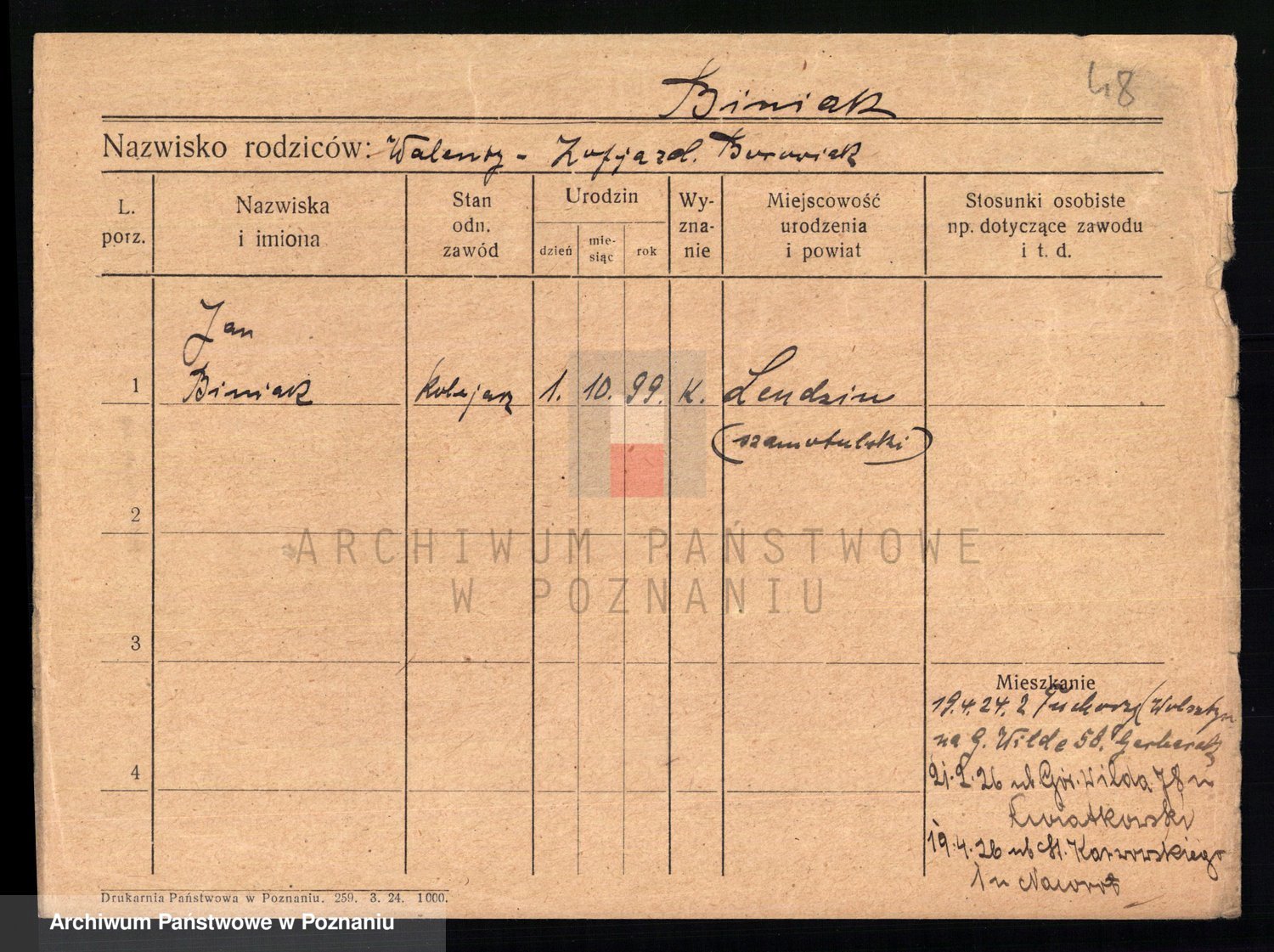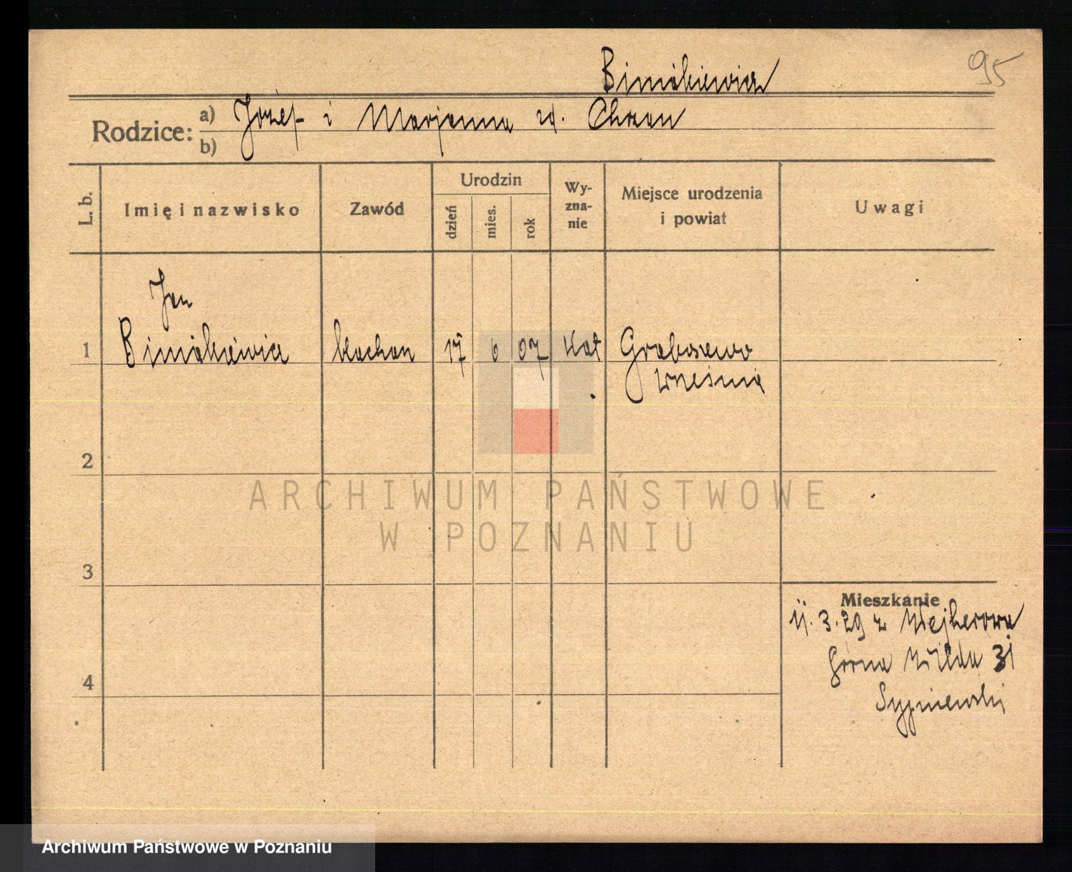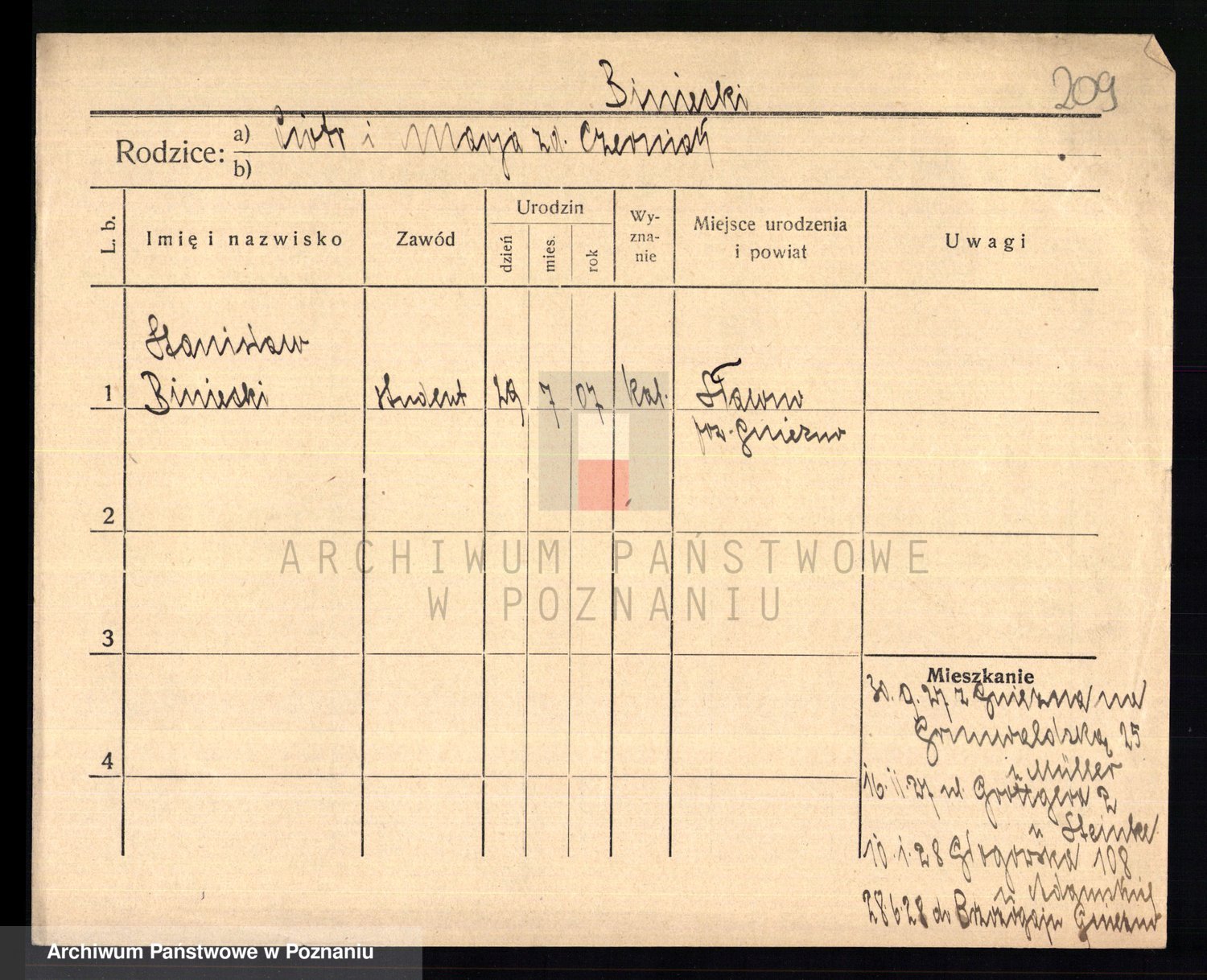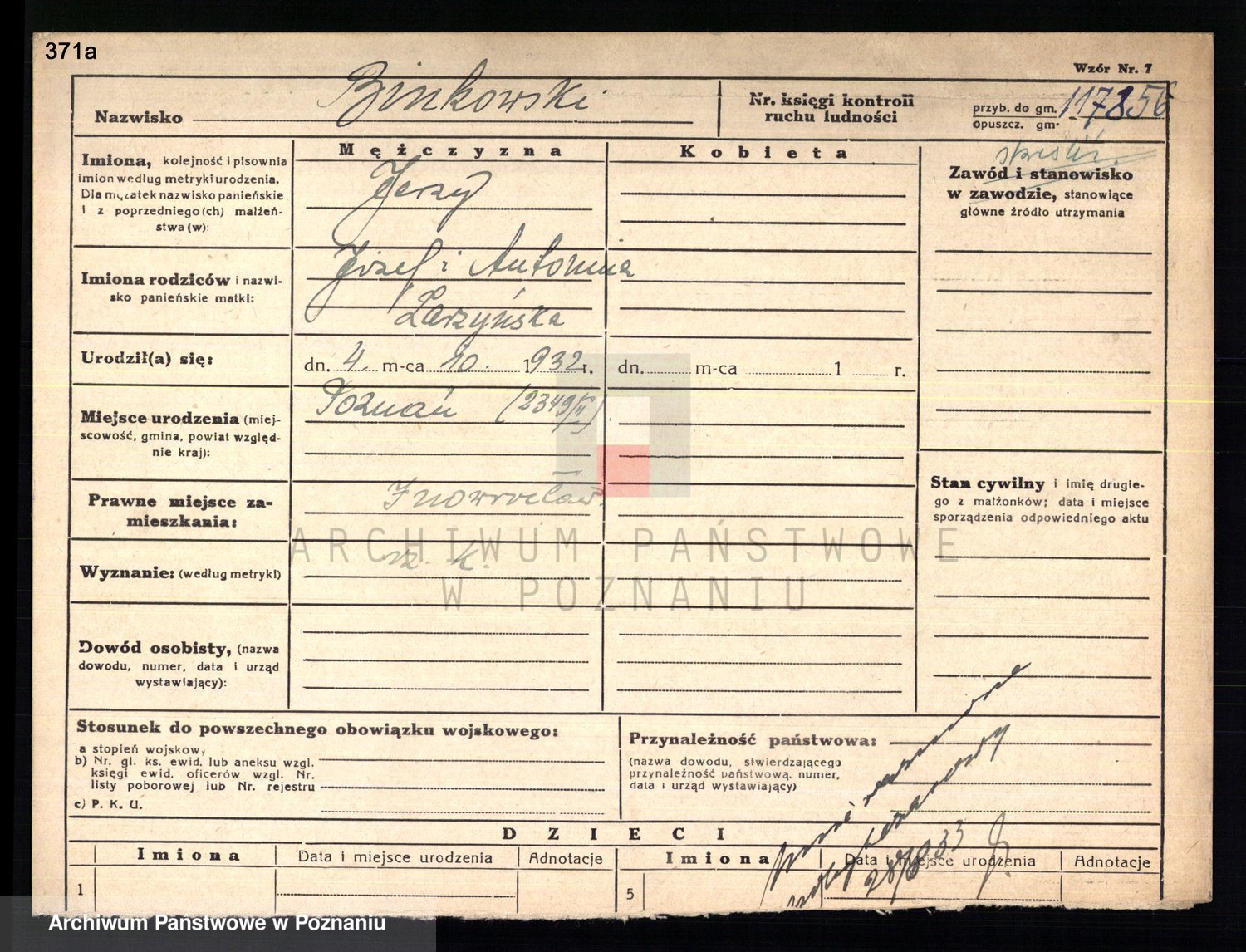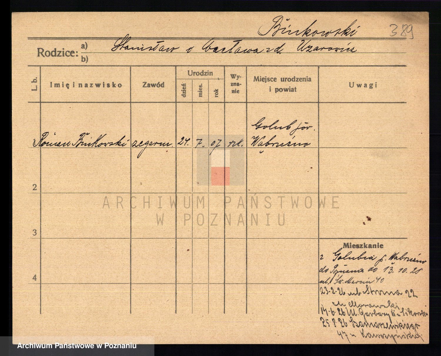Podgląd karty osobowej dostępny jest po kliknięciu na nazwisko lub ikonkę karty. Można dokonywać powiększenia (ikony na górze) lub przechodzić między kolejnymi skanami (strzałki po bokach).