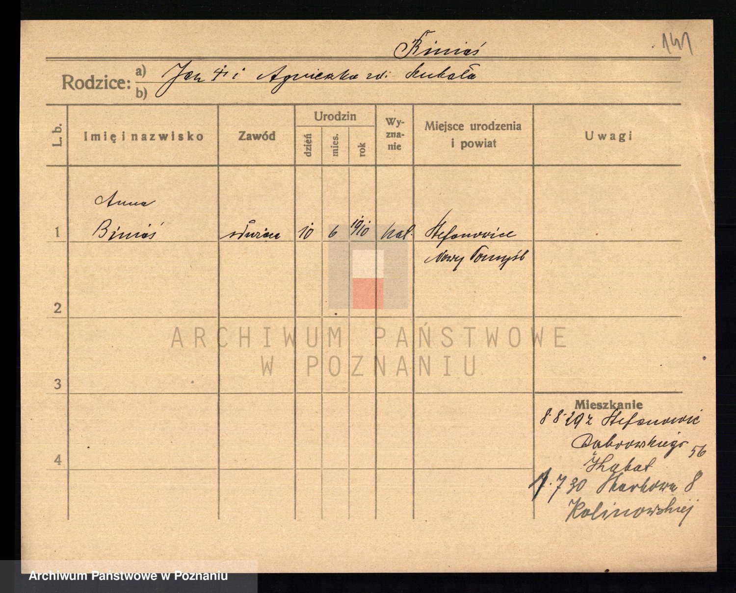 Biniak z d. Sobkowiak, Agnieszka
