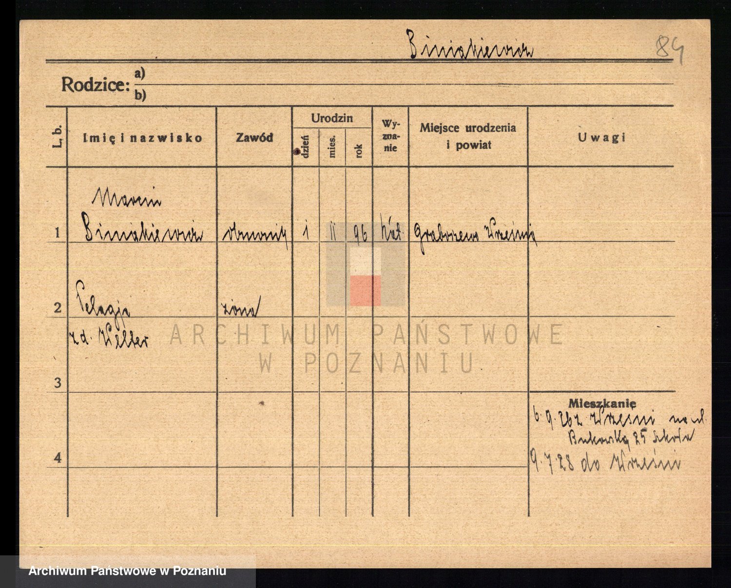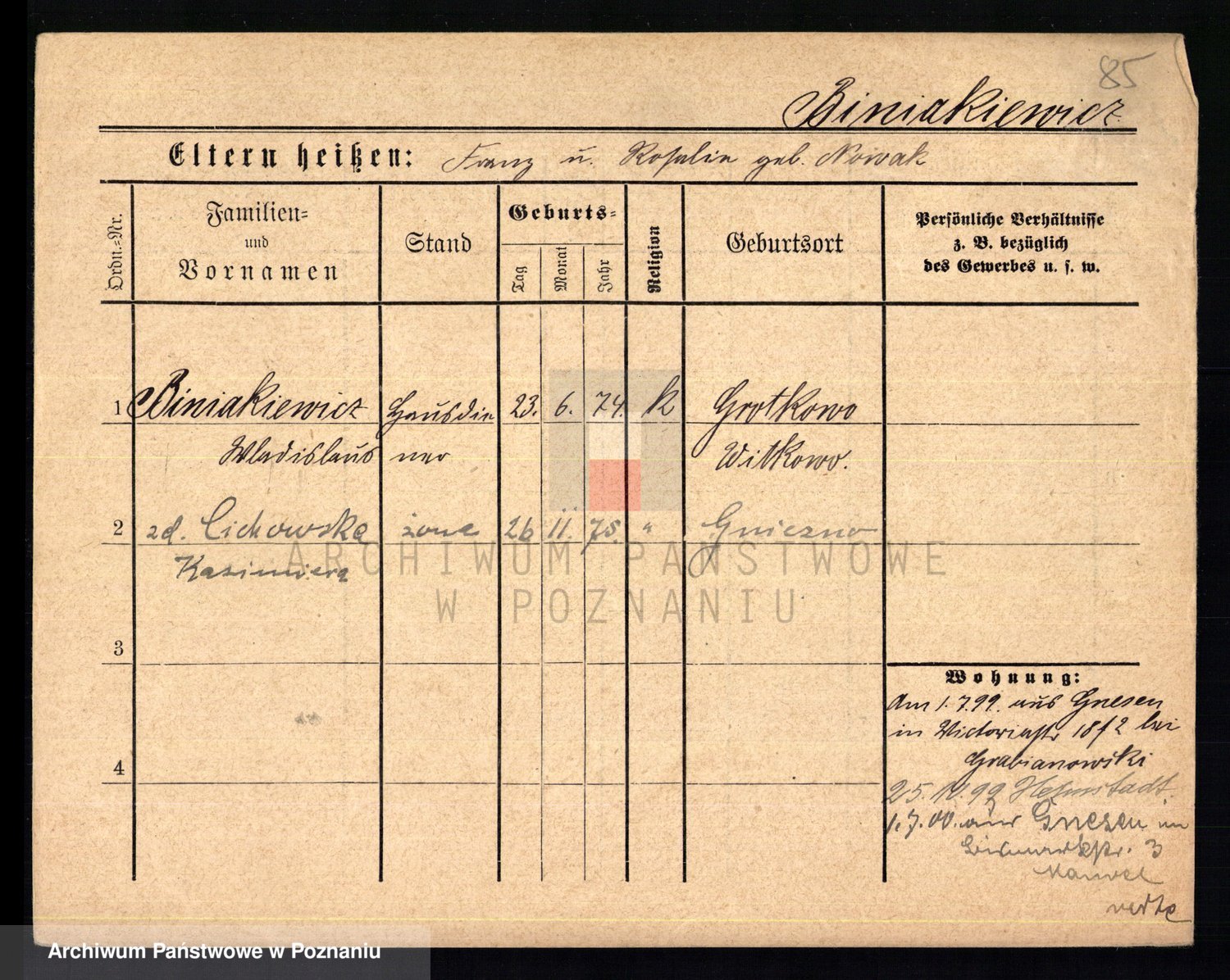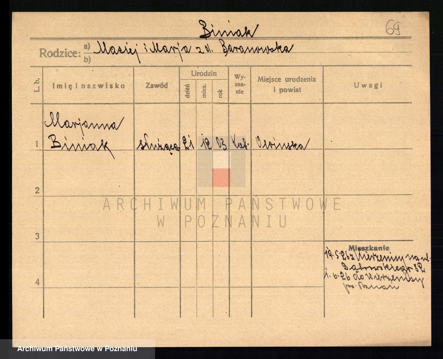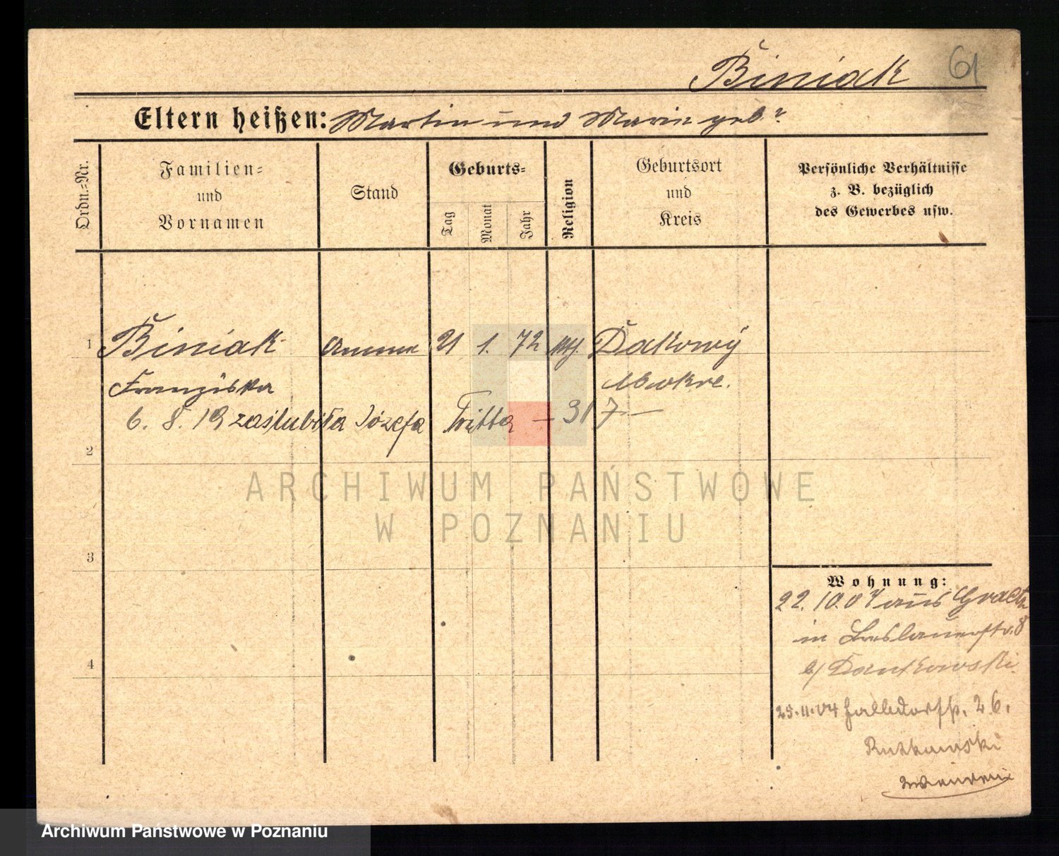 Biniak z d. Wyrwich, Franciszka