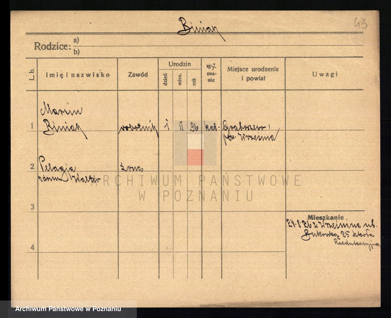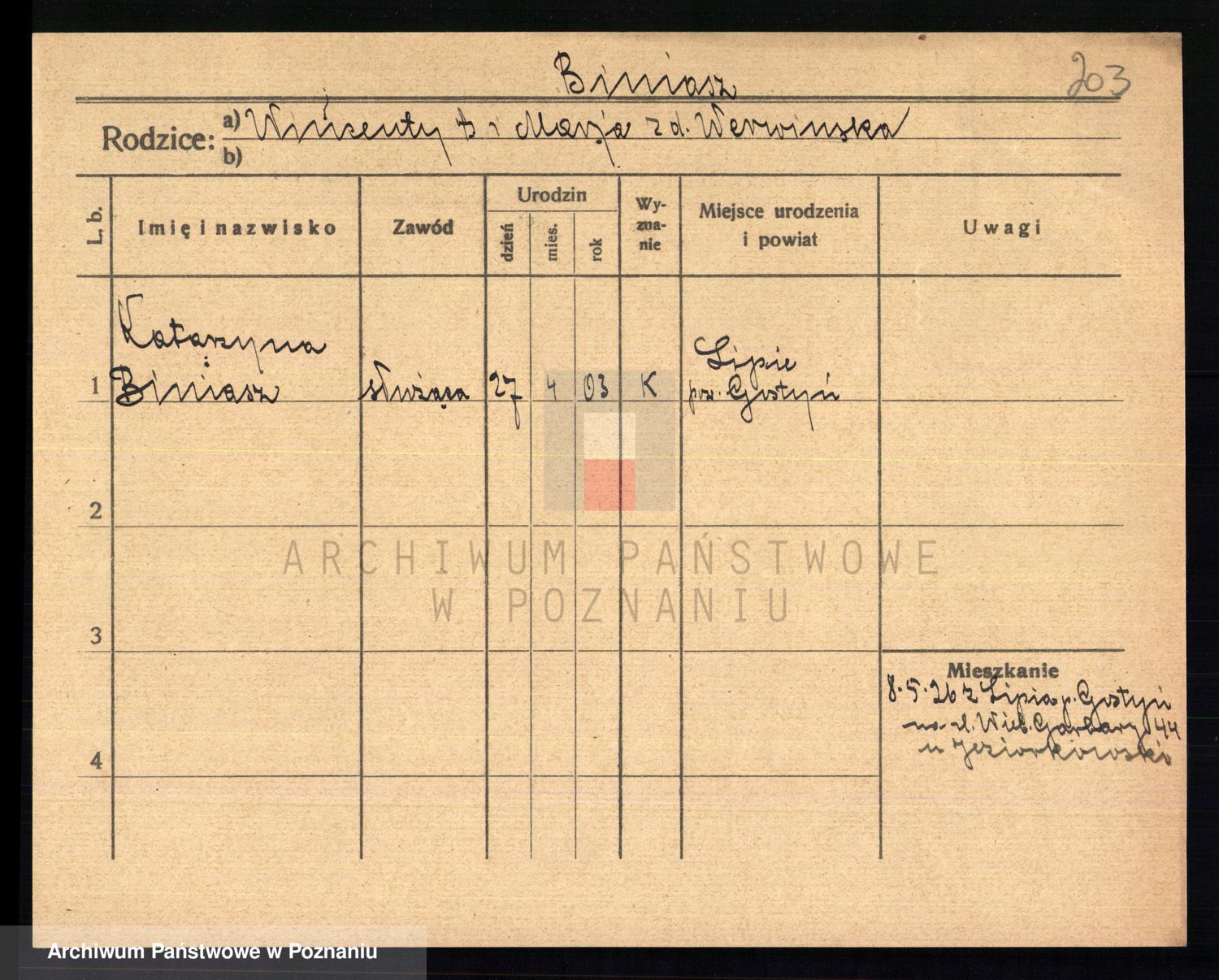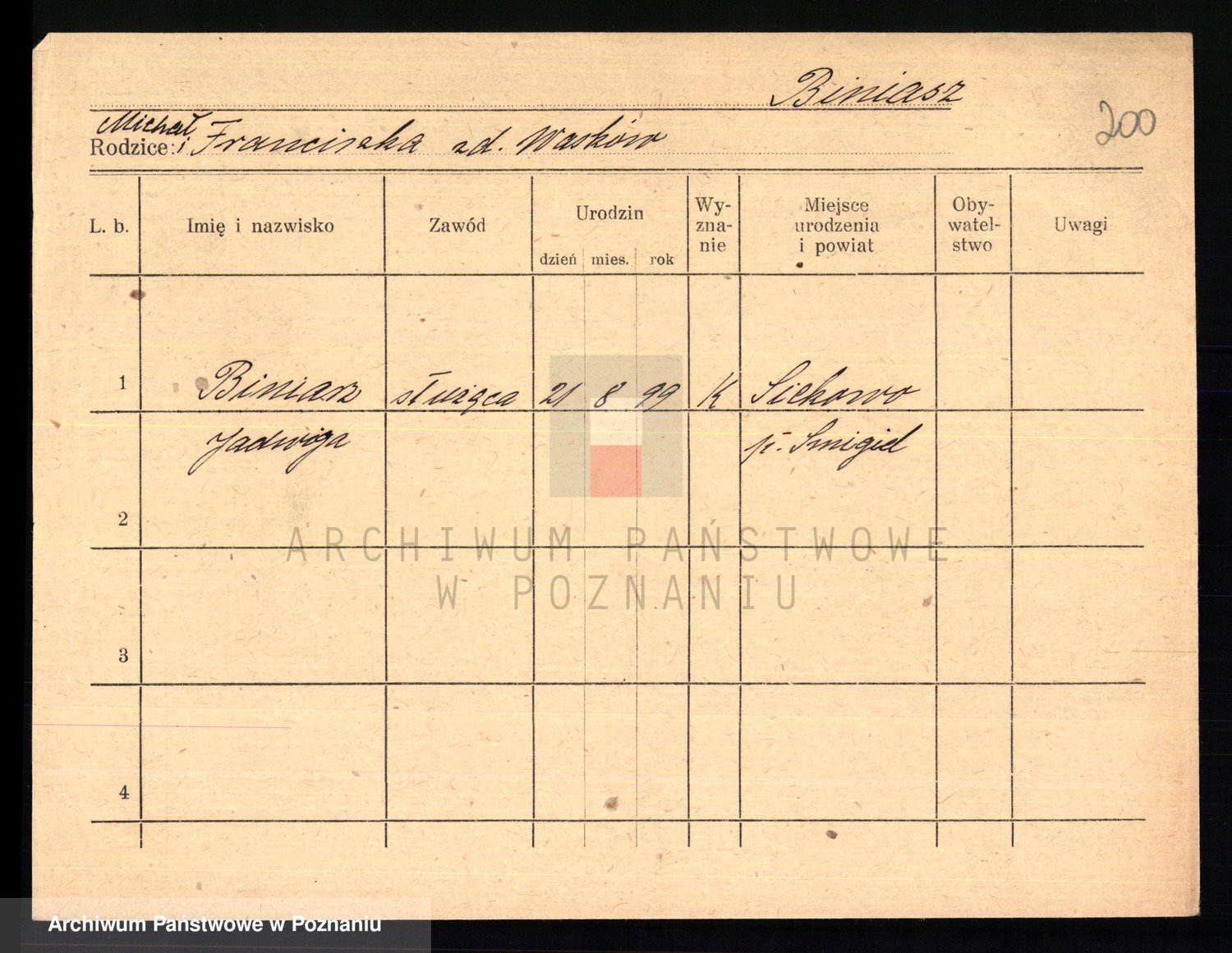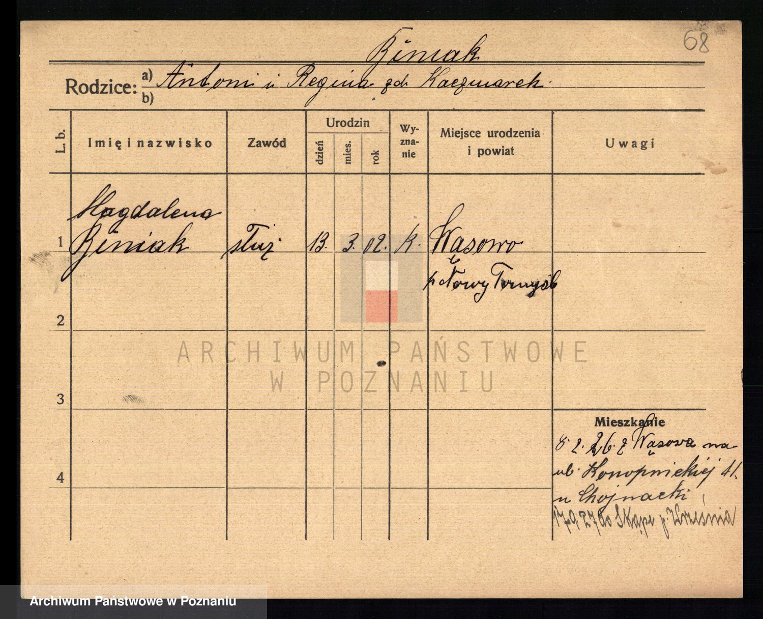 Biniak z d. Wyrwich, Franciszka