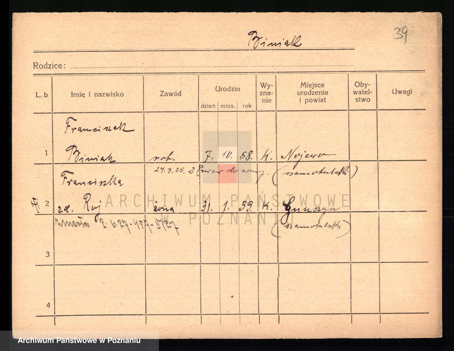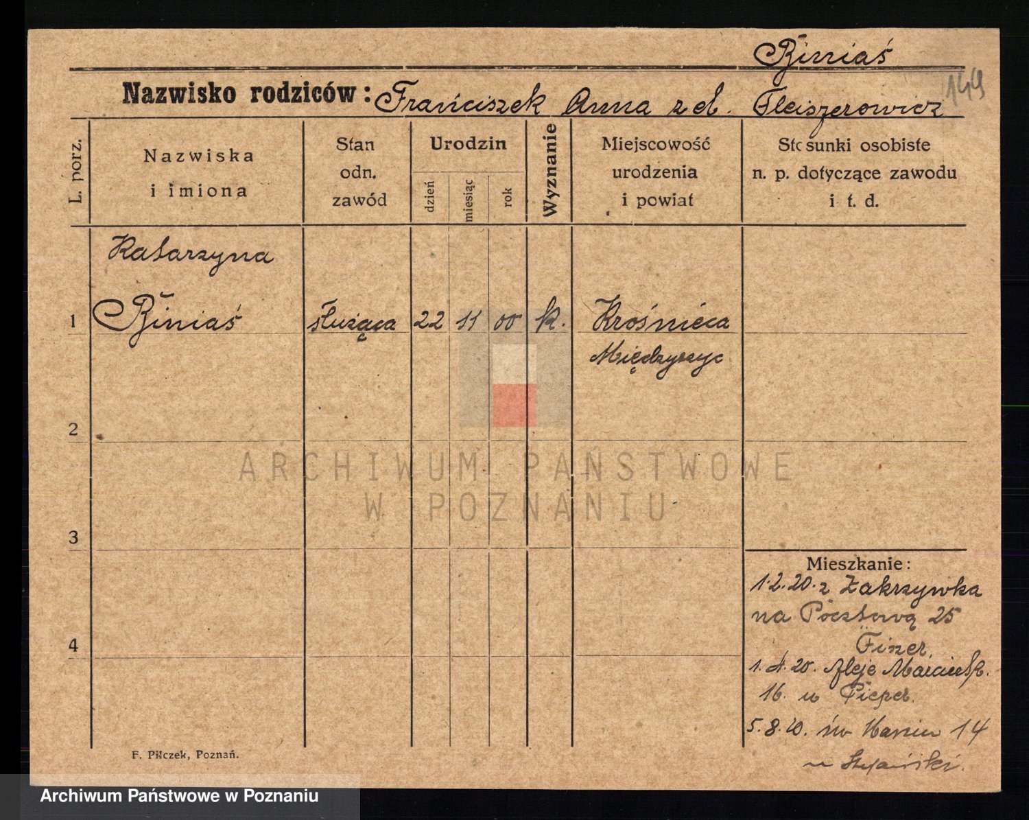 Biniak z d. Roj, Franciszka